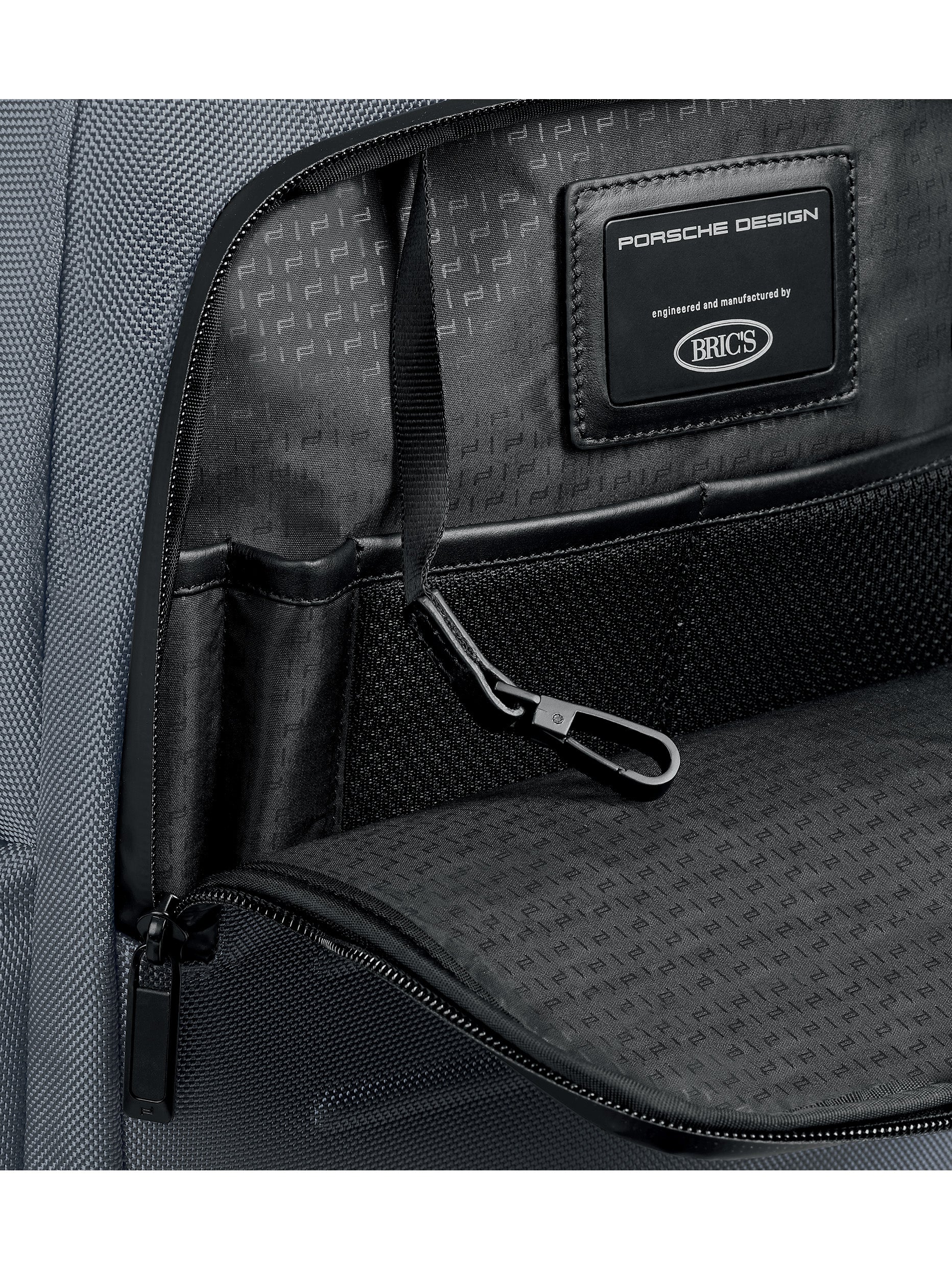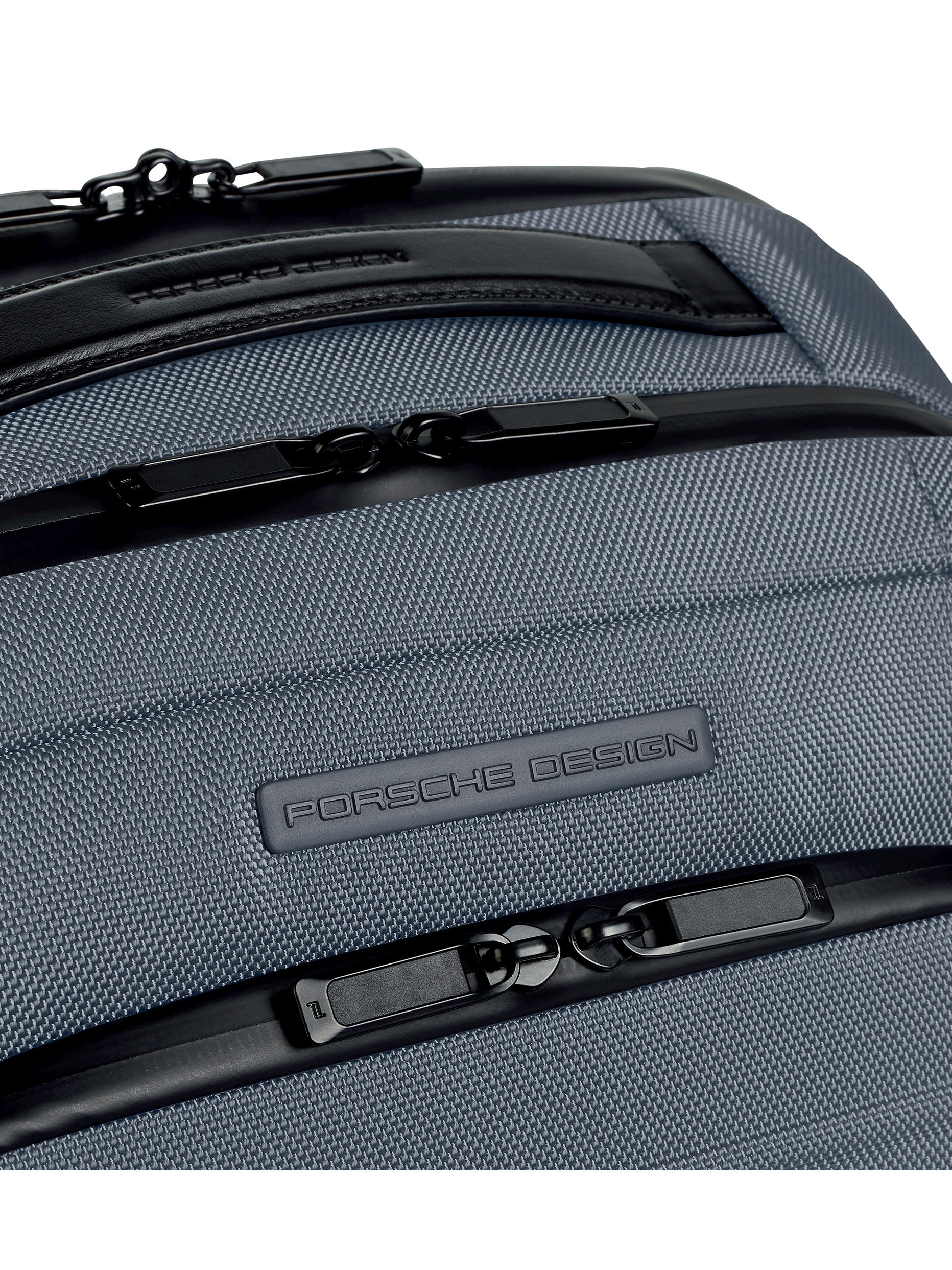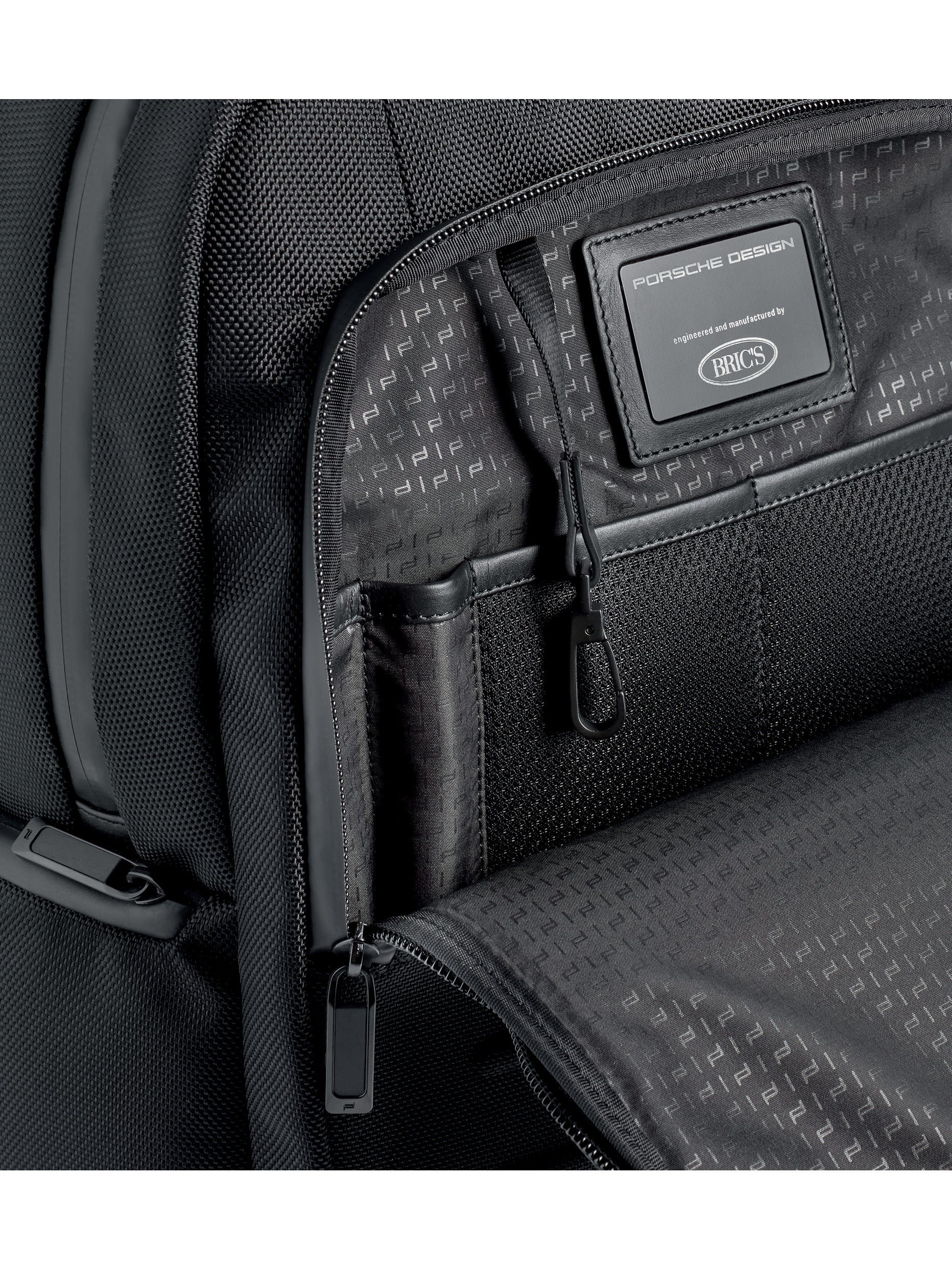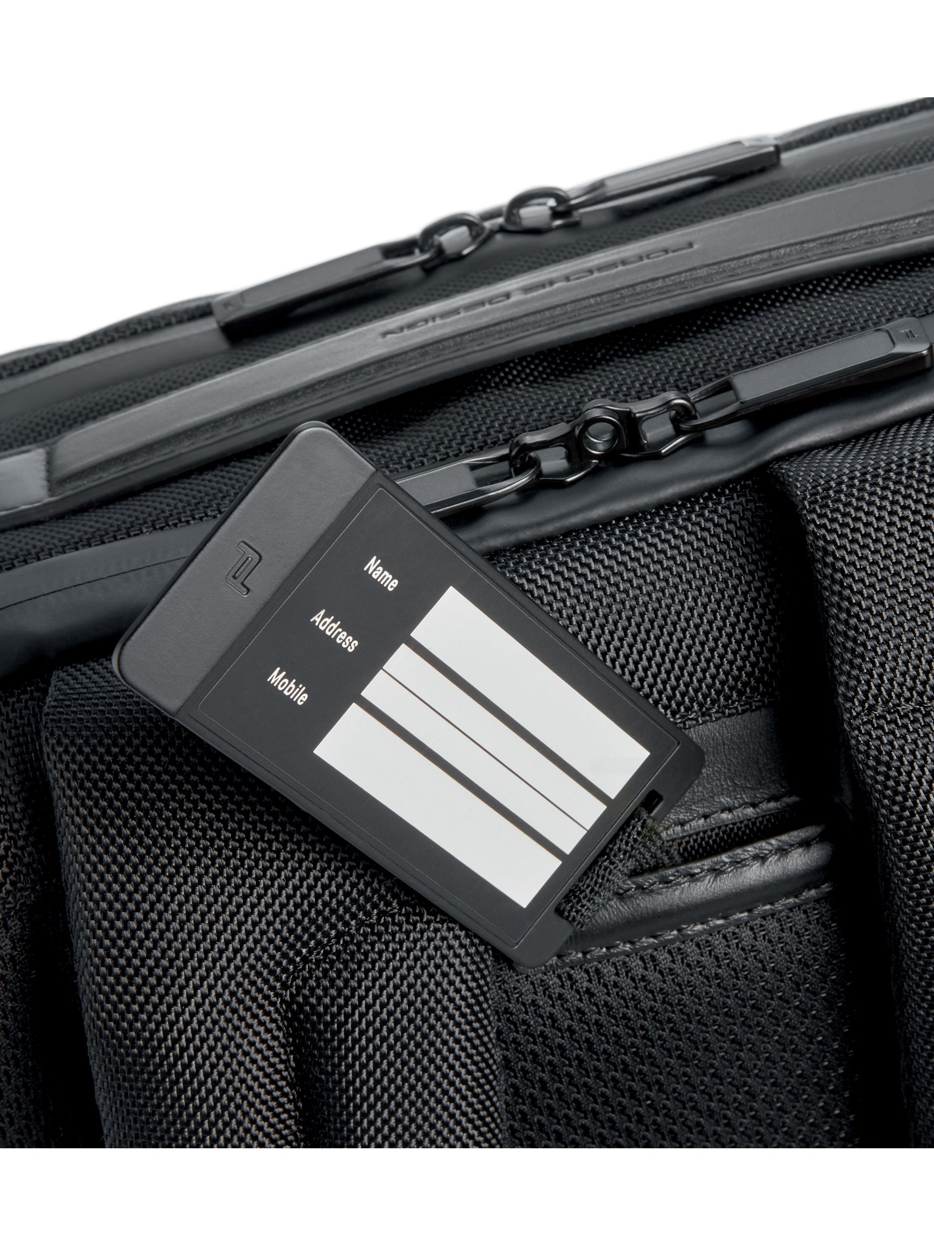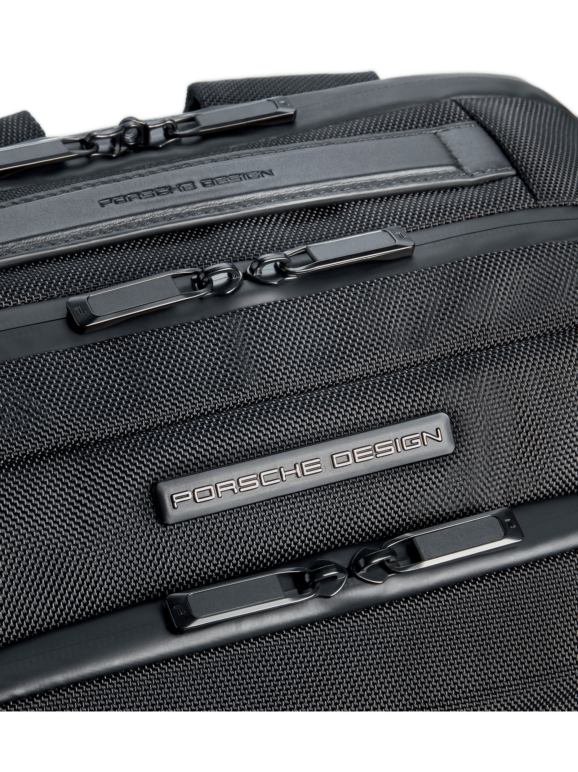 Technischer Stoff von Porsche Design mit Metalldetails. Futter: Polyestergewebe mit heißgedrucktem Porsche Design Icon-Logo auf schwarzer Farbe.. Reinigen Sie den befleckten Bereich vorsichtig mit einem trockenen Tuch. Verwenden Sie bei fettigen oder anhaltenden Flecken eine kleine Menge eines sanften Entfettungsmittels. Verwenden Sie keine Produkte auf Benzol- oder Alkoholbasis. Vermeiden Sie das