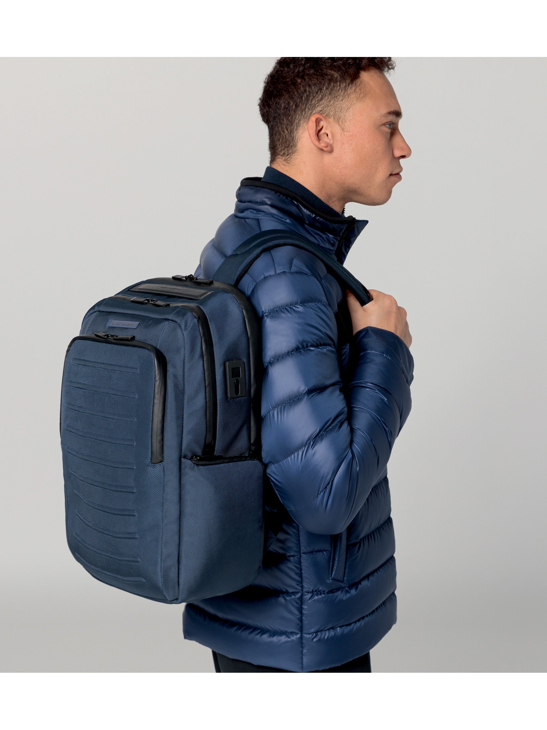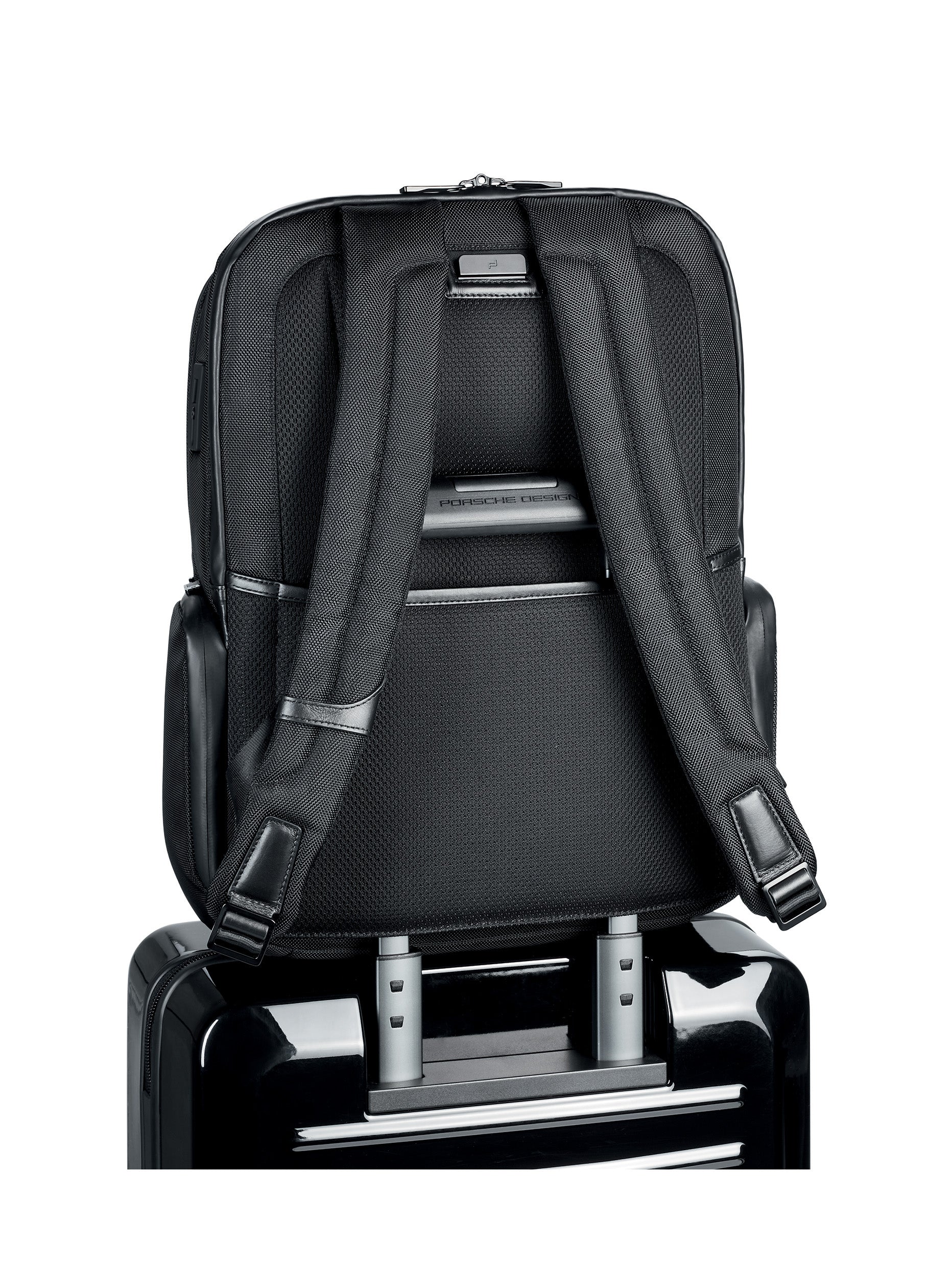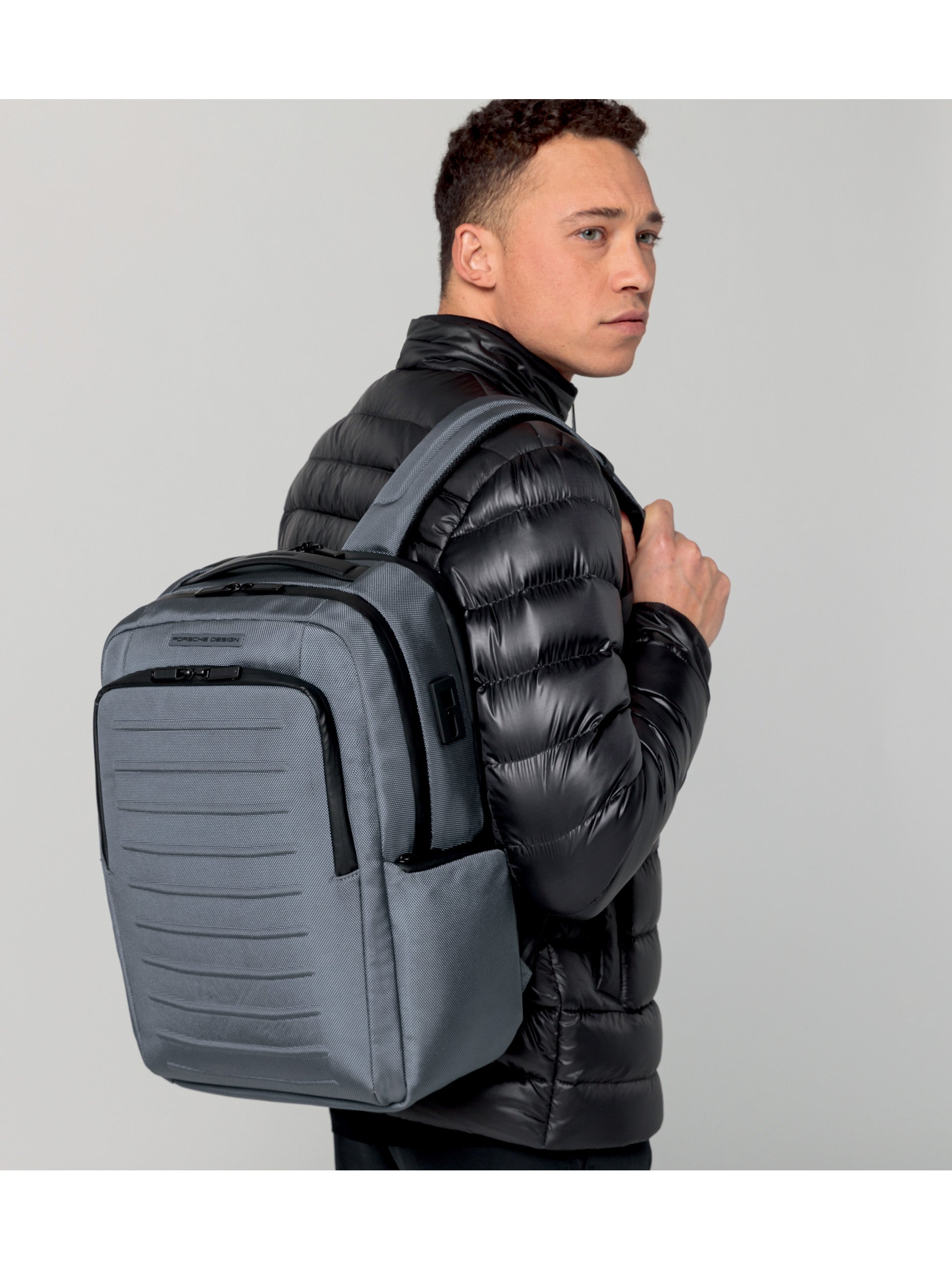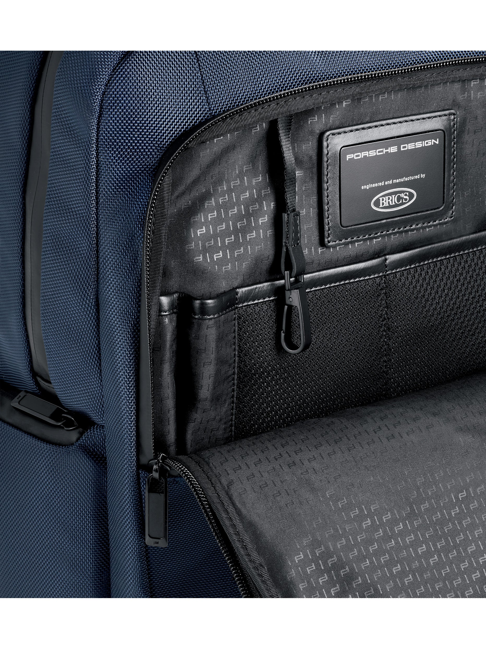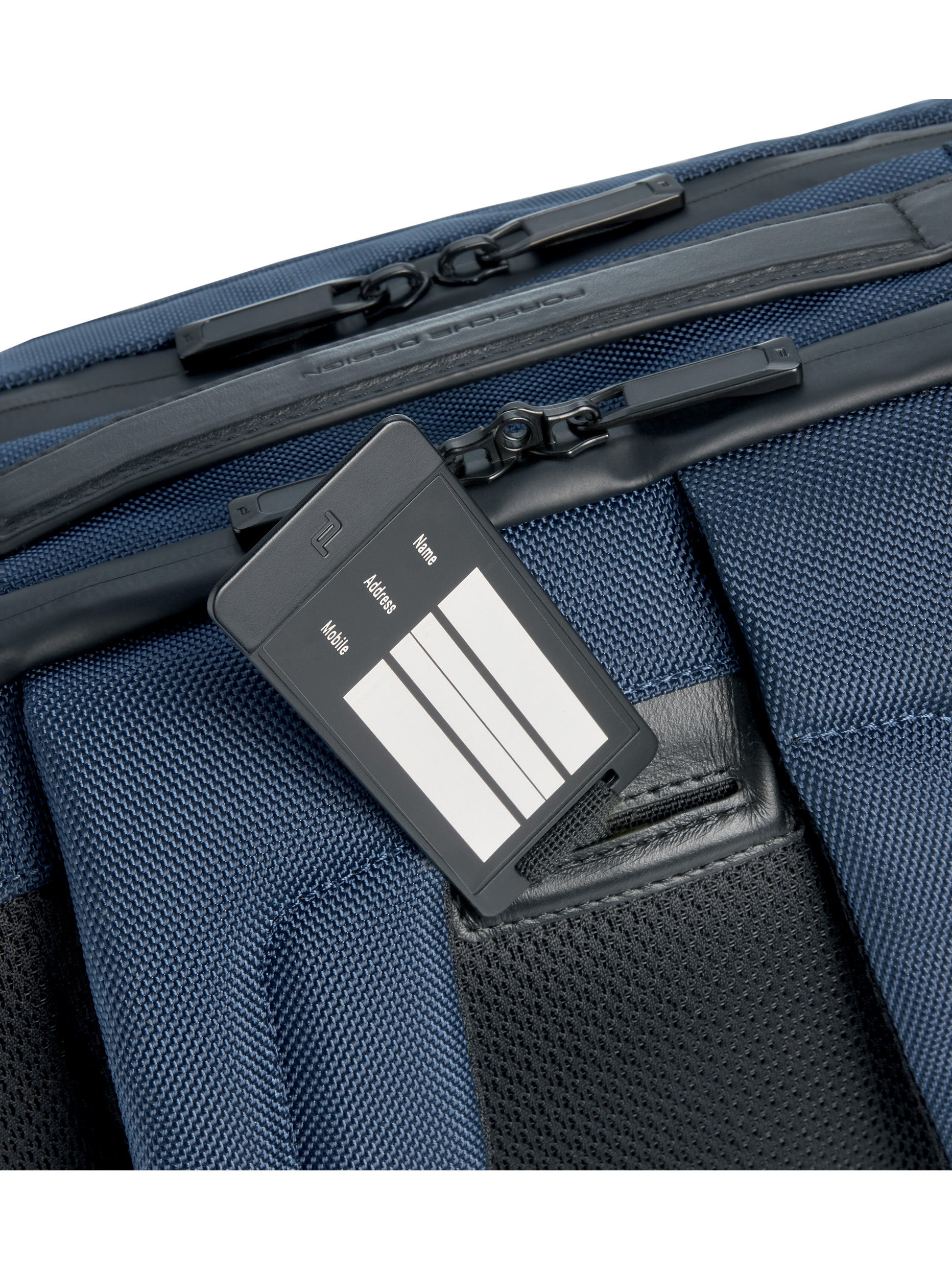 Technischer Stoff von Porsche Design mit Metalldetails. Futter: Polyestergewebe mit heißgedrucktem Porsche Design Icon-Logo auf schwarzer Farbe.. Reinigen Sie den befleckten Bereich vorsichtig mit einem trockenen Tuch. Verwenden Sie bei fettigen oder anhaltenden Flecken eine kleine Menge eines sanften Entfettungsmittels. Verwenden Sie keine Produkte auf Benzol- oder Alkoholbasis. Vermeiden Sie das