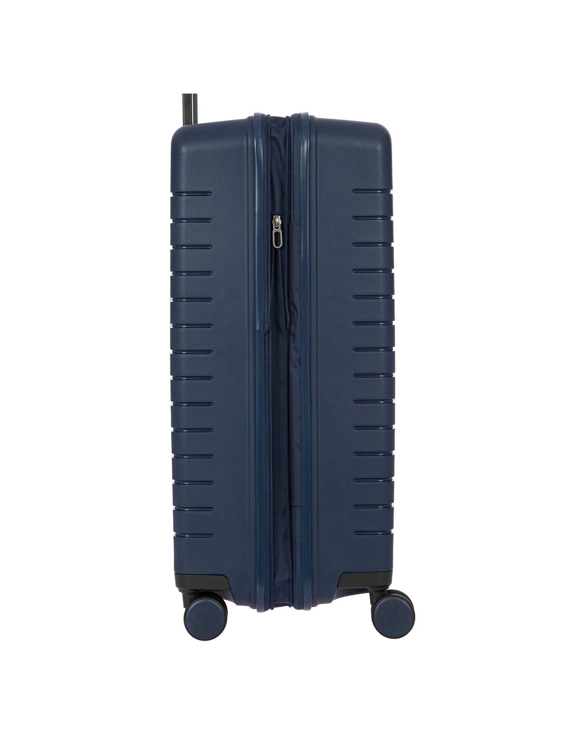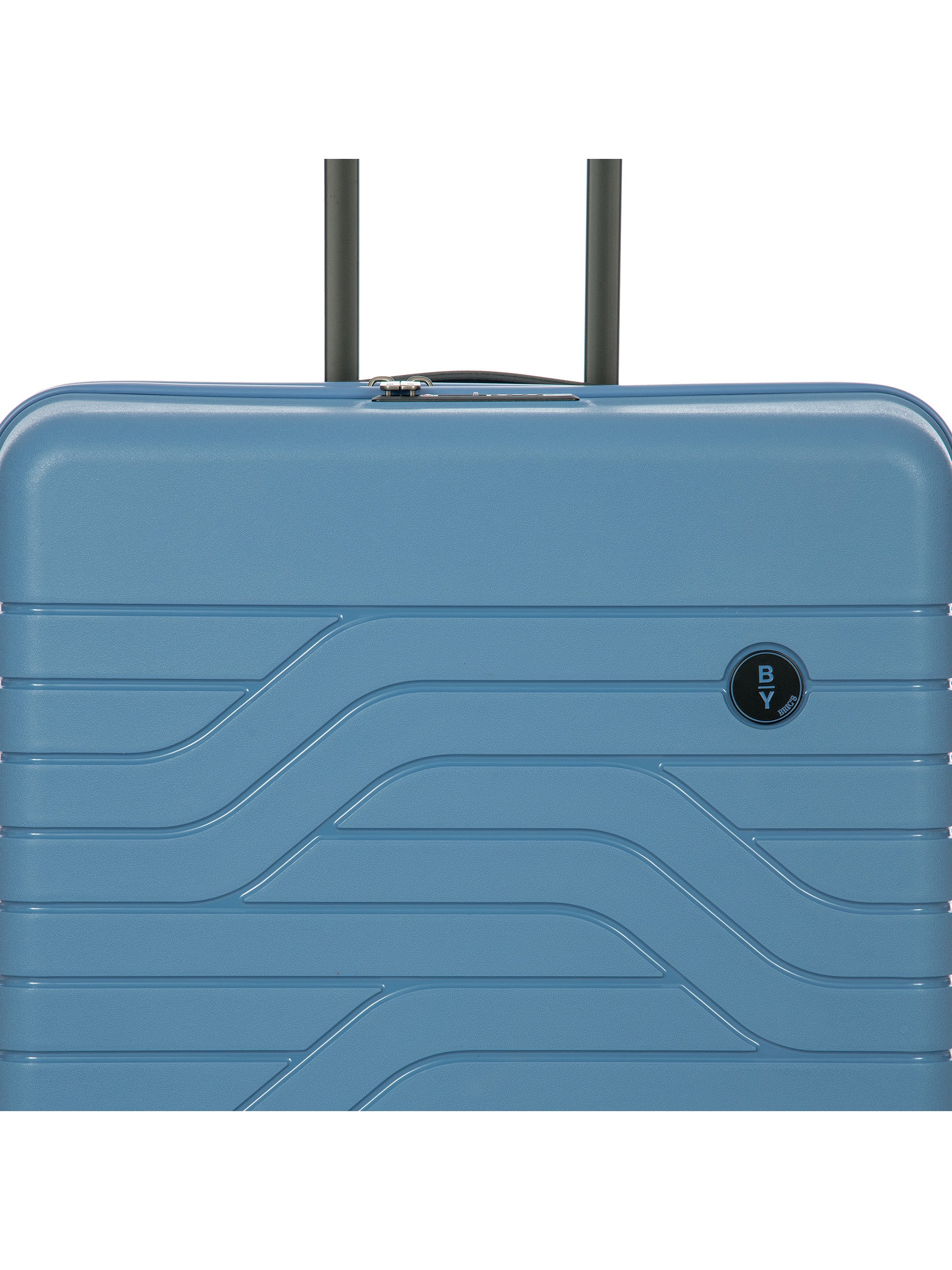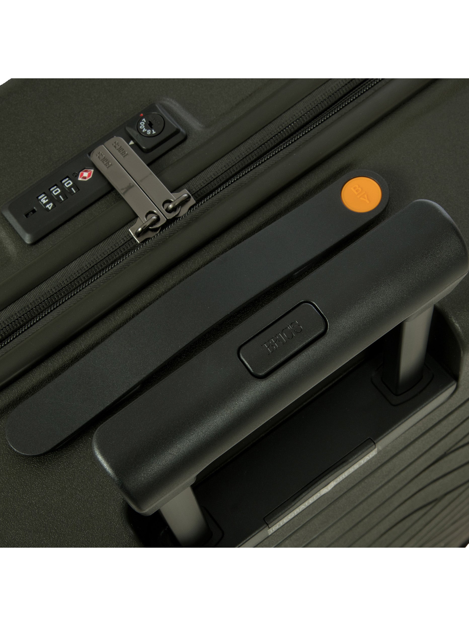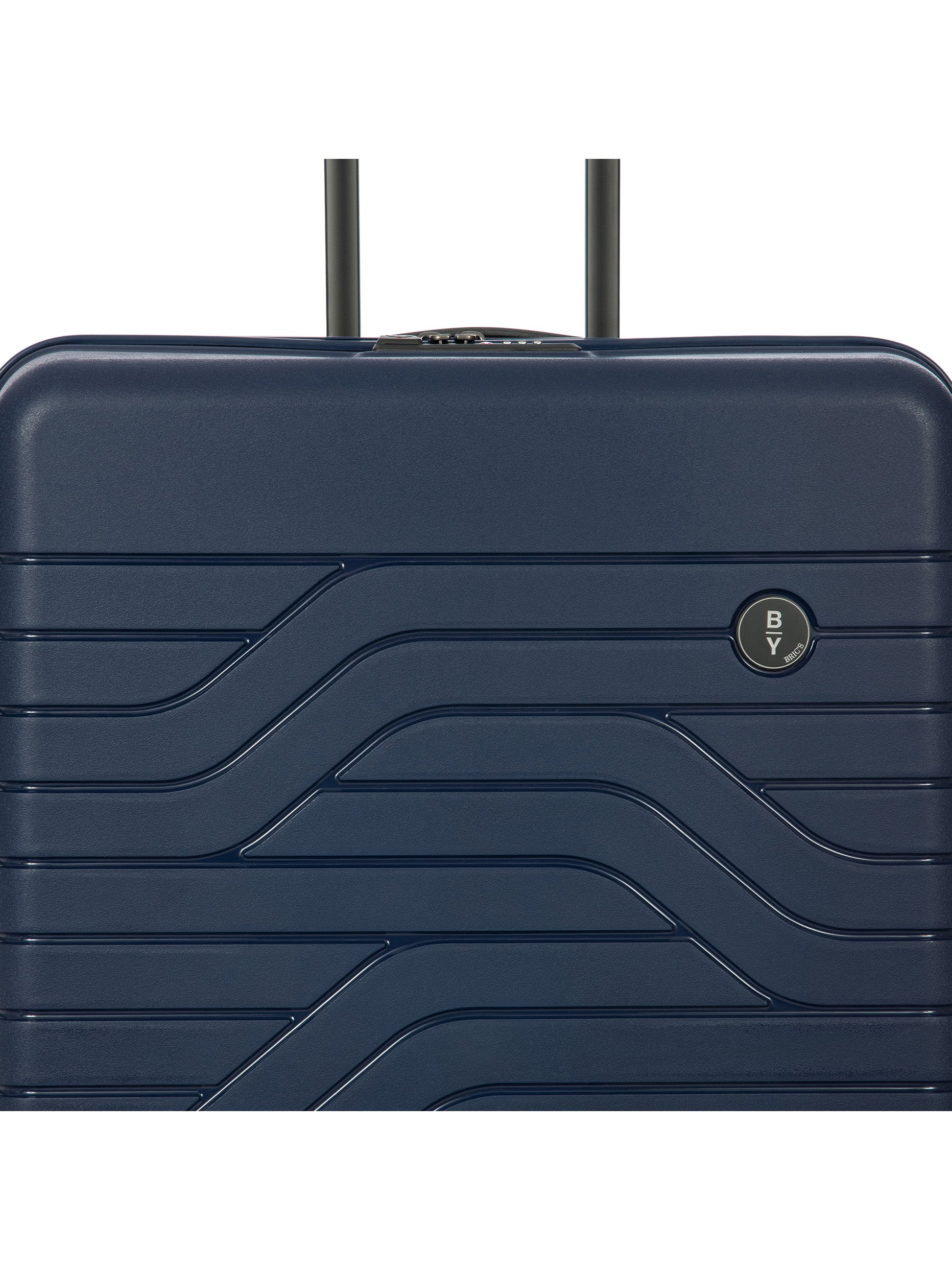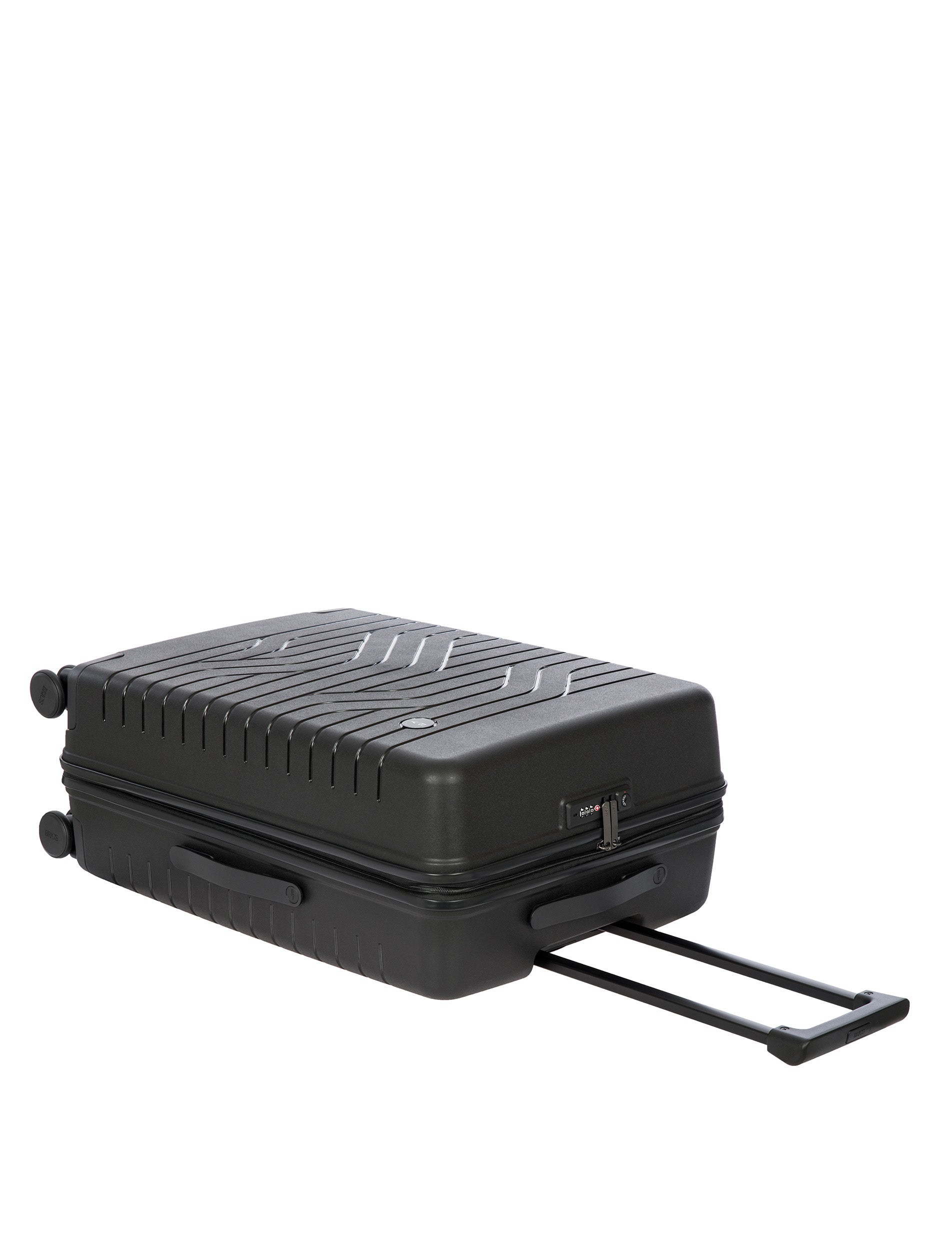 Erweiterbarer Hartschalen-Trolley in L Größe der Kollektion Ulisse B|Y. Die Außenschale im Urban Style und die versenkten Rollen machen den modernen Trolley zum perfekten Begleiter für jede Reise. AUẞEN: Schale aus Polypropylen für ein Maximum an Leichtigkeit, Flexibilität und Festigkeit. Das TSA-Schloss am Reißverschluss ist in die Schale integriert. Mit einem Reißverschluss lässt sich die Tiefe des Trolleys um 4 cm erweitern. GRIFF: bequemer und praktischer Ziehgriff mit Aluminiumrohren, per Drucktaste in drei Stufen einstellbar. Der obere und der seitliche Griff sind flach und ergonomisch. INNEN: innen gefüttert, zwei Fächer: Futter mit Reißverschluss und flacher Netztasche auf der einen Seite, Bänder mit Schnalle auf der anderen. Die separate Tasche mit Reißverschluss enthält einen abnehmbaren und waschbaren Beutel. ROLLEN: vier versenkte Doppelrollen zur Platzoptimierung, mit Bric's-Logo. Sie ermöglichen eine einfache und durch die Gummierung absolut geräuscharme 360°-Drehung. DETAILS: Das äußere Design zeichnet sich durch ein glänzendes Flachrelief im Urban Style aus, das mit der matten Farbe der Schale kontrastiert. Logodetails B|Y an den Tragegriffen, farblich abgestimmt auf die Schalenfarbe.