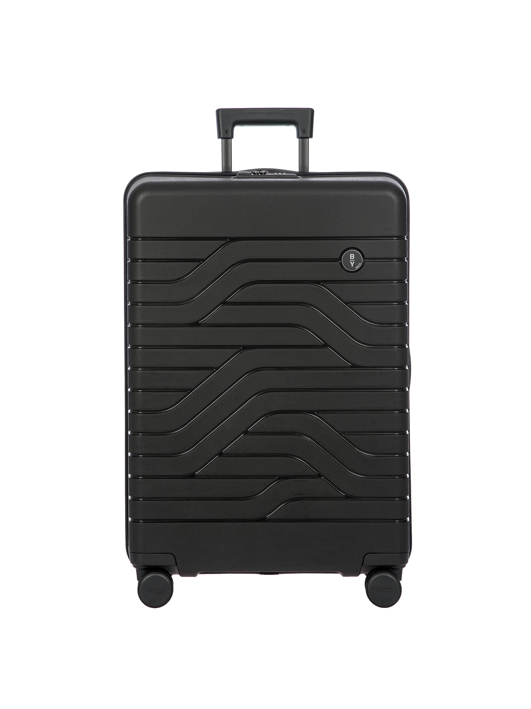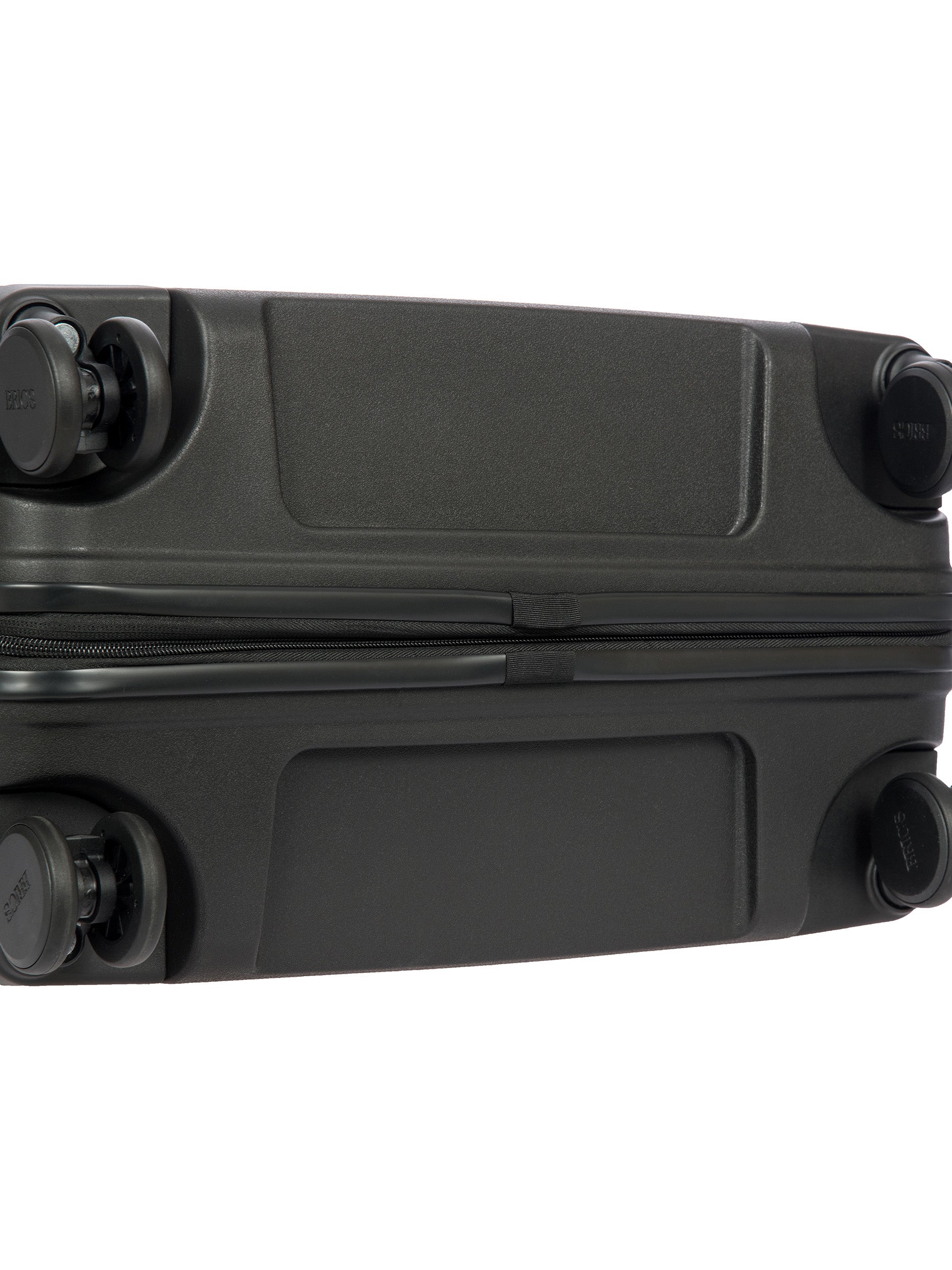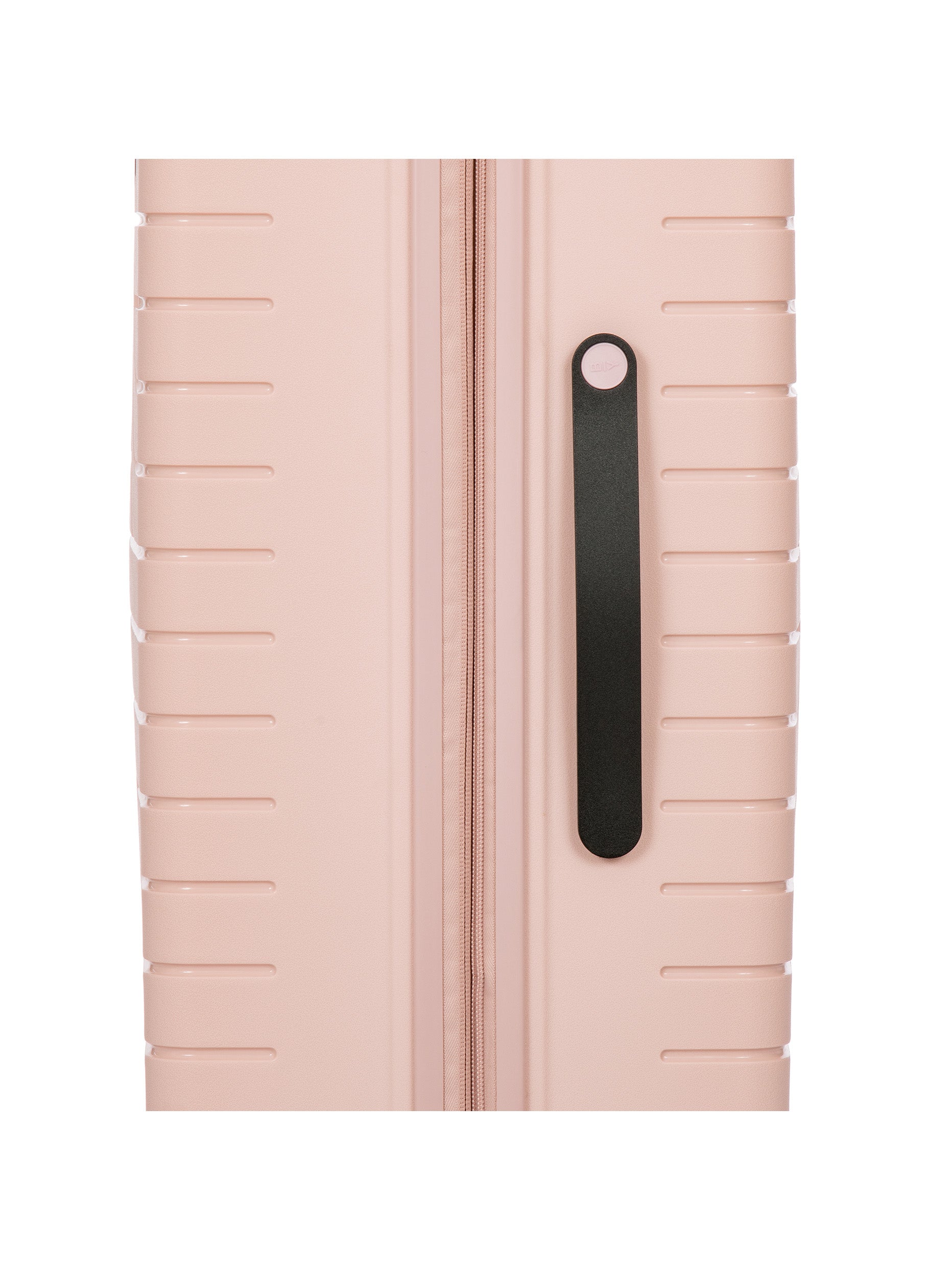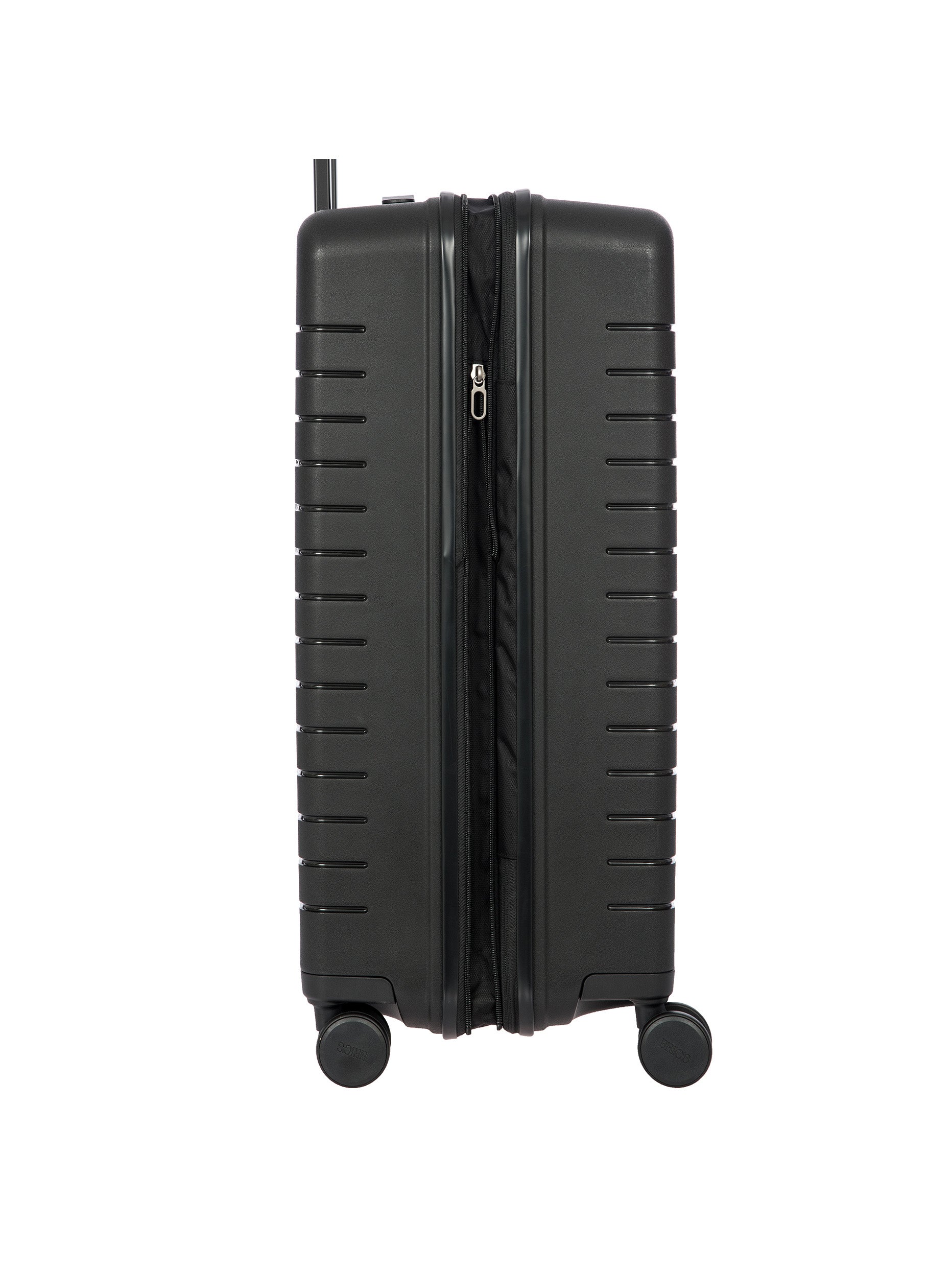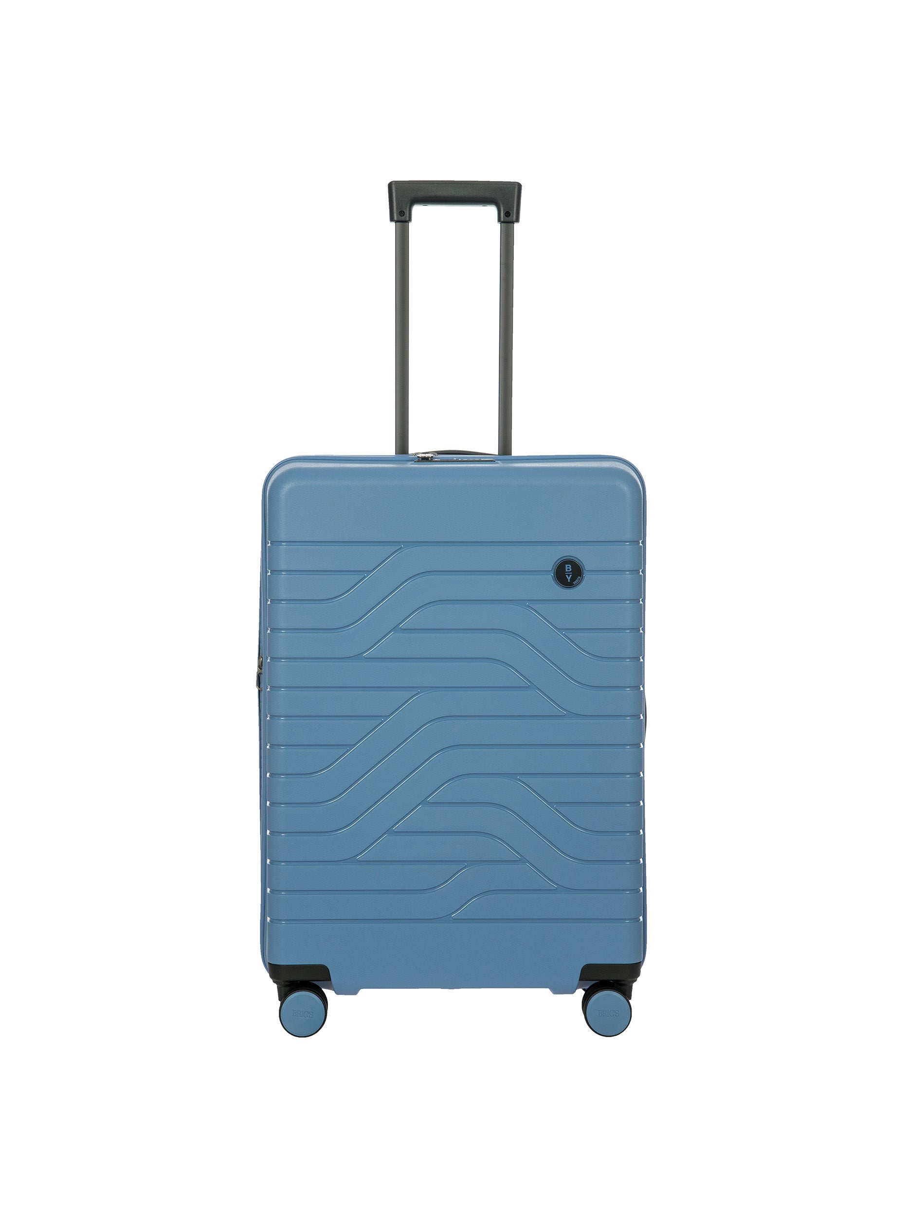 Erweiterbarer Hartschalen-Trolley in L Größe der Kollektion Ulisse B|Y. Die Außenschale im Urban Style und die versenkten Rollen machen den modernen Trolley zum perfekten Begleiter für jede Reise. AUẞEN: Schale aus Polypropylen für ein Maximum an Leichtigkeit, Flexibilität und Festigkeit. Das TSA-Schloss am Reißverschluss ist in die Schale integriert. Mit einem Reißverschluss lässt sich die Tiefe des Trolleys um 4 cm erweitern. GRIFF: bequemer und praktischer Ziehgriff mit Aluminiumrohren, per Drucktaste in drei Stufen einstellbar. Der obere und der seitliche Griff sind flach und ergonomisch. INNEN: innen gefüttert, zwei Fächer: Futter mit Reißverschluss und flacher Netztasche auf der einen Seite, Bänder mit Schnalle auf der anderen. Die separate Tasche mit Reißverschluss enthält einen abnehmbaren und waschbaren Beutel. ROLLEN: vier versenkte Doppelrollen zur Platzoptimierung, mit Bric's-Logo. Sie ermöglichen eine einfache und durch die Gummierung absolut geräuscharme 360°-Drehung. DETAILS: Das äußere Design zeichnet sich durch ein glänzendes Flachrelief im Urban Style aus, das mit der matten Farbe der Schale kontrastiert. Logodetails B|Y an den Tragegriffen, farblich abgestimmt auf die Schalenfarbe.