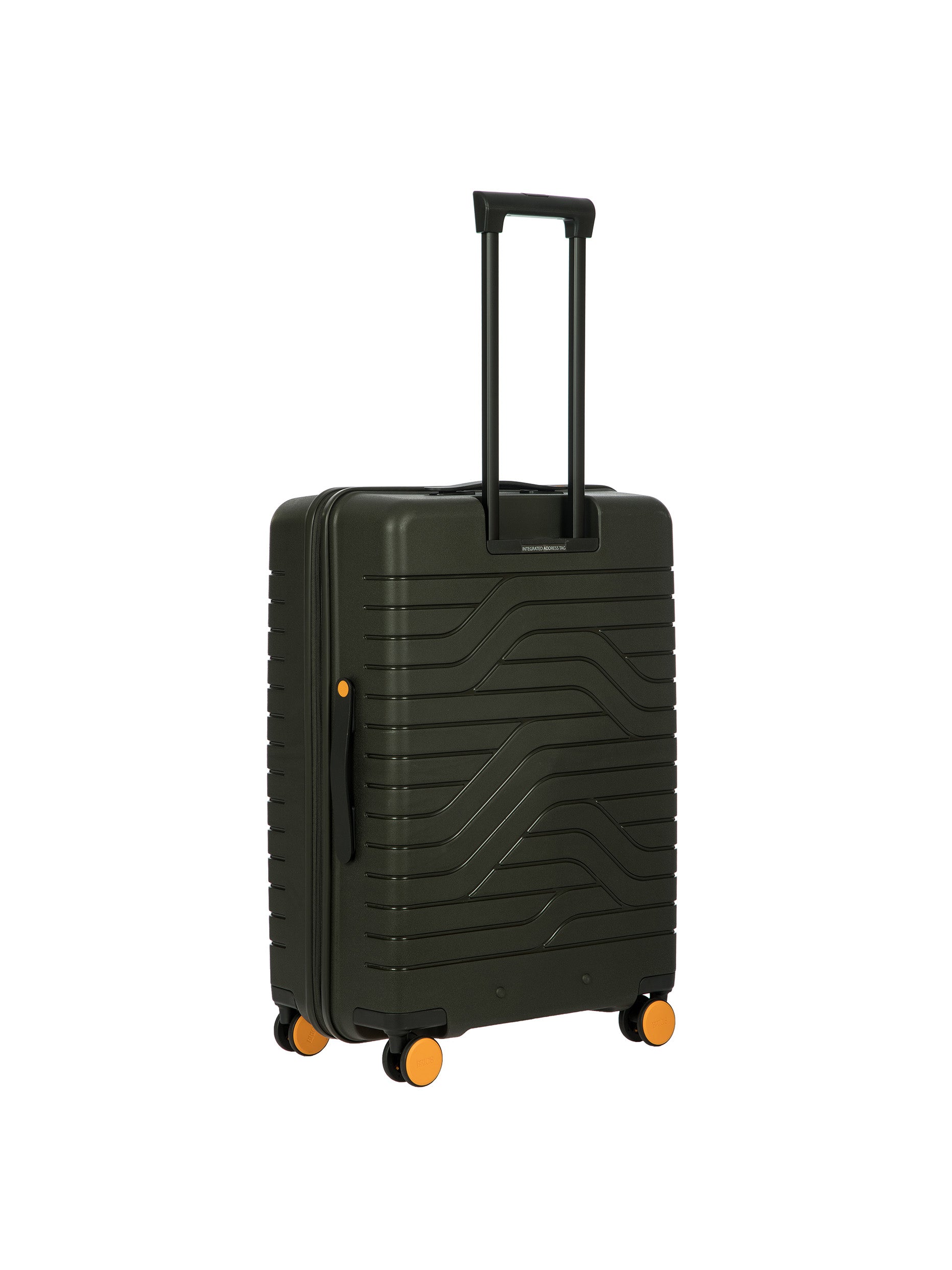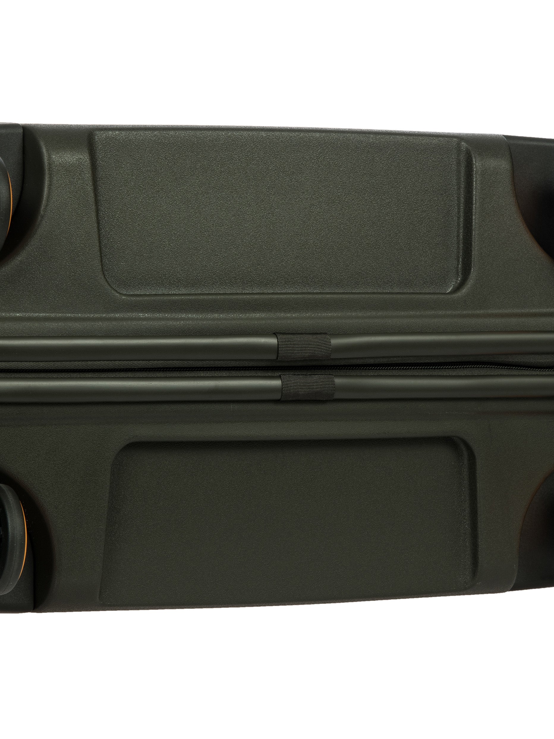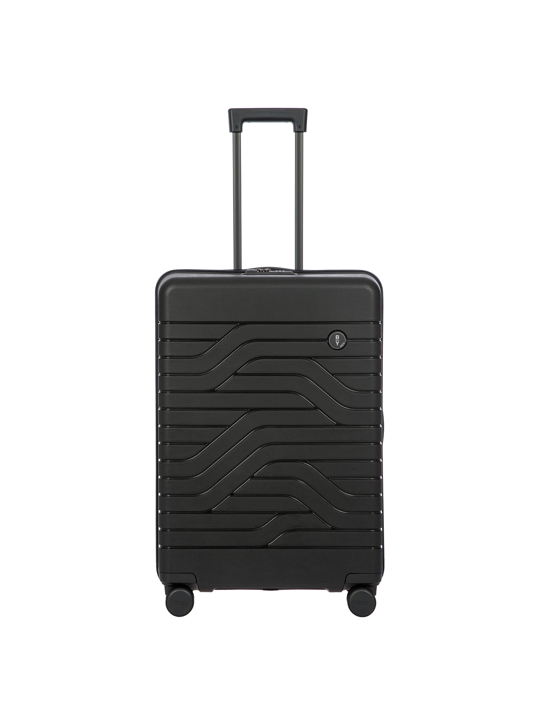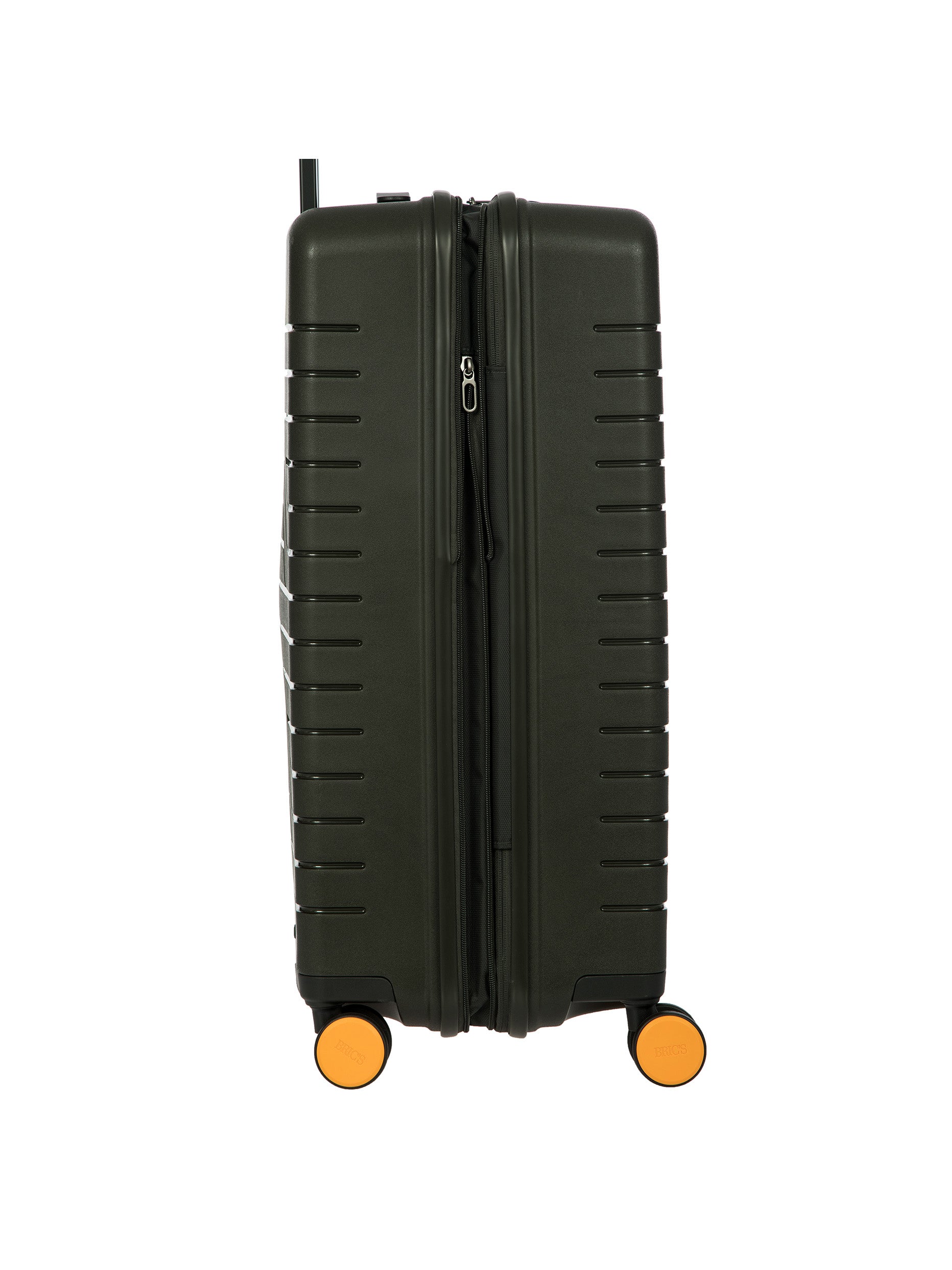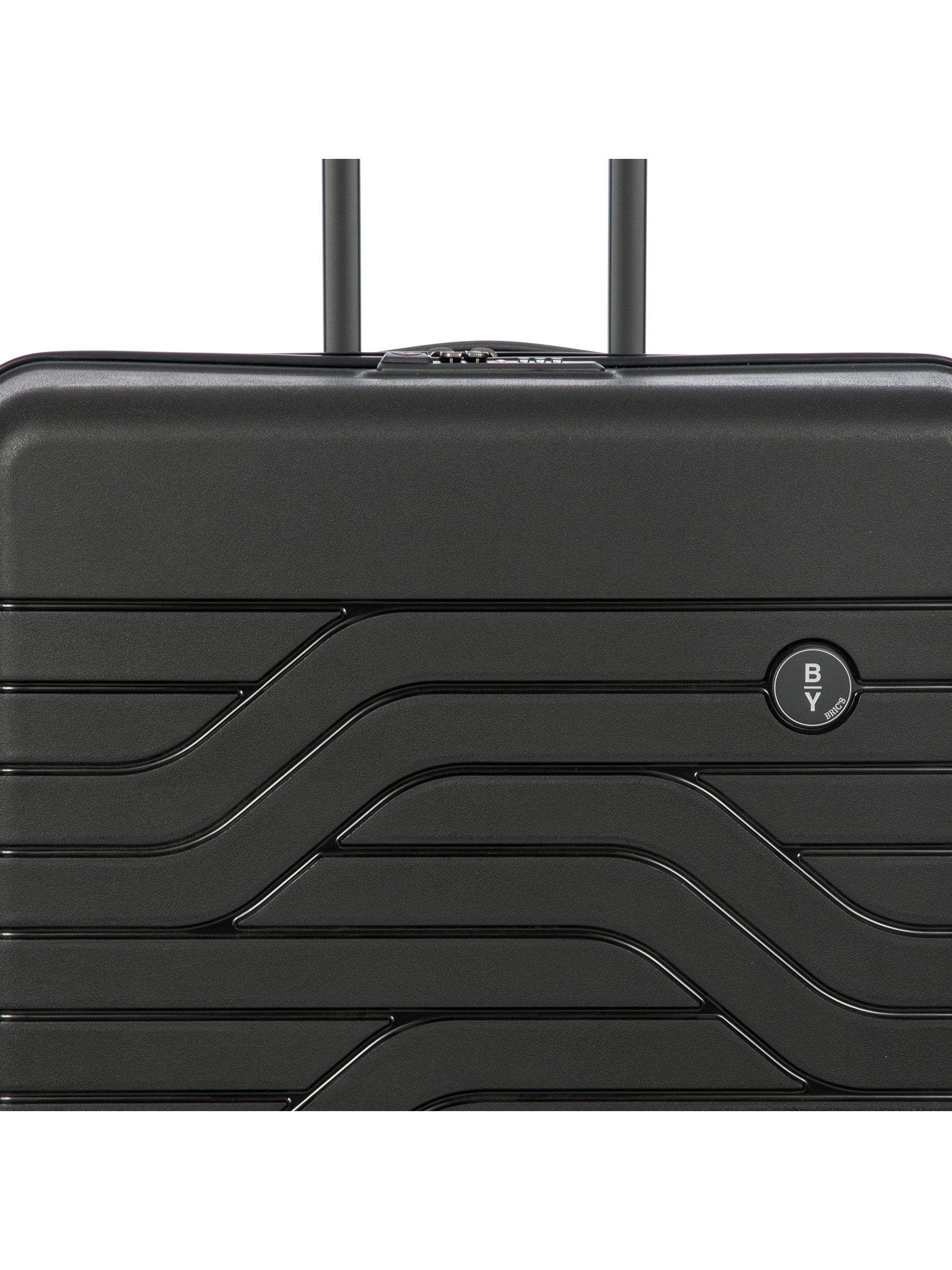 Erweiterbarer Hartschalen-Trolley in L Größe der Kollektion Ulisse B|Y. Die Außenschale im Urban Style und die versenkten Rollen machen den modernen Trolley zum perfekten Begleiter für jede Reise. AUẞEN: Schale aus Polypropylen für ein Maximum an Leichtigkeit, Flexibilität und Festigkeit. Das TSA-Schloss am Reißverschluss ist in die Schale integriert. Mit einem Reißverschluss lässt sich die Tiefe des Trolleys um 4 cm erweitern. GRIFF: bequemer und praktischer Ziehgriff mit Aluminiumrohren, per Drucktaste in drei Stufen einstellbar. Der obere und der seitliche Griff sind flach und ergonomisch. INNEN: innen gefüttert, zwei Fächer: Futter mit Reißverschluss und flacher Netztasche auf der einen Seite, Bänder mit Schnalle auf der anderen. Die separate Tasche mit Reißverschluss enthält einen abnehmbaren und waschbaren Beutel. ROLLEN: vier versenkte Doppelrollen zur Platzoptimierung, mit Bric's-Logo. Sie ermöglichen eine einfache und durch die Gummierung absolut geräuscharme 360°-Drehung. DETAILS: Das äußere Design zeichnet sich durch ein glänzendes Flachrelief im Urban Style aus, das mit der matten Farbe der Schale kontrastiert. Logodetails B|Y an den Tragegriffen, farblich abgestimmt auf die Schalenfarbe.