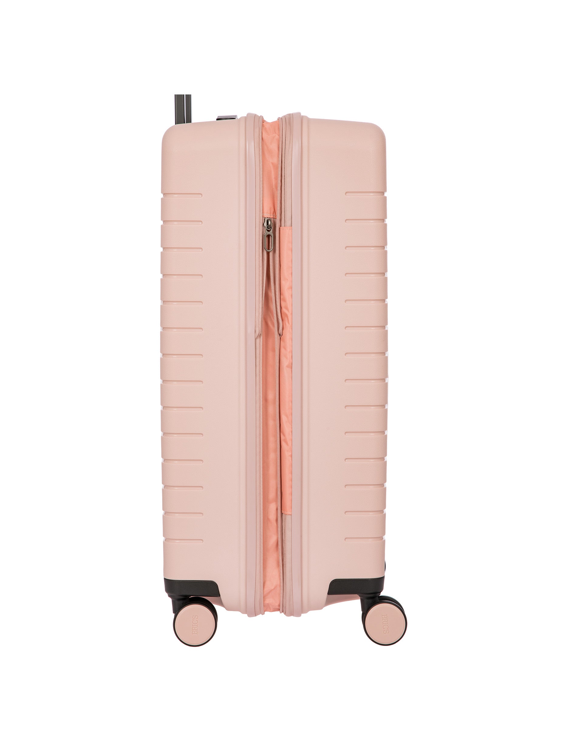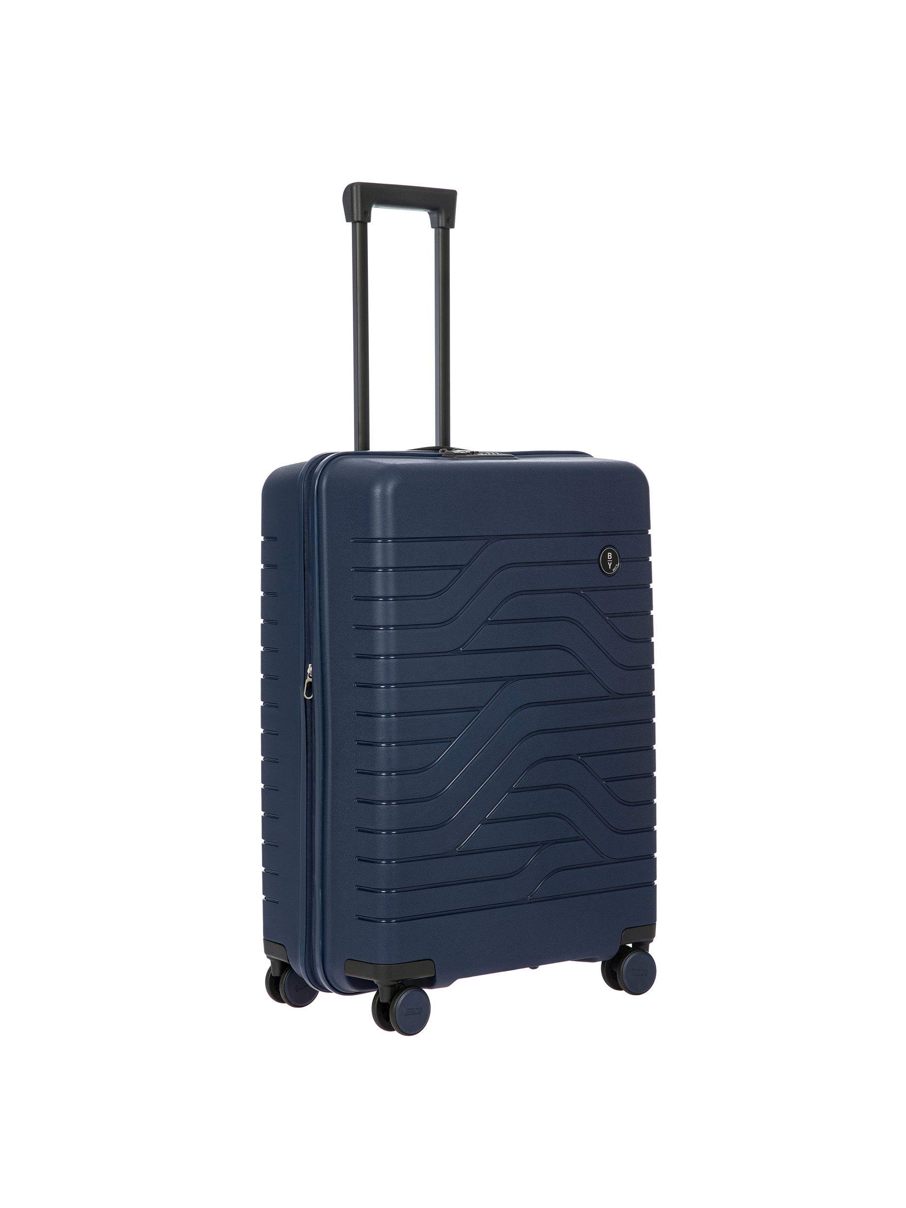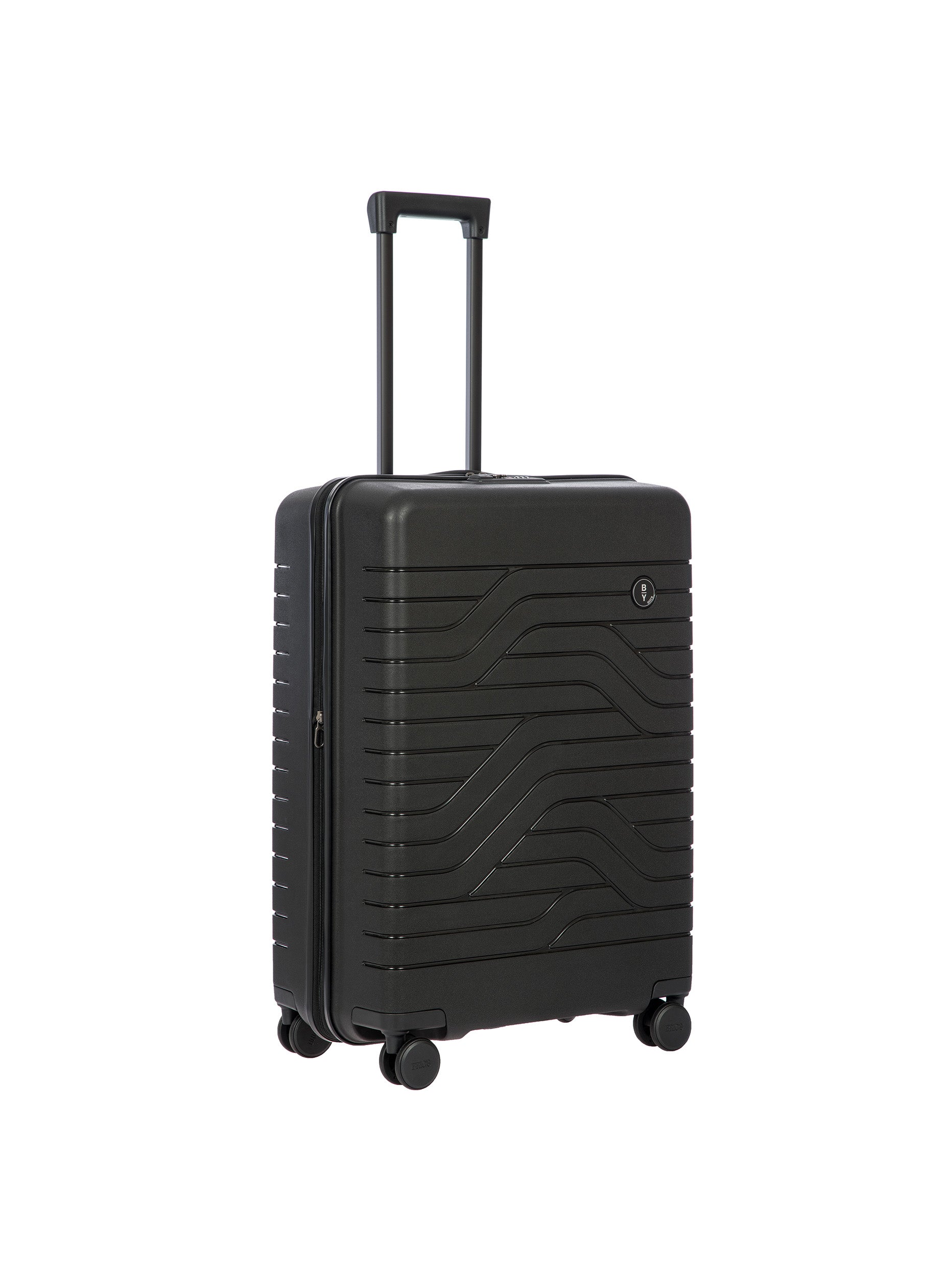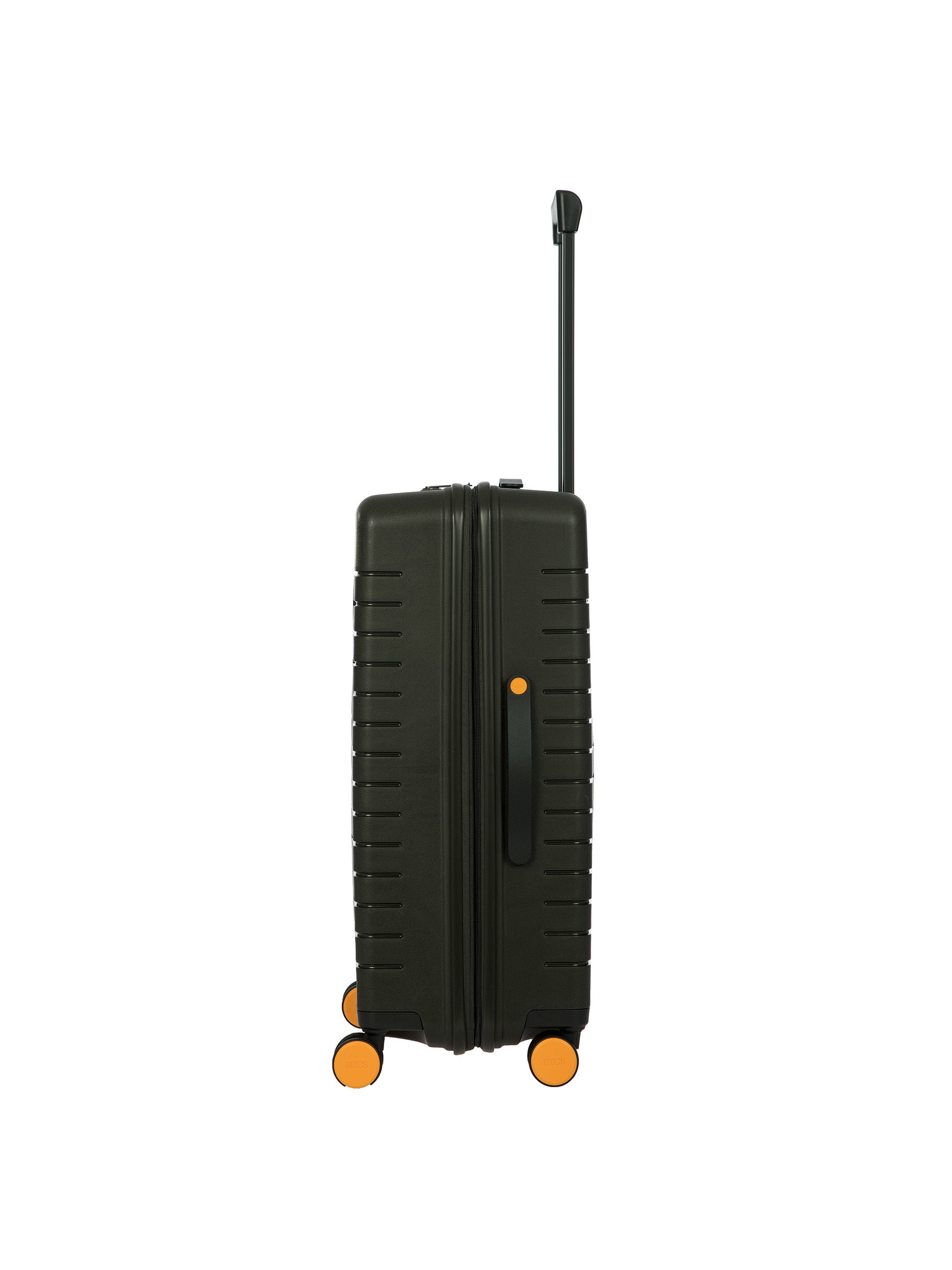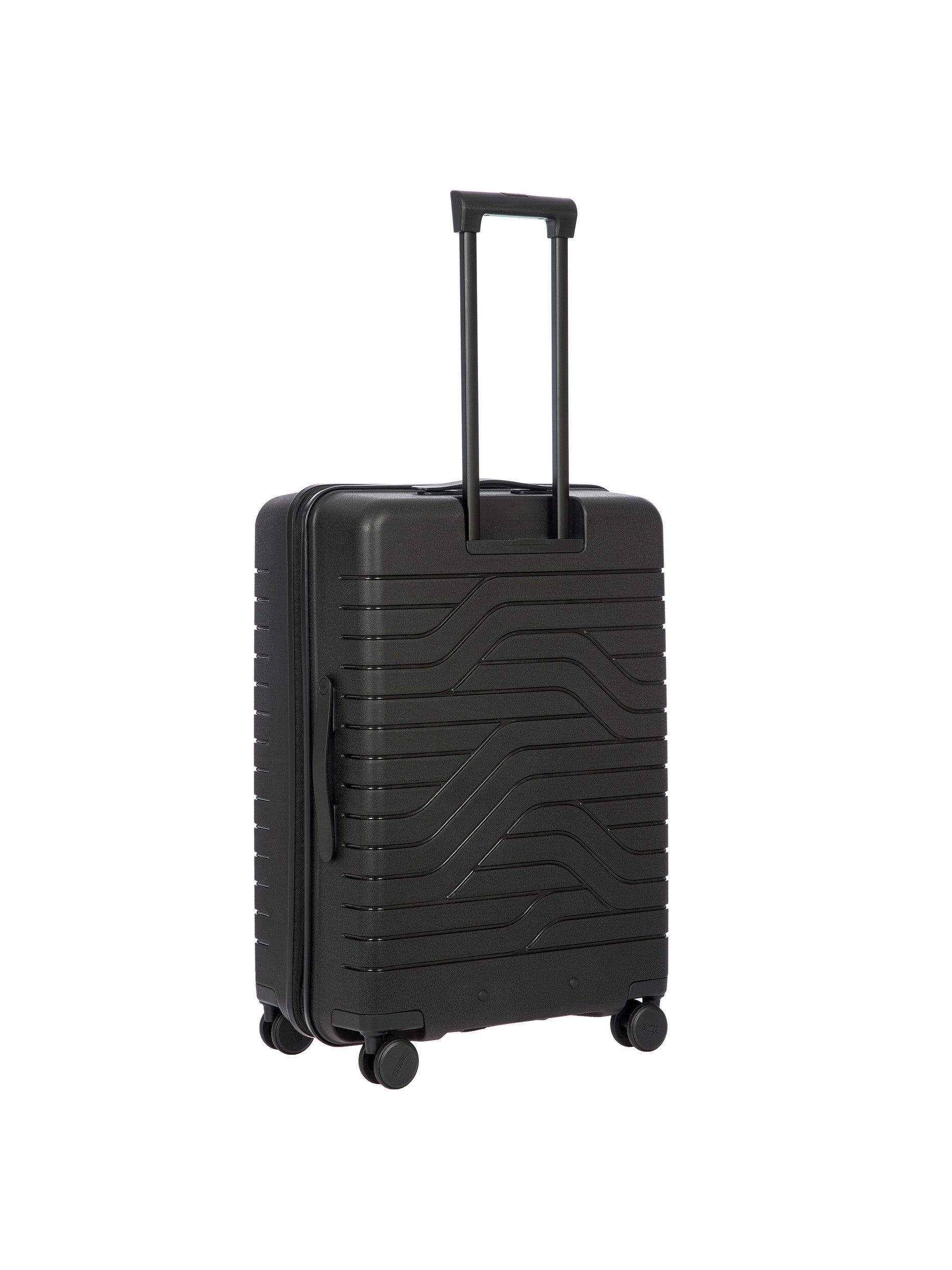 Erweiterbarer Hartschalen-Trolley in L Größe der Kollektion Ulisse B|Y. Die Außenschale im Urban Style und die versenkten Rollen machen den modernen Trolley zum perfekten Begleiter für jede Reise. AUẞEN: Schale aus Polypropylen für ein Maximum an Leichtigkeit, Flexibilität und Festigkeit. Das TSA-Schloss am Reißverschluss ist in die Schale integriert. Mit einem Reißverschluss lässt sich die Tiefe des Trolleys um 4 cm erweitern. GRIFF: bequemer und praktischer Ziehgriff mit Aluminiumrohren, per Drucktaste in drei Stufen einstellbar. Der obere und der seitliche Griff sind flach und ergonomisch. INNEN: innen gefüttert, zwei Fächer: Futter mit Reißverschluss und flacher Netztasche auf der einen Seite, Bänder mit Schnalle auf der anderen. Die separate Tasche mit Reißverschluss enthält einen abnehmbaren und waschbaren Beutel. ROLLEN: vier versenkte Doppelrollen zur Platzoptimierung, mit Bric's-Logo. Sie ermöglichen eine einfache und durch die Gummierung absolut geräuscharme 360°-Drehung. DETAILS: Das äußere Design zeichnet sich durch ein glänzendes Flachrelief im Urban Style aus, das mit der matten Farbe der Schale kontrastiert. Logodetails B|Y an den Tragegriffen, farblich abgestimmt auf die Schalenfarbe.