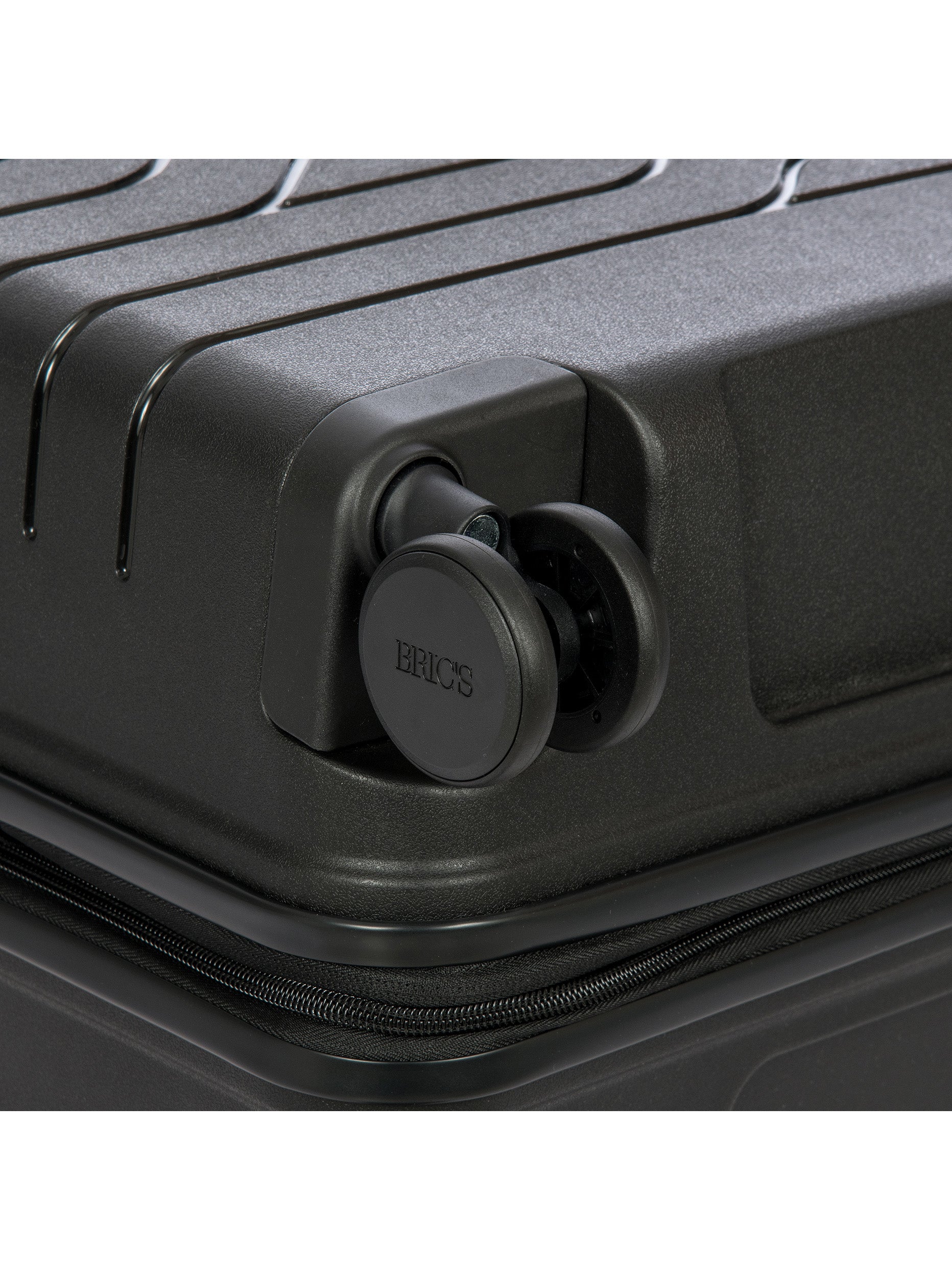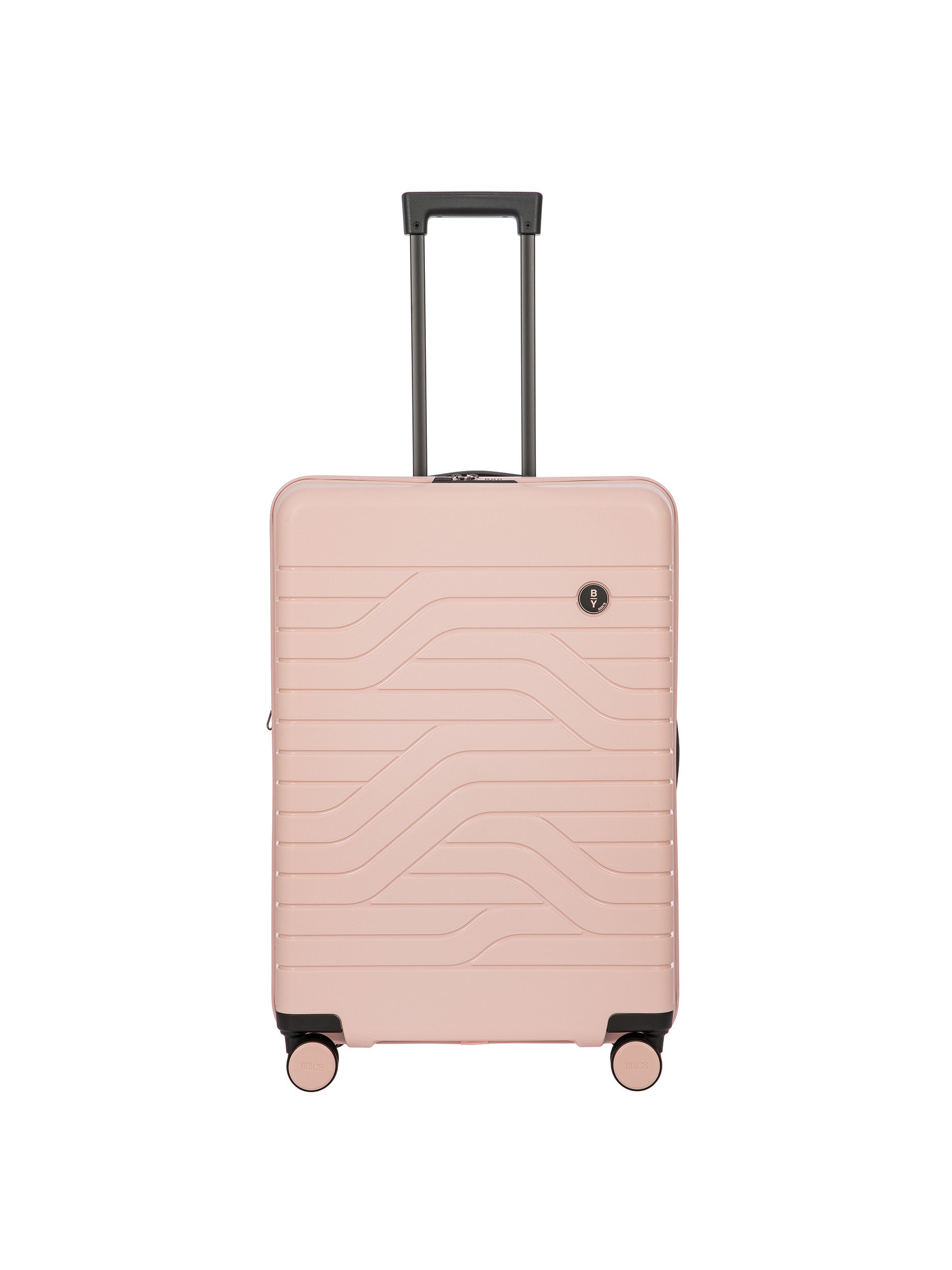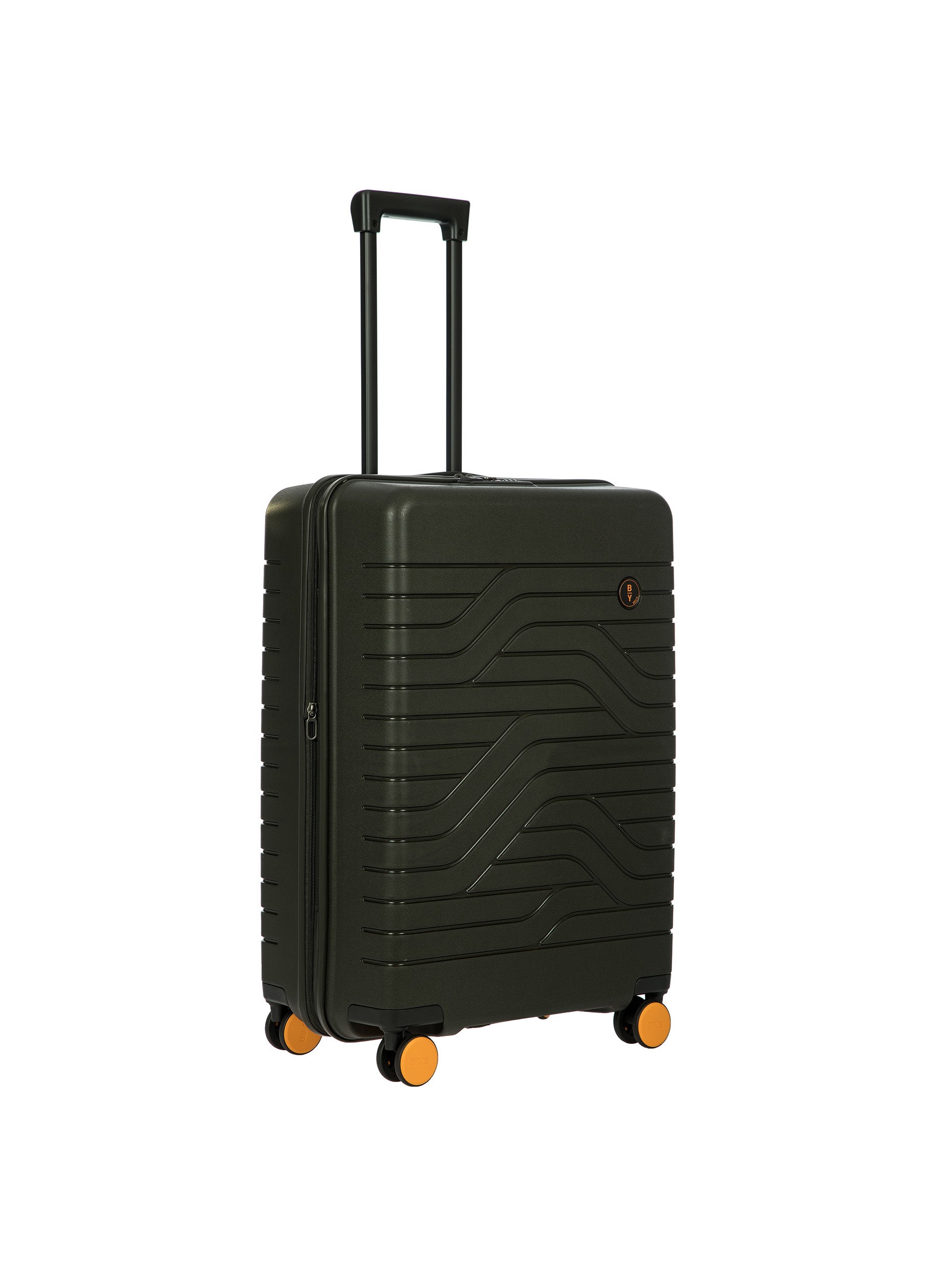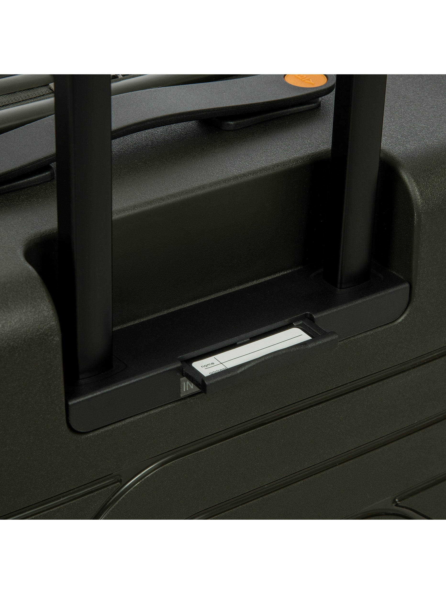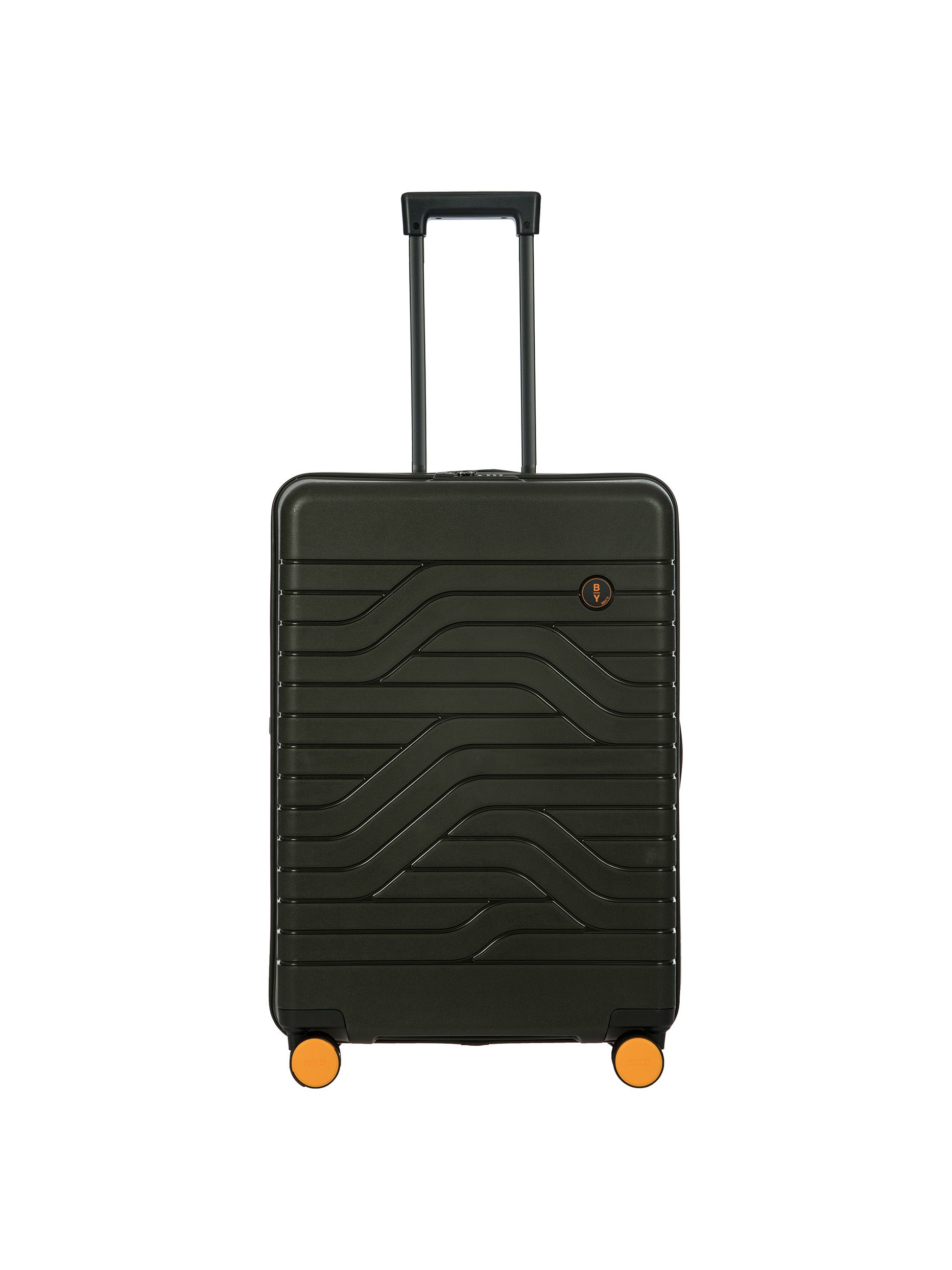Erweiterbarer Hartschalen-Trolley in L Größe der Kollektion Ulisse B|Y. Die Außenschale im Urban Style und die versenkten Rollen machen den modernen Trolley zum perfekten Begleiter für jede Reise. AUẞEN: Schale aus Polypropylen für ein Maximum an Leichtigkeit, Flexibilität und Festigkeit. Das TSA-Schloss am Reißverschluss ist in die Schale integriert. Mit einem Reißverschluss lässt sich die Tiefe des Trolleys um 4 cm erweitern. GRIFF: bequemer und praktischer Ziehgriff mit Aluminiumrohren, per Drucktaste in drei Stufen einstellbar. Der obere und der seitliche Griff sind flach und ergonomisch. INNEN: innen gefüttert, zwei Fächer: Futter mit Reißverschluss und flacher Netztasche auf der einen Seite, Bänder mit Schnalle auf der anderen. Die separate Tasche mit Reißverschluss enthält einen abnehmbaren und waschbaren Beutel. ROLLEN: vier versenkte Doppelrollen zur Platzoptimierung, mit Bric's-Logo. Sie ermöglichen eine einfache und durch die Gummierung absolut geräuscharme 360°-Drehung. DETAILS: Das äußere Design zeichnet sich durch ein glänzendes Flachrelief im Urban Style aus, das mit der matten Farbe der Schale kontrastiert. Logodetails B|Y an den Tragegriffen, farblich abgestimmt auf die Schalenfarbe.