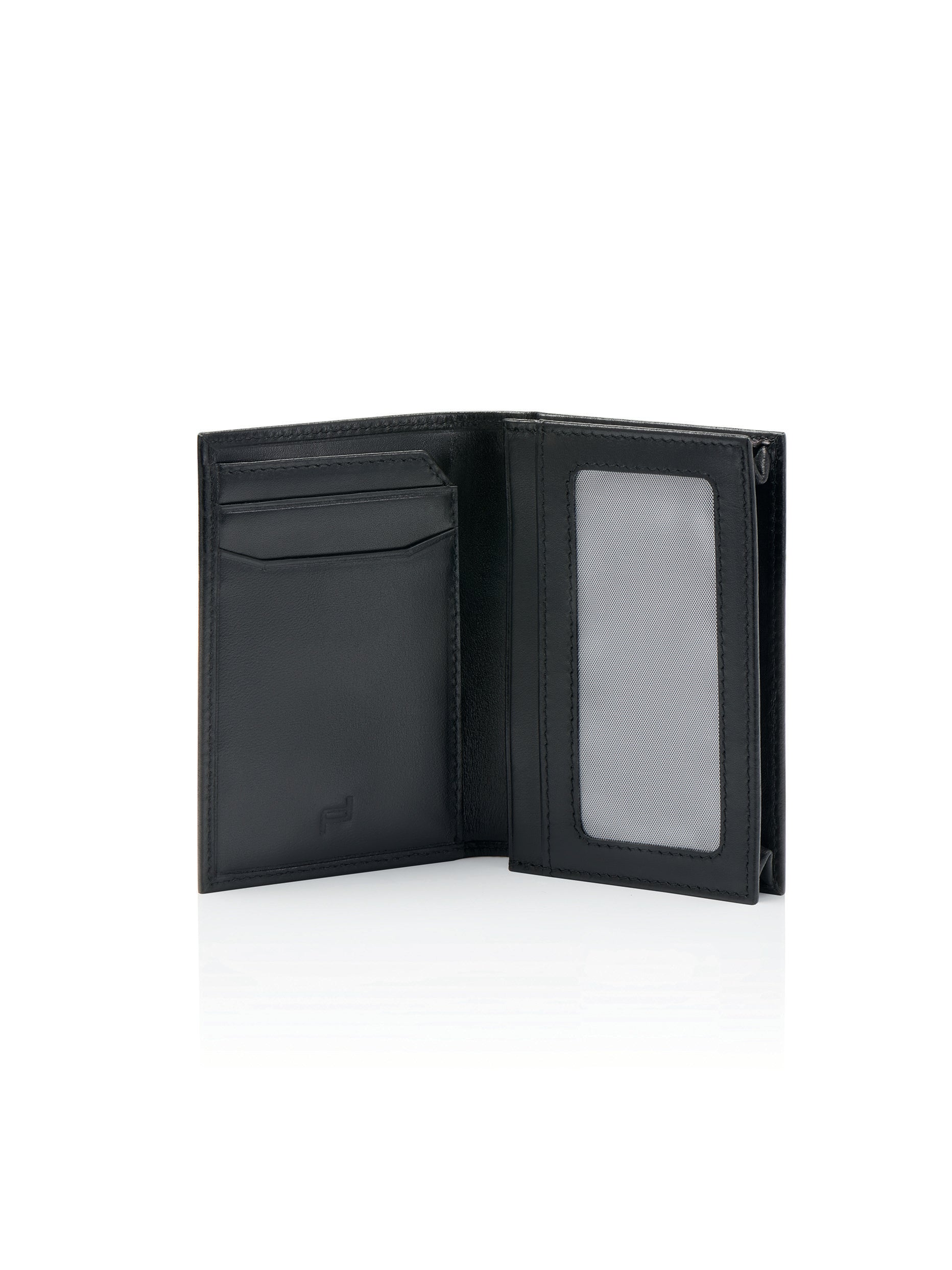 Glattes Kalbsleder. Futter: Polyestergewebe mit heiß bedrucktem Porsche Design Icon Logo auf schwarzer Farbe.. Reinigen Sie den befleckten Bereich vorsichtig mit einem trockenen Tuch. Verwenden Sie bei fettigen oder anhaltenden Flecken eine kleine Menge neutrales Wachs oder ein Lederreinigungsmittel auf einem Tuch und reiben Sie es vorsichtig ein. Dann mit einem s