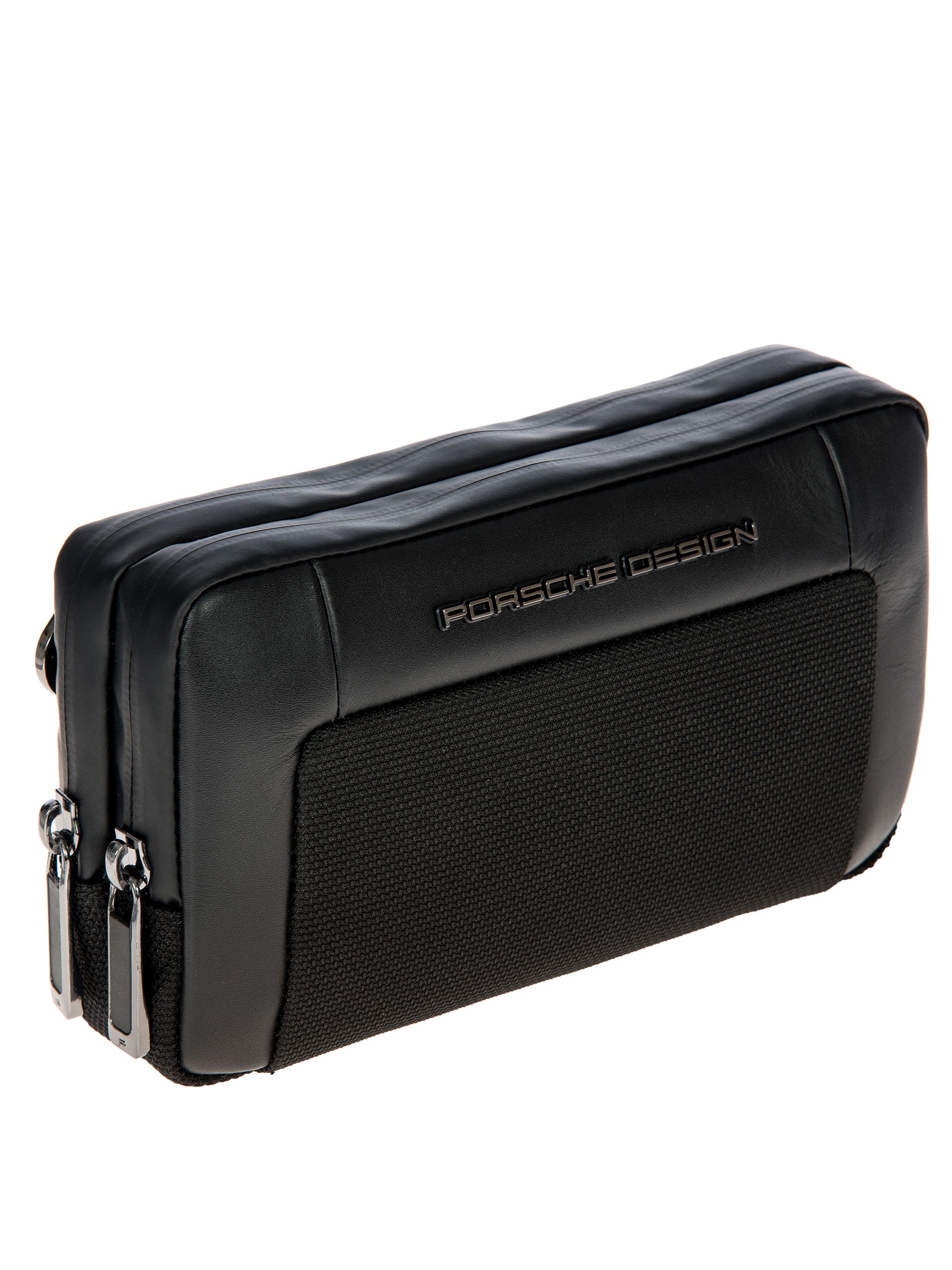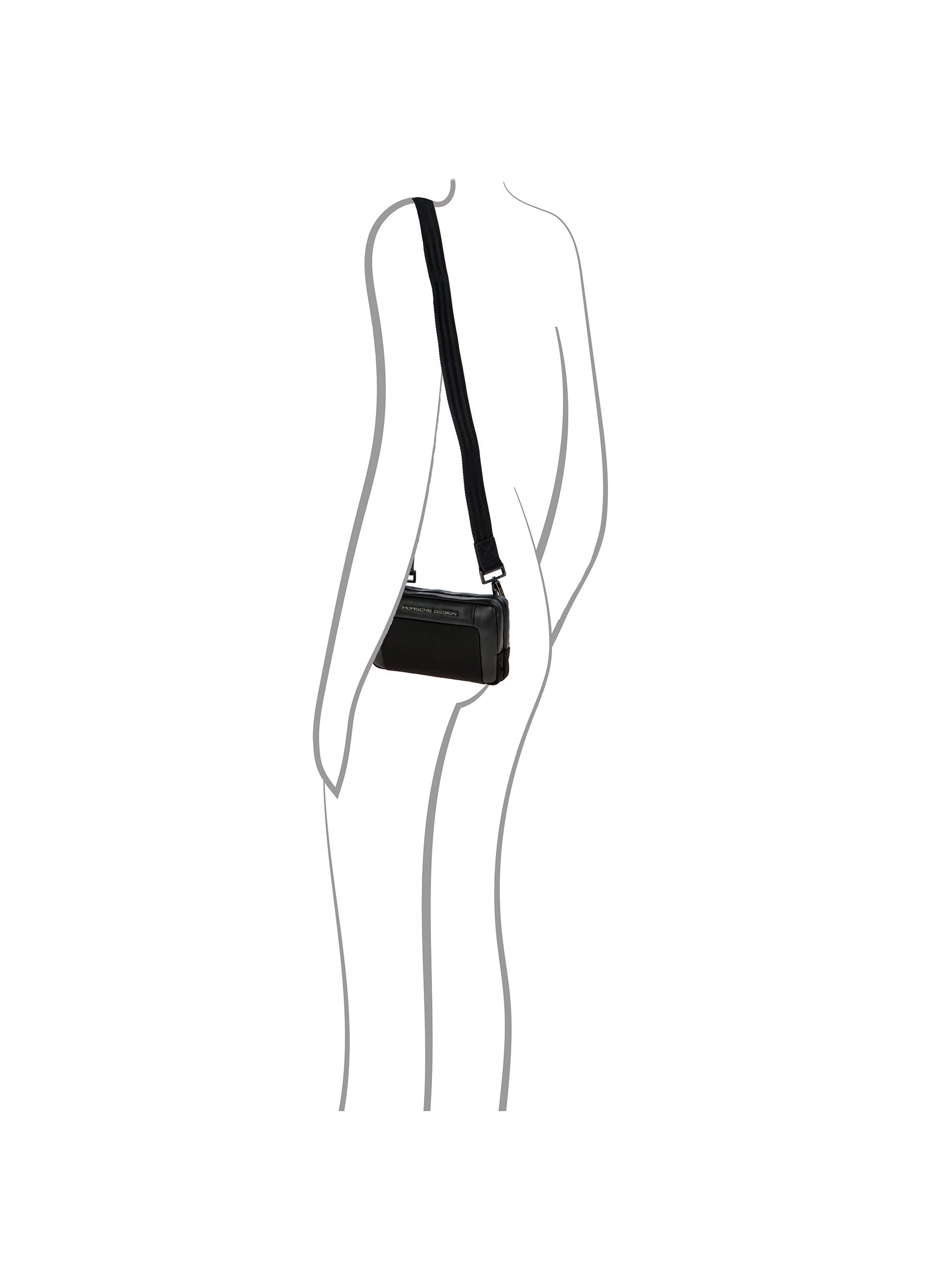 The Porsche Design Roadster Nylon Collection impresses with its intelligent functionality and an exclusive, technical design. The combination of structured, water-repellent nylon and significant smooth leather details makes the Porsche Design Roadster Nylon Travel Pouch not just a visual highlight, but also extremely wear-resistant. The small, modern bag for men was designed to be the perfect travel companion: its compact format with two zippered main compartments offers space for all your travel essentials such as smart phone, wallet and passport. Several card slots and an additional zippered compartment inside provide optimal organization even for small items. It also offers flexibility in terms of how you wear it: thanks to the removable carabiner belt and handle strap on the back, the small travel bag can be worn around the hips or as a crossbody bag or it can be carried in the hand.