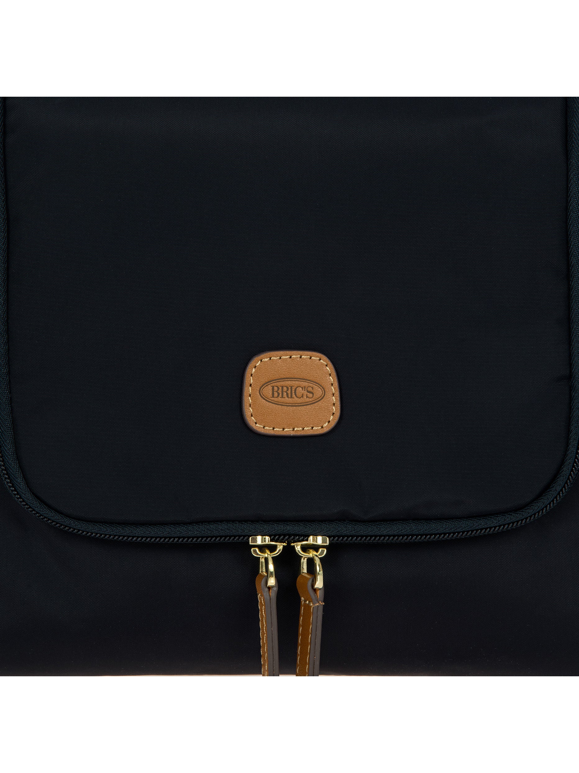 The multi-pocket briefcase from the X-Collection is made of soft recycled fabric that is lightweight, robust and water-resistant. The spacious but compact shape offers maximum functionality. The main opening features a double-slider zip. The interior is equipped with numerous pockets for optimum organisation of all personal accessories. There is a convenient handle on the top. Thanks to the practical hook it is also possible to hang the briefcase to save space. Embellished with genuine leather details, a hallmark of Bric's.