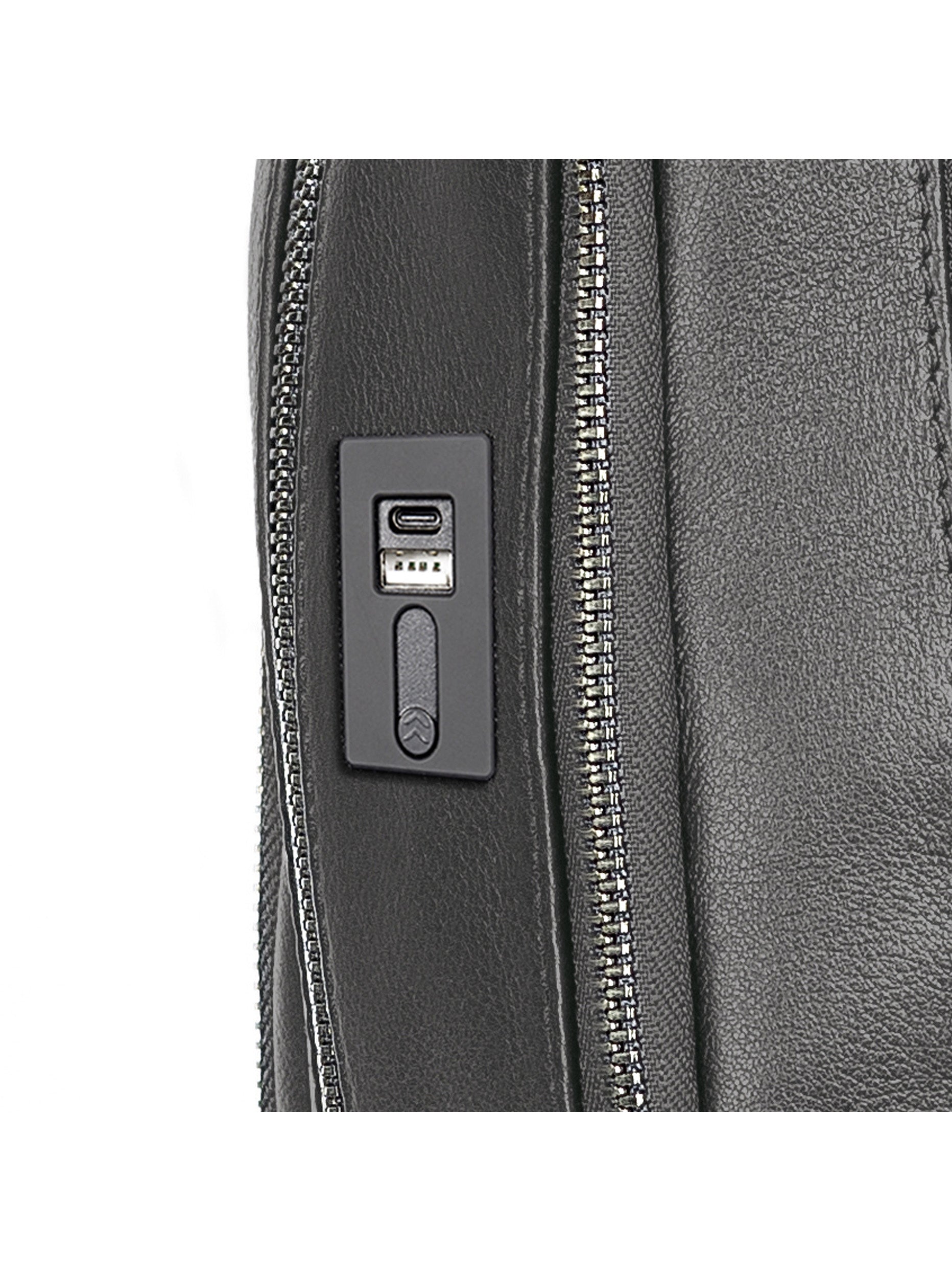 • Separate front compartment with business organizer and USB plug-in and side pockets