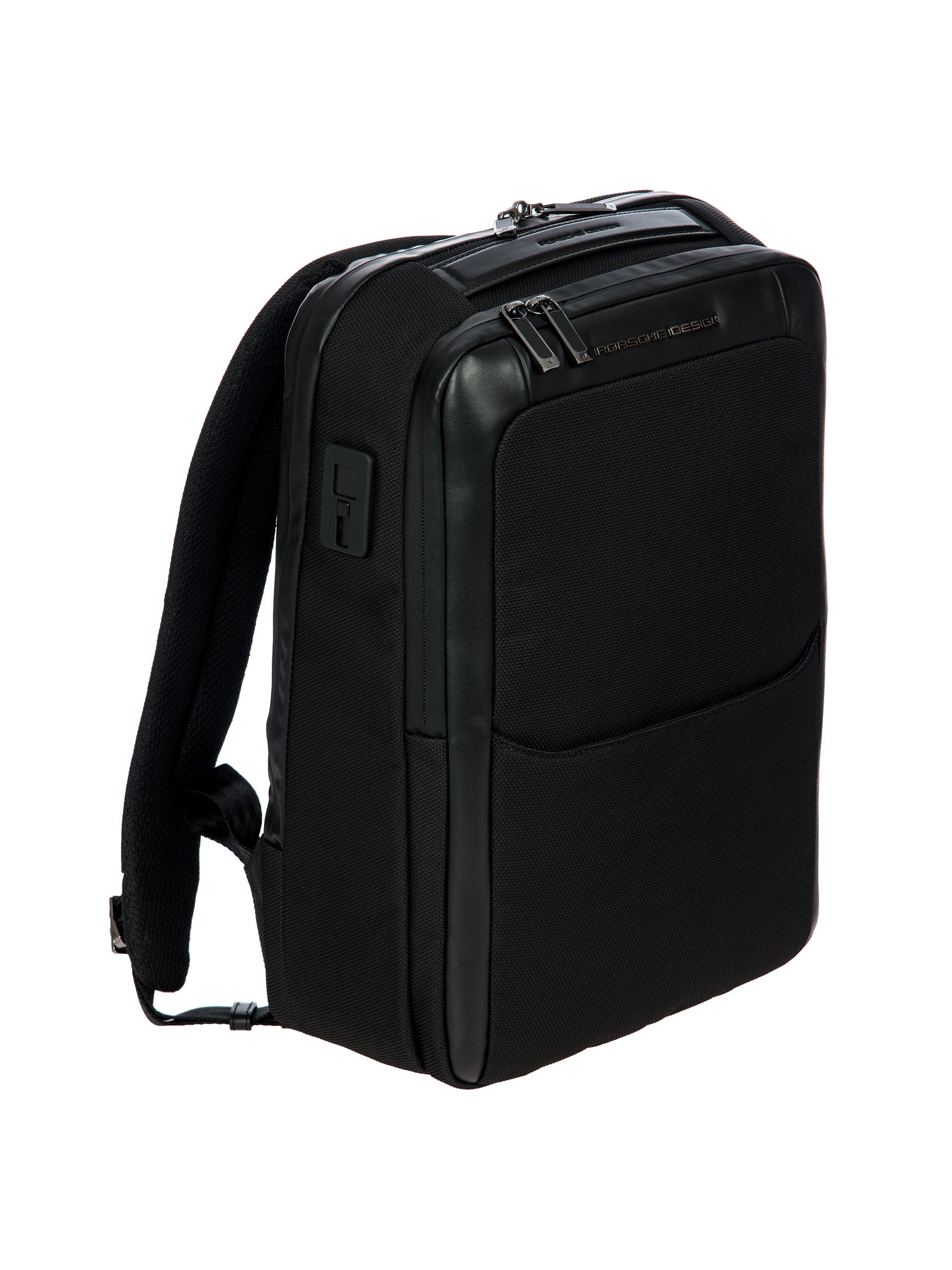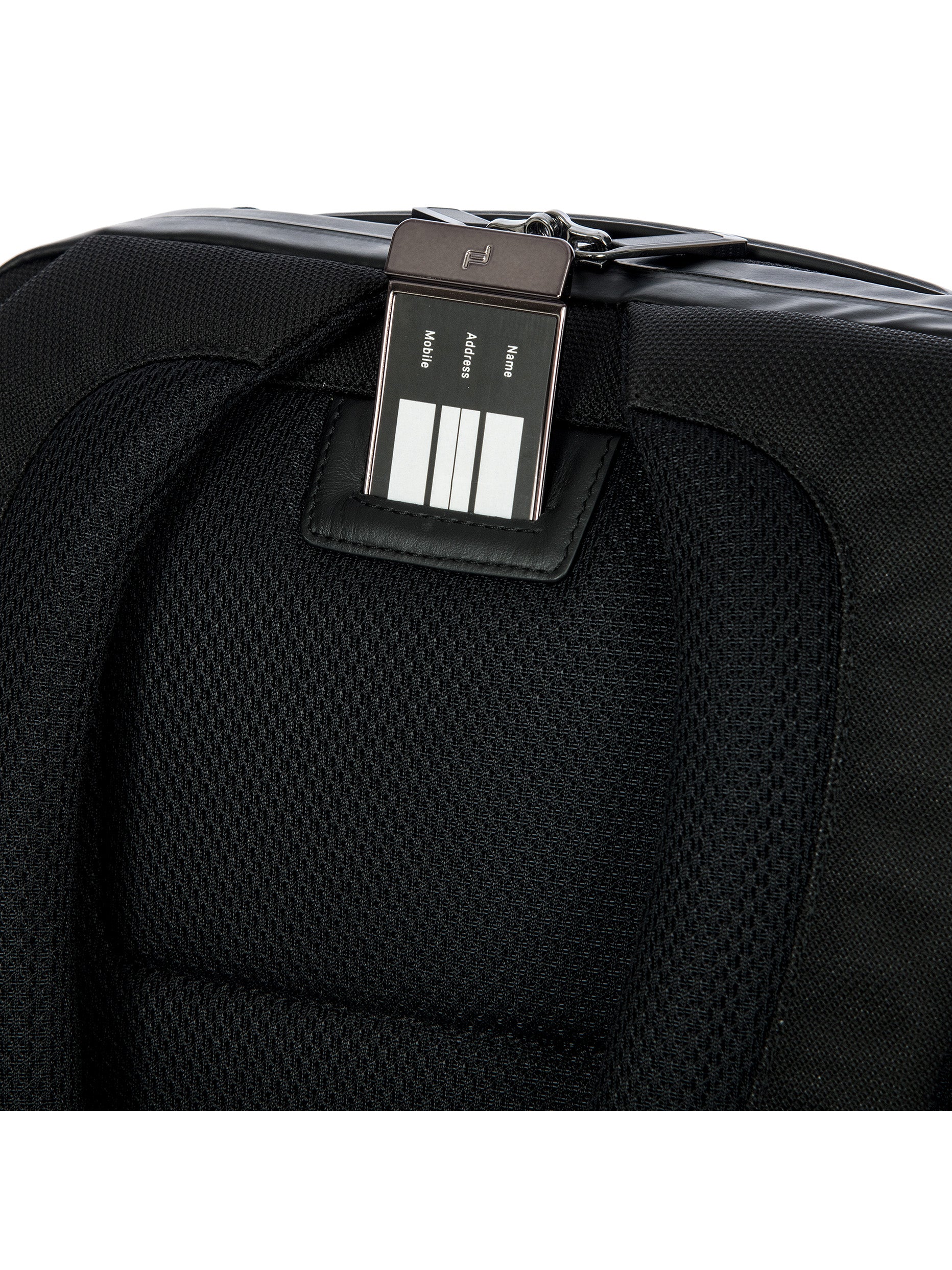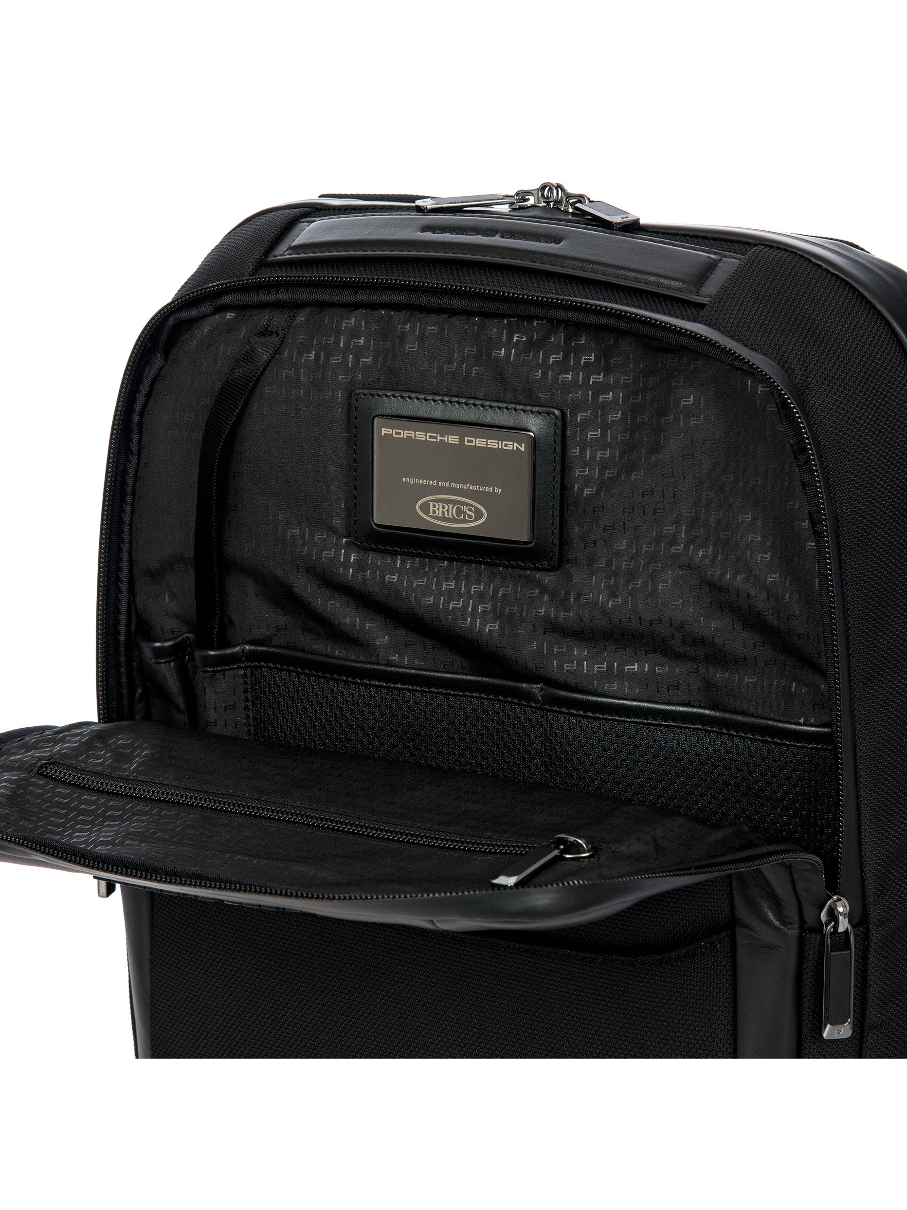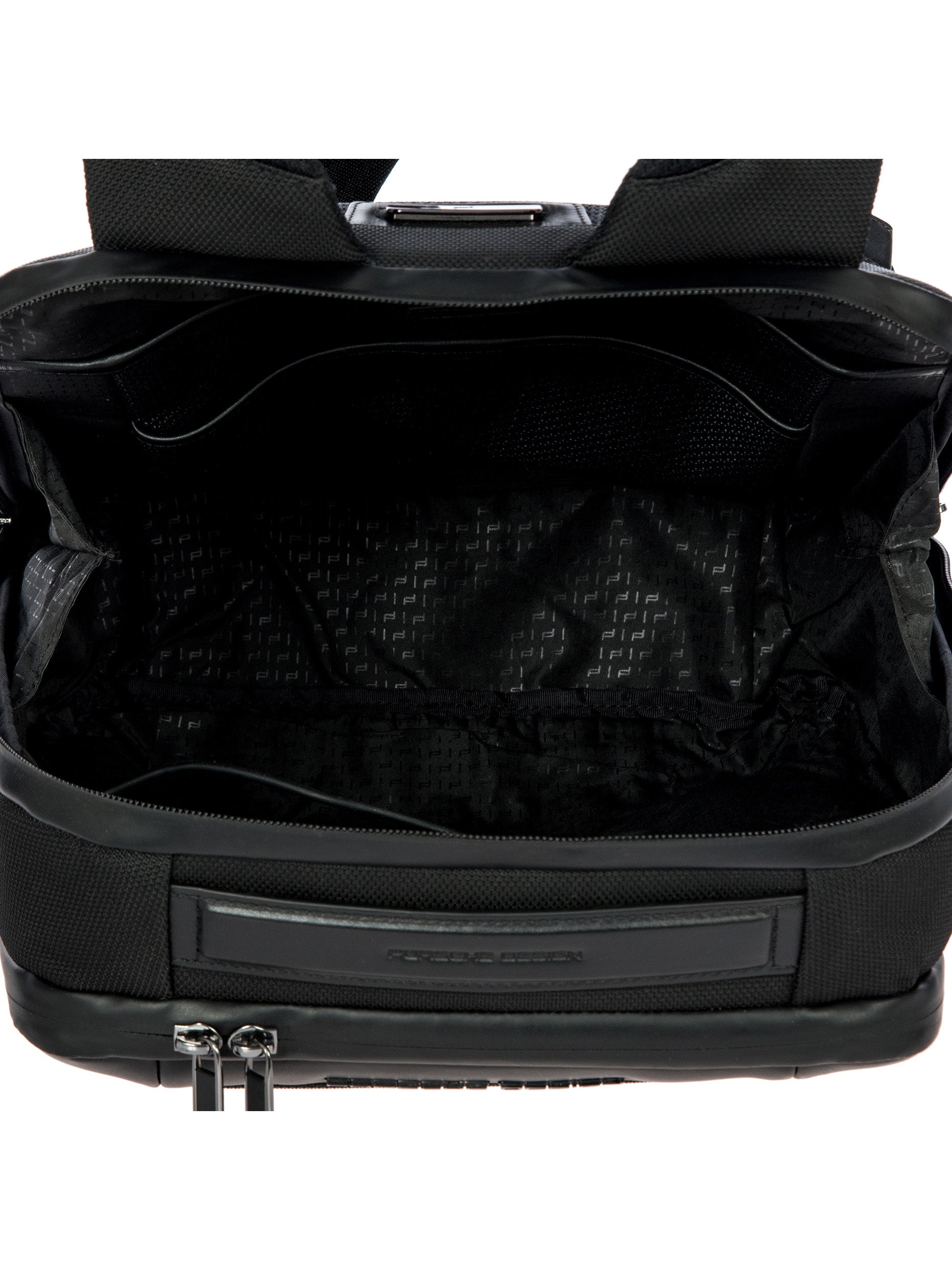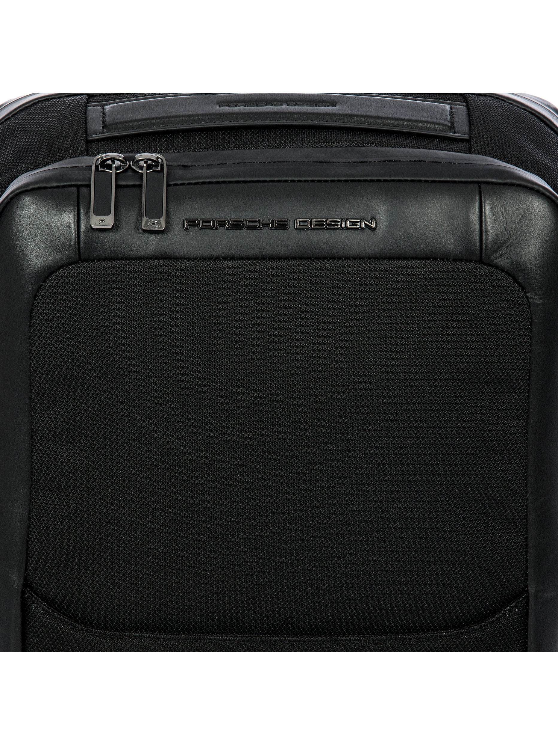 Porsche Design technical nylon fabric with PVC backing, with genuine calf leather and metal details. Lining: polyester fabric with heat printed Porsche Design icon logo on black color.. Clean delicately the stained area with a so and dry cloth. In case of greasy or persistent stain, use a small quantity of gentle degreaser. Do not use benzene or alcohol based products. Avoid ironing.