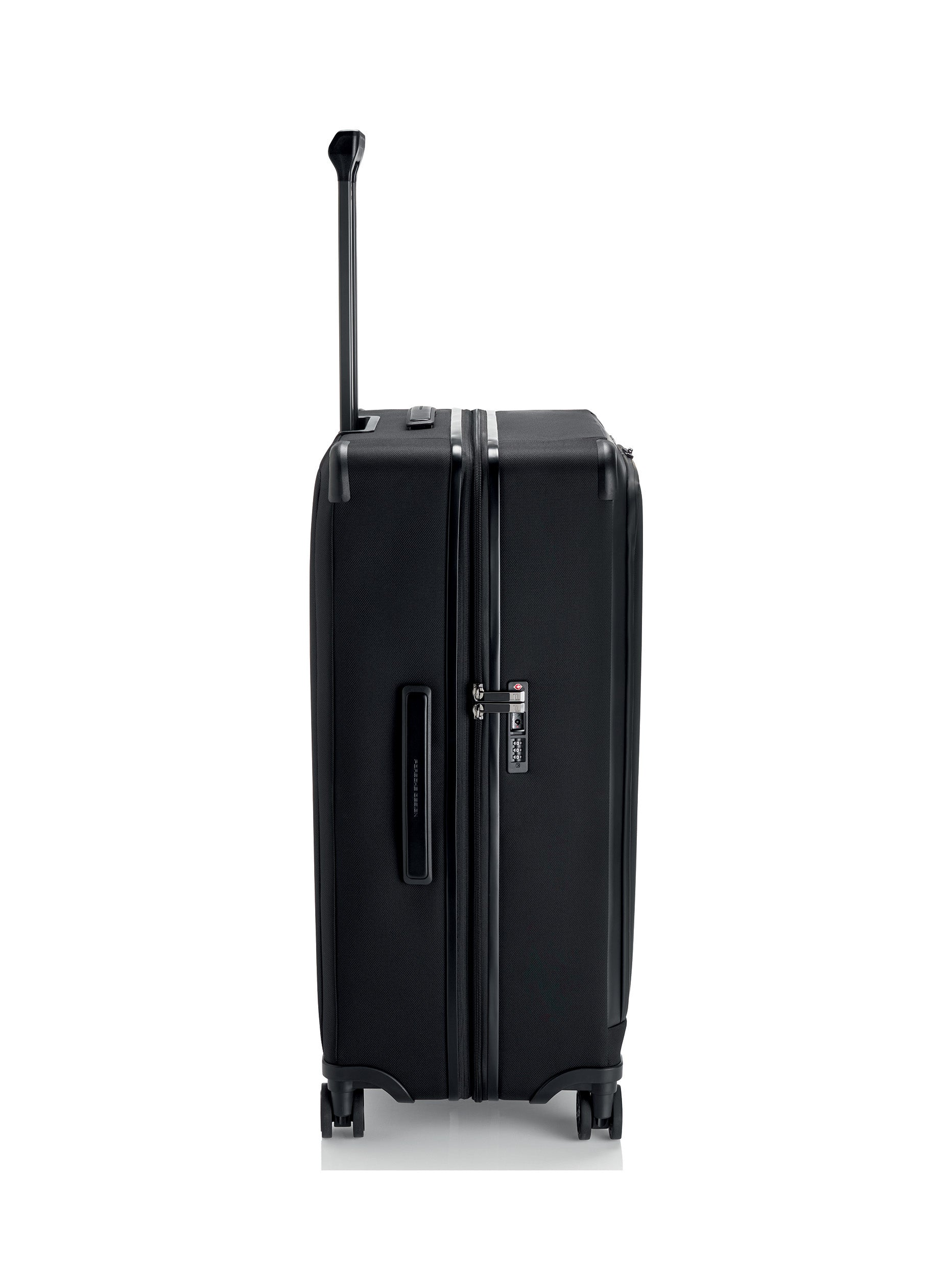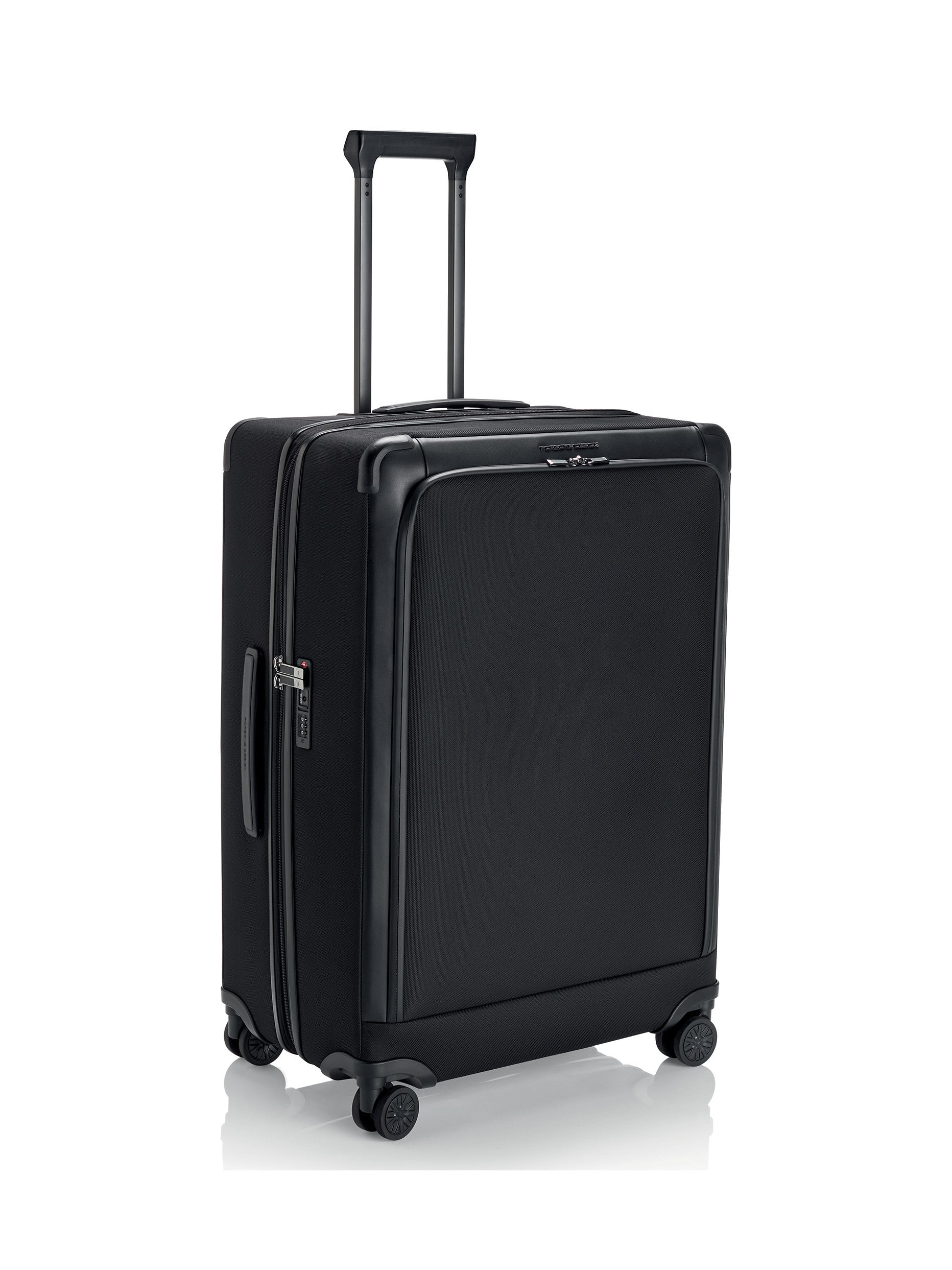 Made to meet demands: the Roadster Nylon Collection is particularly impressive thanks to its modern mix of materials, versatile and sophisticated details – including real leather – and optimum functionality. The large trolley is perfect when travelling. Its spacious interior with separating straps and packing divider can be expanded with a second zip and offers plenty of space for clothing, toiletries bags and more. Valuables and smaller essentials can be stored in the additional front pocket, which features a business organiser. Particularly quiet wheels, a high-quality handle system and additional handles on the side and the top ensure maximum comfort when on the go. The protection pad on the trolley's impact-resistant upper corners protects it from damage.