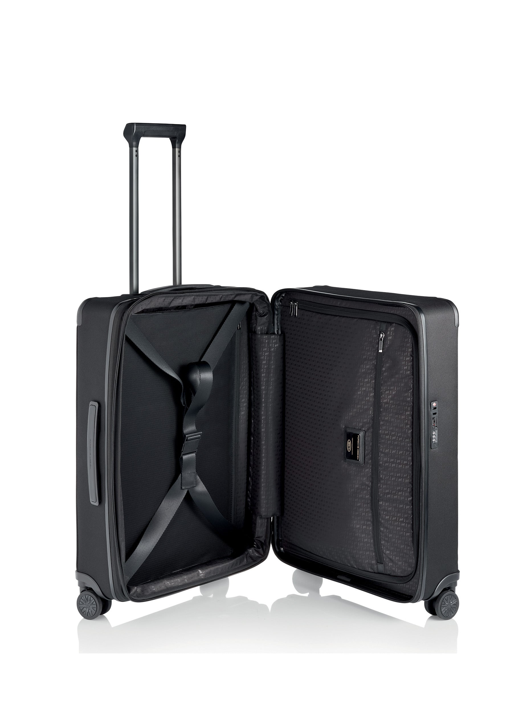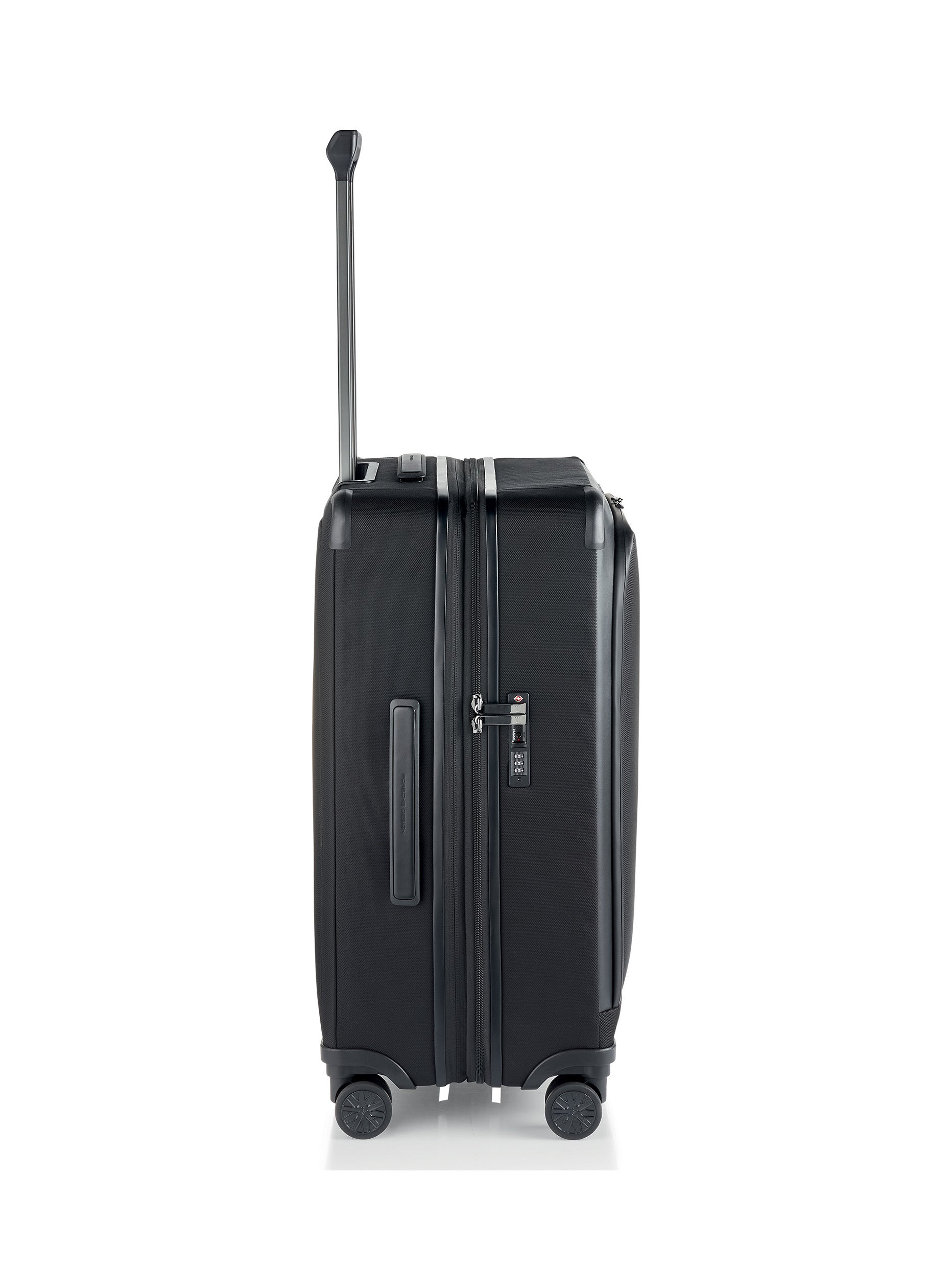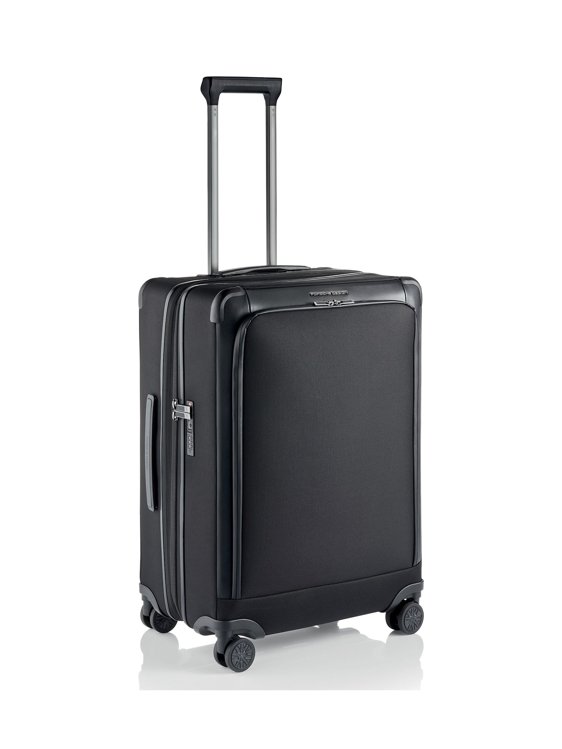 Made to meet demands: the Roadster Nylon Collection is particularly impressive thanks to its modern mix of materials, versatile and sophisticated details – including real leather – and optimum functionality. The medium-sized trolley is perfect when travelling. Its spacious interior with separating straps and packing divider can be expanded with a second zip and offers plenty of space for clothing, toiletries bags and more. Valuables and smaller essentials can be stored in the additional front pocket, which features a business organiser. Particularly quiet wheels, a high-quality handle system and additional handles on the side and the top ensure maximum comfort when on the go. The protection pad on the trolley's impact-resistant upper corners protects it from damage.
