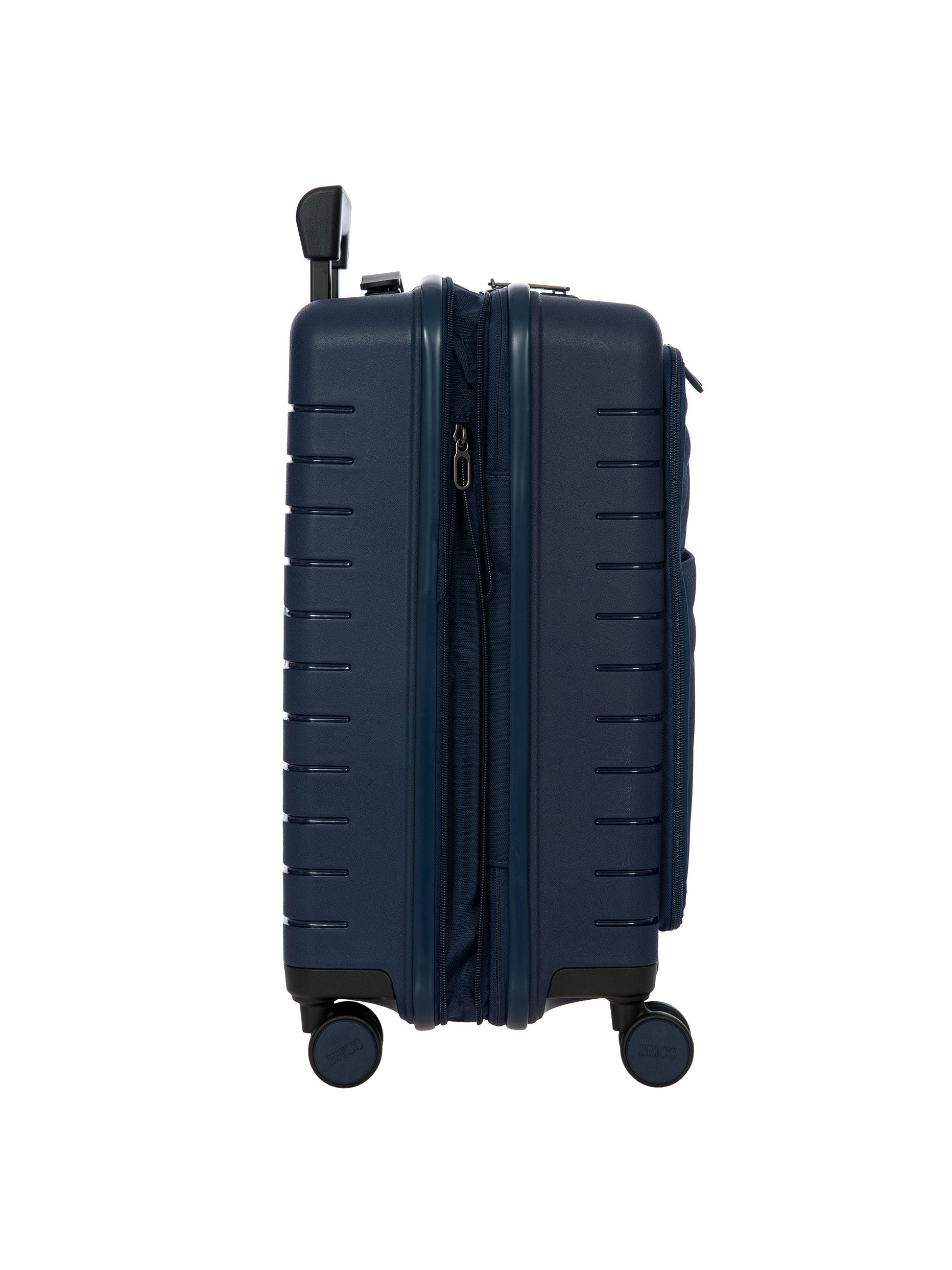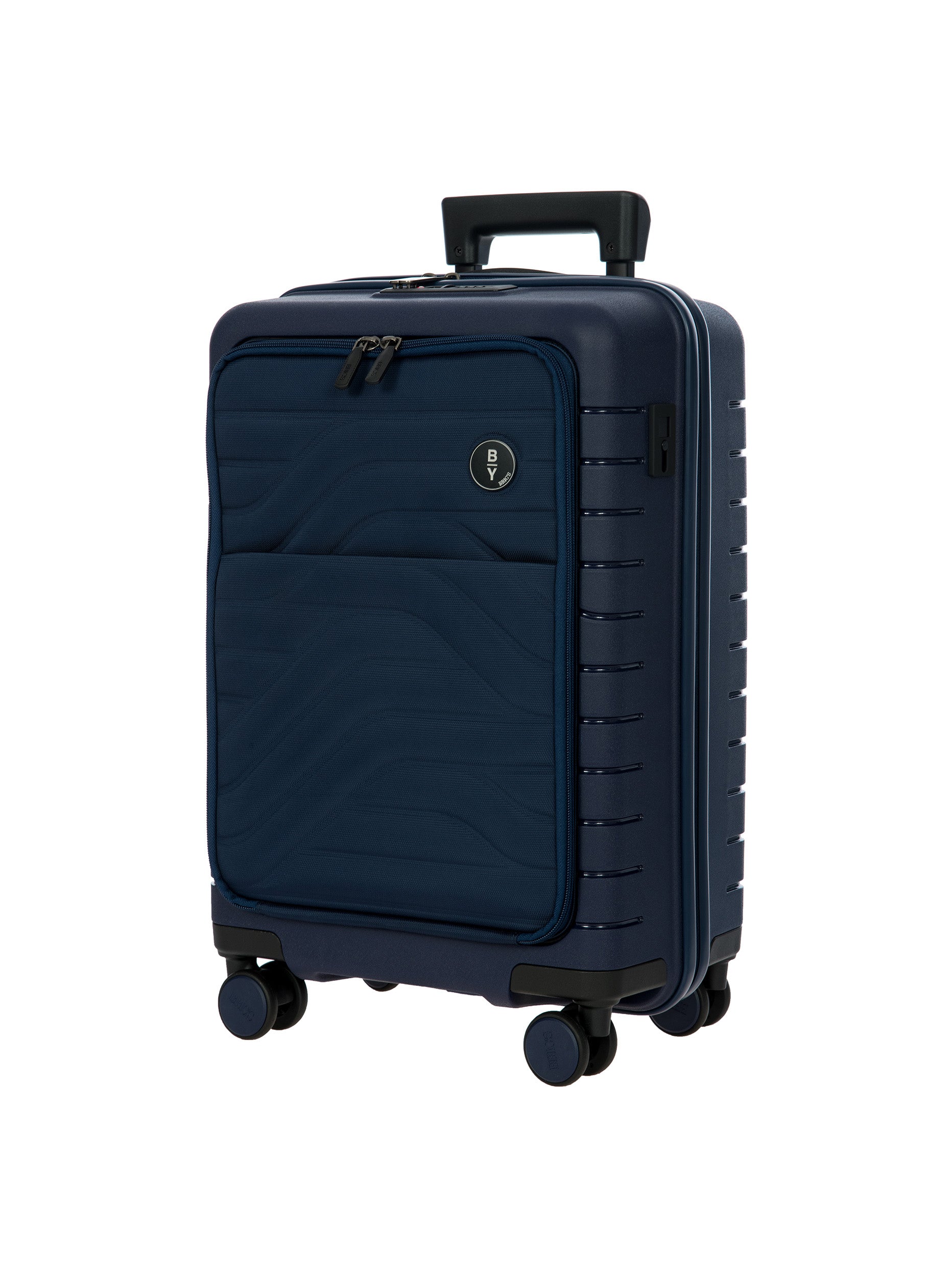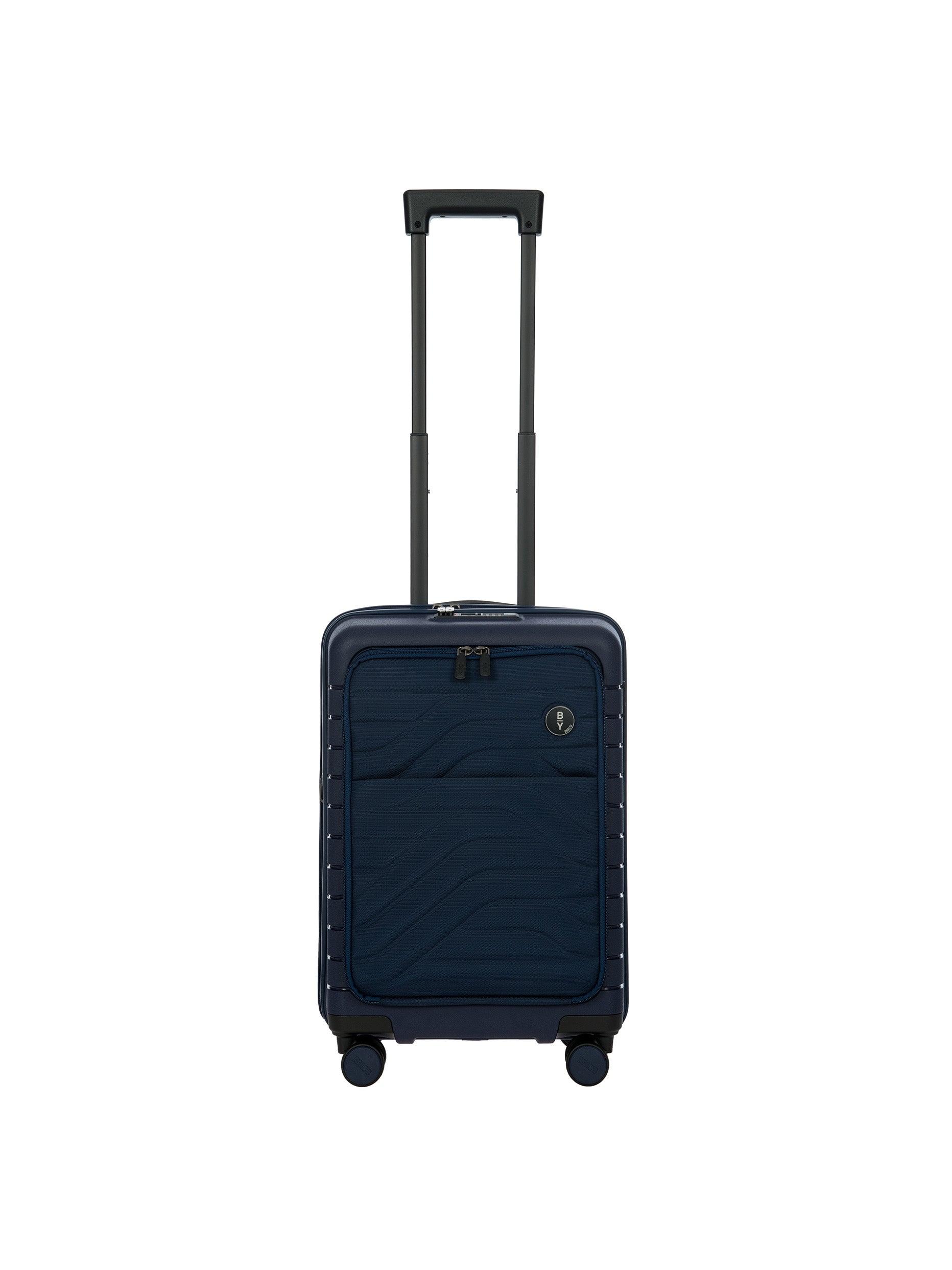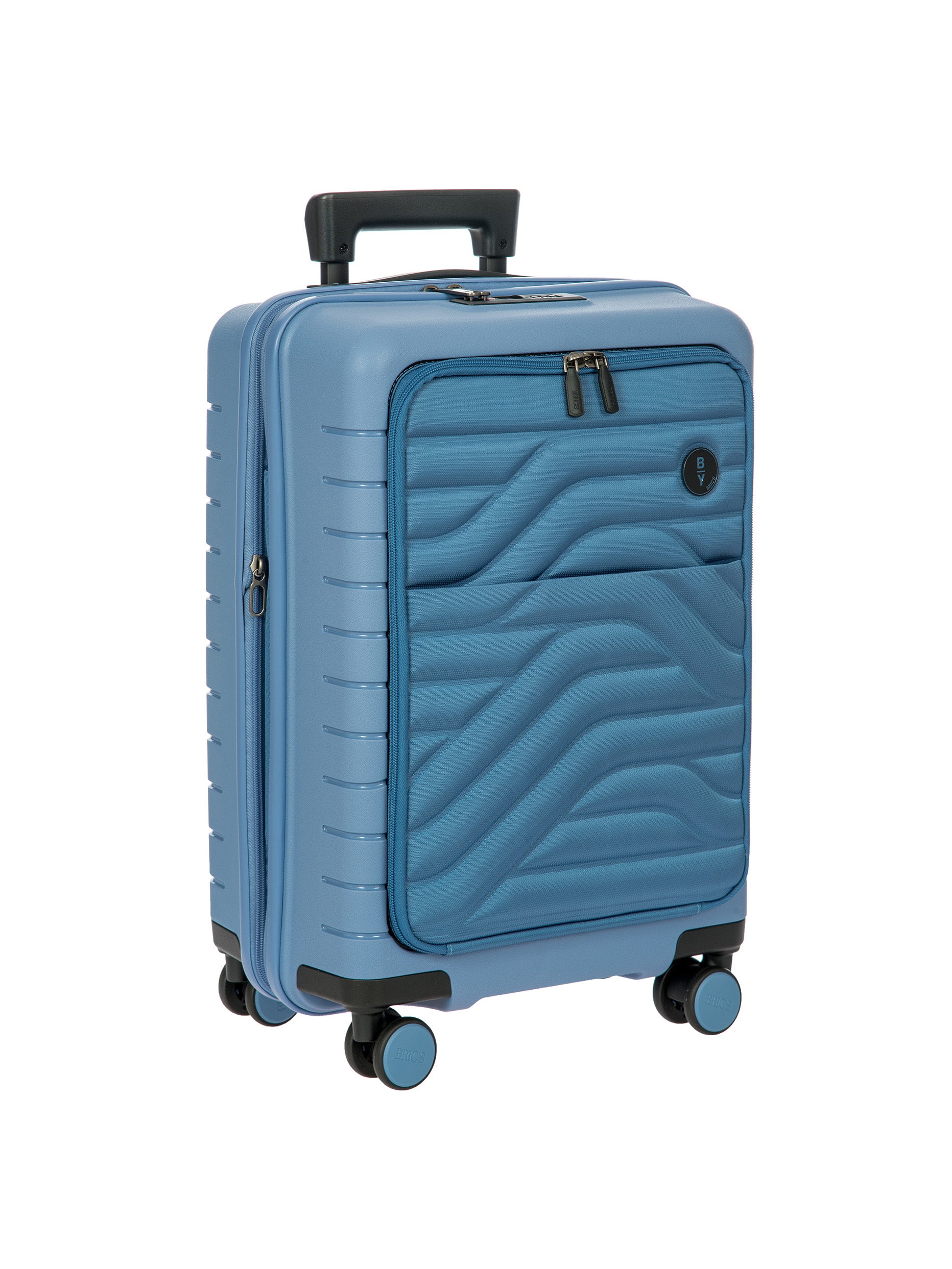This expandable carry-on trolley with a pocket is part of the Ulisse B|Y collection. Practical but with a modern look, this suitcase with a pocket is ideal when travelling for work and even when on holiday. It ensures durability and sophisticated design thanks to the combination of a robust polypropylene shell and the soft yet hard-wearing fabric of the front pocket, which conceals a laptop/tablet sleeve complete with a protective band.