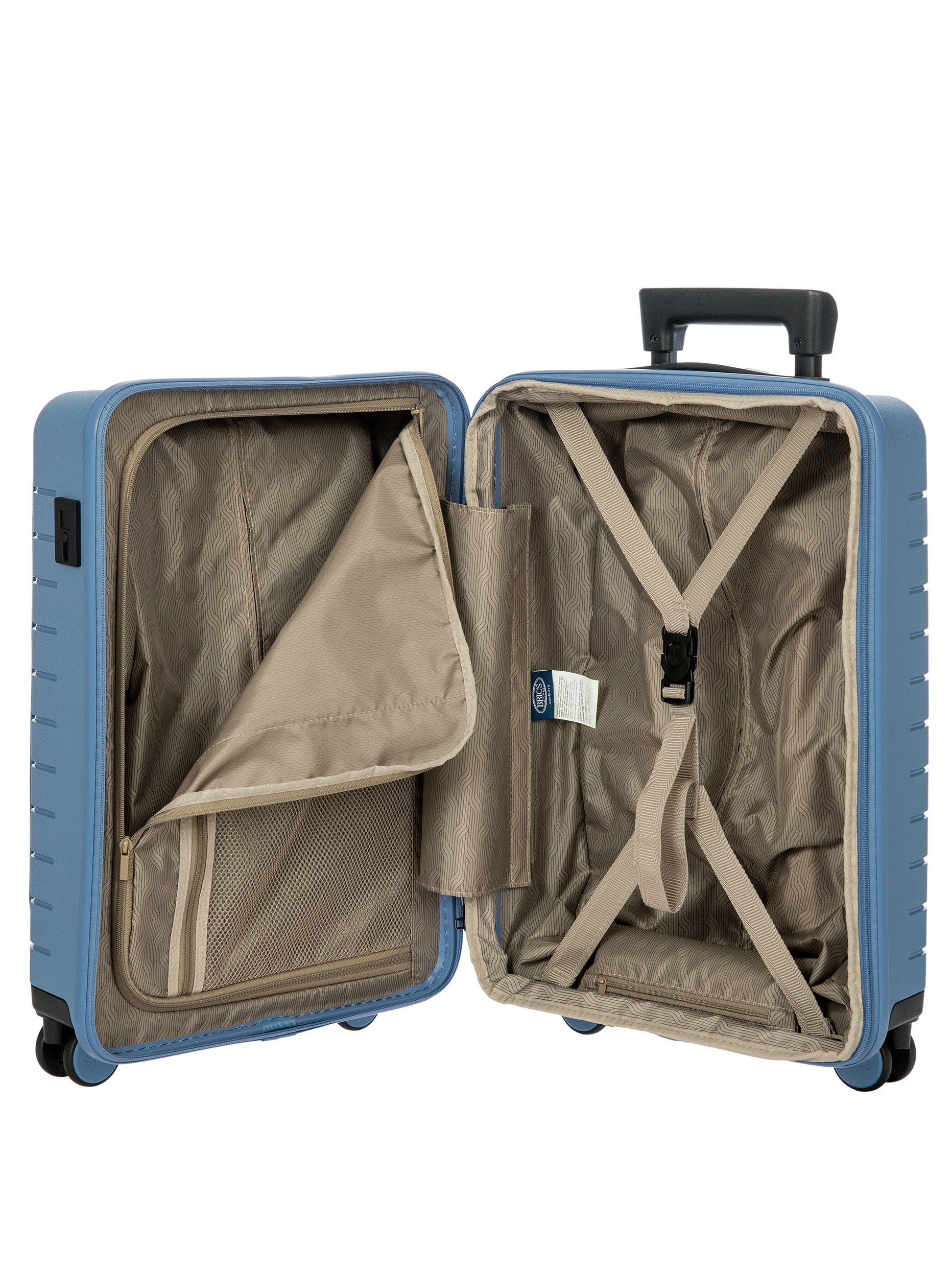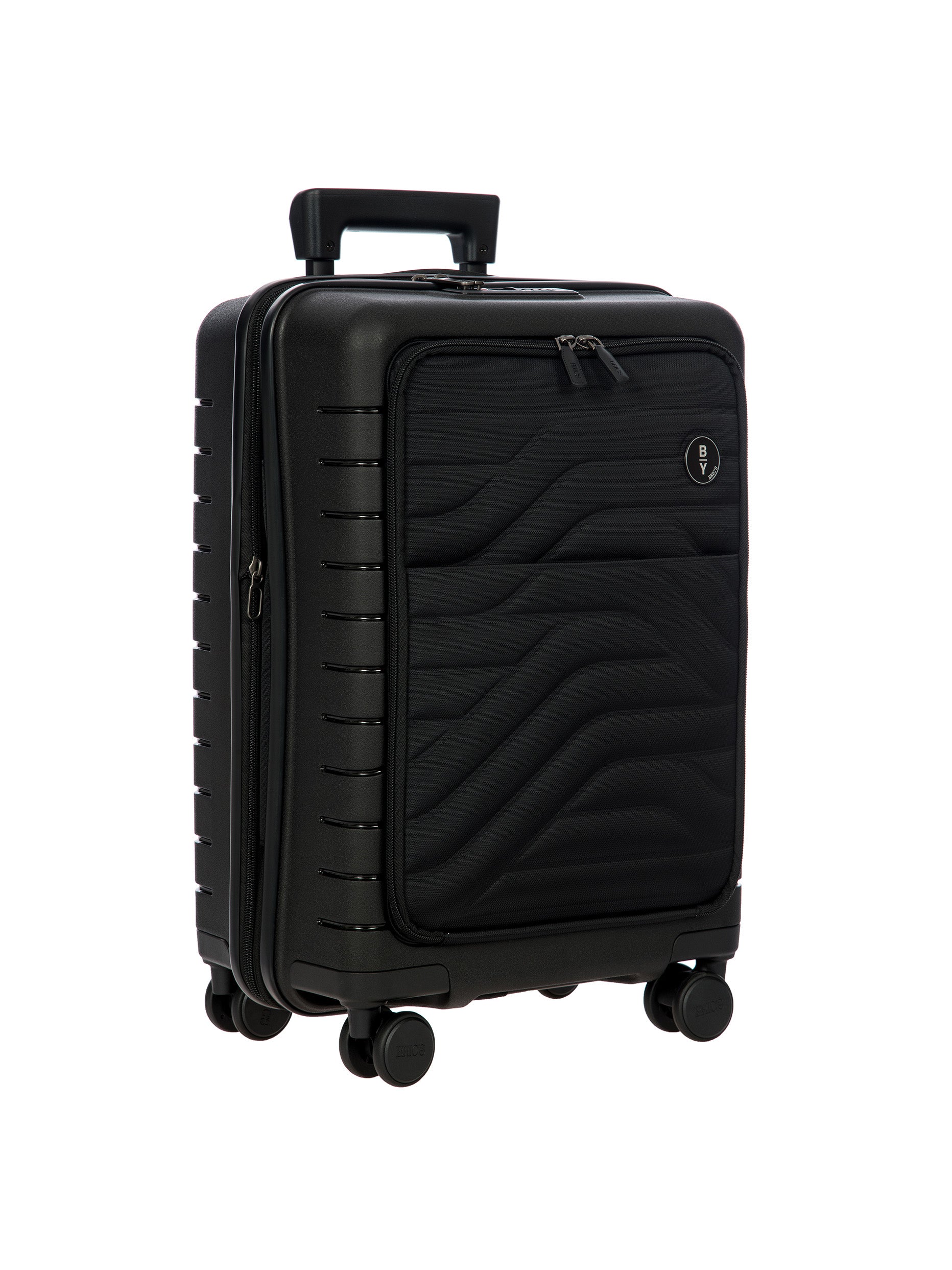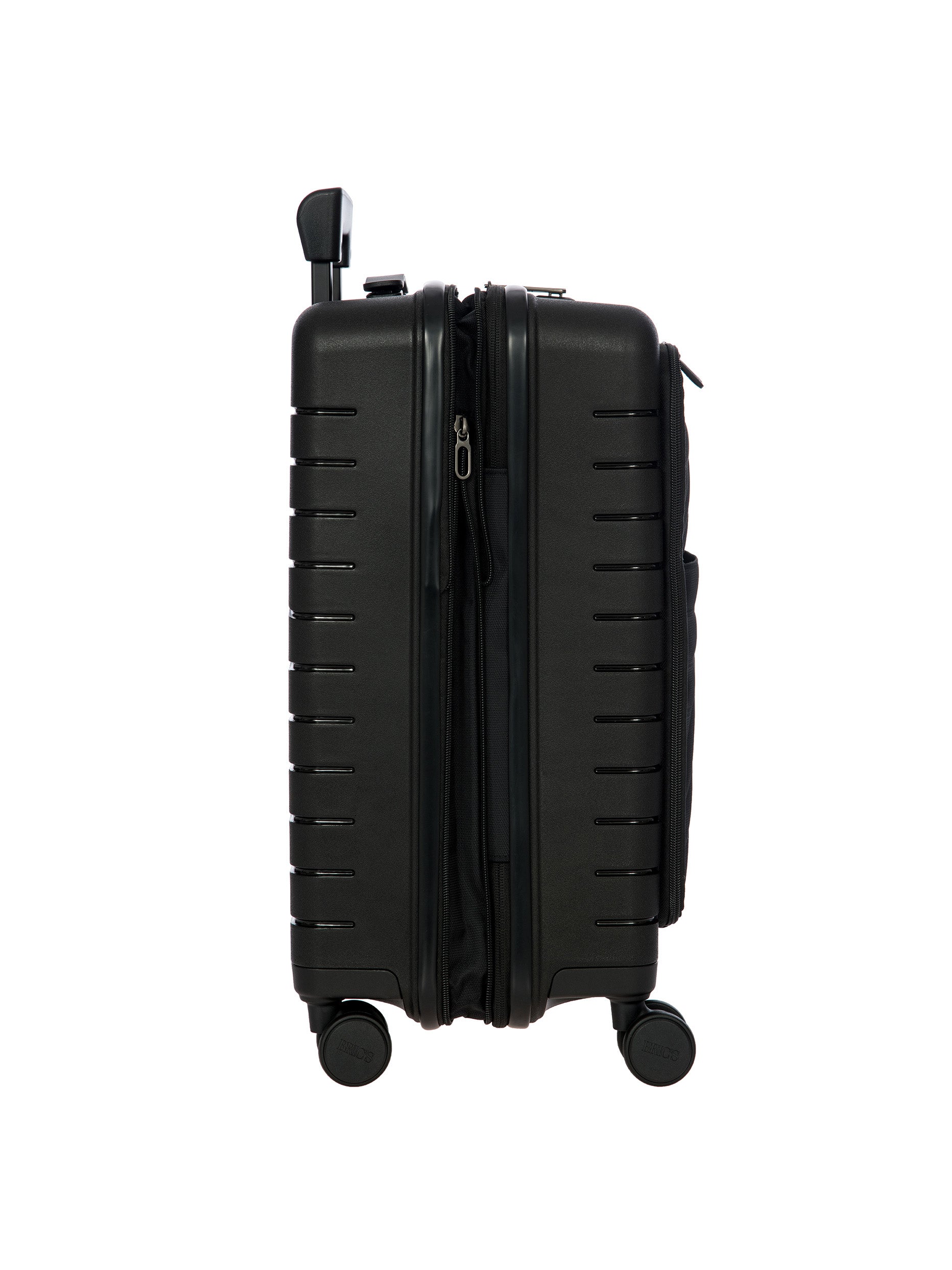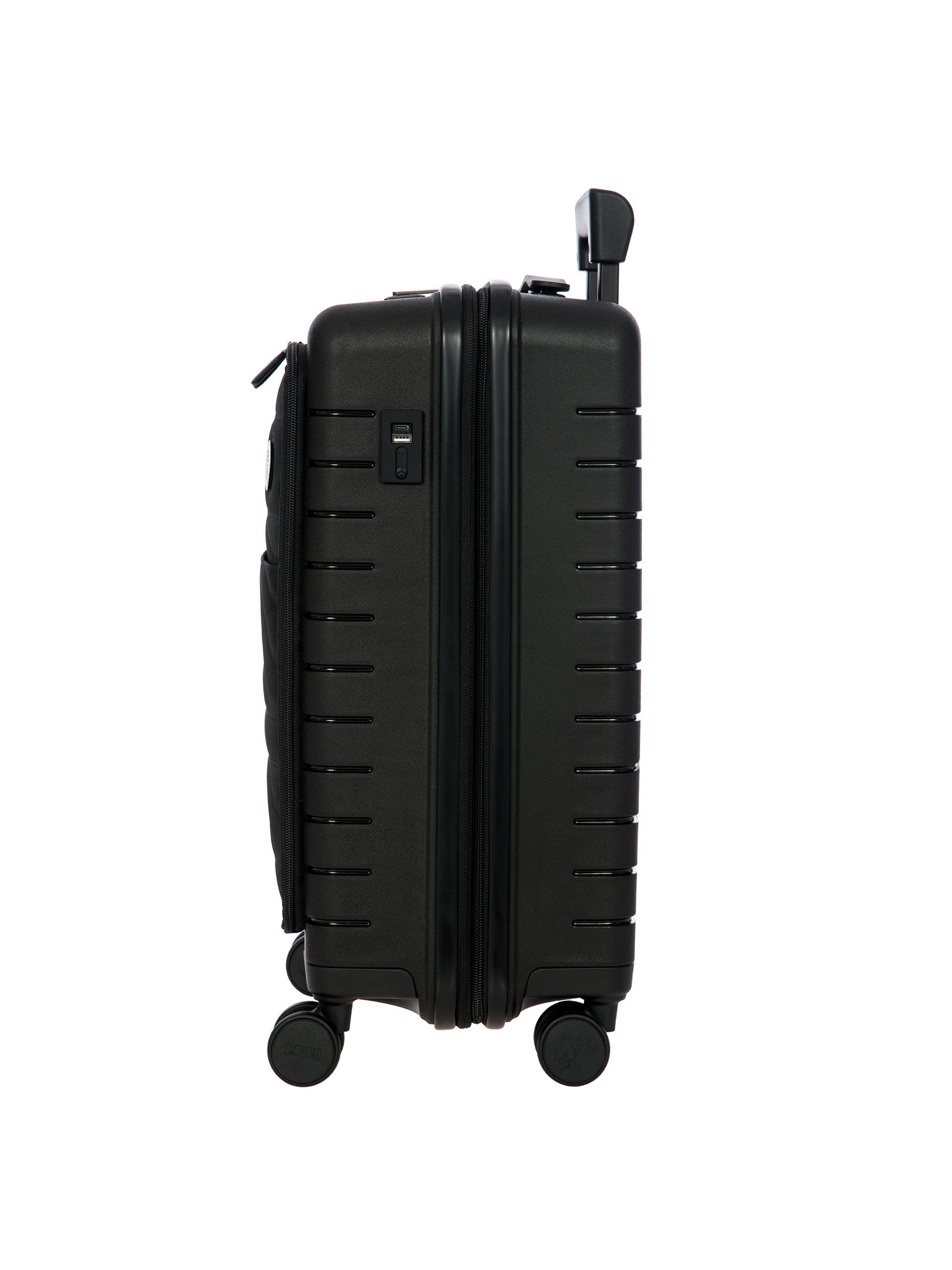 This expandable carry-on trolley with a pocket is part of the Ulisse B|Y collection. Practical but with a modern look, this suitcase with a pocket is ideal when travelling for work and even when on holiday. It ensures durability and sophisticated design thanks to the combination of a robust polypropylene shell and the soft yet hard-wearing fabric of the front pocket, which conceals a laptop/tablet sleeve complete with a protective band.