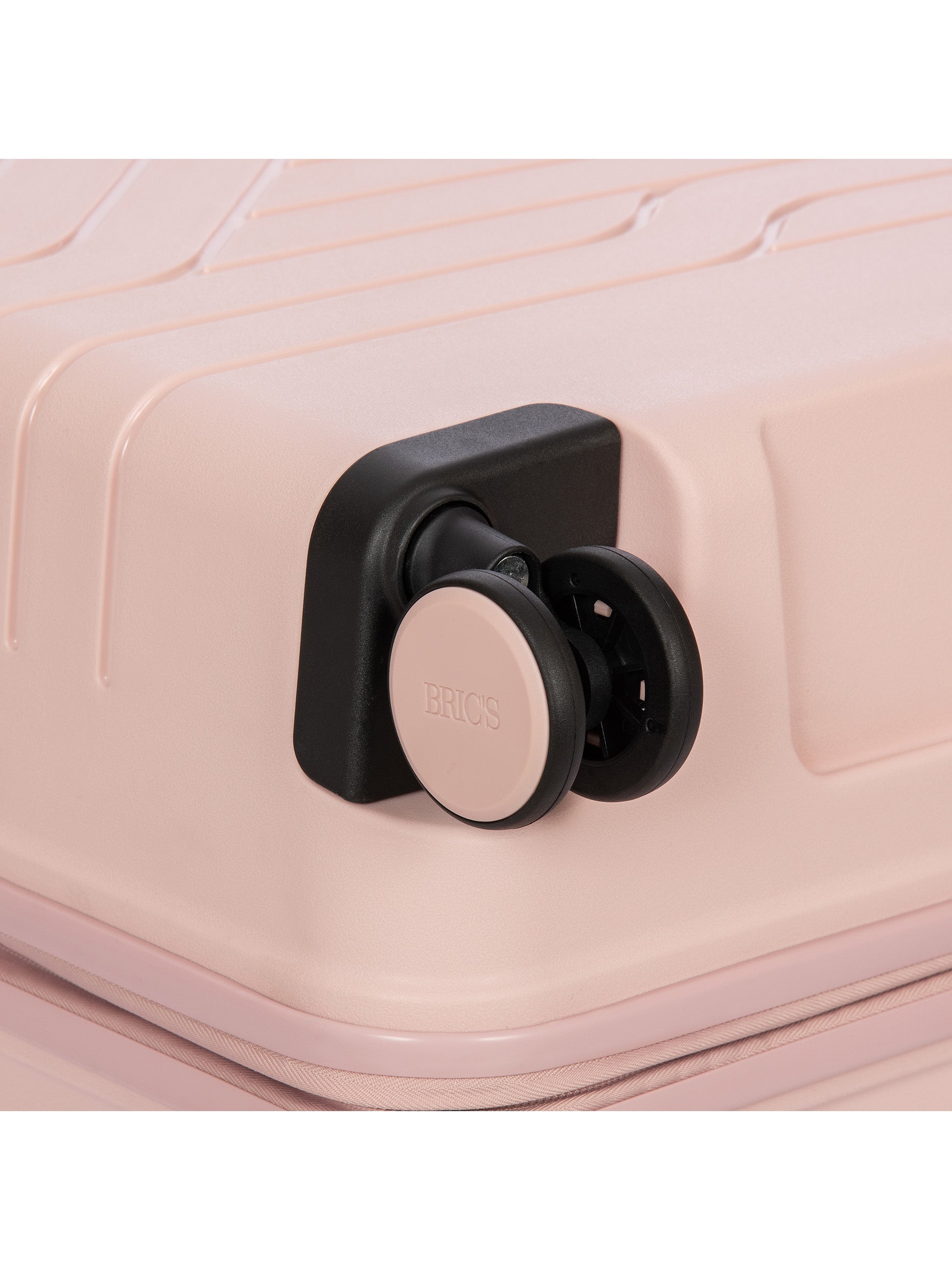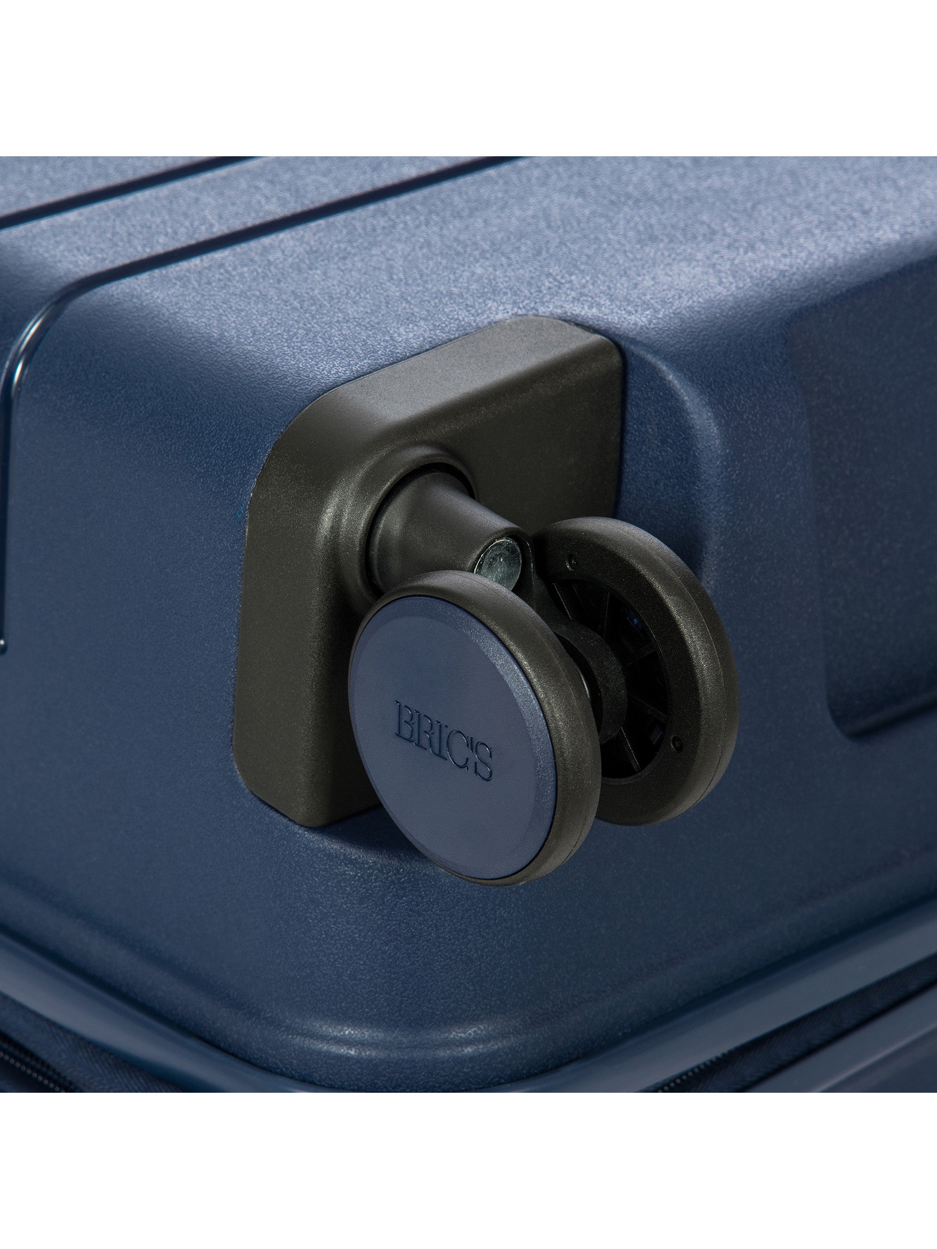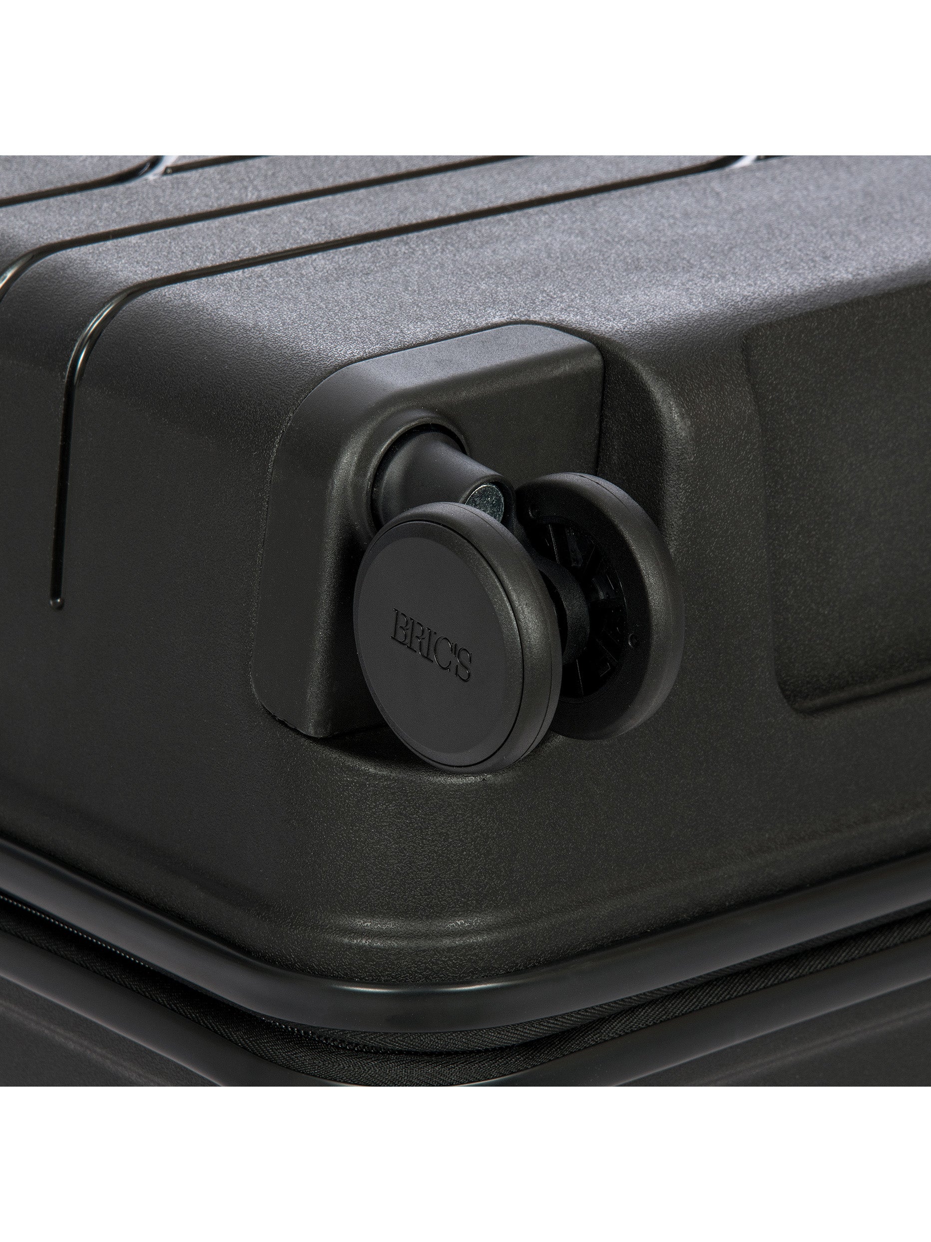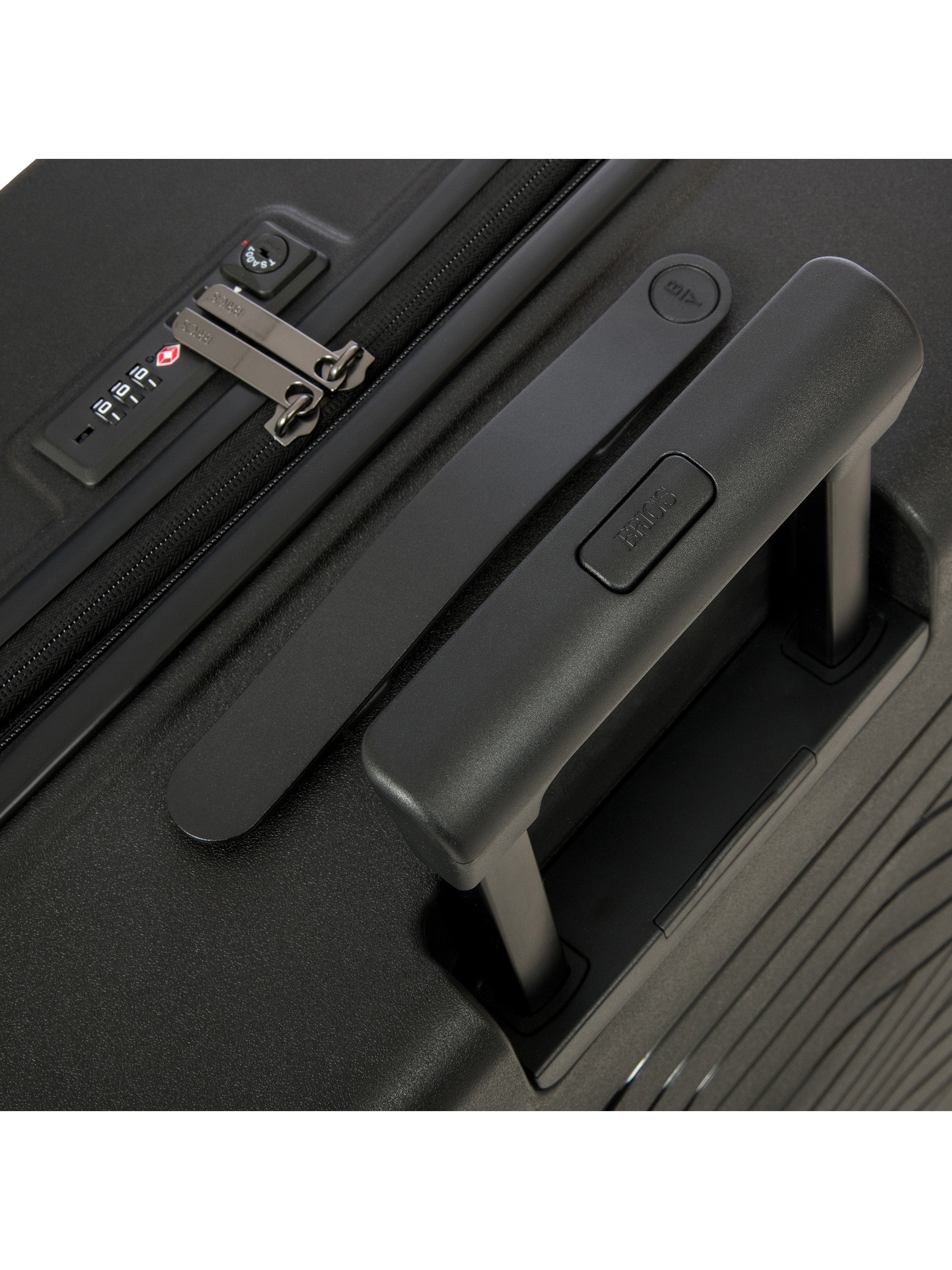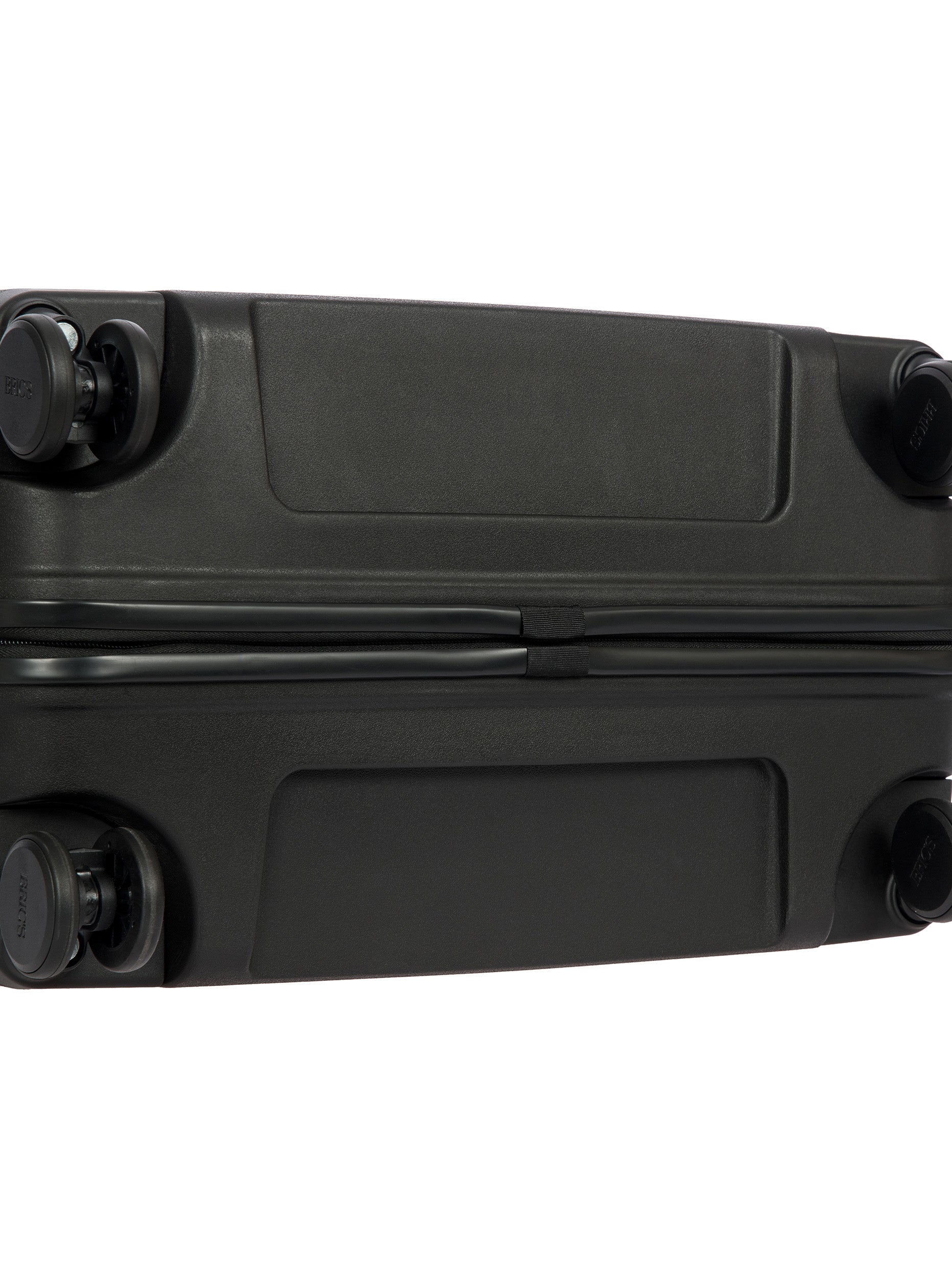 WHEELS: the four double wheels are recessed to optimise space and feature the Bric’s logo. They allow for easy 360° rotation, all the while ensuring the utmost quiet thanks to their rubber coating.