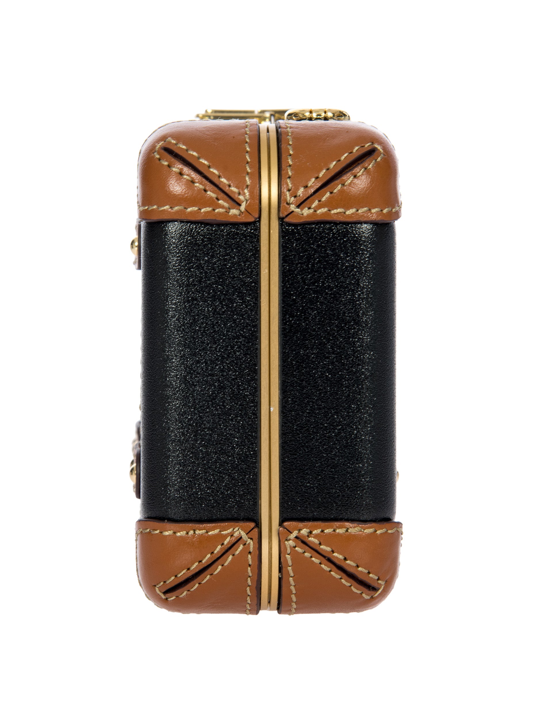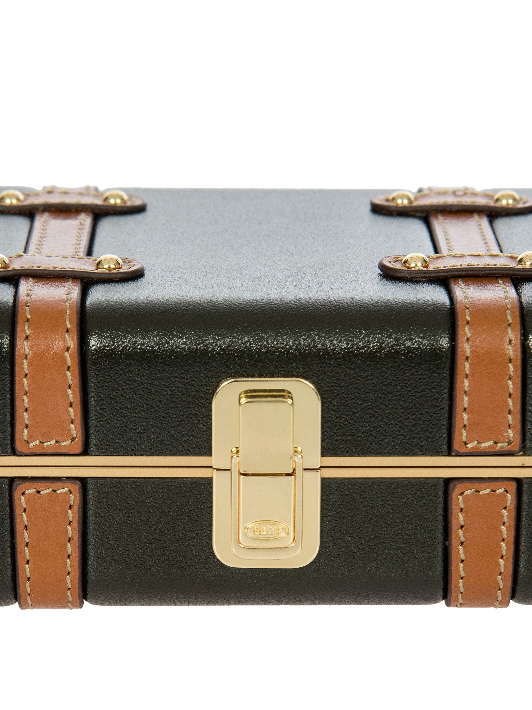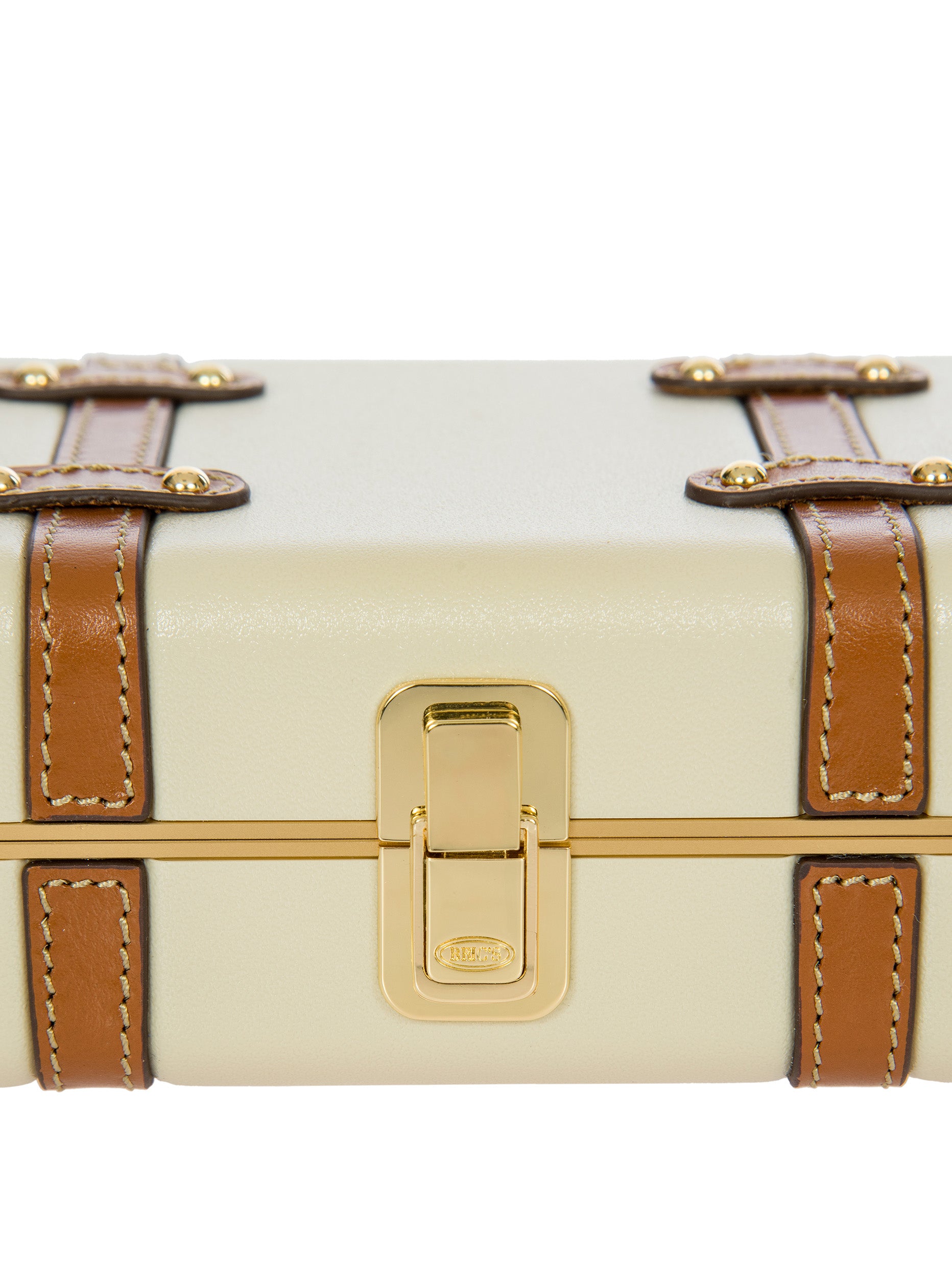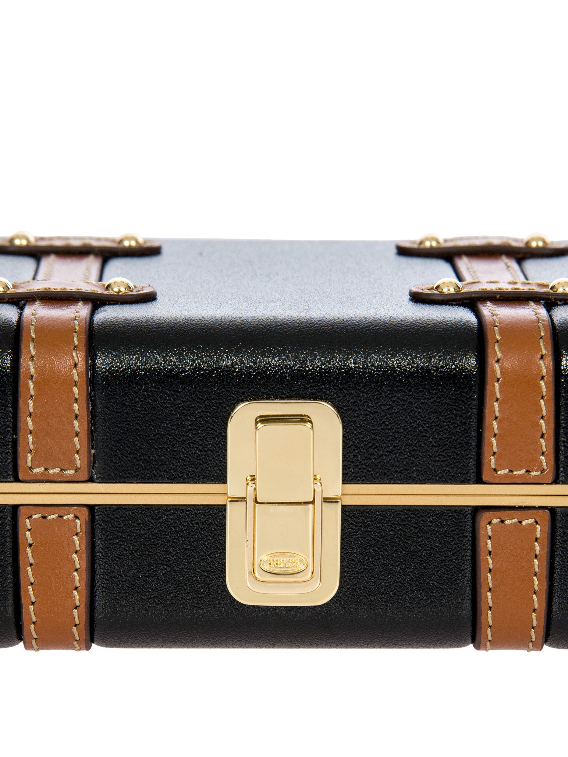 The Bellagio Legacy Bag is a small symbol of how hand-crafted excellence can be combined with elegance. Made to be paired with sophisticated looks, it recalls the iconic design of the Bellagio trolley suitcases. Meticulous attention to detail goes into making the Bellagio Legacy bag, from the real leather inserts to the gold-tone metal rivets. Constructed from an ultralight polycarbonate shell, it has been designed to elegantly hold personal items. It can be carried by hand, just like a chest, or it can be comfortably worn cross-body thanks to the soft, thin leather strap, adjustable and detachable. On the inside, it has two open compartments, divided by a zip pocket. The metal clasp closure is embellished by an embossed Bric’s logo.