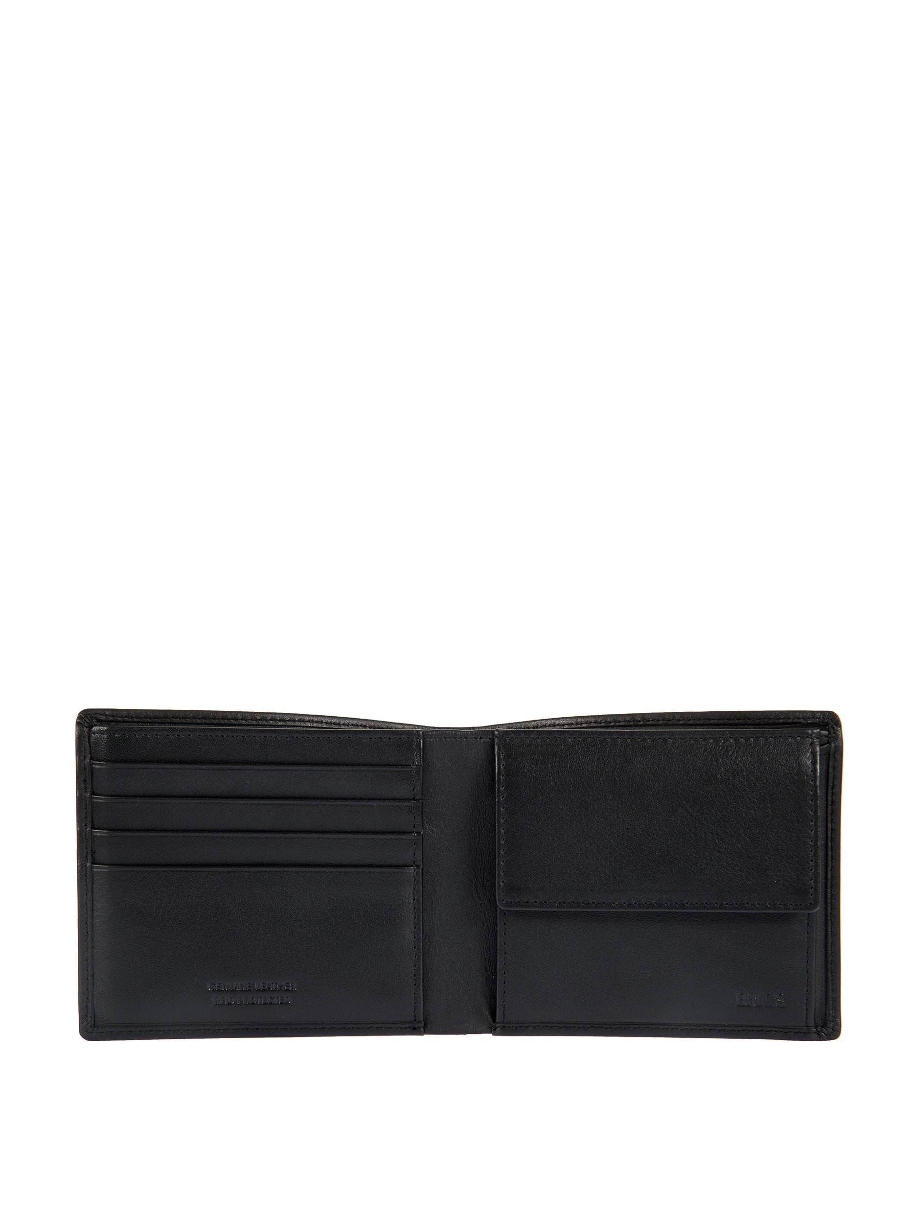 Men's wallet in soft leather from the Bernina Collection in two colours, with fabric lining. The understated design conceals a well-organised interior. It has two banknote compartments, 13 card slots and an inner coin pocket with flap. Equipped with RFID card protection. This accessory comes wrapped in an elegant protective cloth inside a branded Bric's box.