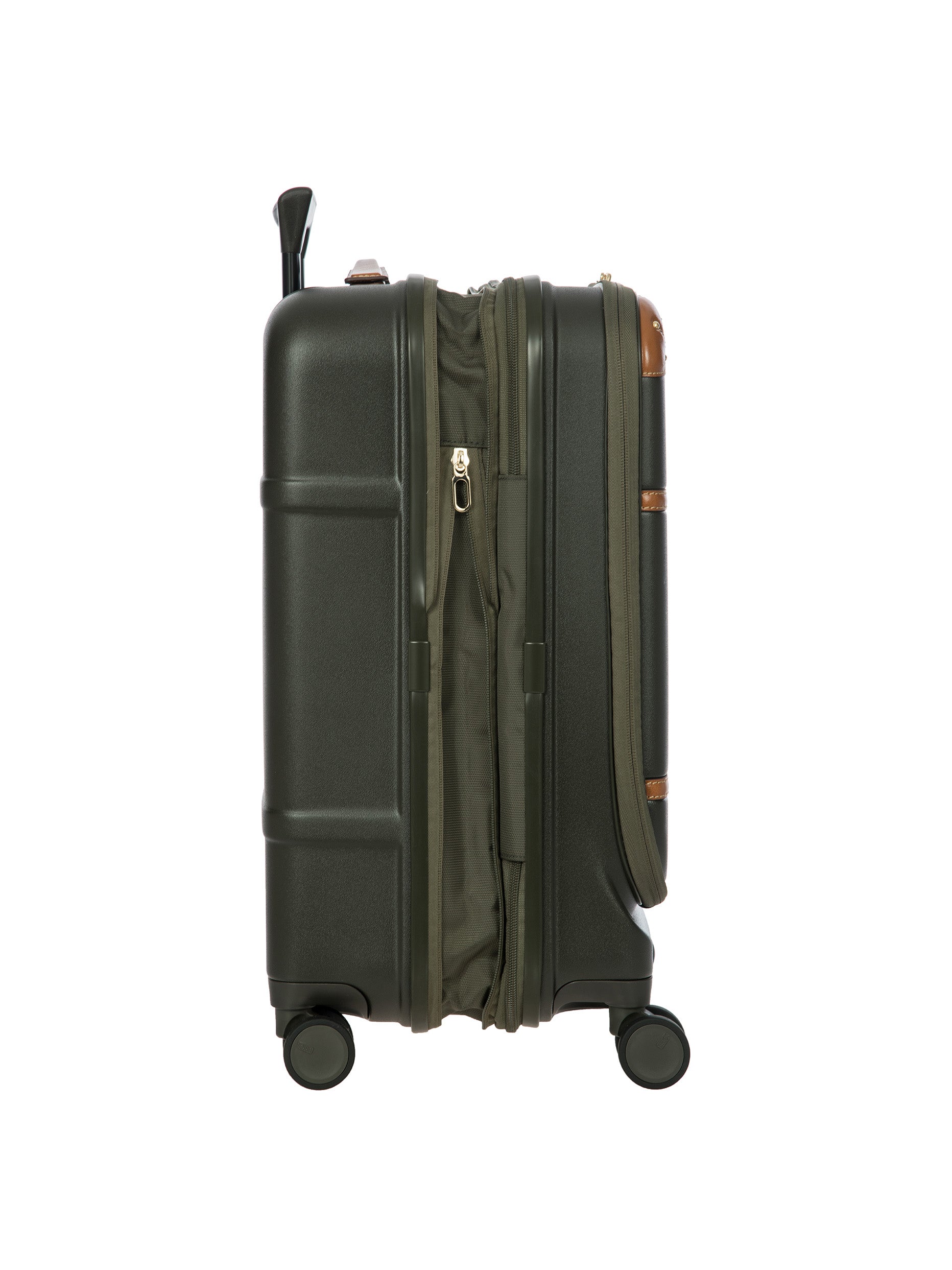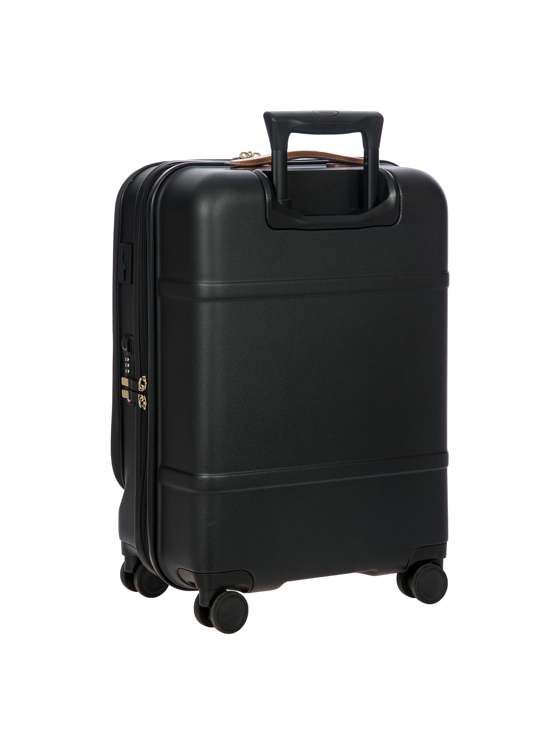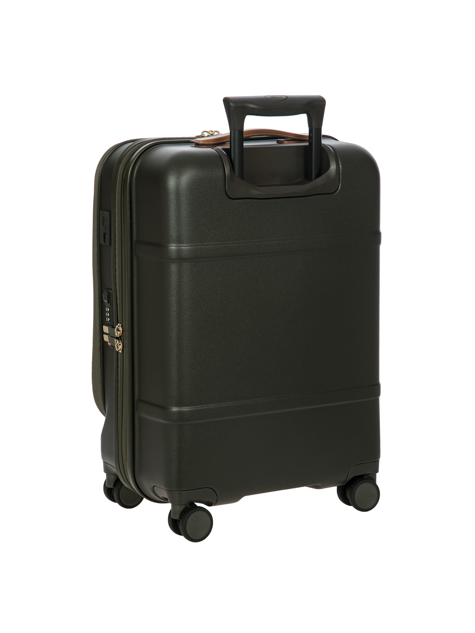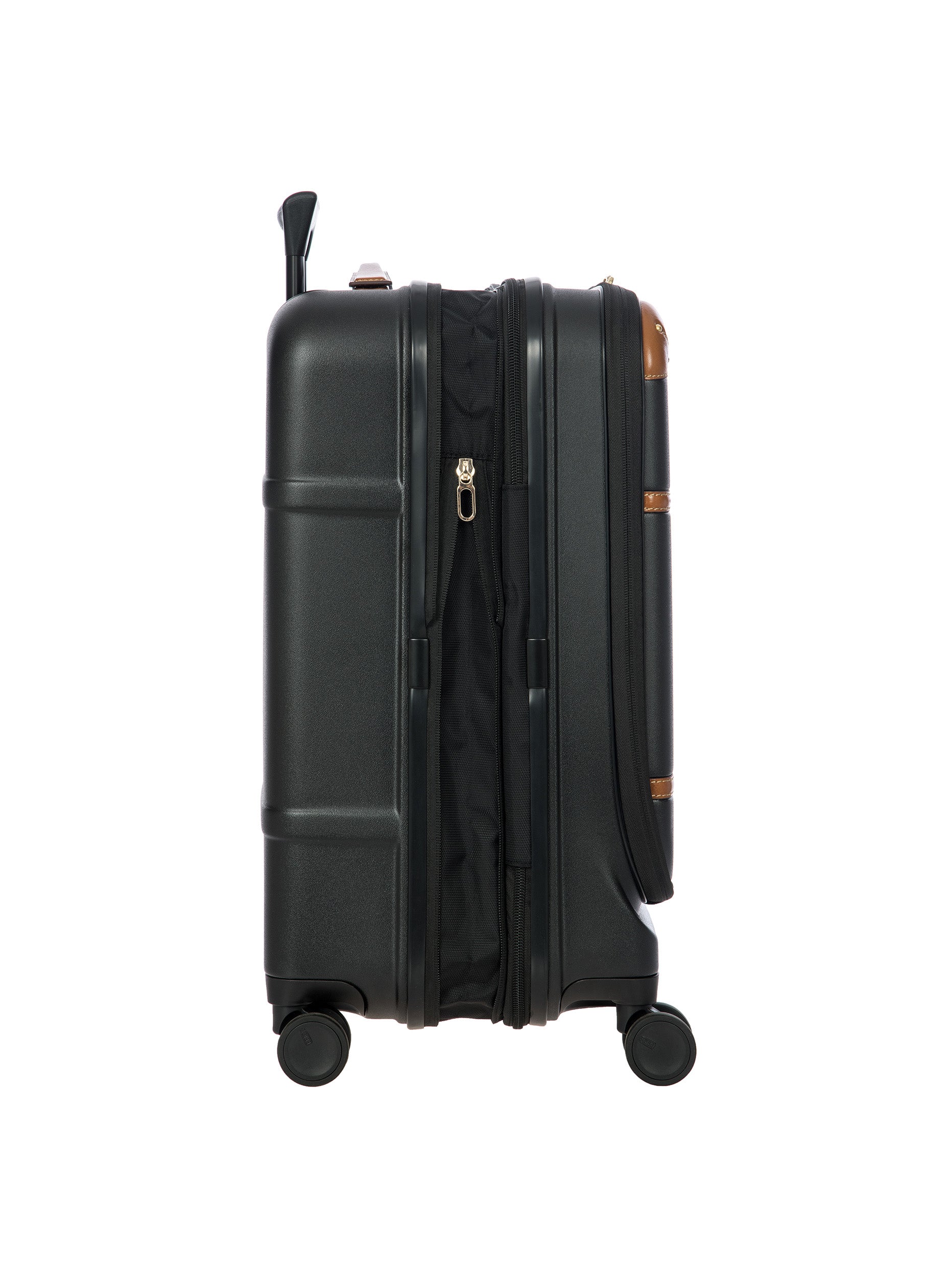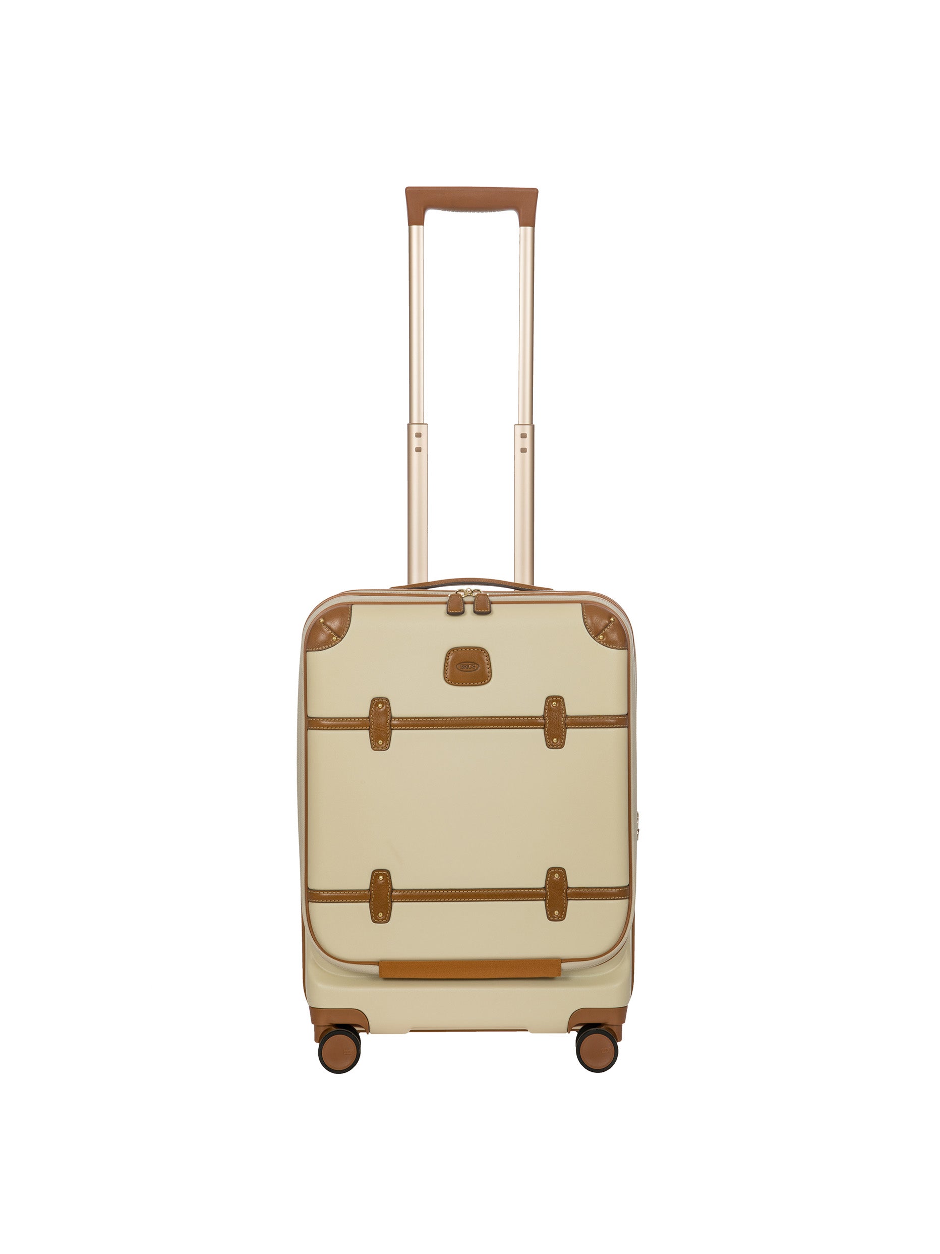 The Bellagio Collection is characterised by unmistakable design, our most iconic yet. With a front pocket, this cabin-size trolley is made of recycled polycarbonate, a lightweight, flexible material which is ultra durable and impact-resistant. The front pocket provides quick and easy access to the protected computer/tablet sleeve, complete with a USB port for a battery pack. The USB adapter is protected on the outside by a rain-blocking cover. The suitcase’s closure features a TSA lock and an ultra-secure zip: this anti-tampering system ensures an optimised degree of protection from attempted theft. The inside is complete with a compression system, divided into two compartments to ensure the effective organisation of all your items. Moreover, the expandable zip closure makes it possible to increase its capacity. The lining is easily removed thanks to a special zip: that way, if needed, it can be washed separately. To ensure comfort and ease of use, the retractable handle is made up of robust, sturdy aluminium tubes with intermediate stop positions so that its height can be adjusted as needed, and an ergonomic grip. The four double wheels move quietly and rotate a full 360° for guaranteed manoeuvrability, equipped with ball bearings that create a smooth ride. Moreover, the wheels are recessed in the shell, thereby increasing the capacity of the trolley. Bric’s distinctive real leather accents trim the outside of the Bellagio trolley, complemented by refined logo details. The leather address tag carrier is an essential finishing touch.
