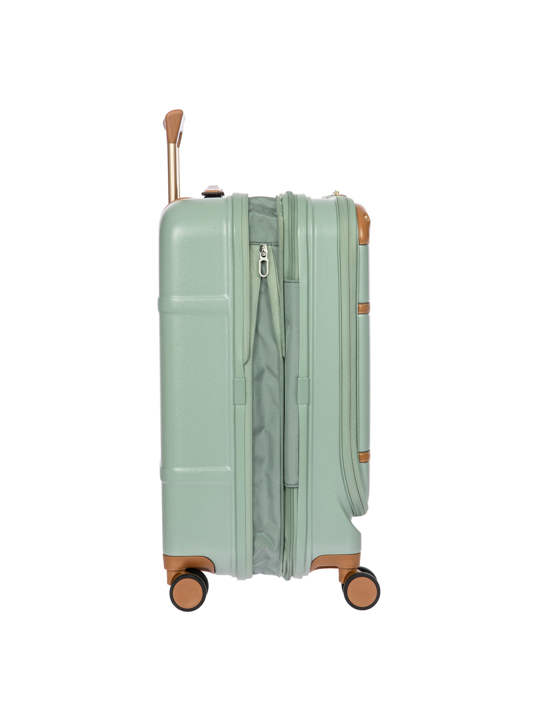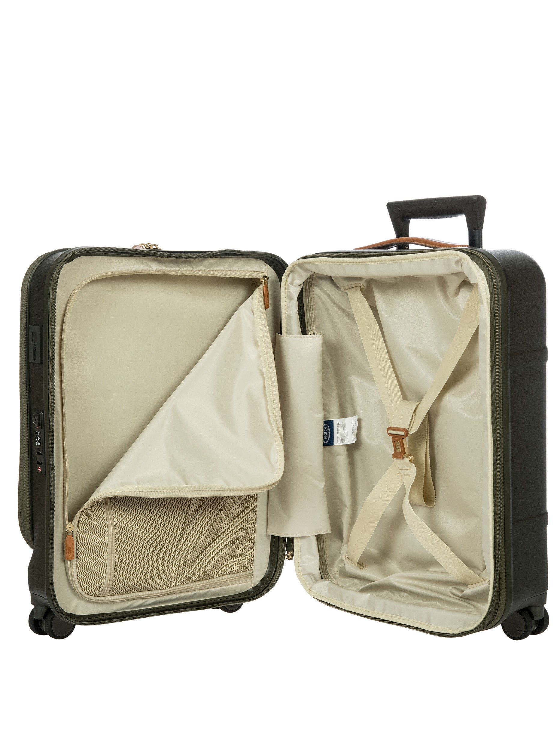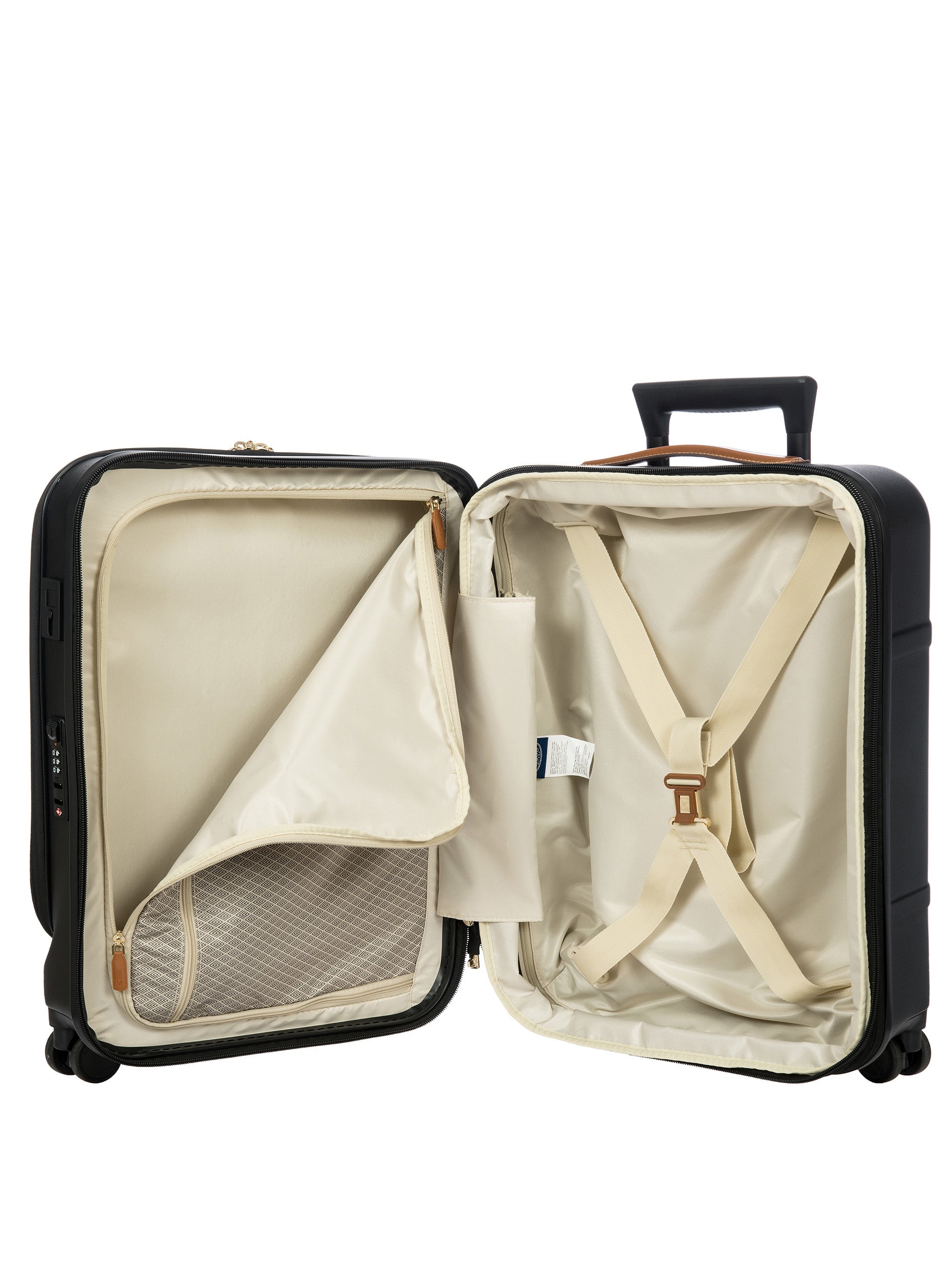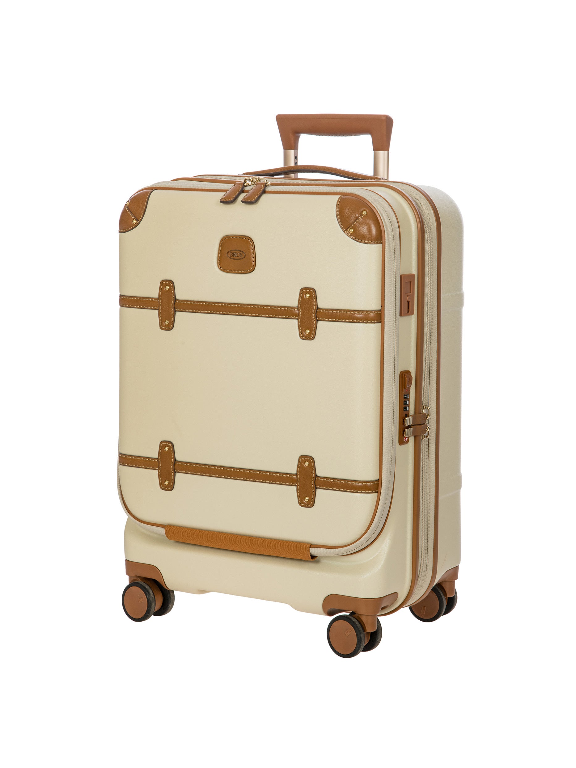 The Bellagio Collection is characterised by unmistakable design, our most iconic yet. With a front pocket, this cabin-size trolley is made of recycled polycarbonate, a lightweight, flexible material which is ultra durable and impact-resistant. The front pocket provides quick and easy access to the protected computer/tablet sleeve, complete with a USB port for a battery pack. The USB adapter is protected on the outside by a rain-blocking cover. The suitcase’s closure features a TSA lock and an ultra-secure zip: this anti-tampering system ensures an optimised degree of protection from attempted theft. The inside is complete with a compression system, divided into two compartments to ensure the effective organisation of all your items. Moreover, the expandable zip closure makes it possible to increase its capacity. The lining is easily removed thanks to a special zip: that way, if needed, it can be washed separately. To ensure comfort and ease of use, the retractable handle is made up of robust, sturdy aluminium tubes with intermediate stop positions so that its height can be adjusted as needed, and an ergonomic grip. The four double wheels move quietly and rotate a full 360° for guaranteed manoeuvrability, equipped with ball bearings that create a smooth ride. Moreover, the wheels are recessed in the shell, thereby increasing the capacity of the trolley. Bric’s distinctive real leather accents trim the outside of the Bellagio trolley, complemented by refined logo details. The leather address tag carrier is an essential finishing touch.