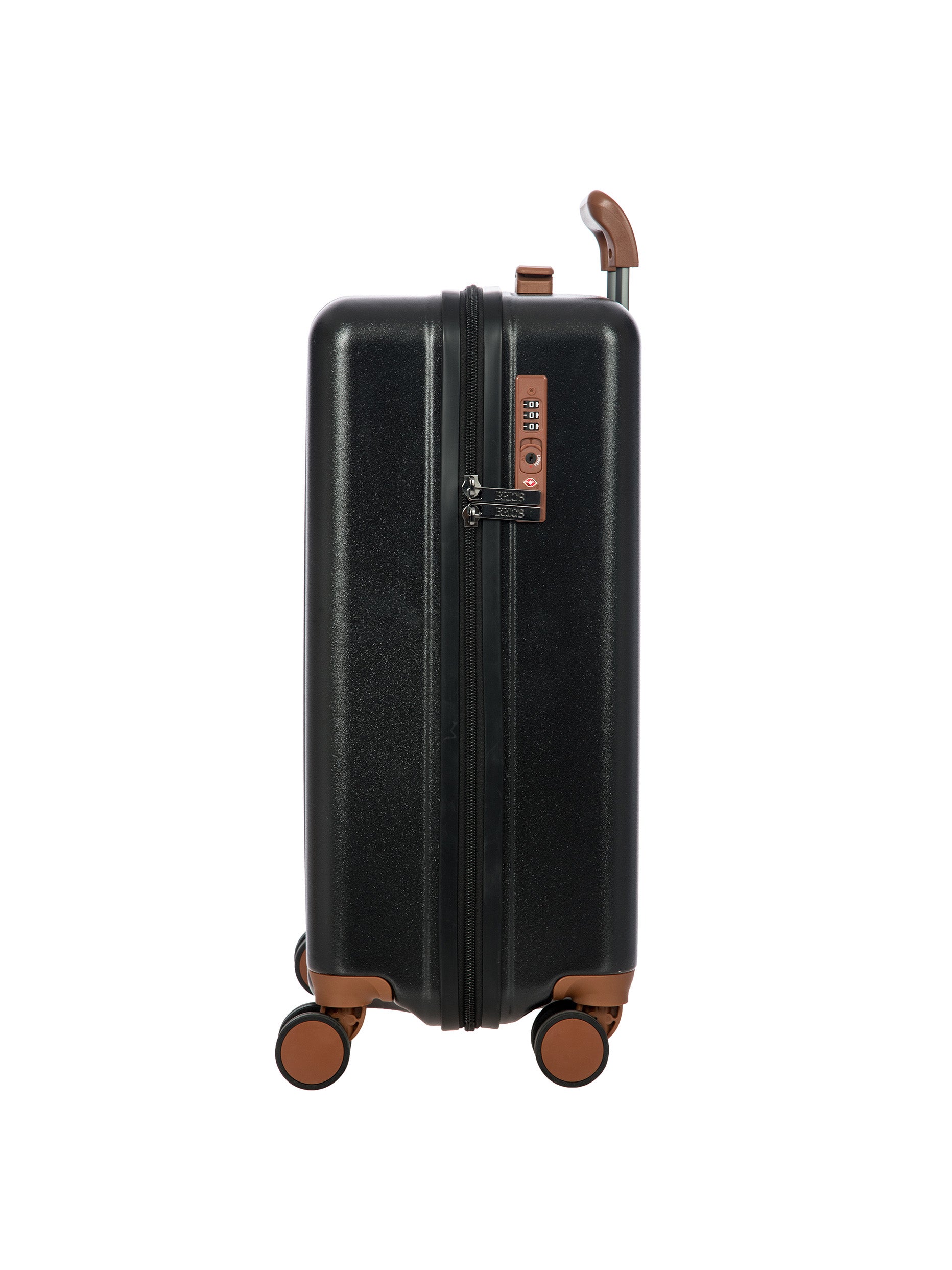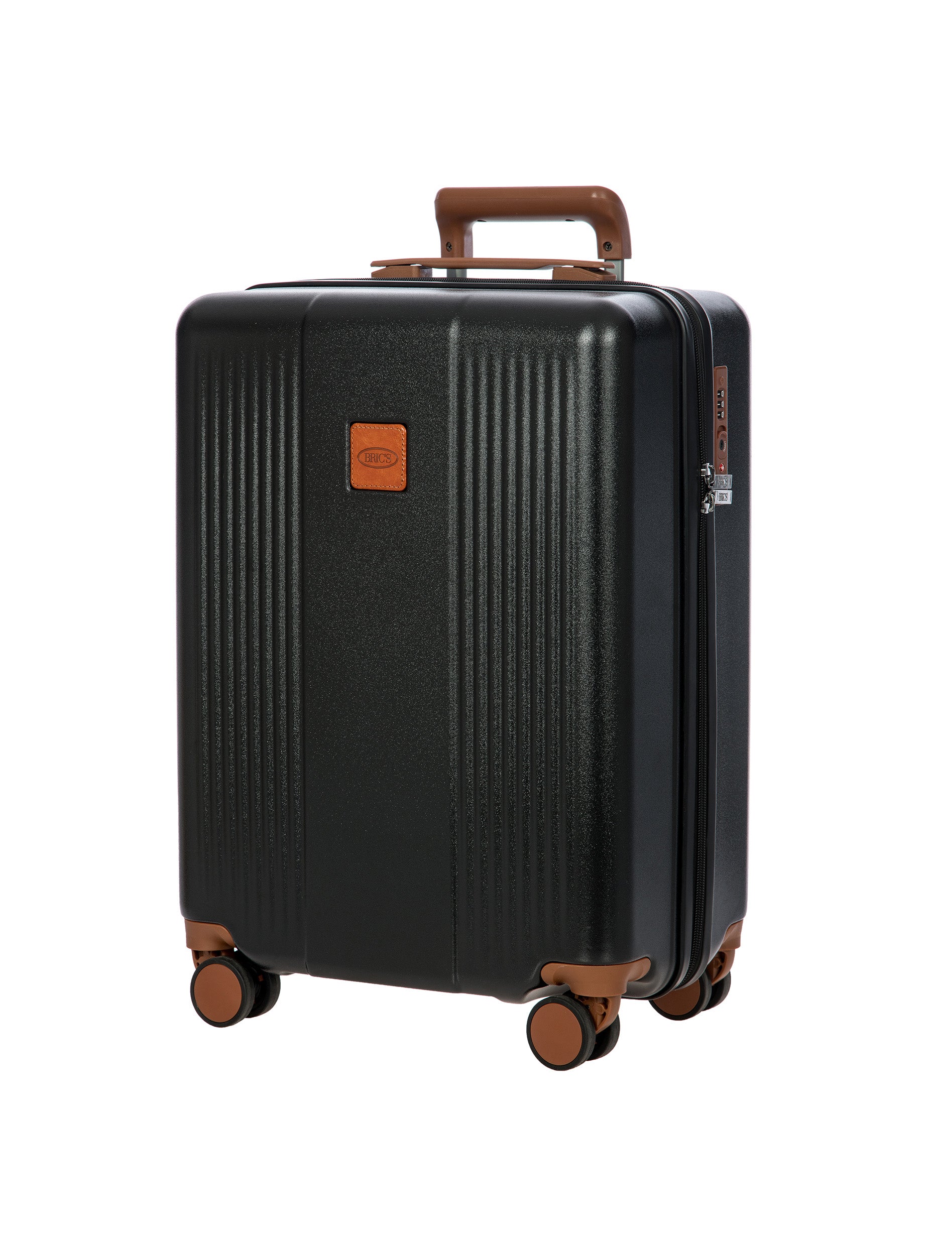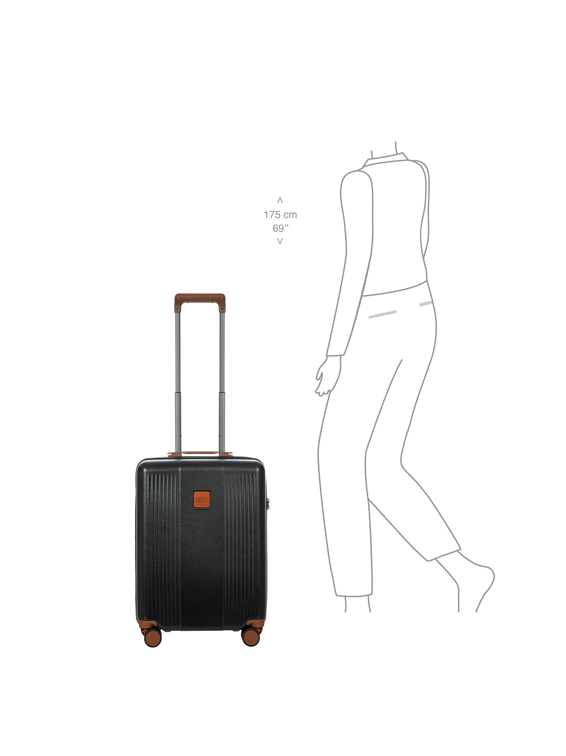 The Ferrara Collection cabin trolley is made of polycarbonate, a lightweight and durable material. The opening has a double-slider zipper, embellished with a tone-on-tone finish. The TSA padlock is integrated. The four wheels are silent and swivel to ensure smooth 360° movement. They are also recessed to maximise trolley capacity. Internally, the trolley has a zippered pocket and is divided into two separate compartments to help organise your belongings. Finished with a fabric lining. For ease of use, the towing system consists of strong and stable, multi-stop aluminium tubes with ergonomic grip. The trolley is embellished with Bric's refined logo.