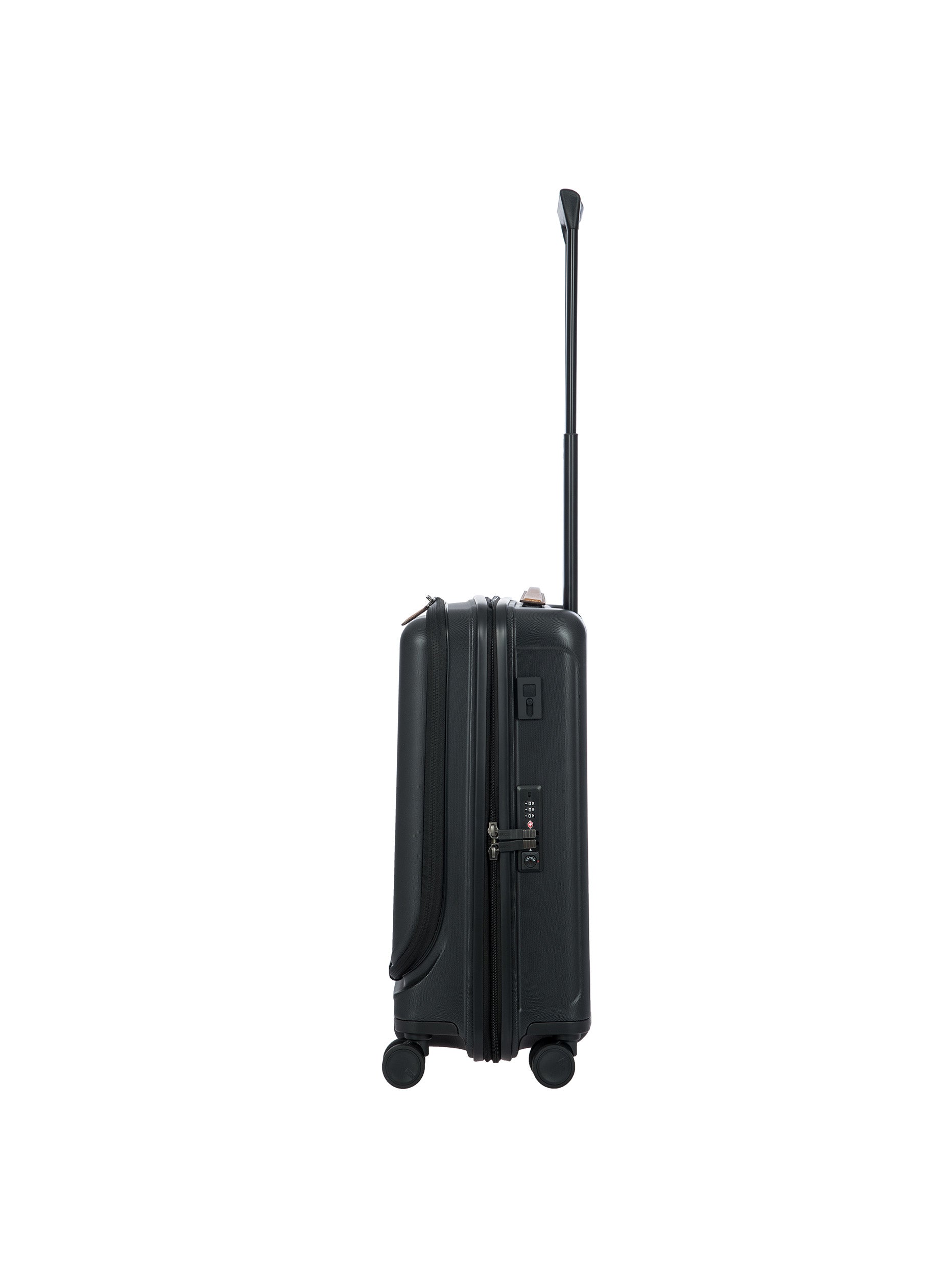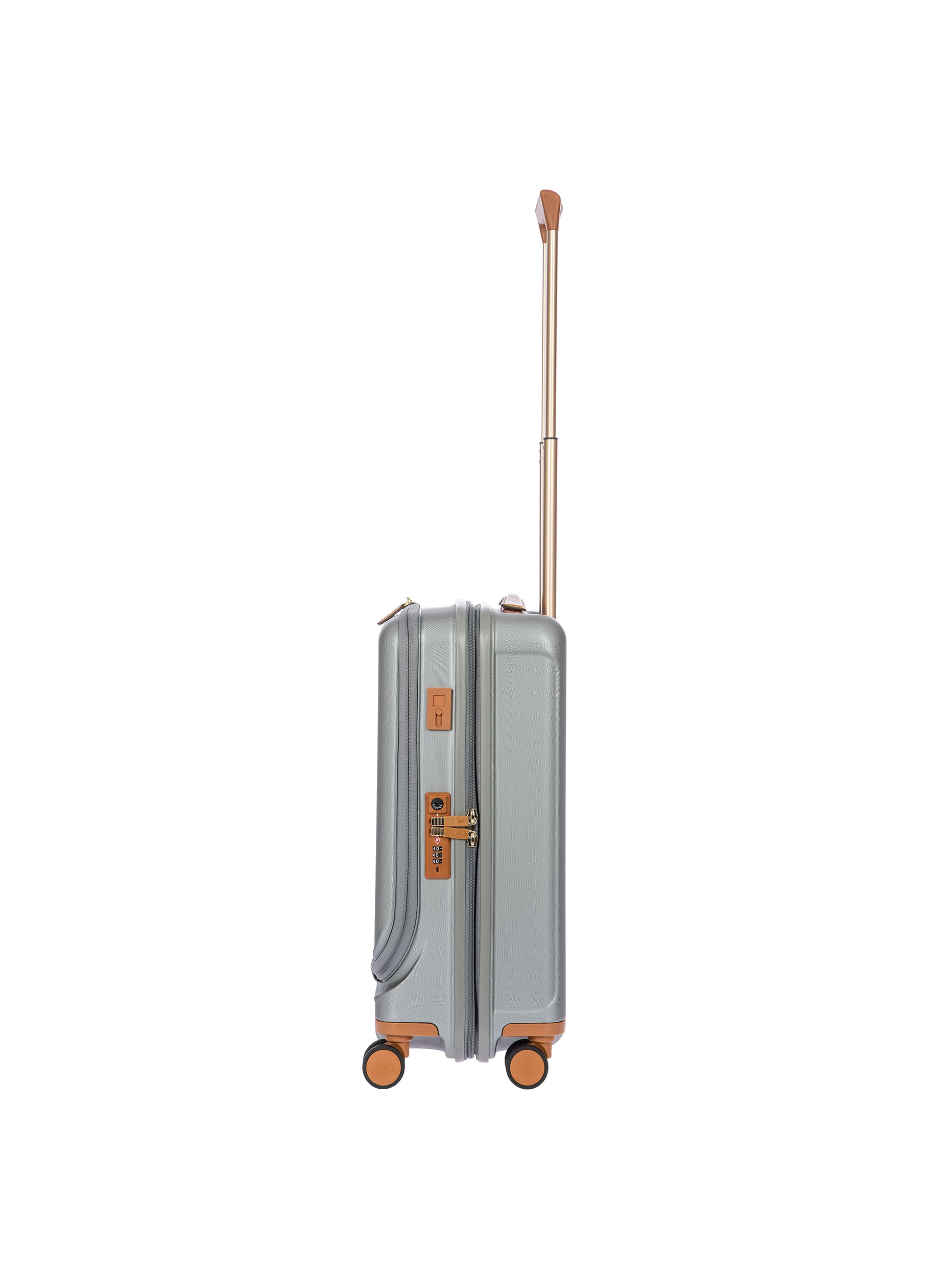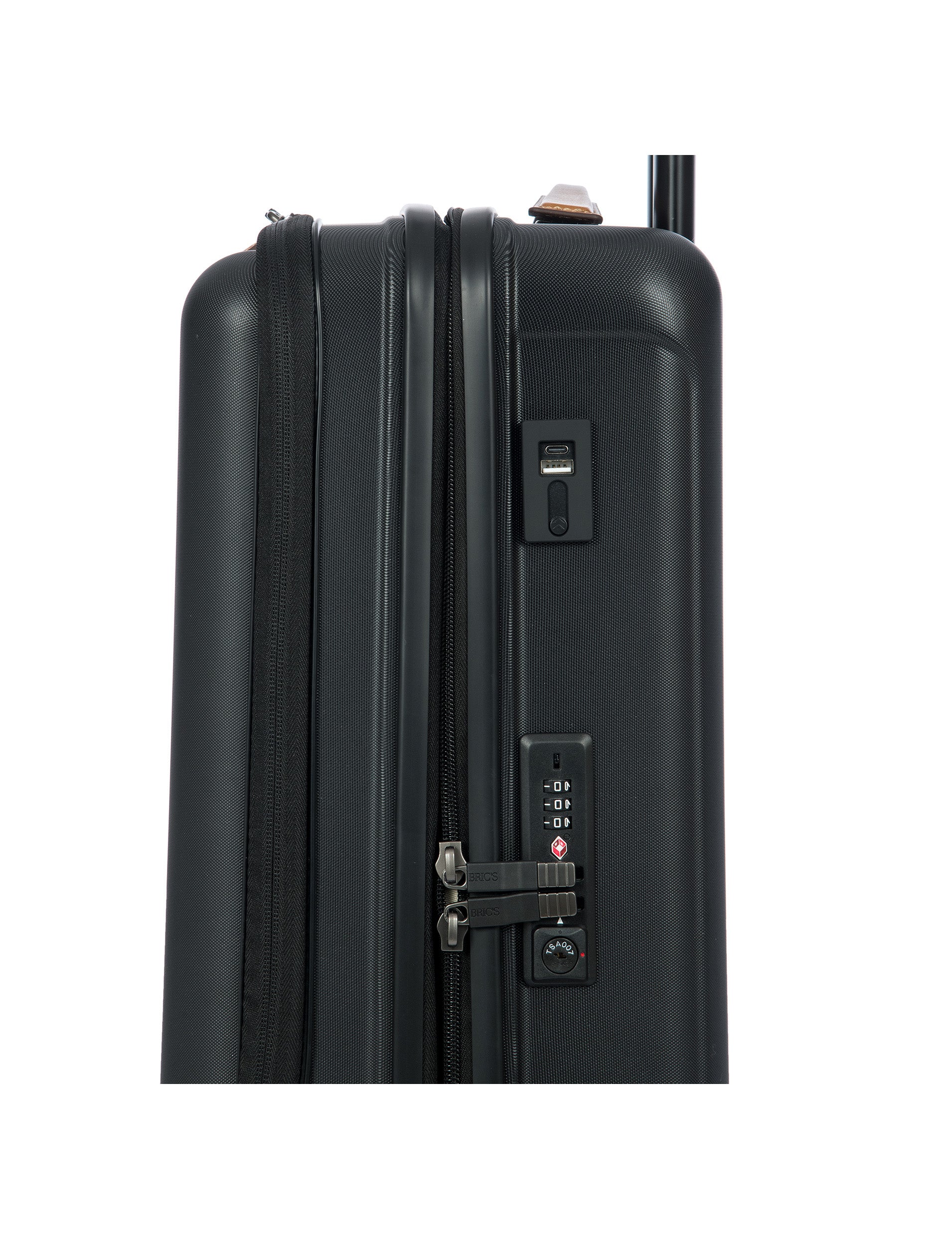 Light and durable Capri expandable hard-shell carry-on trolley with front pocket, USB port and recessed wheels.