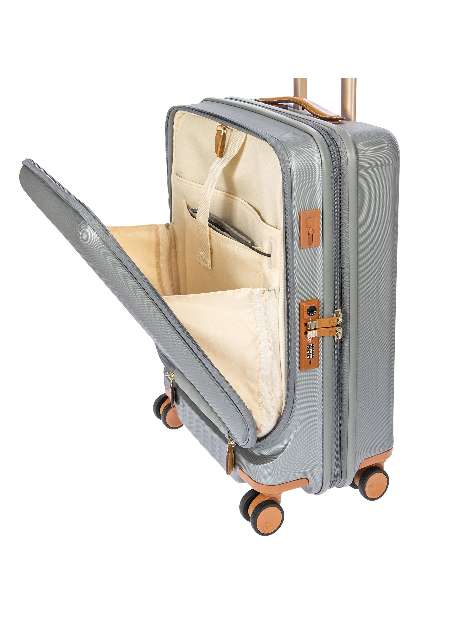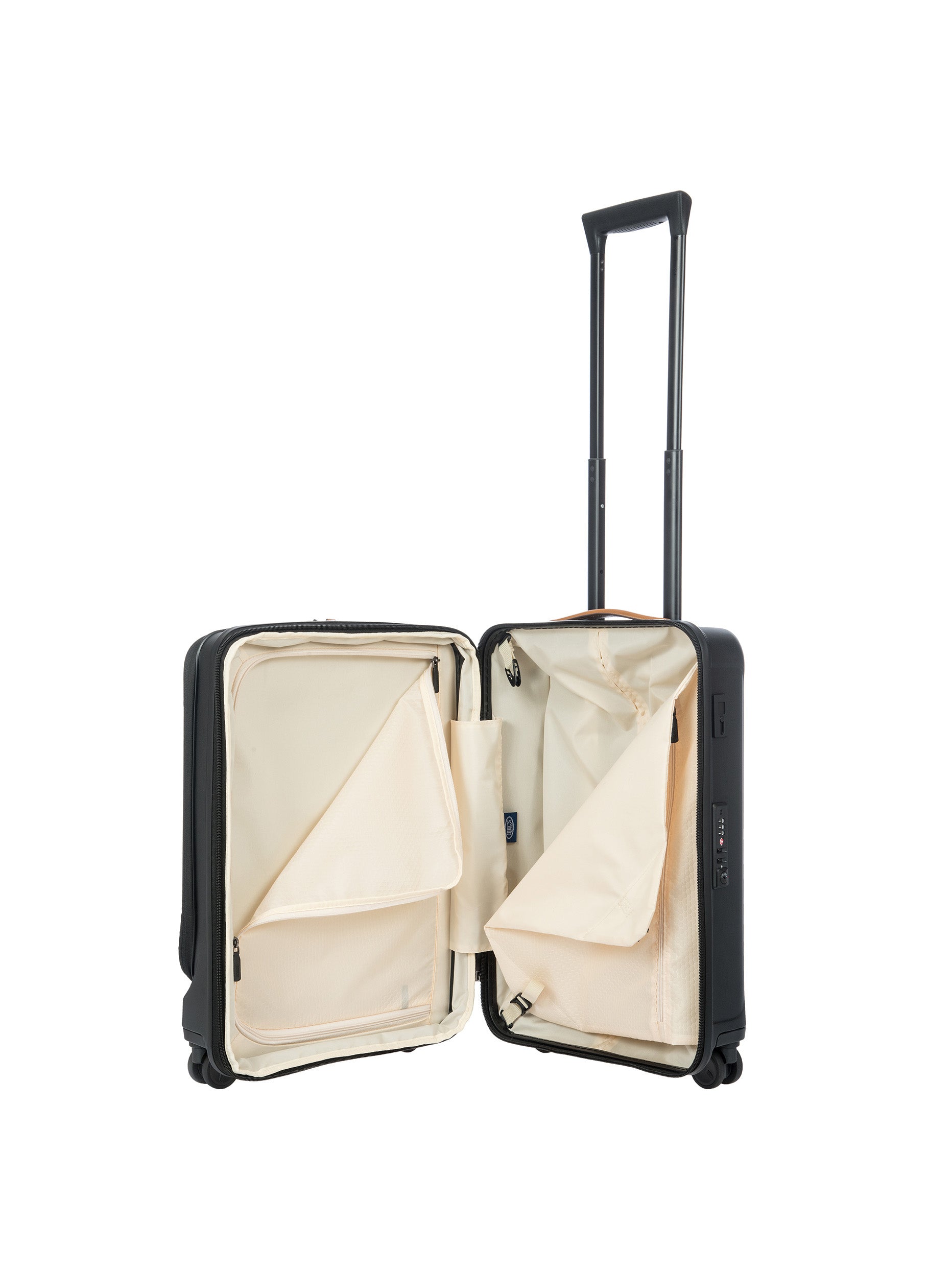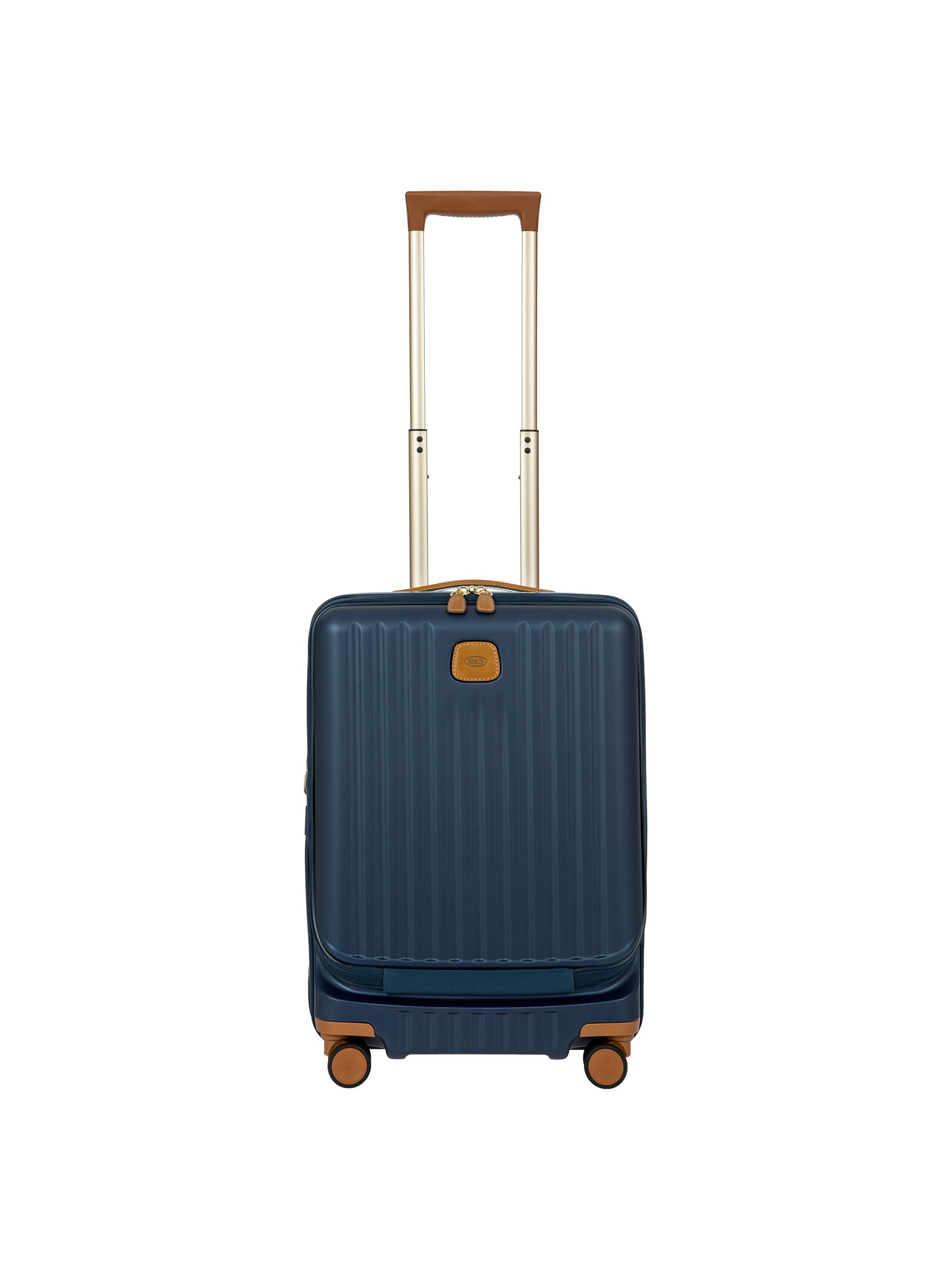 Light and durable Capri expandable hard-shell carry-on trolley with front pocket, USB port and recessed wheels.