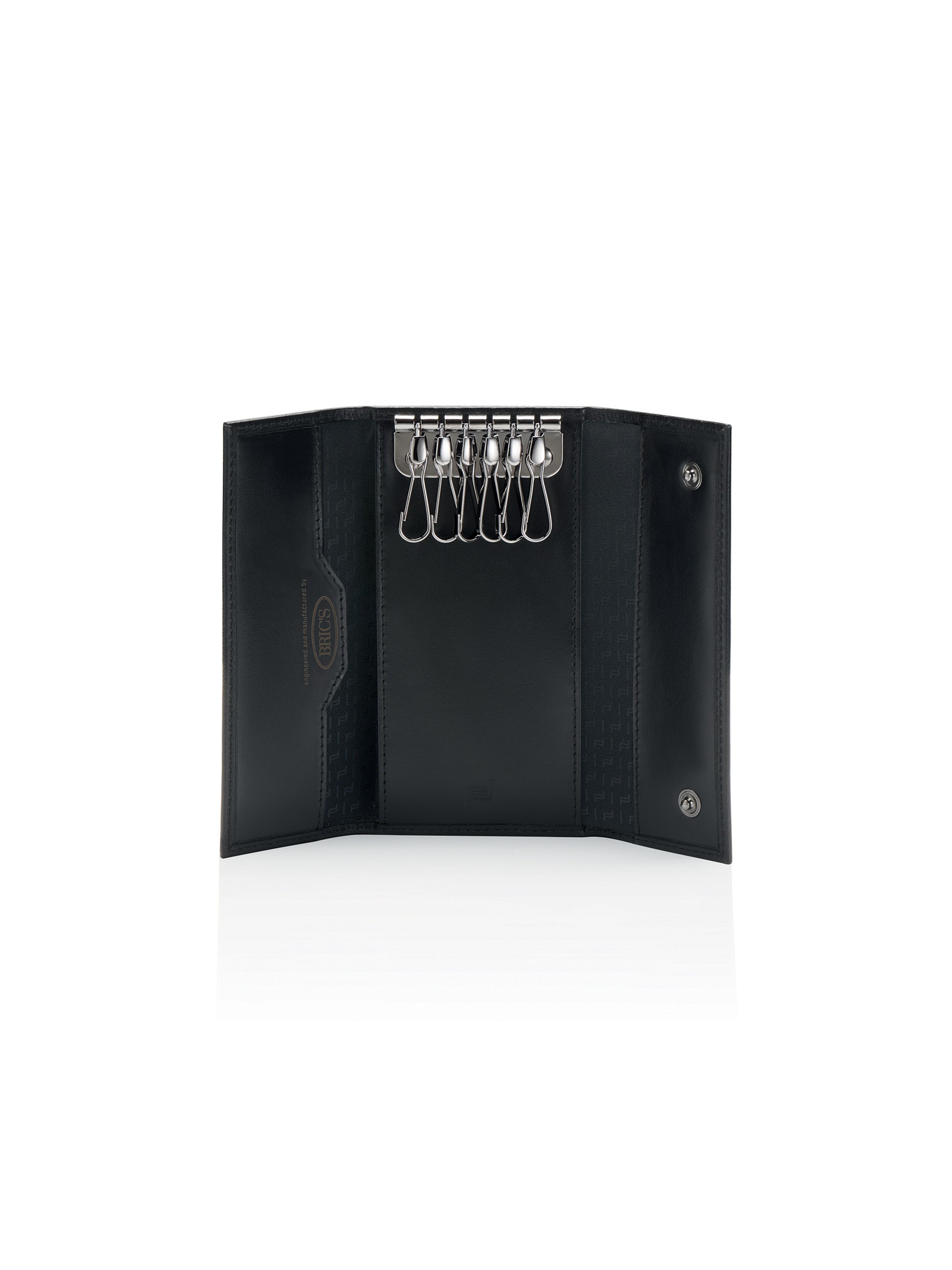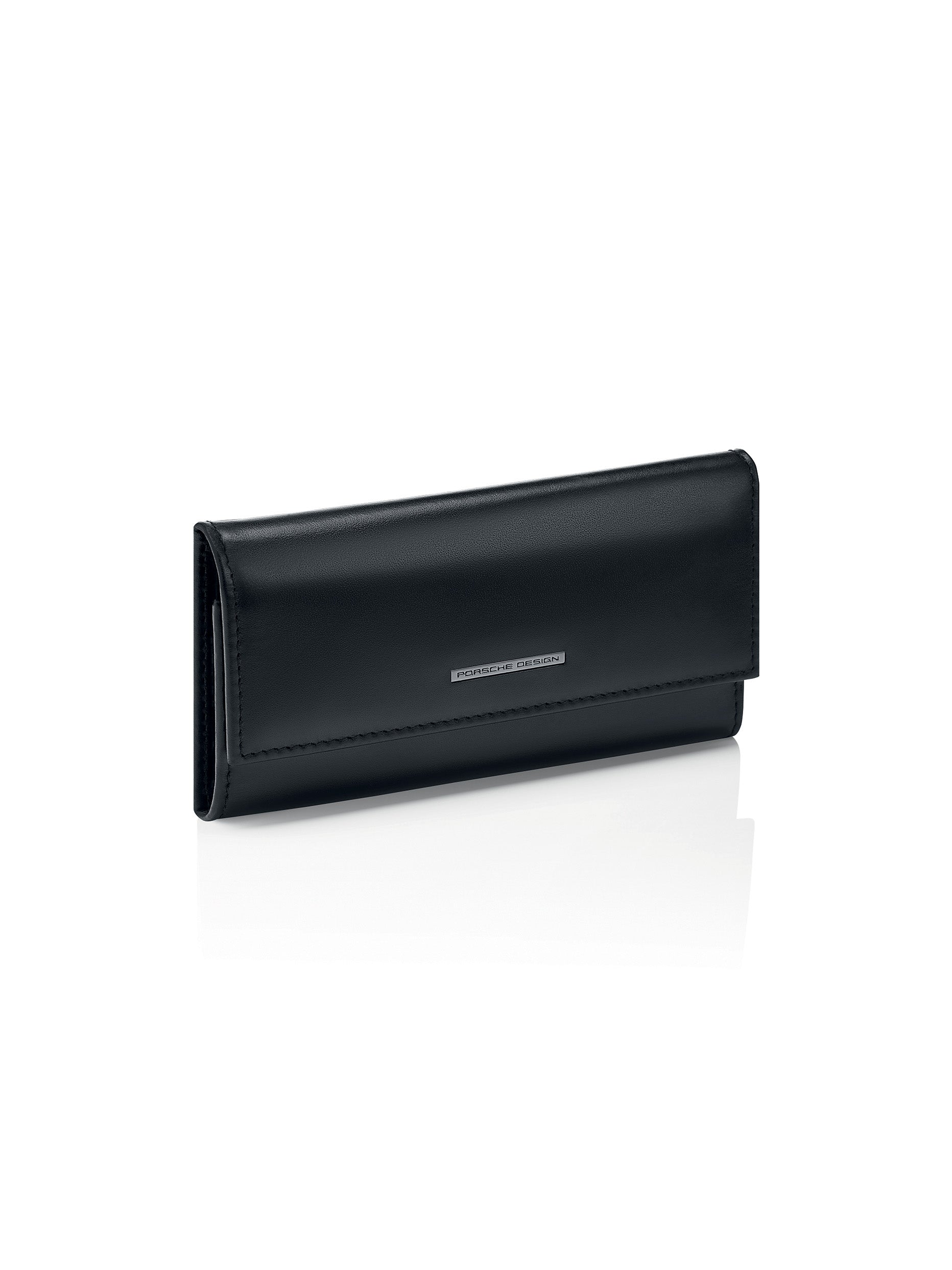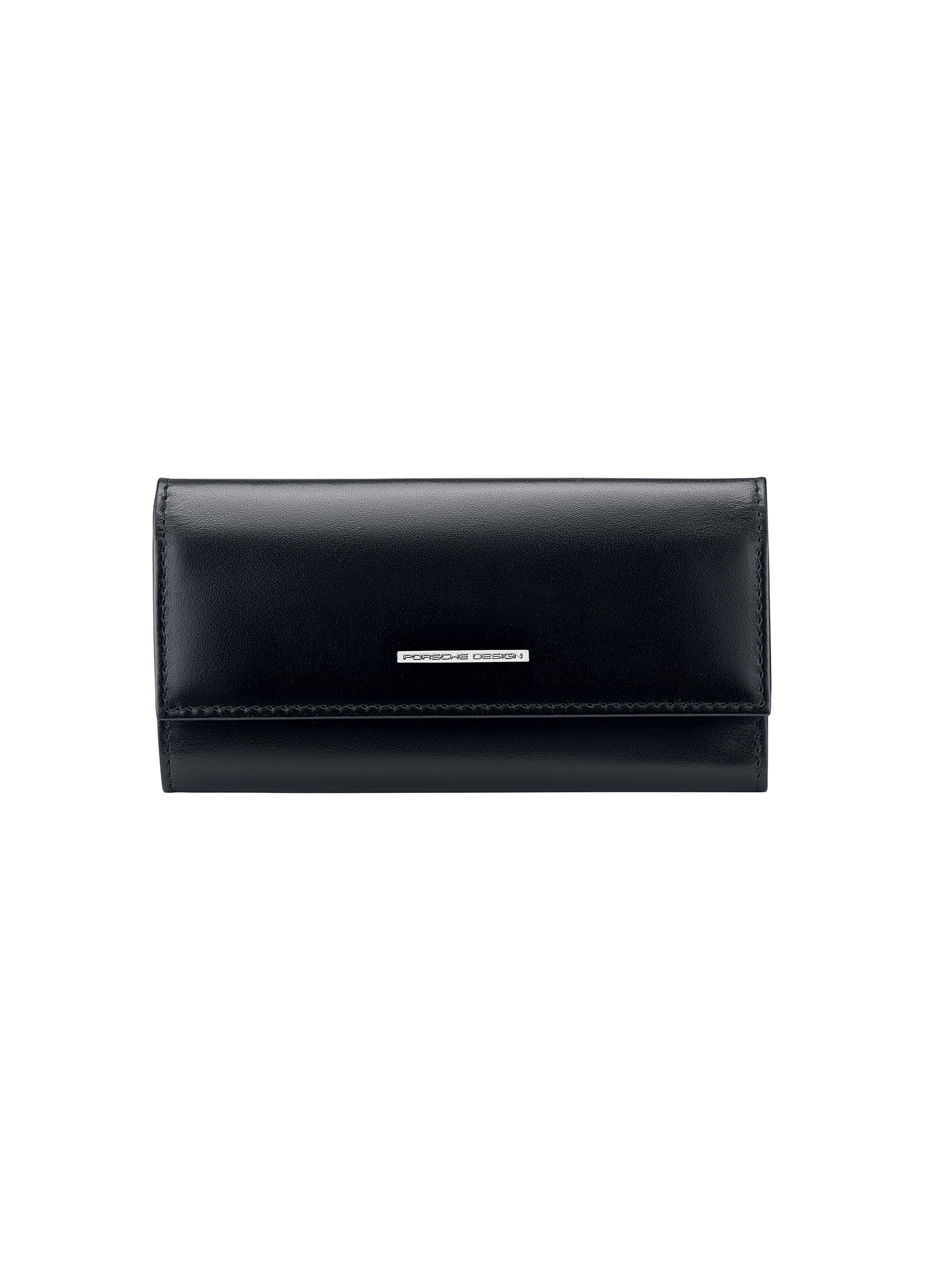 An elegant blend of style and functionality. Meet the Porsche Design Classic Collection. Made from high-quality, smooth leather in black with a seamless finish, the chic exterior, featuring the signature Porsche Design metal logo tag, gives the trifold Porsche Design Classic Key Case L its timeless and minimal look.