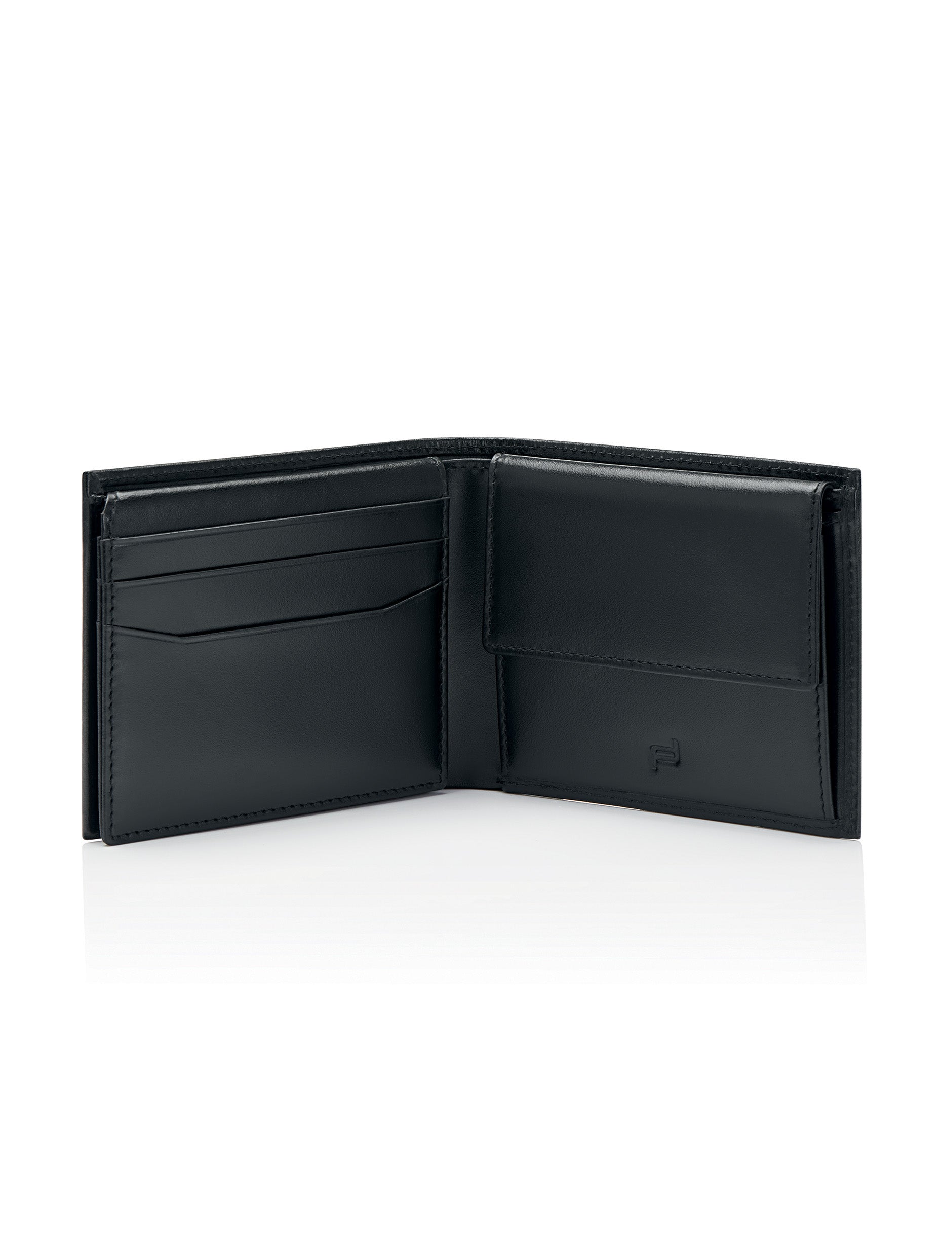 An elegant blend of style and functionality. Meet the Porsche Design Classic Collection. Made from high-quality, smooth leather in black with a seamless finish, the chic exterior, featuring the signature Porsche Design metal logo tag, gives the Porsche Design Classic Wallet 5 its timeless and minimal look. With high-quality interior styling, signature details, and a smart design,
