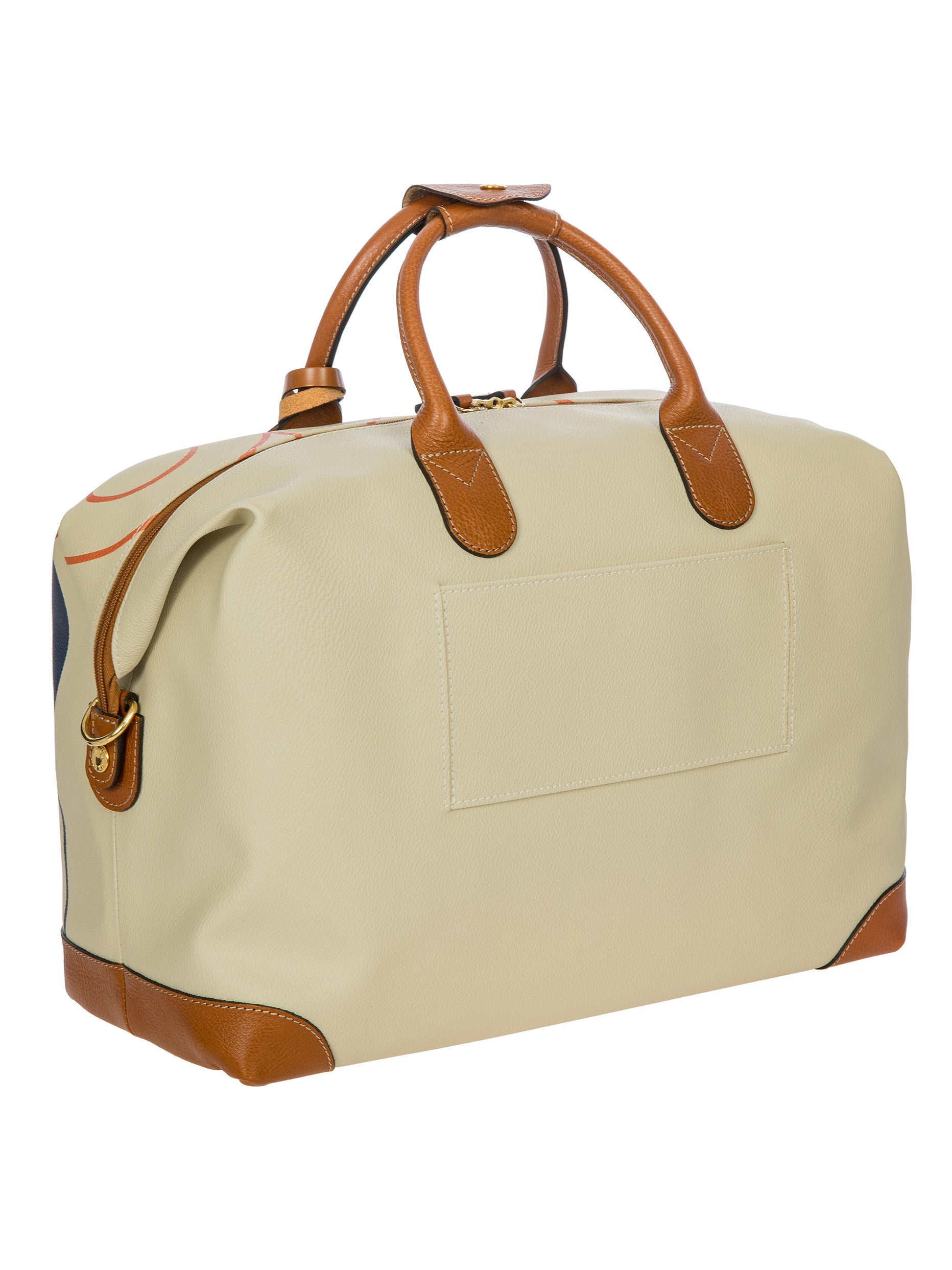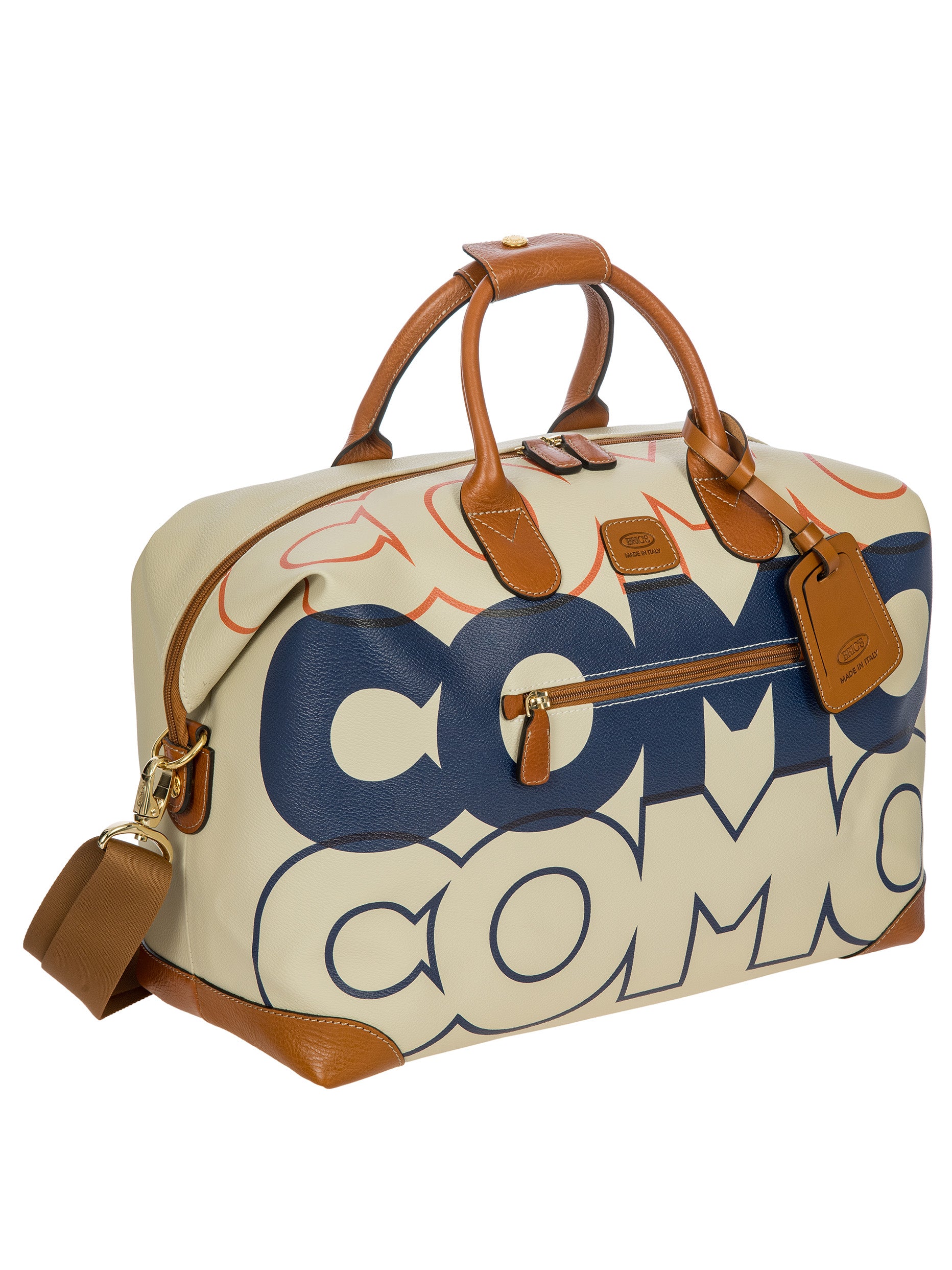 From the collection Como, this mid-size duffle bag was designed and made in Italy. Made of a soft material which features an embossed surface, it’s water-resistant and easy to clean. The main compartment is opened by a double-slide zip. At the back, the band that easily slips over the handle of wheeled luggage is a must-have convenience when travelling. The compact silhouette is surprisingly roomy inside, easily doing double-duty as an everyday bag. The fabric-lined compartment is complete with pockets for the seamless organisation of personal items. On the exterior, it’s trimmed by real leather details and completed by a detachable and removable shoulder strap that makes carrying this duffel comfortable and practical.