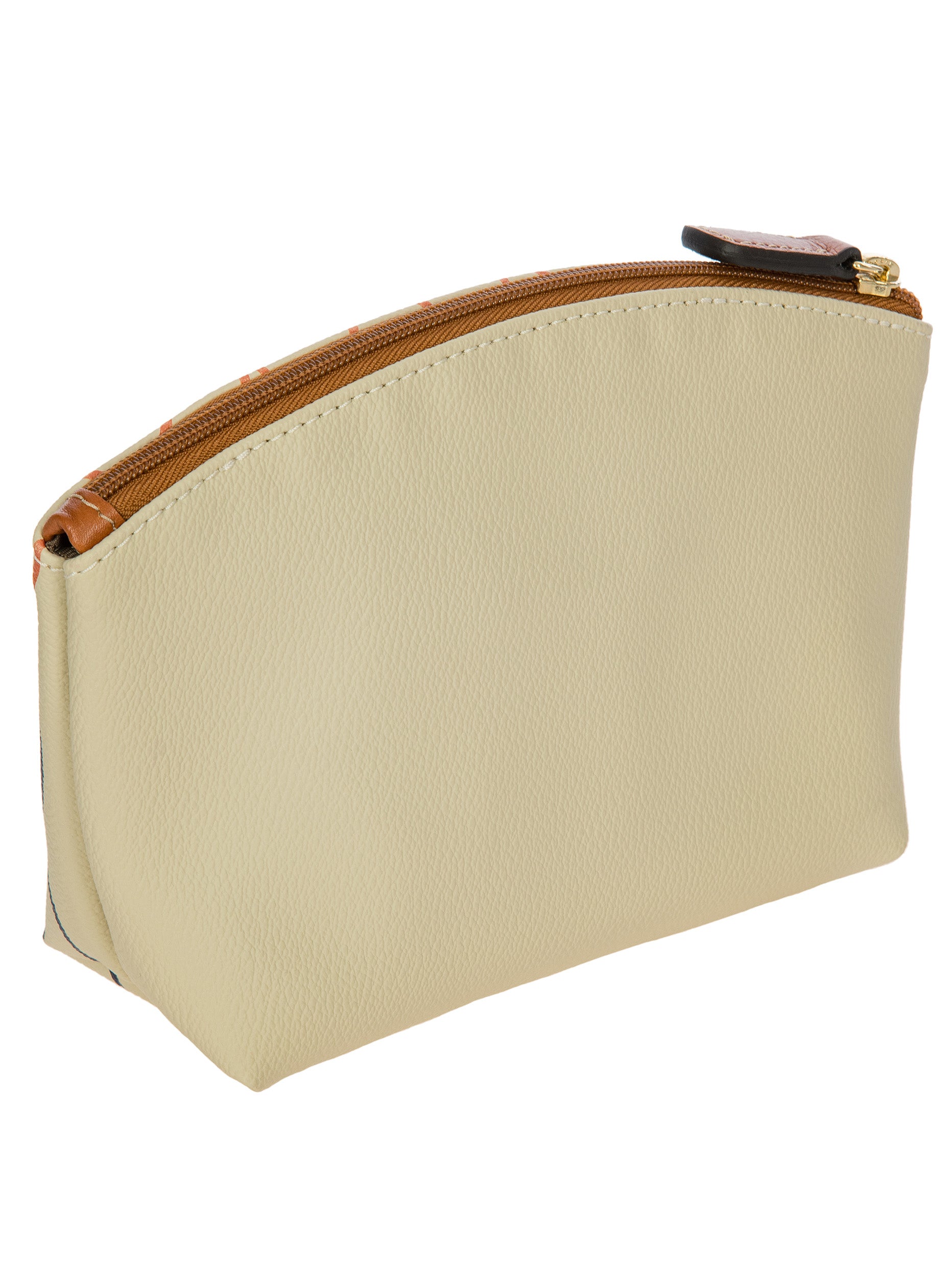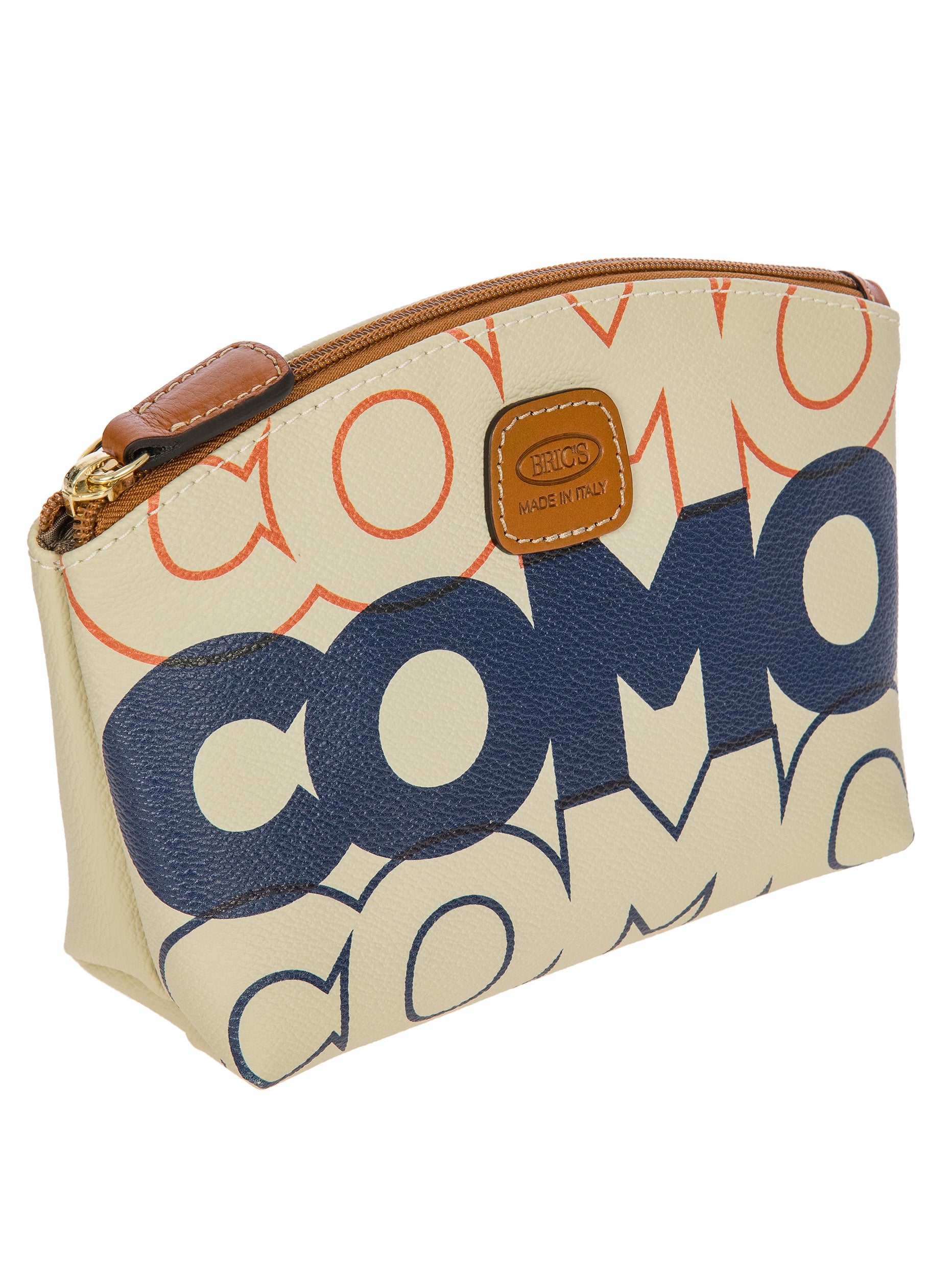 From the collection Como, this small cosmetic case was designed and made in Italy. Made of a soft material which features an embossed surface, it’s water-resistant and easy to clean. Closed with a zip, fabric lines the inside, while the outside is trimmed in real leather details.