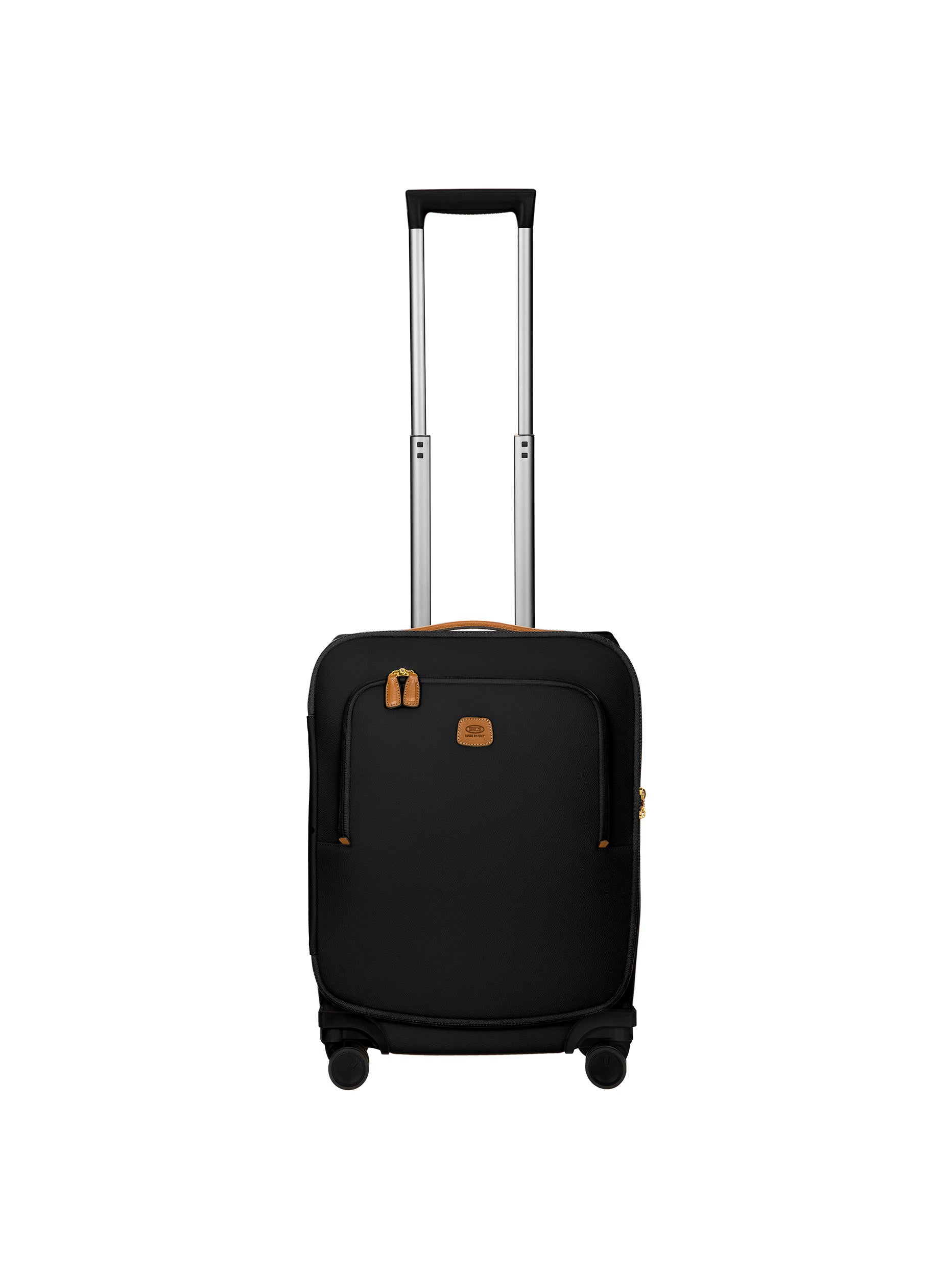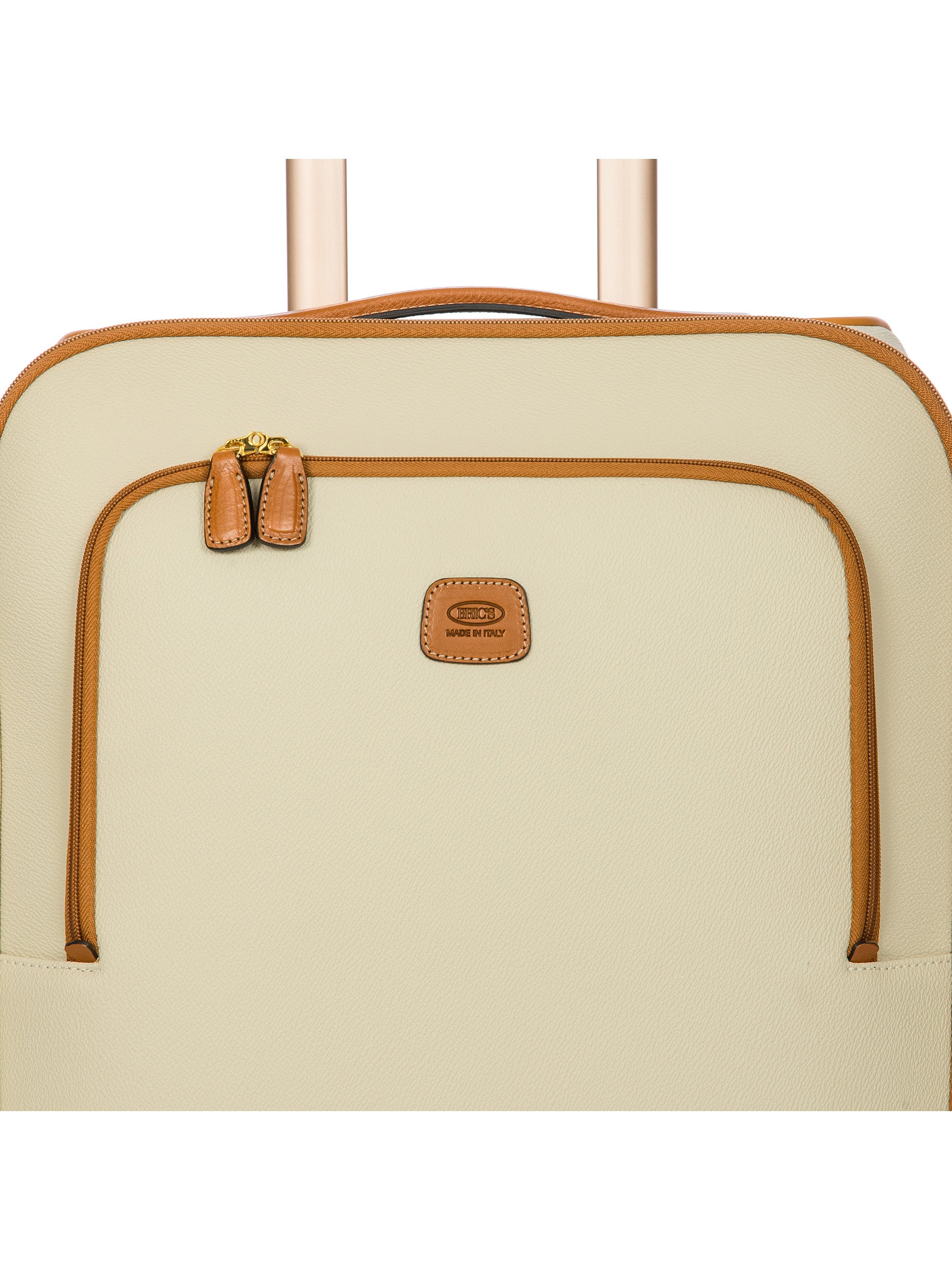 Designed and made in Italy, this cabin trolley from the Firenze Collection is practical and chic. In an iconic colour and finish that’s quintessentially Bric’s, the expertly crafted leather-effect exterior is water-resistant and very easy to clean. The structure of this trolley ensures stellar performance: the outer fabric has been applied to a self-supporting, crush-resistant structure that’s hard at the sides. This ensures it will stand up to impact and, because it ‘remembers’ its original shape, it won’t warp - no matter what. The inner fabric lining features a fine Bric’s logo print. The front zip compartment has a laptop sleeve and pockets for other objects. The main compartment of the trolley is opened by a double-slide zip. Integrated TSA lock. The four swivel wheels move quietly and rotate a full 360° for guaranteed manoeuvrability, equipped with ball bearings that create a smooth ride. The wheels are recessed to maximise the capacity of the suitcase. To ensure comfort and ease of use, the retractable handle is made up of robust, sturdy aluminium tubes with intermediate stop positions and an ergonomic grip. Integrated address tag carrier. The exterior is trimmed by a top handle and details in real leather, a distinguishing Bric’s detail.