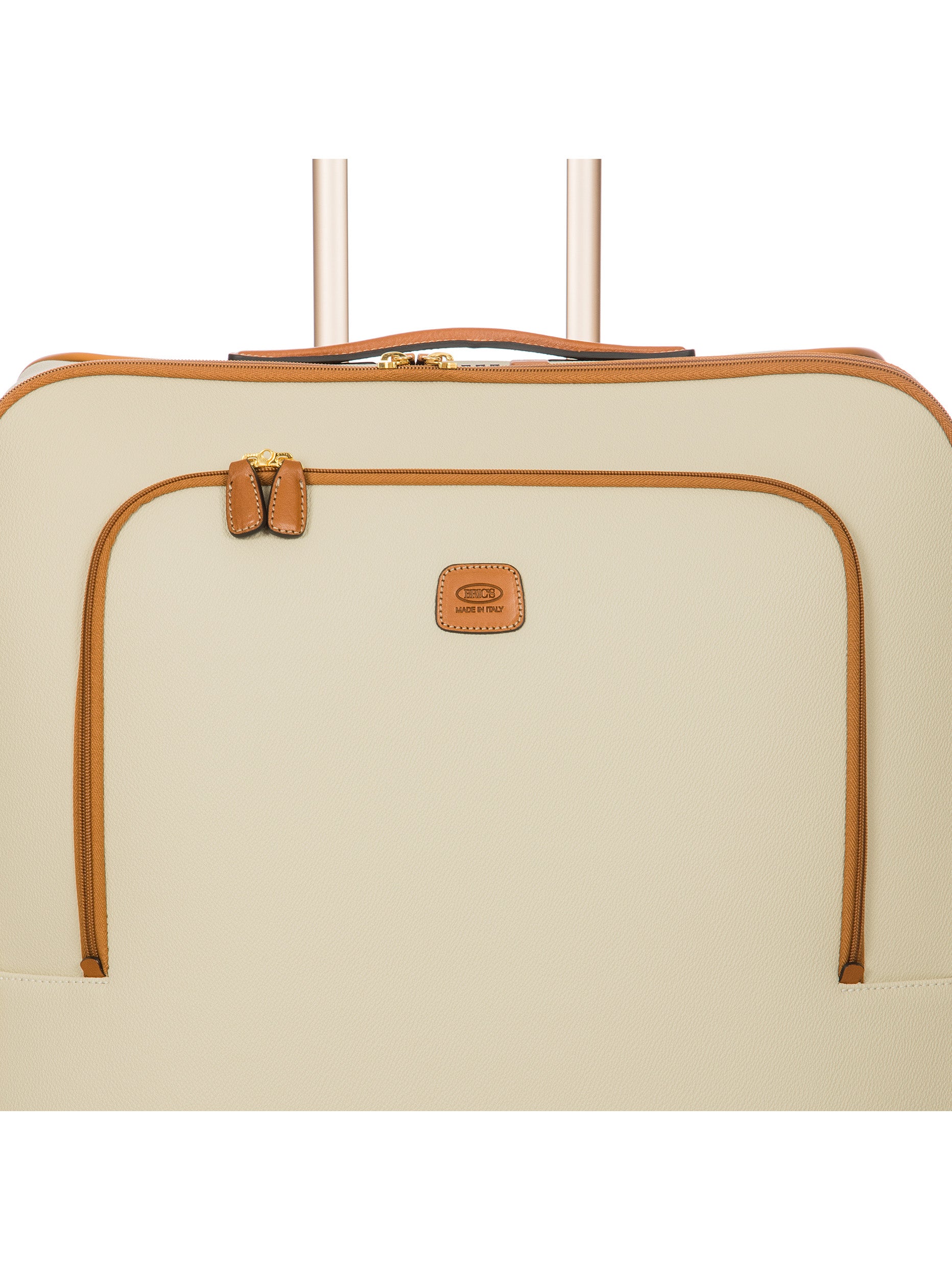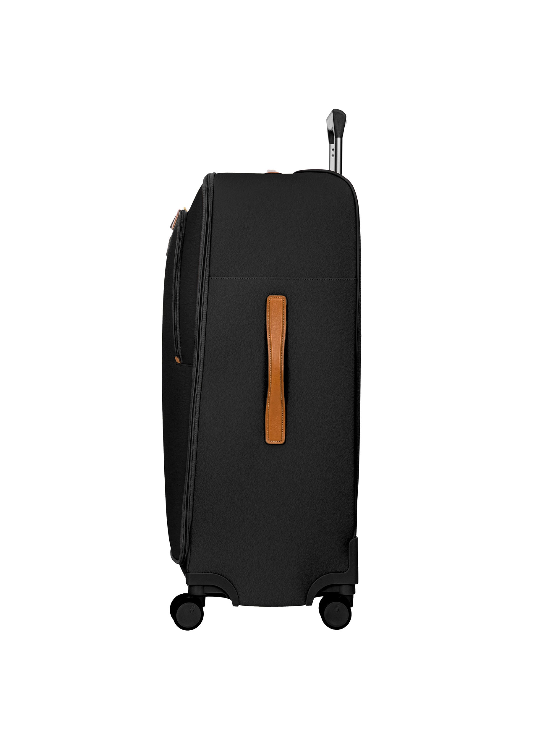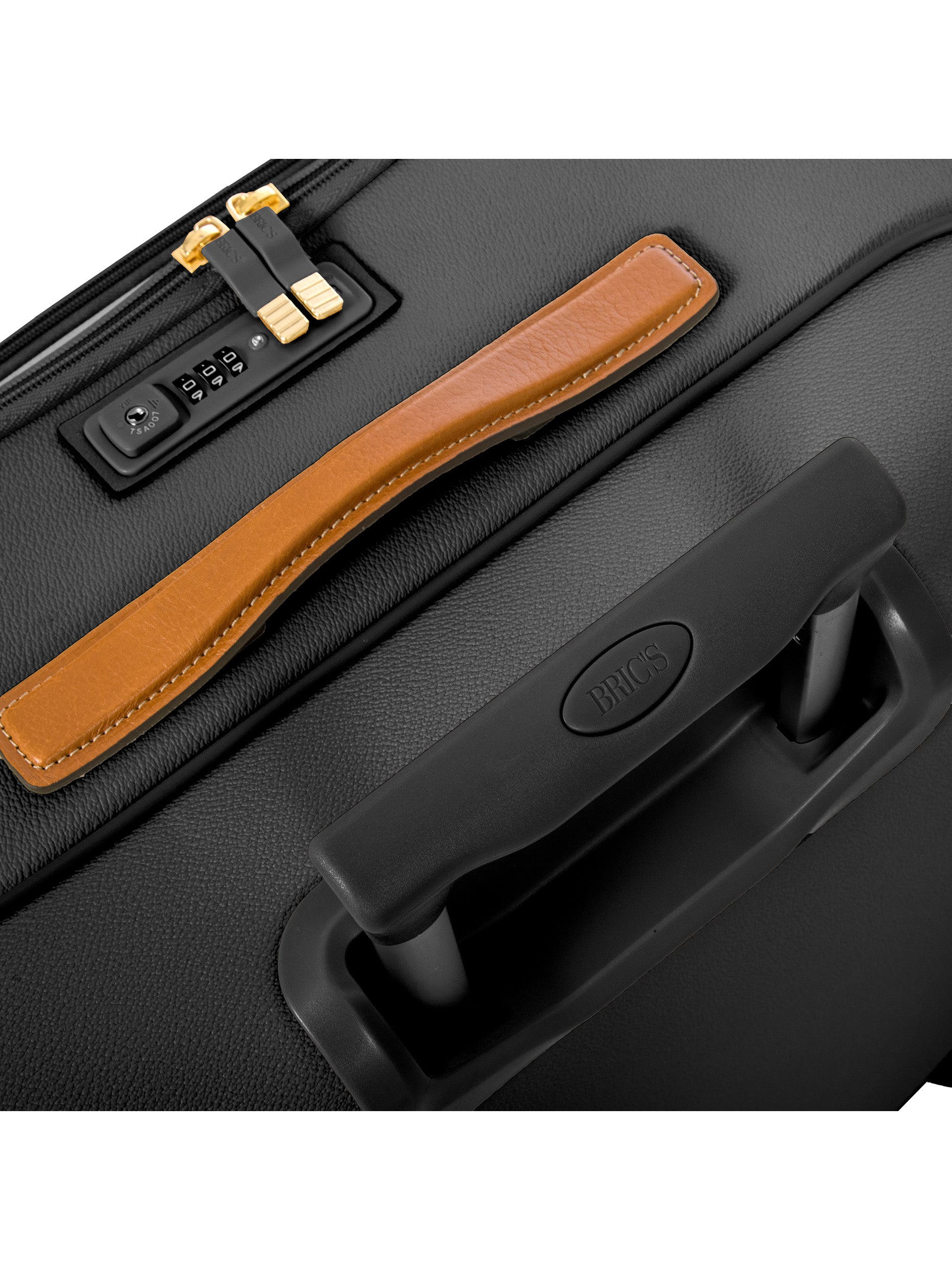 Designed and made in Italy, this medium trolley from the Firenze Collection is elegant and practical. In an iconic colour and finish that’s quintessentially Bric’s, the expertly crafted leather-effect exterior is water-resistant and very easy to clean. The structure of this trolley ensures stellar performance: the outer fabric has been applied to a self-supporting, crush-resistant structure that’s hard at the sides. This ensures it will stand up to impact and, because it ‘remembers’ its original shape, it won’t warp - no matter what. The inner fabric lining features a fine Bric’s logo print. The front zip pocket holds items that are essential to always have to hand. The main compartment of the trolley is opened by a double-slide zip. Integrated TSA lock. The four swivel wheels move quietly and rotate a full 360° for guaranteed manoeuvrability, equipped with ball bearings that create a smooth ride. The wheels are recessed to maximise the capacity of the suitcase. To ensure comfort and ease of use, the retractable handle is made up of robust, sturdy aluminium tubes with intermediate stop positions and an ergonomic grip. Integrated address tag carrier. The exterior is trimmed by carry handles and details in real leather, a distinguishing Bric’s detail.