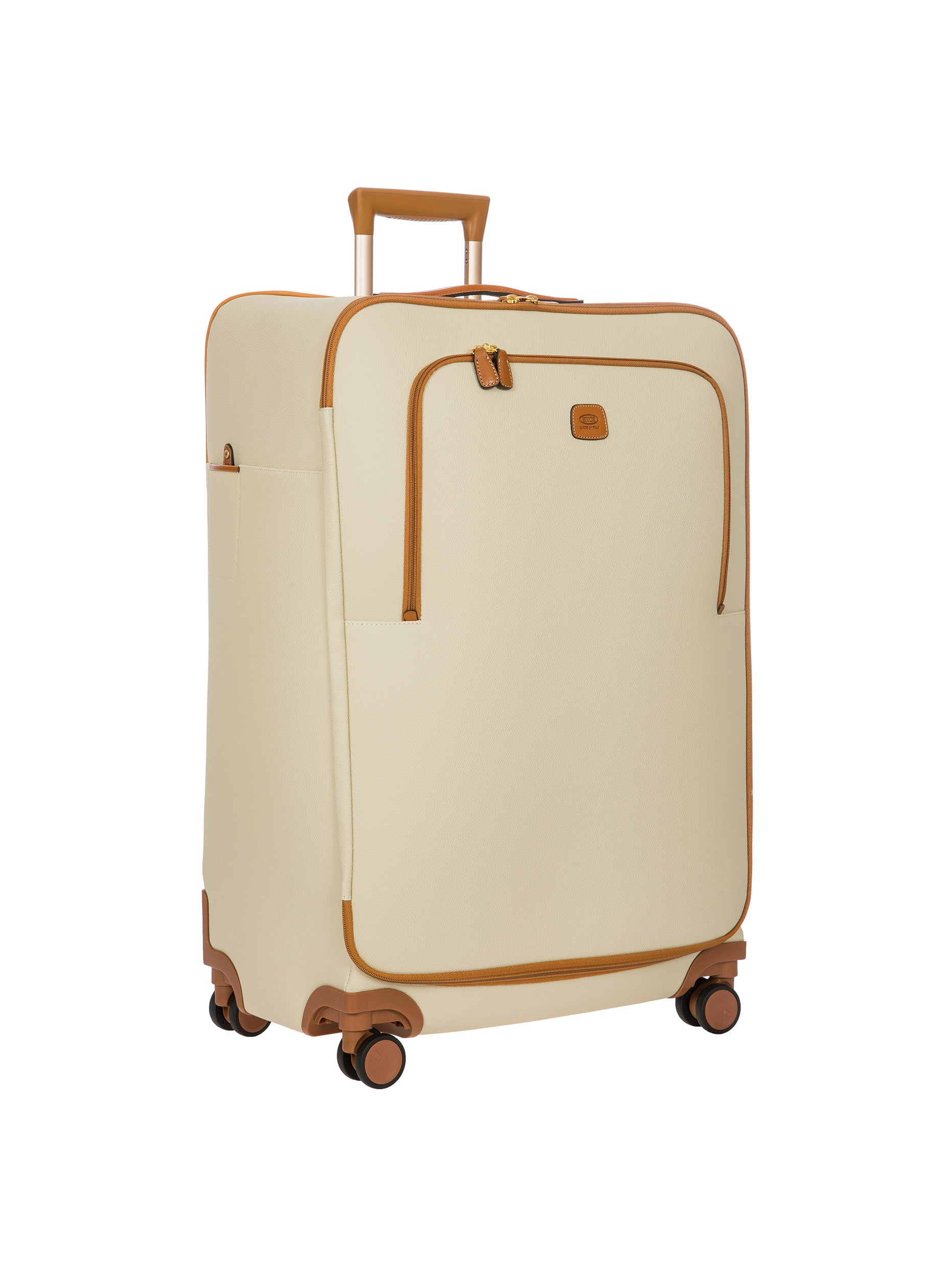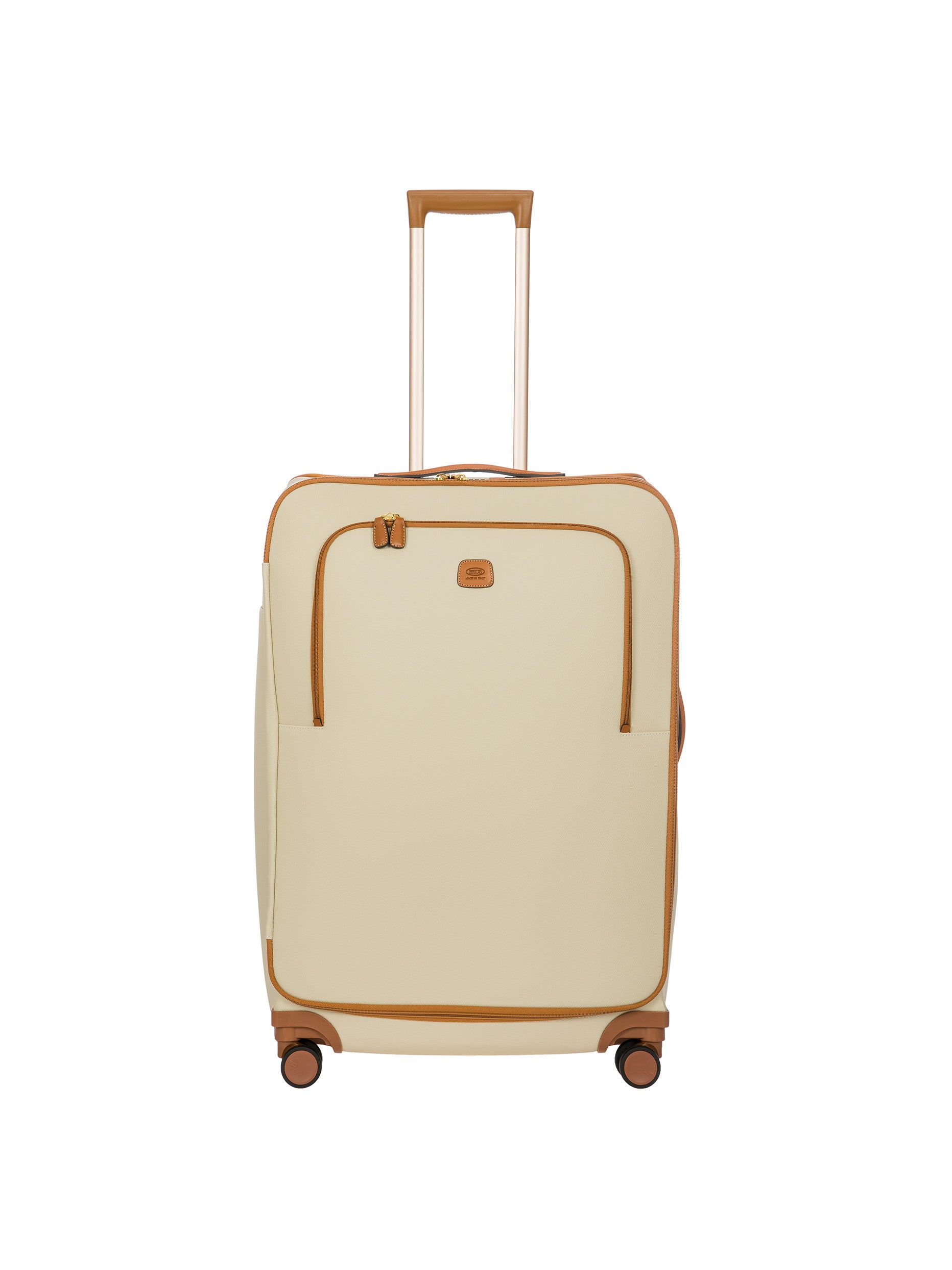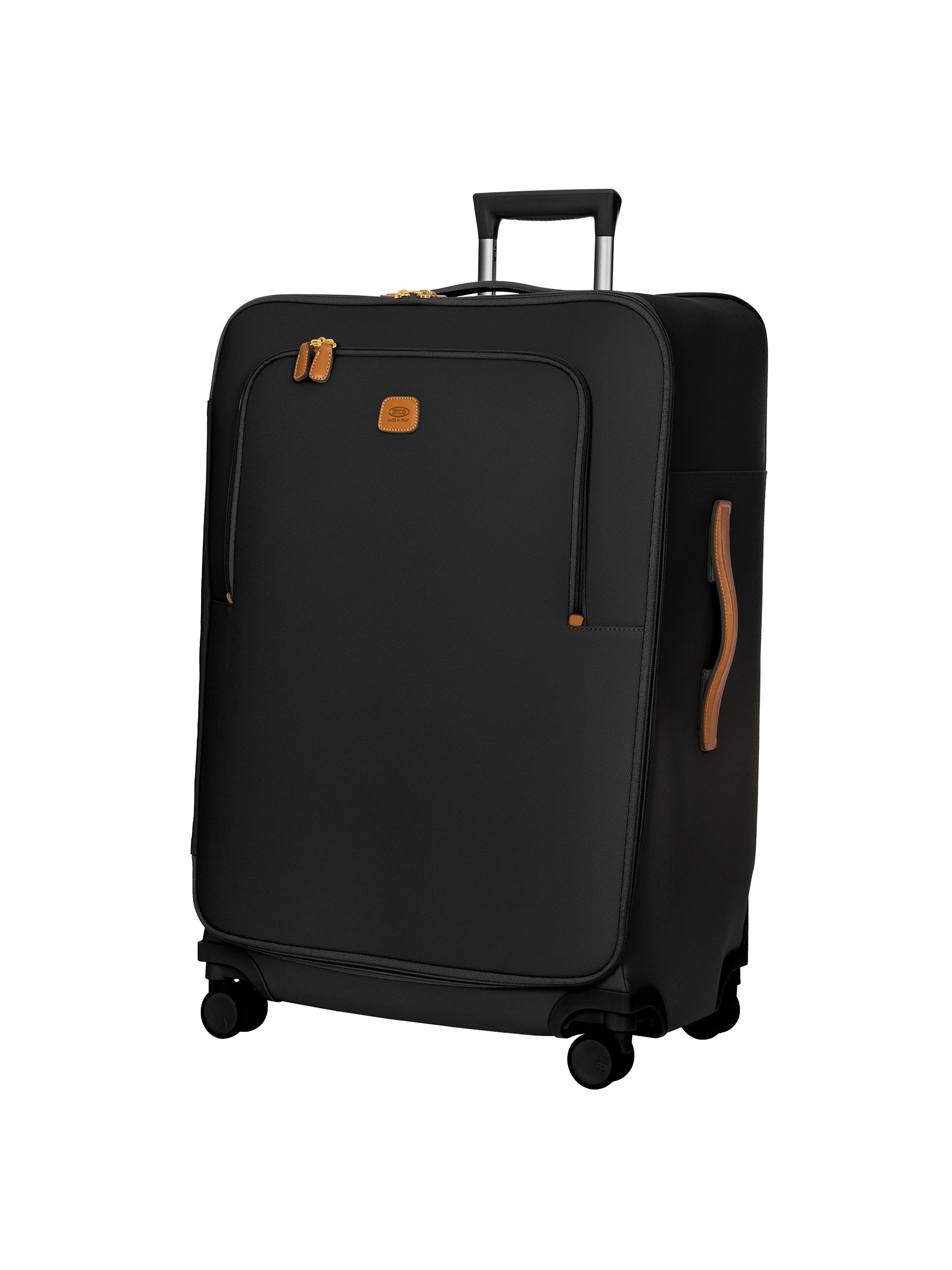 Designed and made in Italy, this medium trolley from the Firenze Collection is elegant and practical. In an iconic colour and finish that’s quintessentially Bric’s, the expertly crafted leather-effect exterior is water-resistant and very easy to clean. The structure of this trolley ensures stellar performance: the outer fabric has been applied to a self-supporting, crush-resistant structure that’s hard at the sides. This ensures it will stand up to impact and, because it ‘remembers’ its original shape, it won’t warp - no matter what. The inner fabric lining features a fine Bric’s logo print. The front zip pocket holds items that are essential to always have to hand. The main compartment of the trolley is opened by a double-slide zip. Integrated TSA lock. The four swivel wheels move quietly and rotate a full 360° for guaranteed manoeuvrability, equipped with ball bearings that create a smooth ride. The wheels are recessed to maximise the capacity of the suitcase. To ensure comfort and ease of use, the retractable handle is made up of robust, sturdy aluminium tubes with intermediate stop positions and an ergonomic grip. Integrated address tag carrier. The exterior is trimmed by carry handles and details in real leather, a distinguishing Bric’s detail.