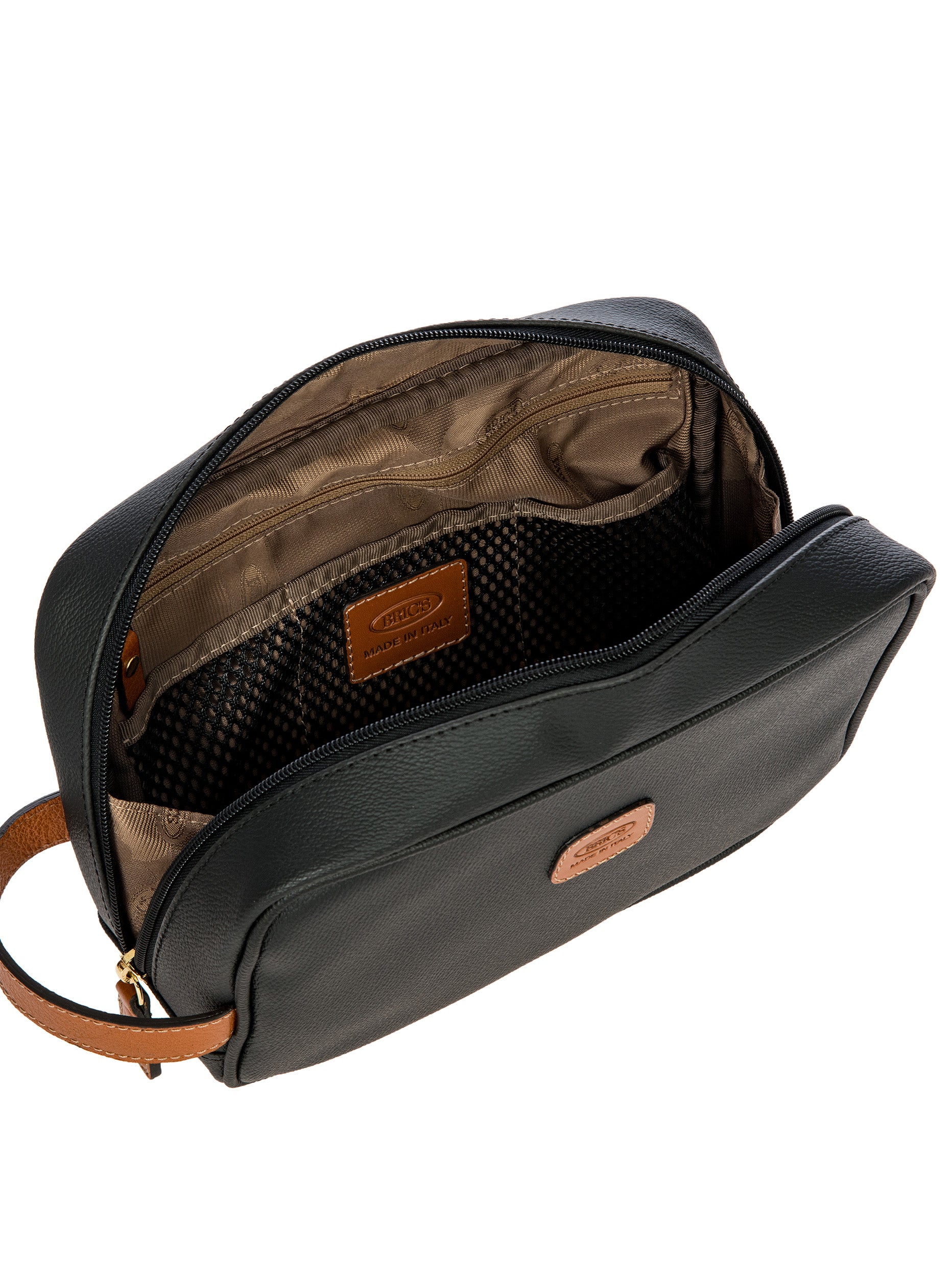 Necessaire from Bric's Firenze collection, made in soft, embossed synthetic material. The iconic and elegant design is completed by the fine, vegetable tanned, Tuscan leather finishes. EXTERIOR: convenient leather handle and zipped pocket on the side. INTERIOR: zipped pocket and side compartments; it comes with a convenient pouch attached to the side with press-stud buttons; when required it can be removed so that you can have all your favourite toiletries on hand.