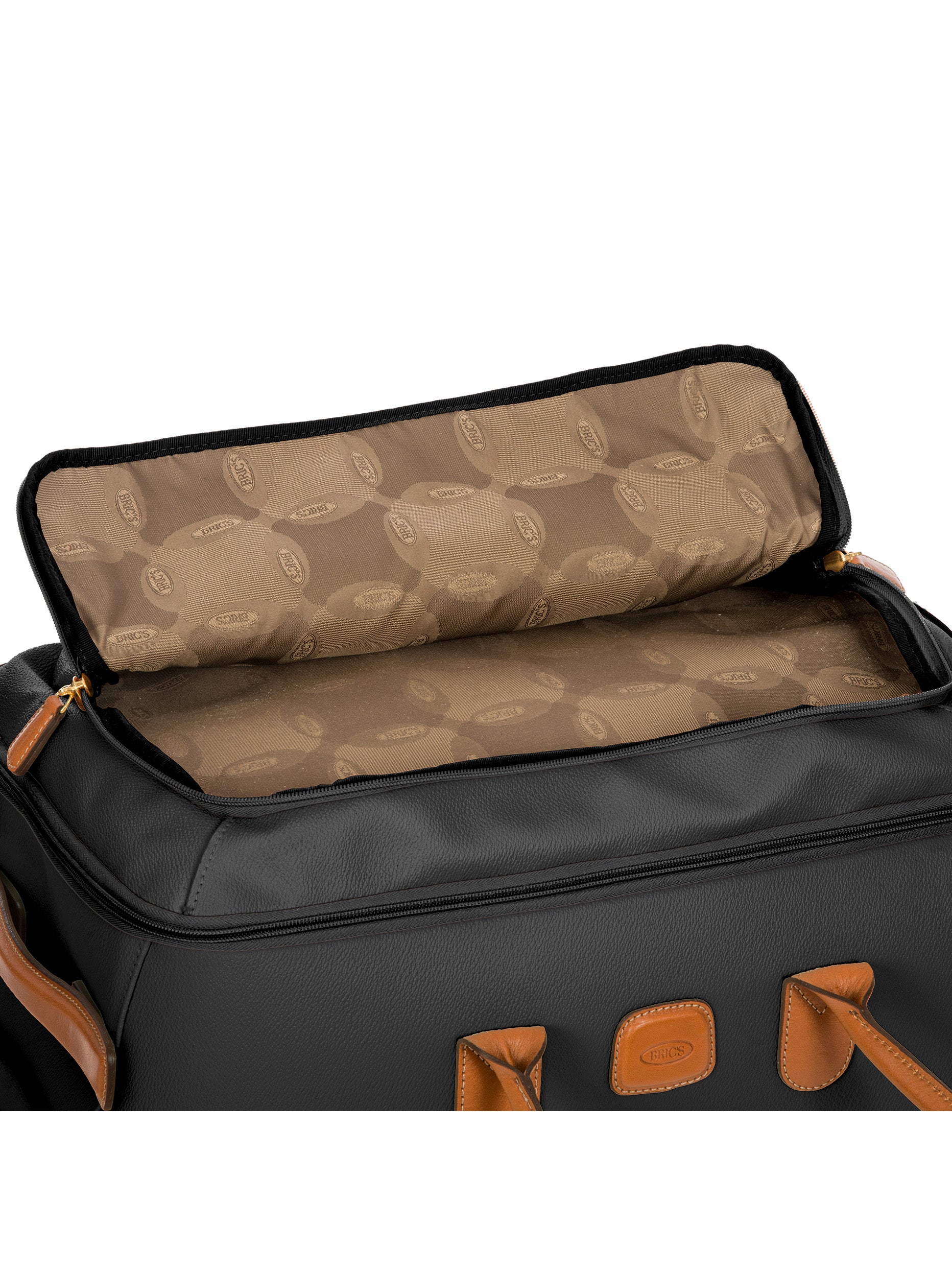 DETAILS: the zip pulls, the logo and the handle are finished in fine, vegetable tanned, Tuscan leather. This method, which is the most environmentally friendly, lends the leather an aged look over time; includes a leather address tag, a convenient transparent pouch that can hold liquids for airport security controls and a TSA lock with the Bric's logo; this is required for American airport security checks when travelling in the USA.