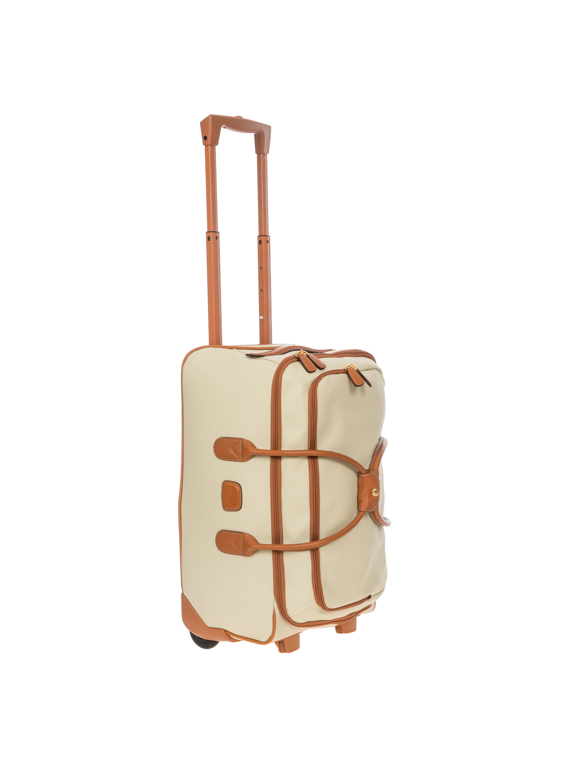 Wheeled cabin holdall from Bric's FIRENZE collection, made in embossed synthetic material that is both durable and lightweight. A unique style with a retro twist available in two elegant colour options - pink and cream. Its dimensions mean that it can be taken on board the plane with you as hand luggage.