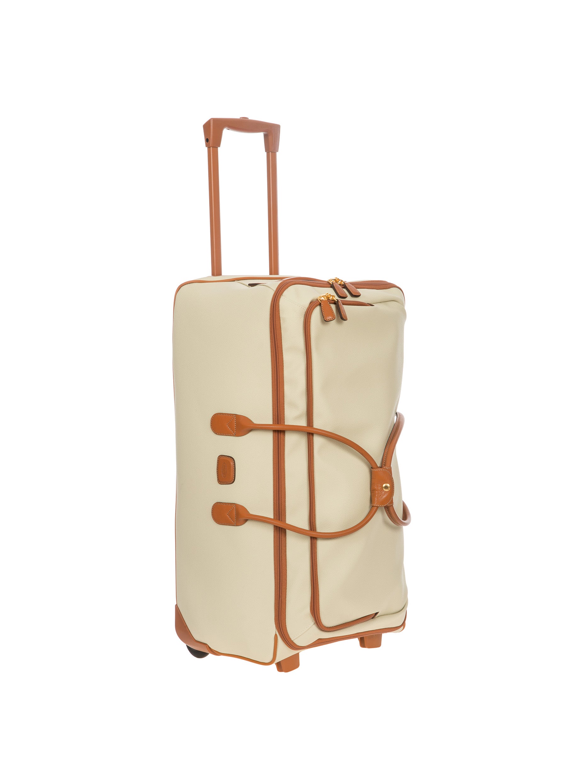 Wheeled holdall from Bric's FIRENZE collection, made in embossed synthetic material that is both durable and lightweight. A unique style with a retro twist available in two elegant colour options - pink and cream.