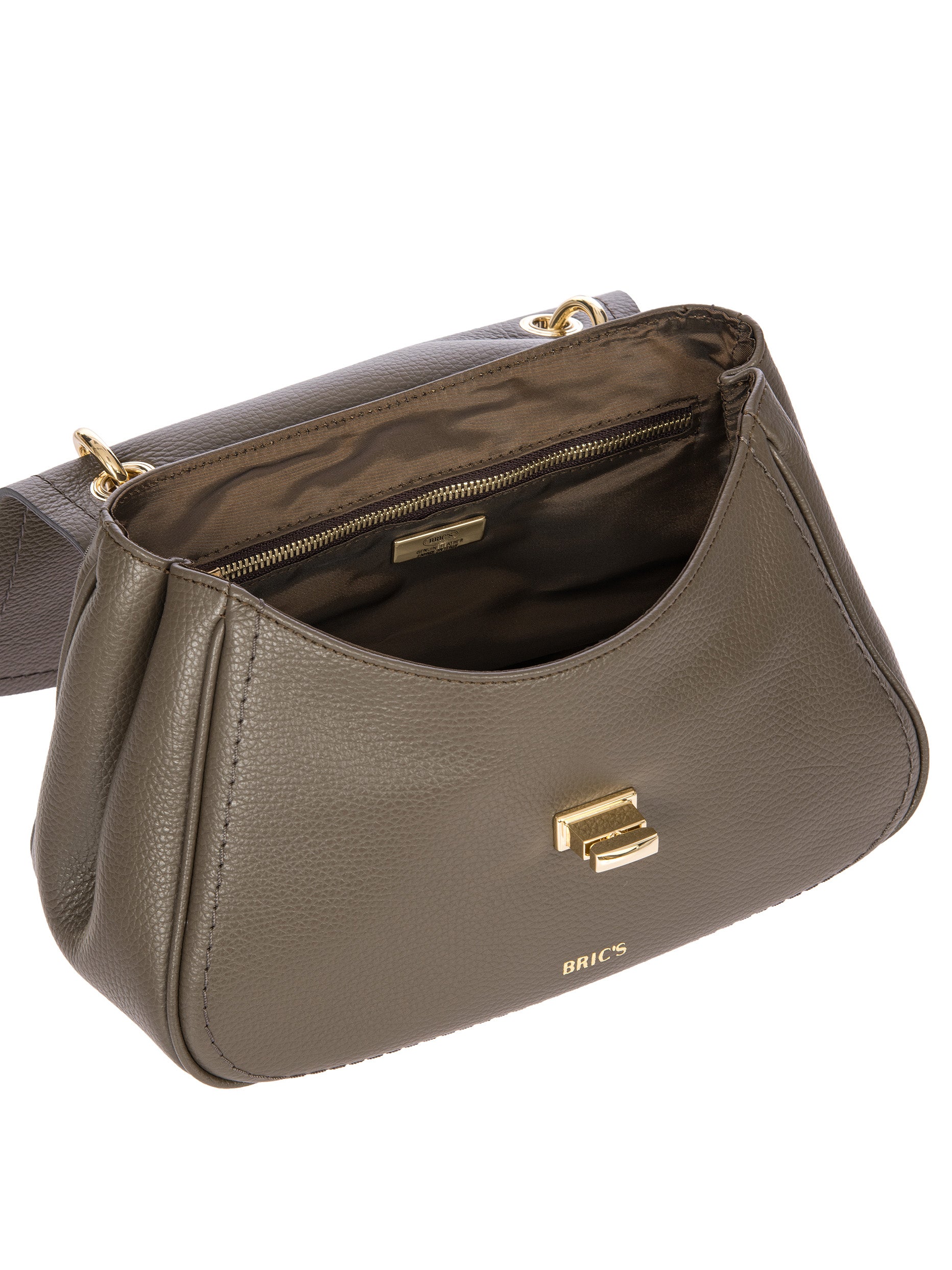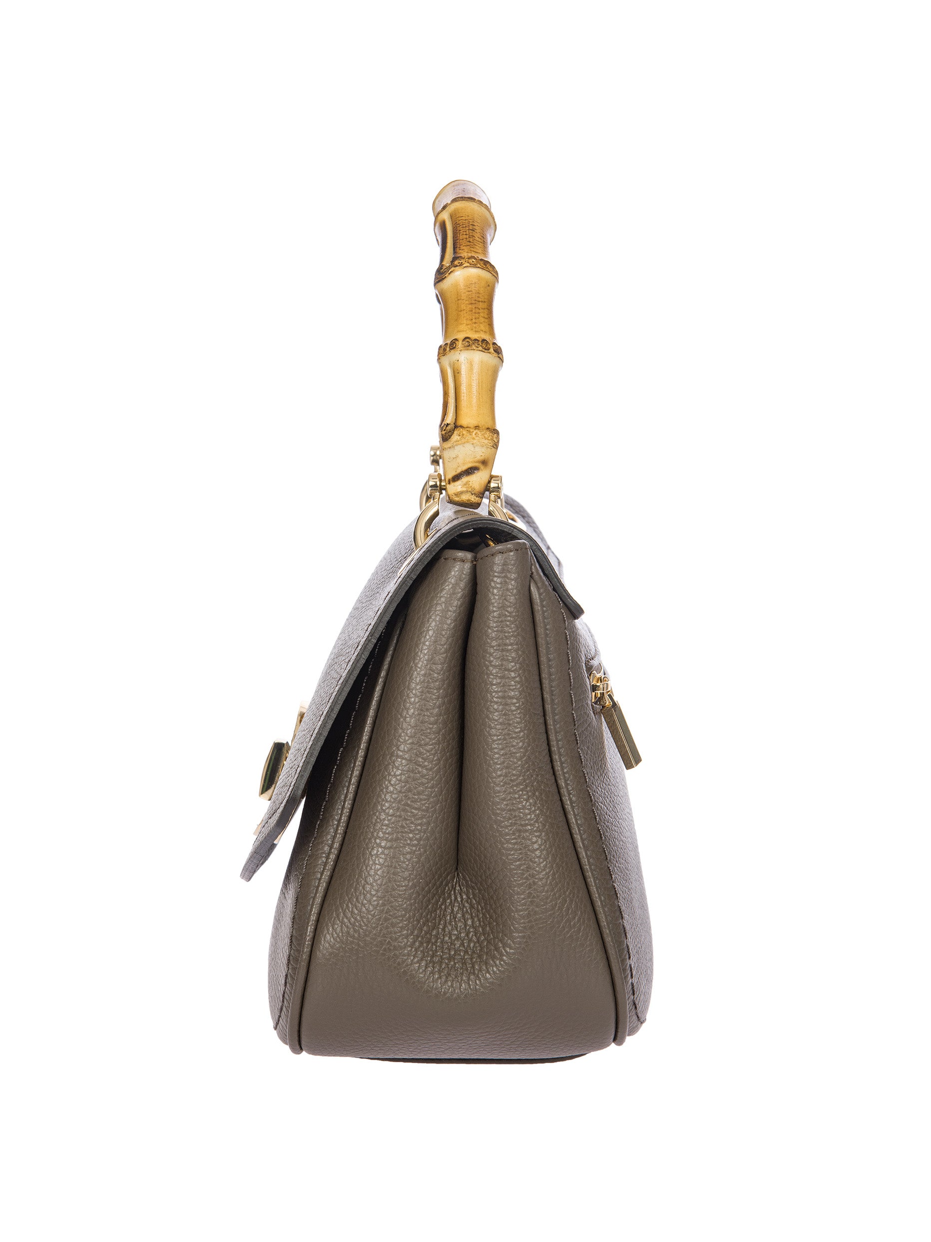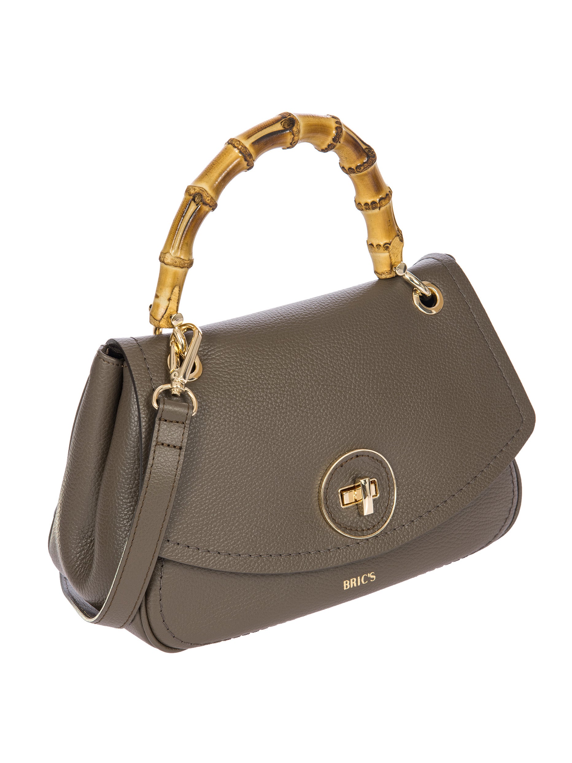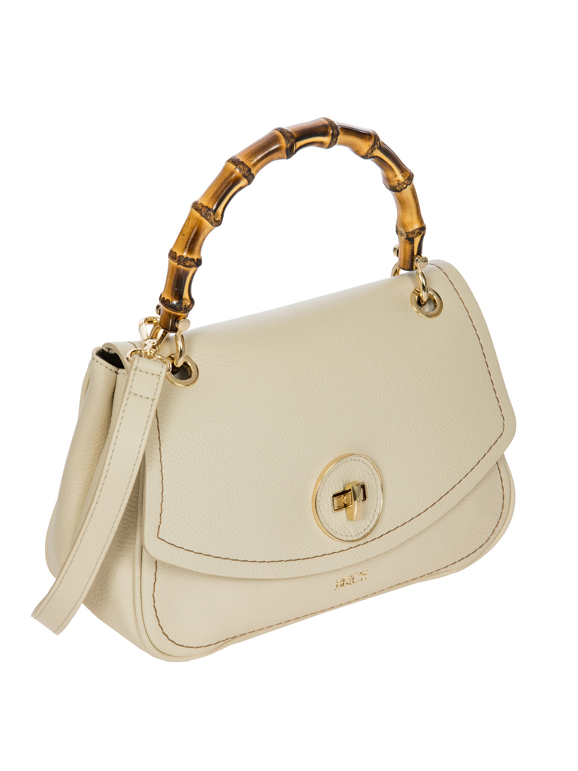 The Bric's Gondola Collection is exclusively designed and made in Italy. Created using soft, durable and lightweight genuine leather, with an elegant stamped Bric's logo. - Rigid real bamboo handle - Additional detachable narrow genuine leather shoulder strap - Swivel clasp - Zipped outside pocket - Inside pockets - Metal elements with a gold finish - Soft fabric lining - Customisable with an additional shoulder strap