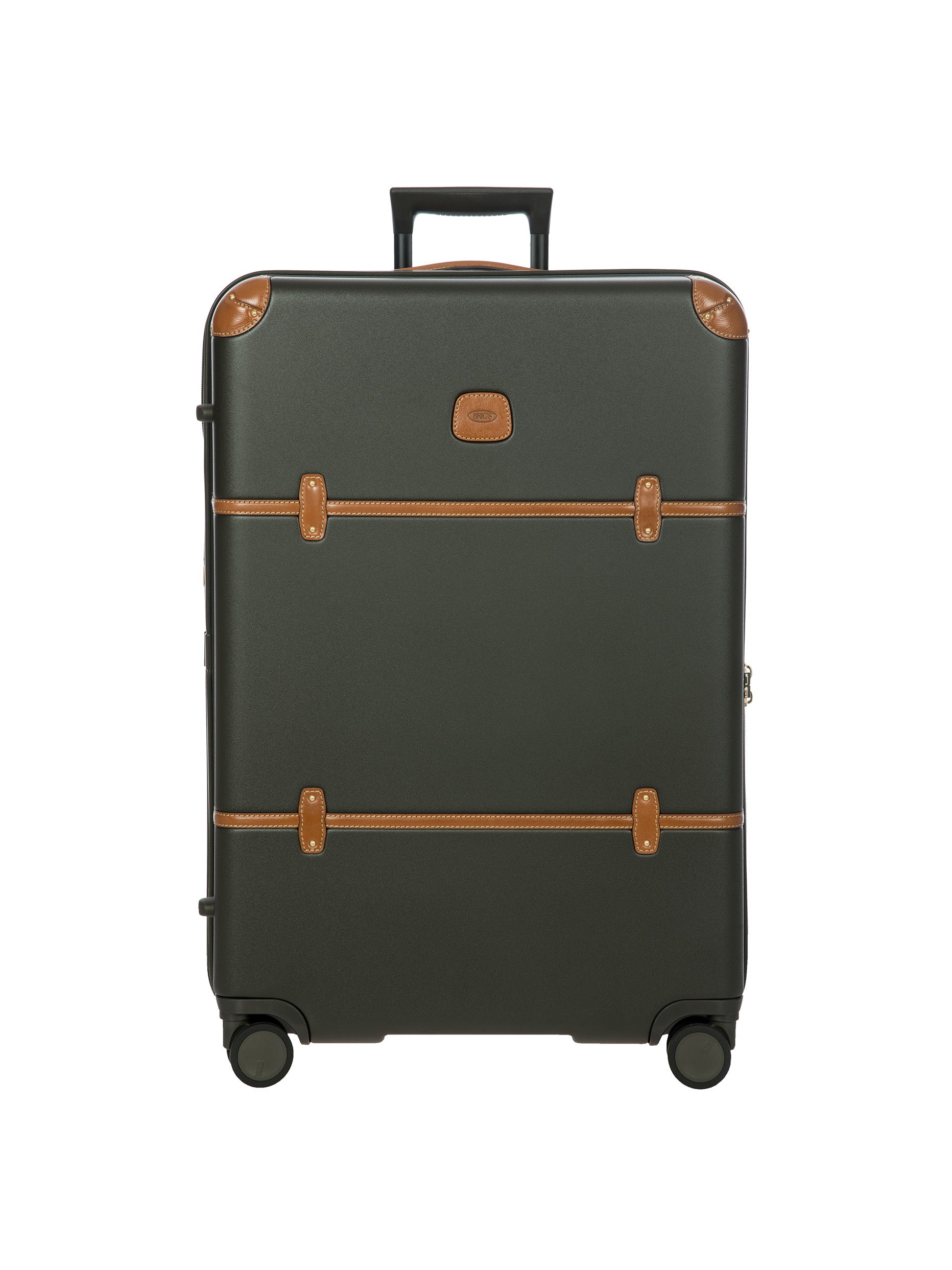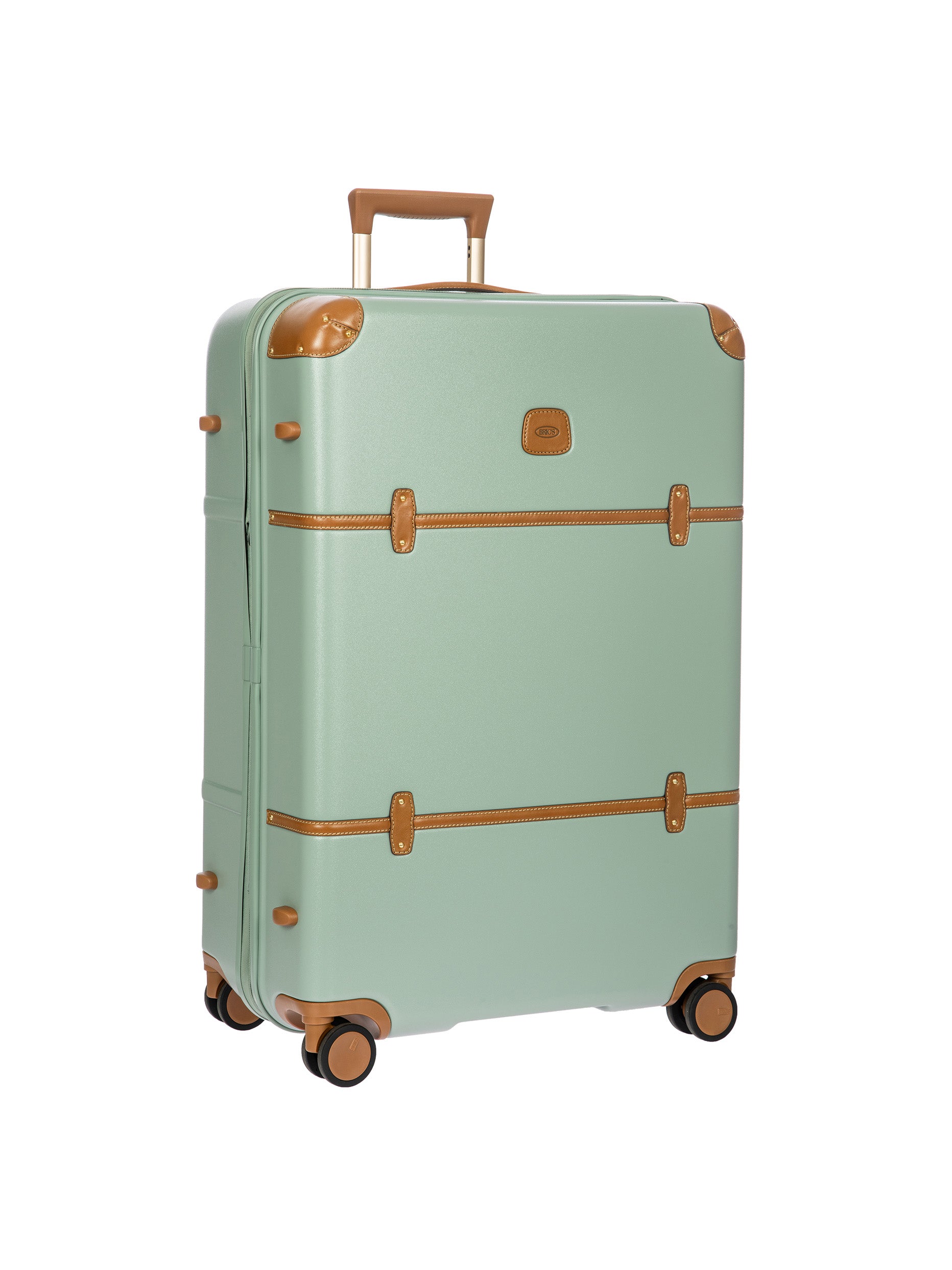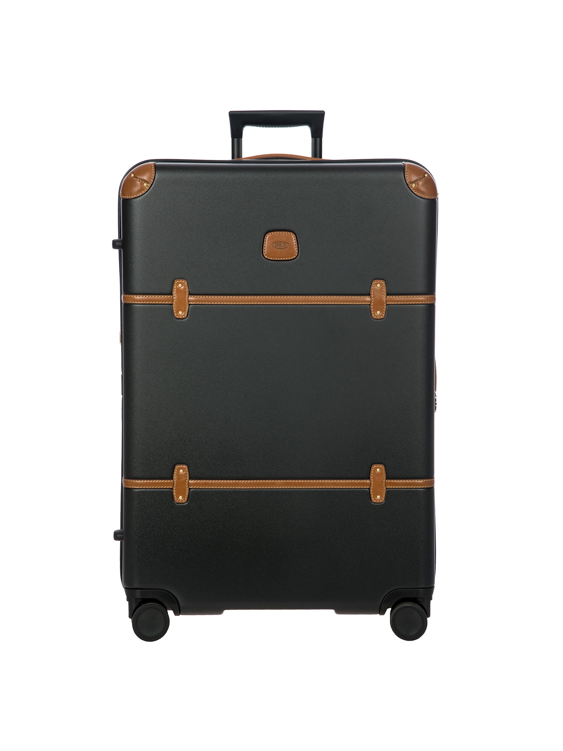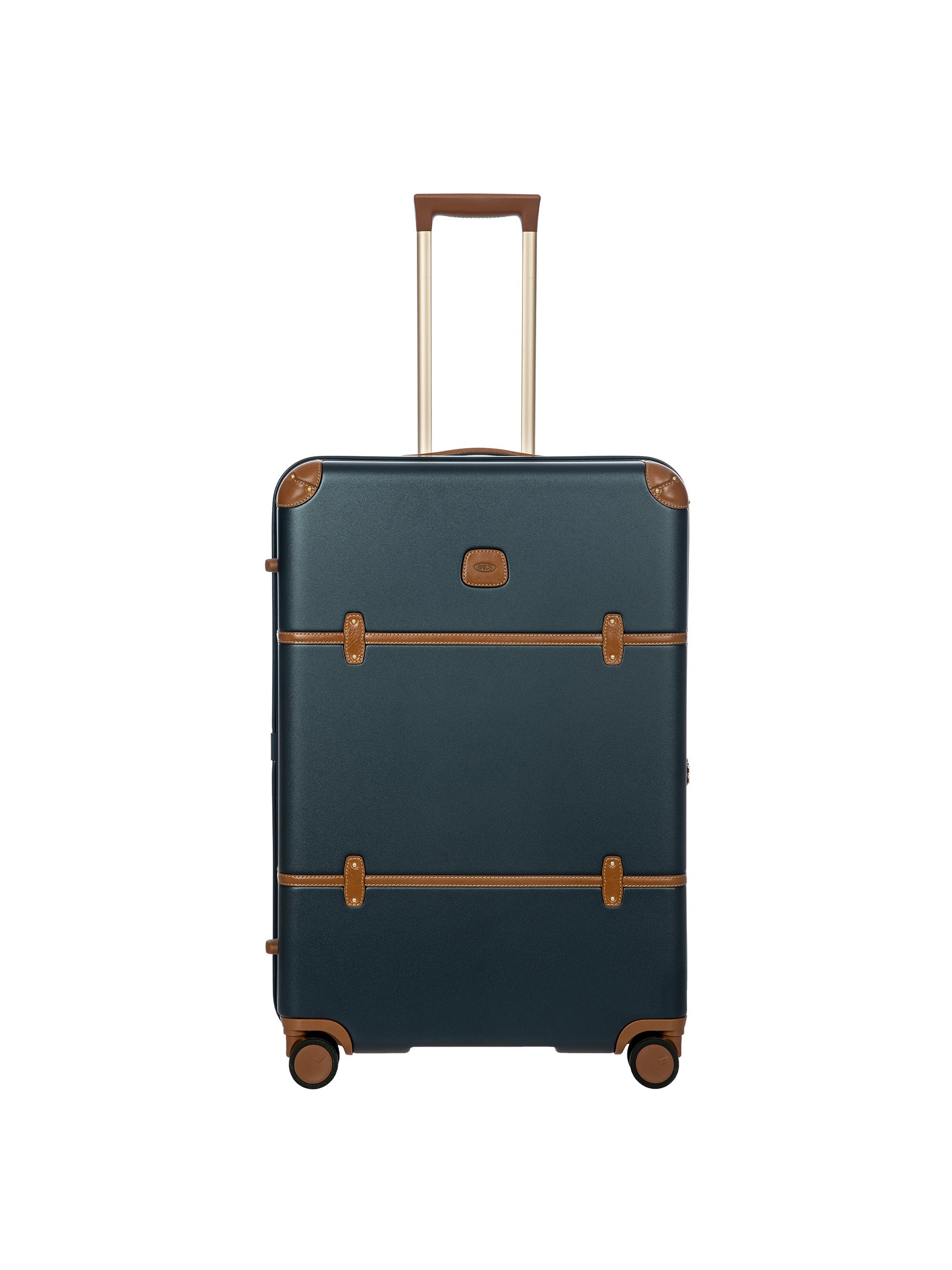 The Bellagio Collection is characterised by unmistakable design, our most iconic yet. This large trolley is made of recycled polycarbonate, a lightweight, flexible material which is ultra durable and impact-resistant. The closure comes with a TSA lock and an ultra-secure zip: this anti-tampering system ensures an optimised level of protection from attempted theft. The inside is complete with a compression system, divided into two compartments to ensure the effective organisation of all your items. Moreover, the expandable zip closure makes it possible to increase its capacity. The lining is easily removed thanks to a special zip: that way, if needed, it can be washed separately. To ensure comfort and ease of use, the retractable handle is made up of robust, sturdy aluminium tubes with intermediate stop positions so that its height can be adjusted as needed, and an ergonomic grip. The four double wheels move quietly and rotate a full 360° for guaranteed manoeuvrability, equipped with ball bearings that create a smooth ride. Moreover, the wheels are recessed in the shell, thereby increasing the capacity of the trolley. Bric’s distinctive real leather accents trim the outside of the Bellagio trolley, complemented by refined logo details. The leather address tag carrier is an essential finishing touch. To better organize the suitcase, the hanger set and the garment bag in fabric can be purchased separately. Transparent cover included.