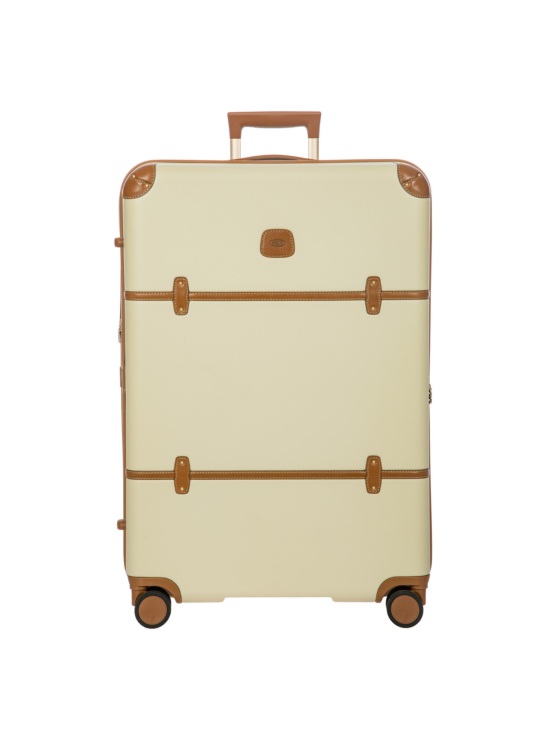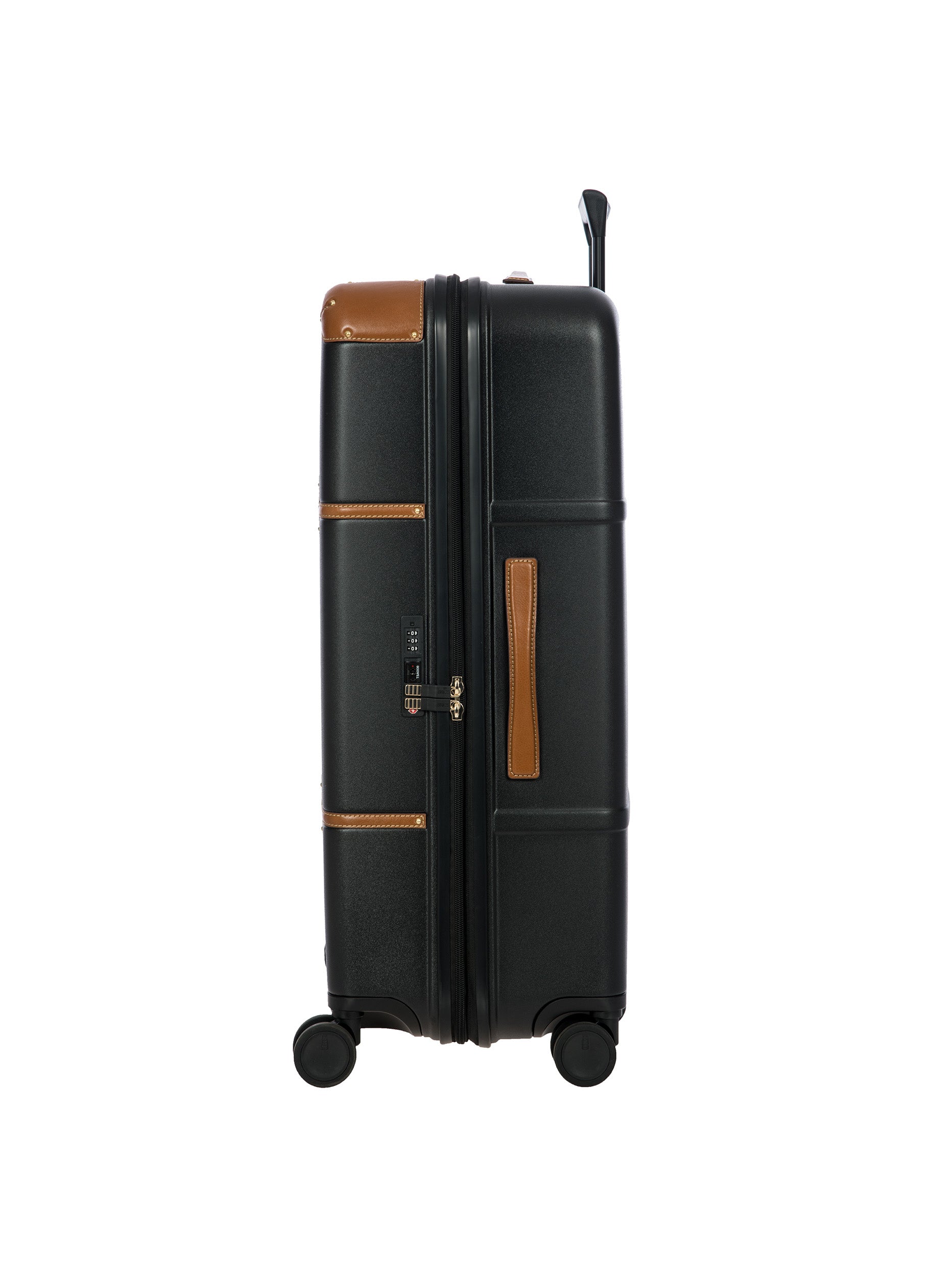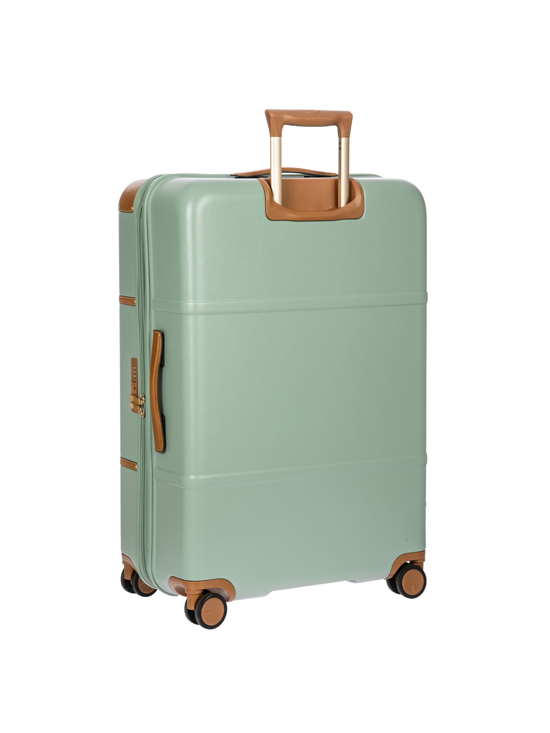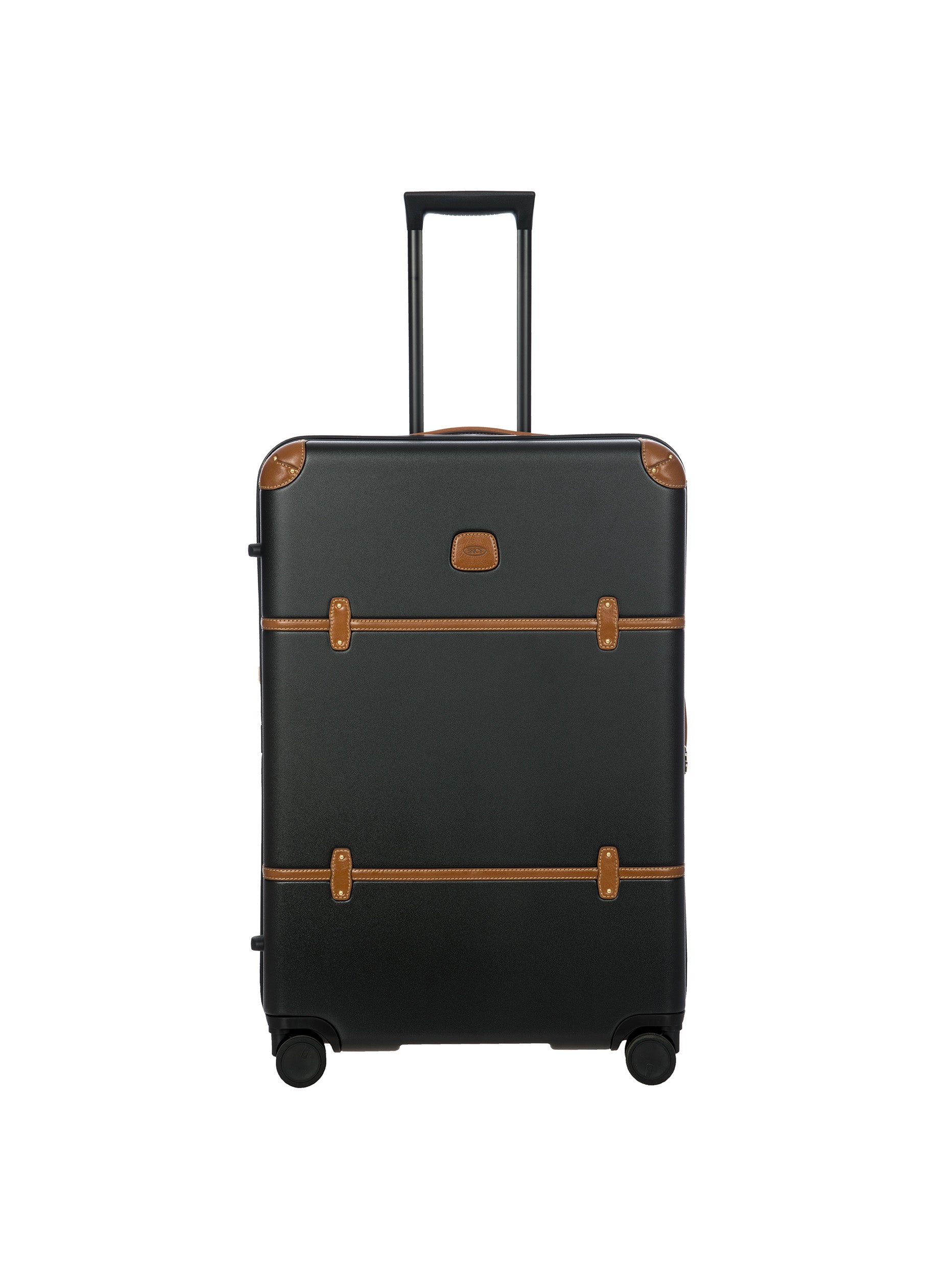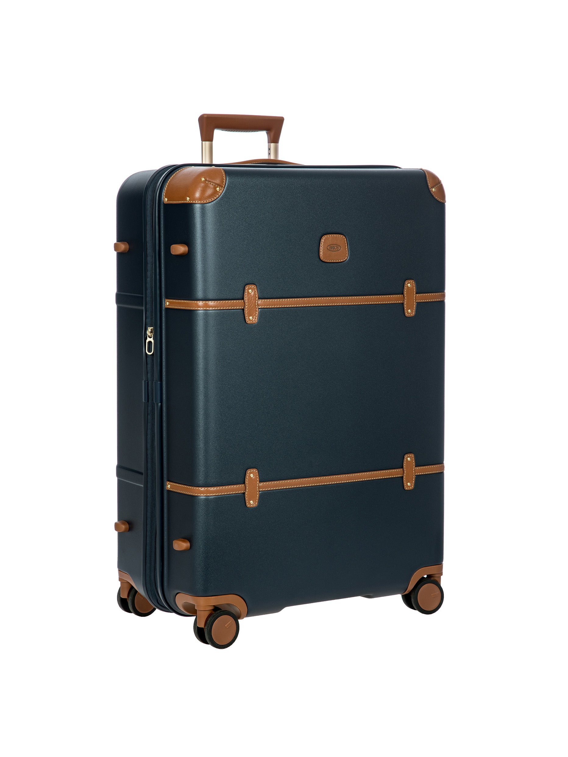 The Bellagio Collection is characterised by unmistakable design, our most iconic yet. This large trolley is made of recycled polycarbonate, a lightweight, flexible material which is ultra durable and impact-resistant. The closure comes with a TSA lock and an ultra-secure zip: this anti-tampering system ensures an optimised level of protection from attempted theft. The inside is complete with a compression system, divided into two compartments to ensure the effective organisation of all your items. Moreover, the expandable zip closure makes it possible to increase its capacity. The lining is easily removed thanks to a special zip: that way, if needed, it can be washed separately. To ensure comfort and ease of use, the retractable handle is made up of robust, sturdy aluminium tubes with intermediate stop positions so that its height can be adjusted as needed, and an ergonomic grip. The four double wheels move quietly and rotate a full 360° for guaranteed manoeuvrability, equipped with ball bearings that create a smooth ride. Moreover, the wheels are recessed in the shell, thereby increasing the capacity of the trolley. Bric’s distinctive real leather accents trim the outside of the Bellagio trolley, complemented by refined logo details. The leather address tag carrier is an essential finishing touch. To better organize the suitcase, the hanger set and the garment bag in fabric can be purchased separately. Transparent cover included.