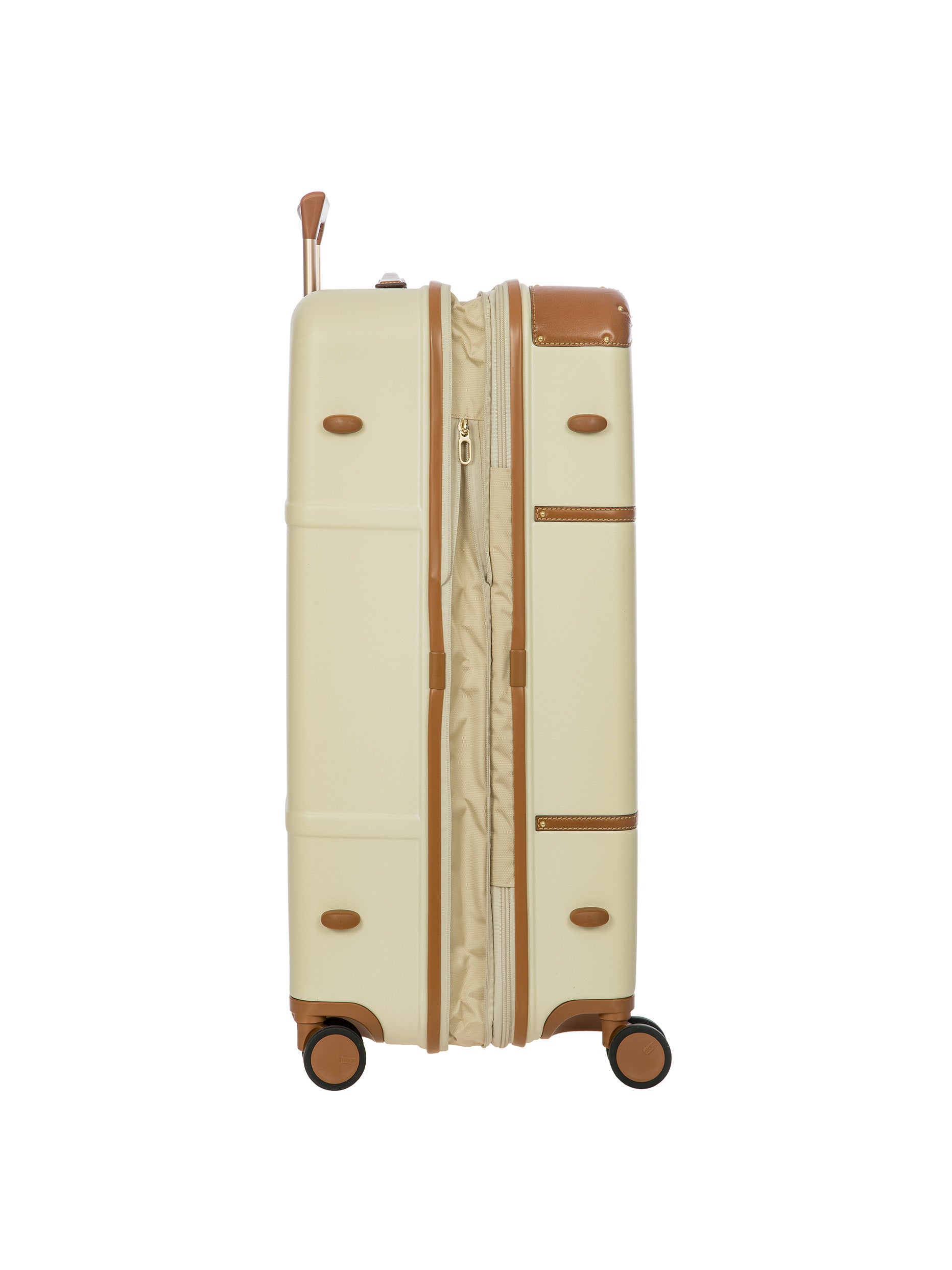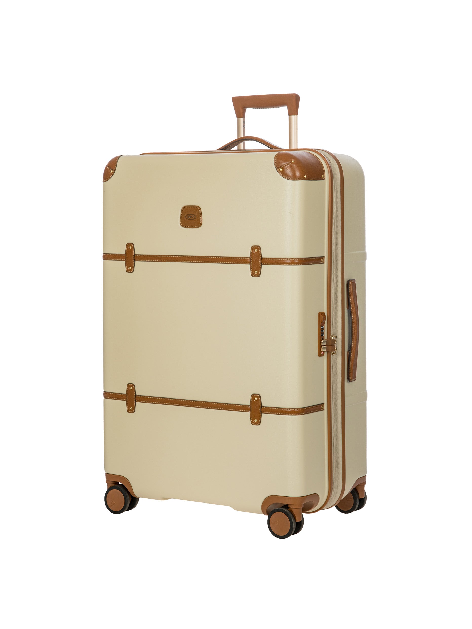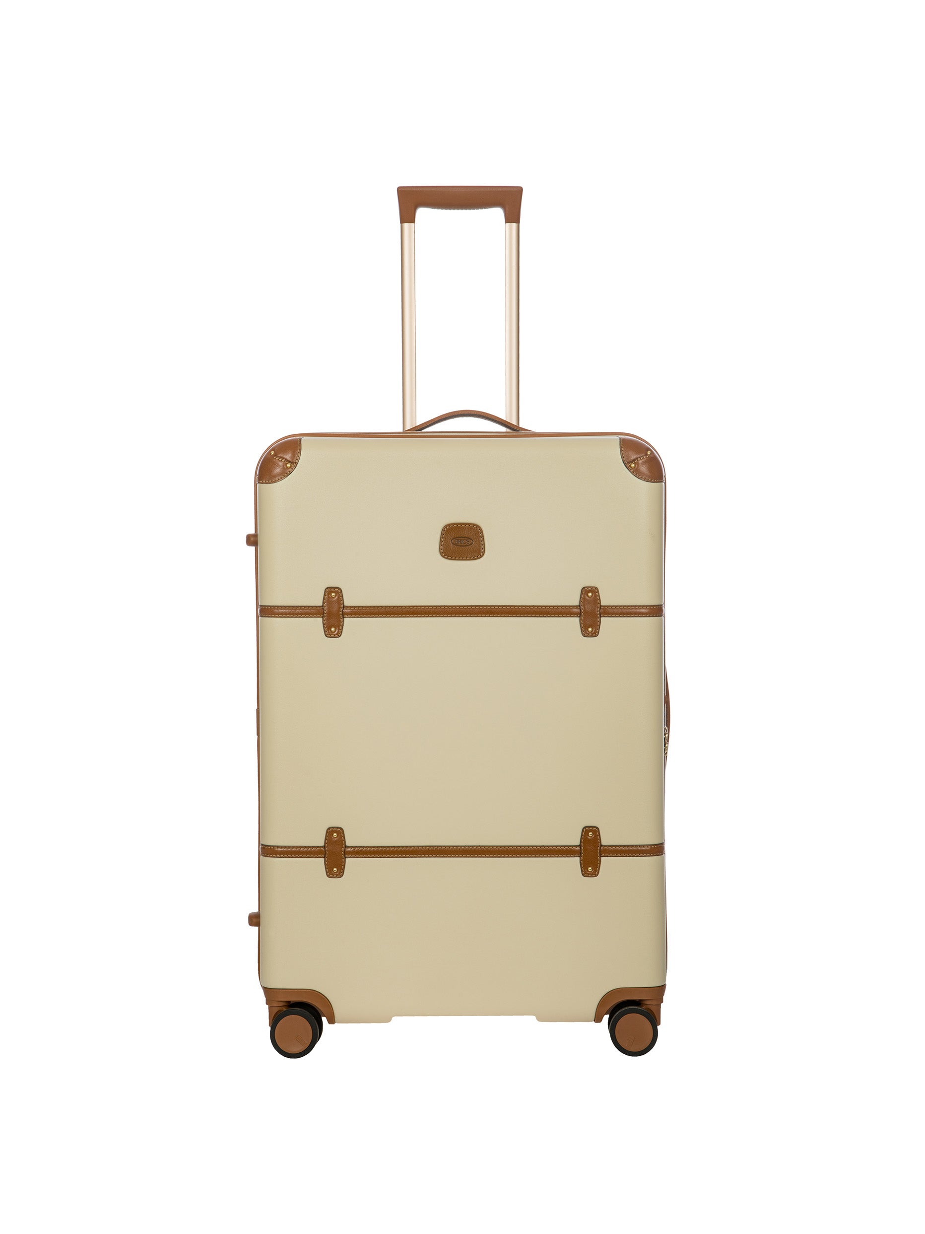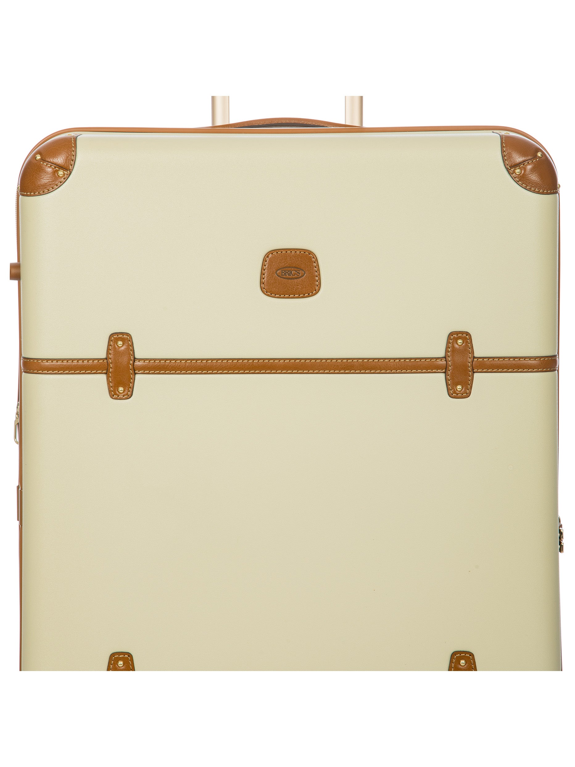 The Bellagio Collection is characterised by unmistakable design, our most iconic yet. This large trolley is made of recycled polycarbonate, a lightweight, flexible material which is ultra durable and impact-resistant. The closure comes with a TSA lock and an ultra-secure zip: this anti-tampering system ensures an optimised level of protection from attempted theft. The inside is complete with a compression system, divided into two compartments to ensure the effective organisation of all your items. Moreover, the expandable zip closure makes it possible to increase its capacity. The lining is easily removed thanks to a special zip: that way, if needed, it can be washed separately. To ensure comfort and ease of use, the retractable handle is made up of robust, sturdy aluminium tubes with intermediate stop positions so that its height can be adjusted as needed, and an ergonomic grip. The four double wheels move quietly and rotate a full 360° for guaranteed manoeuvrability, equipped with ball bearings that create a smooth ride. Moreover, the wheels are recessed in the shell, thereby increasing the capacity of the trolley. Bric’s distinctive real leather accents trim the outside of the Bellagio trolley, complemented by refined logo details. The leather address tag carrier is an essential finishing touch. To better organize the suitcase, the hanger set and the garment bag in fabric can be purchased separately. Transparent cover included.
