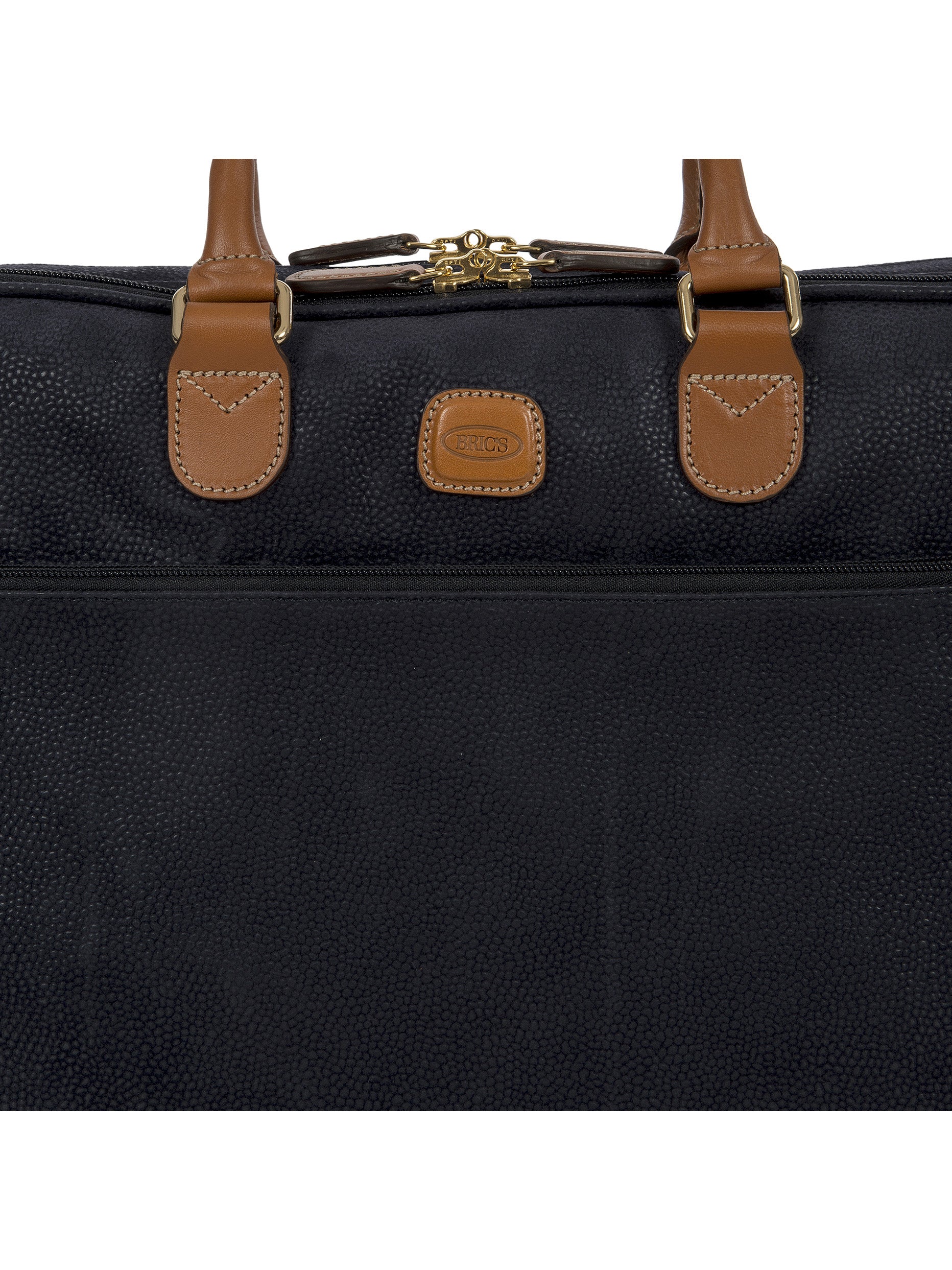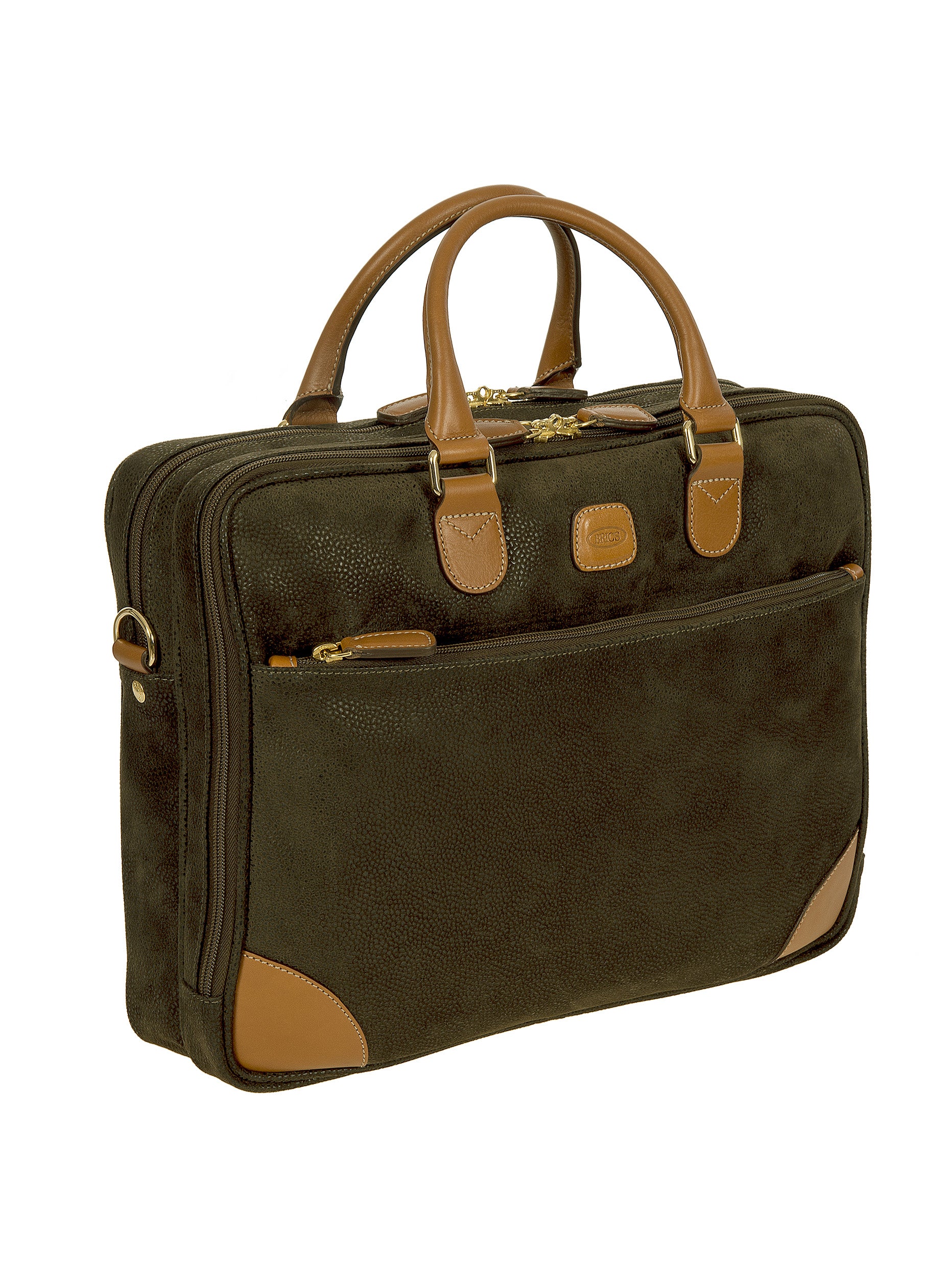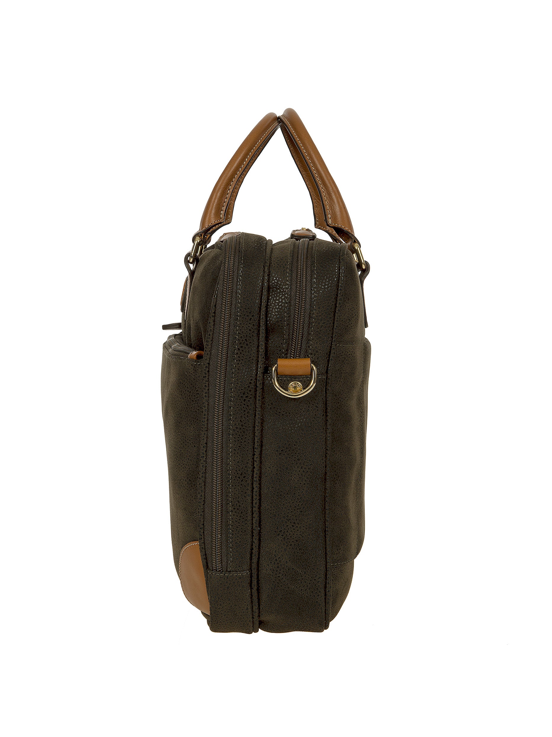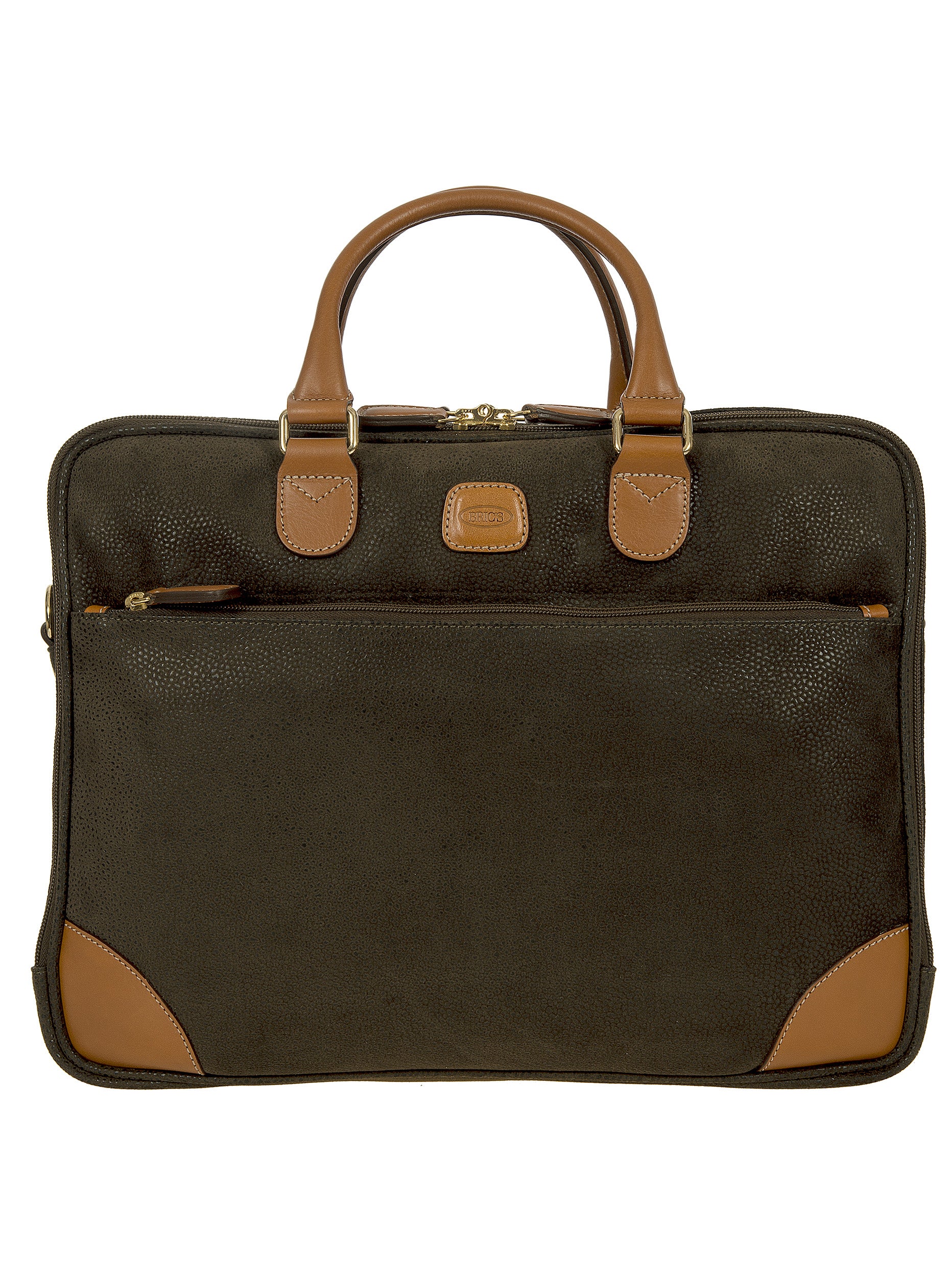 Notebook and document briefcase from the Life collection.- EXTERIOR: this work bag is made from Bric's suede-effect material and features Tuscan leather details. It has a double handle and a zipped front pocket. Two double zips allow access to the two inner compartments- INTERIOR: the first compartment comes with two small pockets, two business card holders and two pen holders; the second compartment includes a wide zipped pocket and two large padded pockets with a Velcro fastening for holding a notebook or tablet.