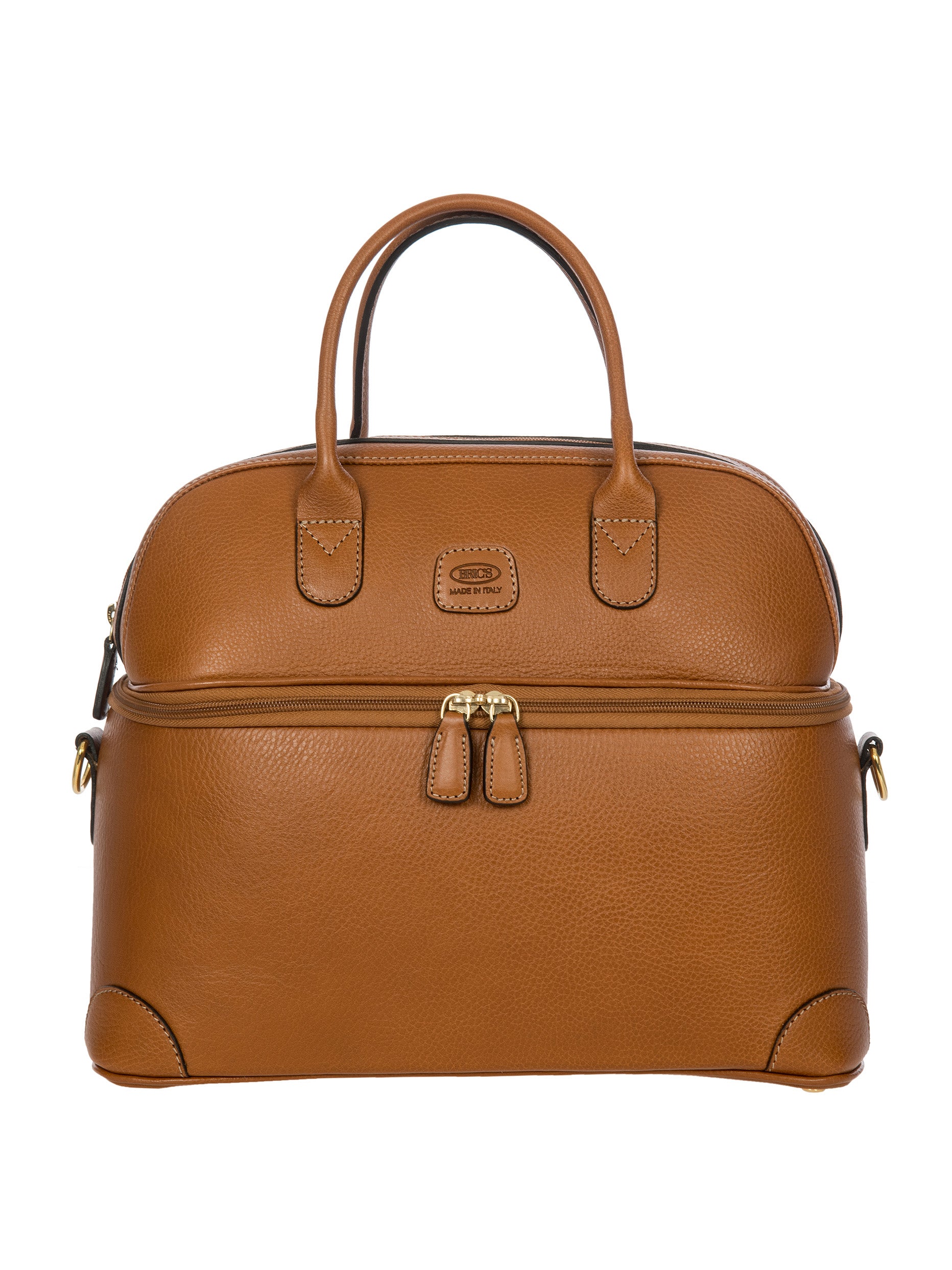 Designed and made in Italy, this Beauty Case from the Life Pelle Collection is an elegant accessory that seamlessly organises and carries make-up and personal items. Made of finest vegetable-tanned Tuscan leather, it’s crafted to last over time, becoming ever more elegant with use. The sophisticated design is completed by fabric lining with the Bric’s logo print. Carry it by hand thanks to the top handles, or sling it over your shoulder with the adjustable and detachable cross-body strap. The upper compartment is closed by a zip, while a central zip opens the second compartment which is organised by practical elastic pockets at the sides. At the back, a strap slips easily over the retractable handle of wheeled luggage, a must-have convenience when travelling. A leather address tag and a convenient TSA lock with Bric’s branding are the finishing touches.