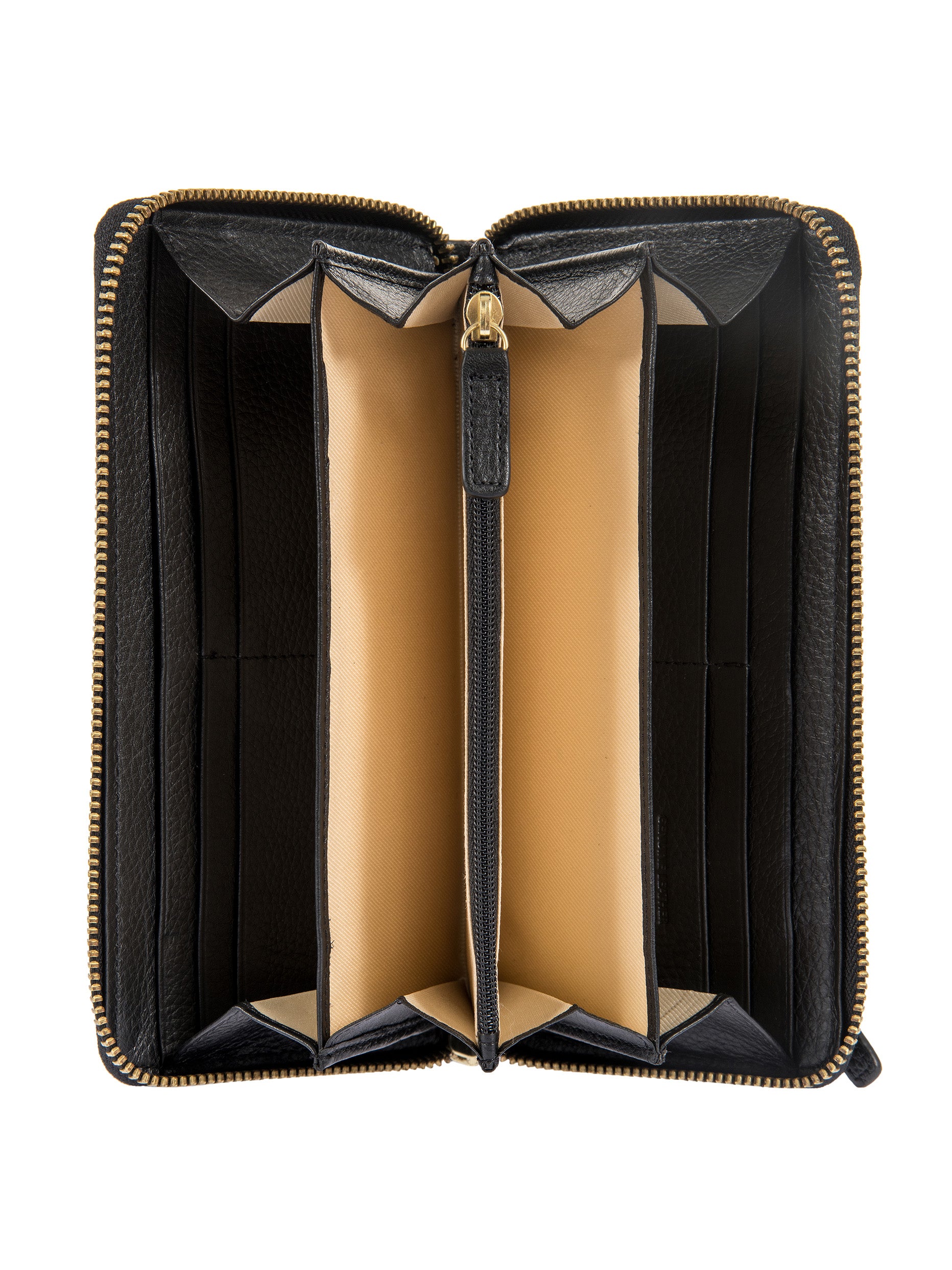 Women's wallet in soft tumbled leather from the Marmolada Collection. This model features large bellows compartments, a three-sided zip closure and an additional external zipped pocket. It has a banknote compartment, 15 card slots and a zipped inner coin pocket. Finished with the iconic Bric's logo in a tone on tone print and a fabric lining. Equipped with RFID card protection. This accessory comes wrapped in an elegant protective cloth inside a branded Bric's box.