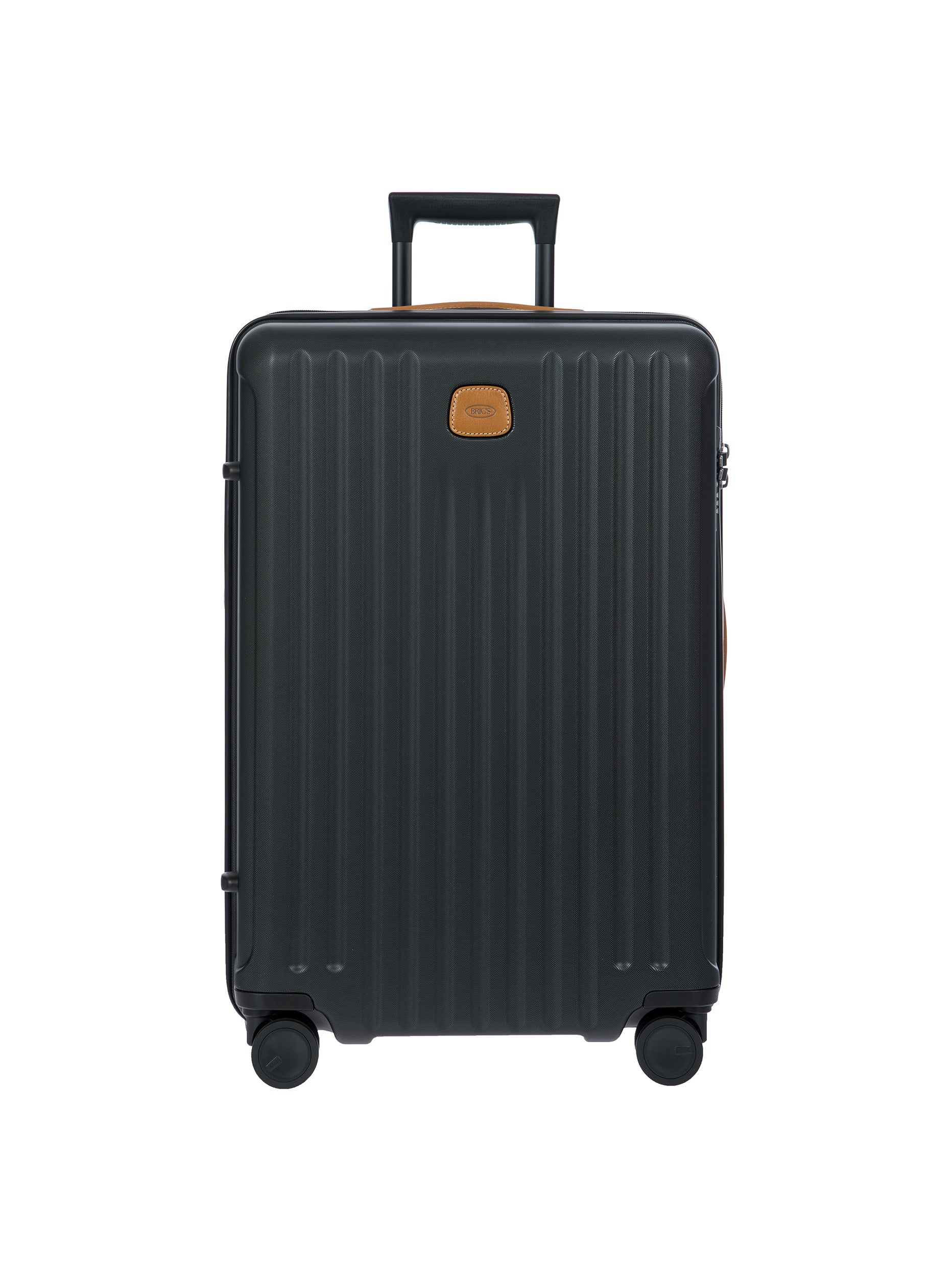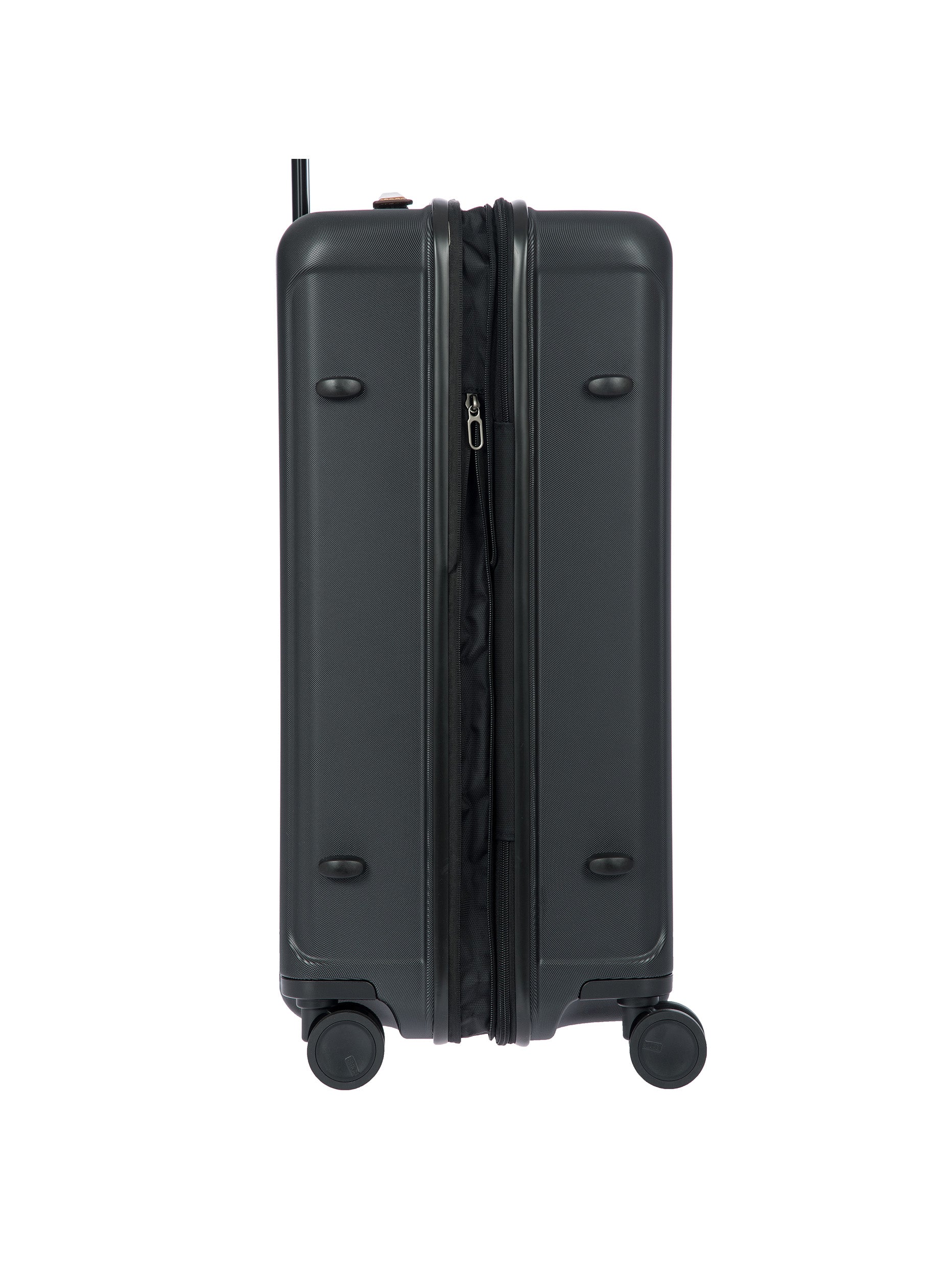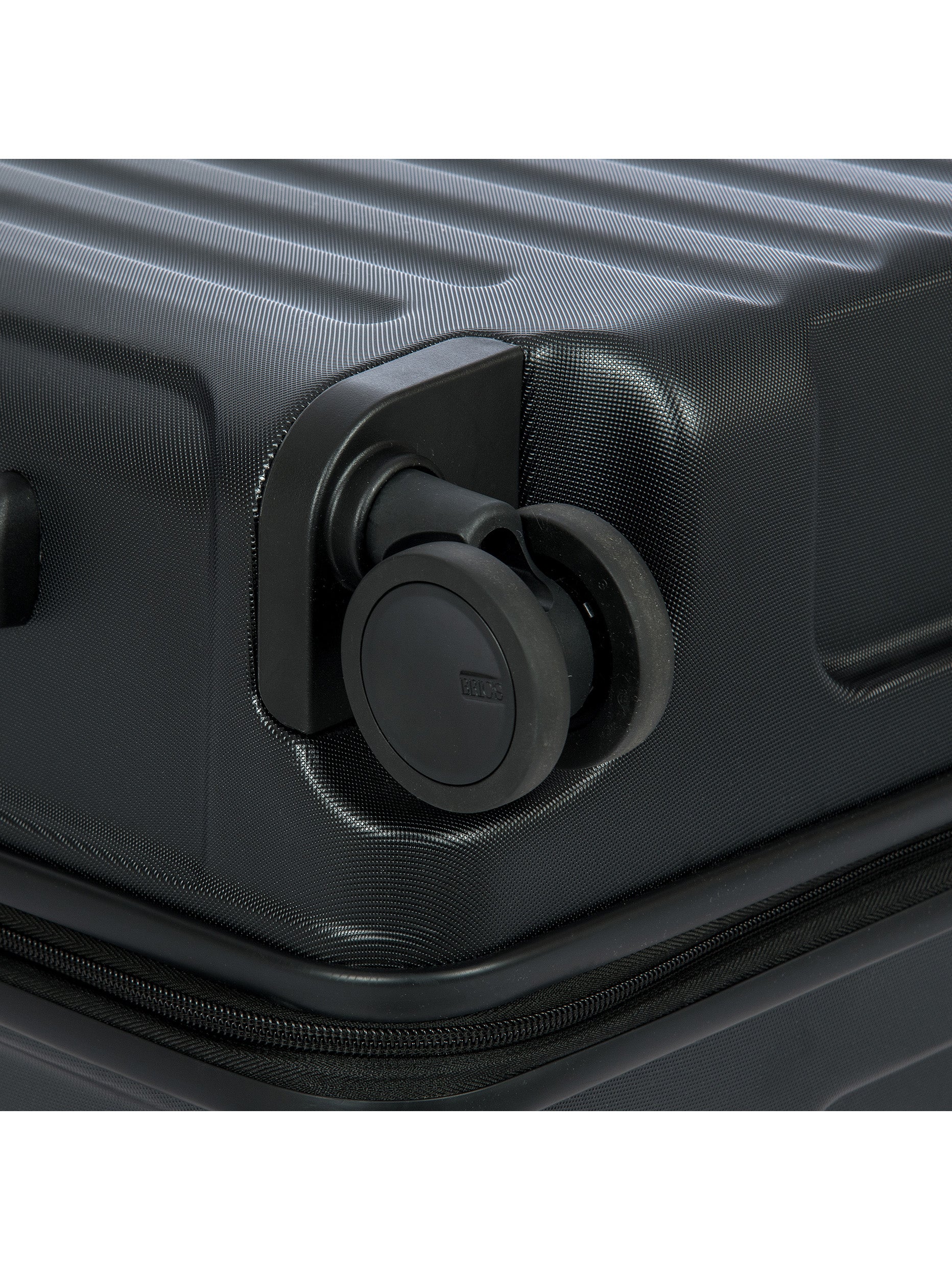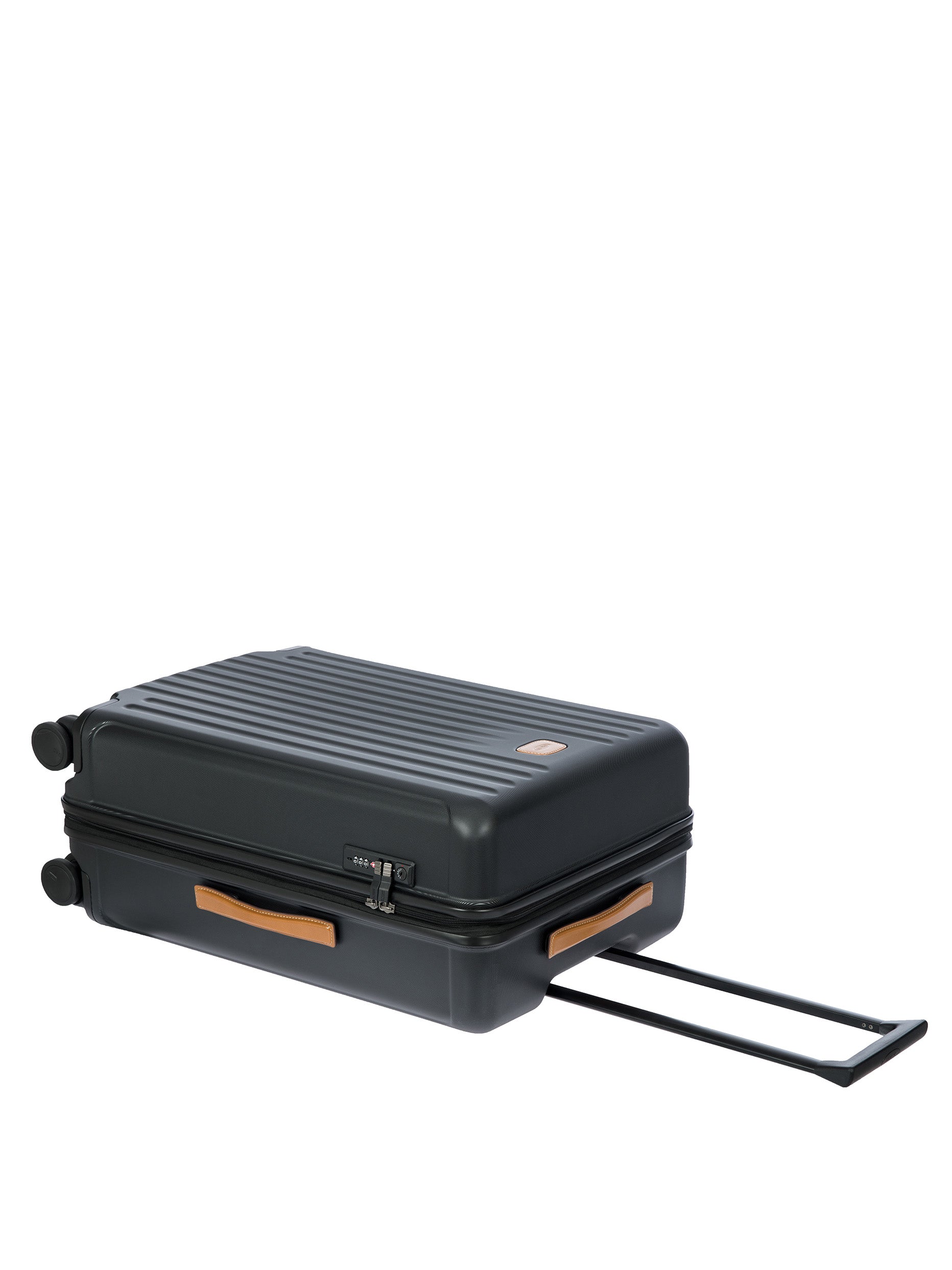 - EXTERIOR: flexible and durable recycled polycarbonate shell with cowhide details and contrasting top-stitching. Zipper with a TSA combination luggage lock built into the shell. The expandable zipper increases the trolley's depth by 4 cm.