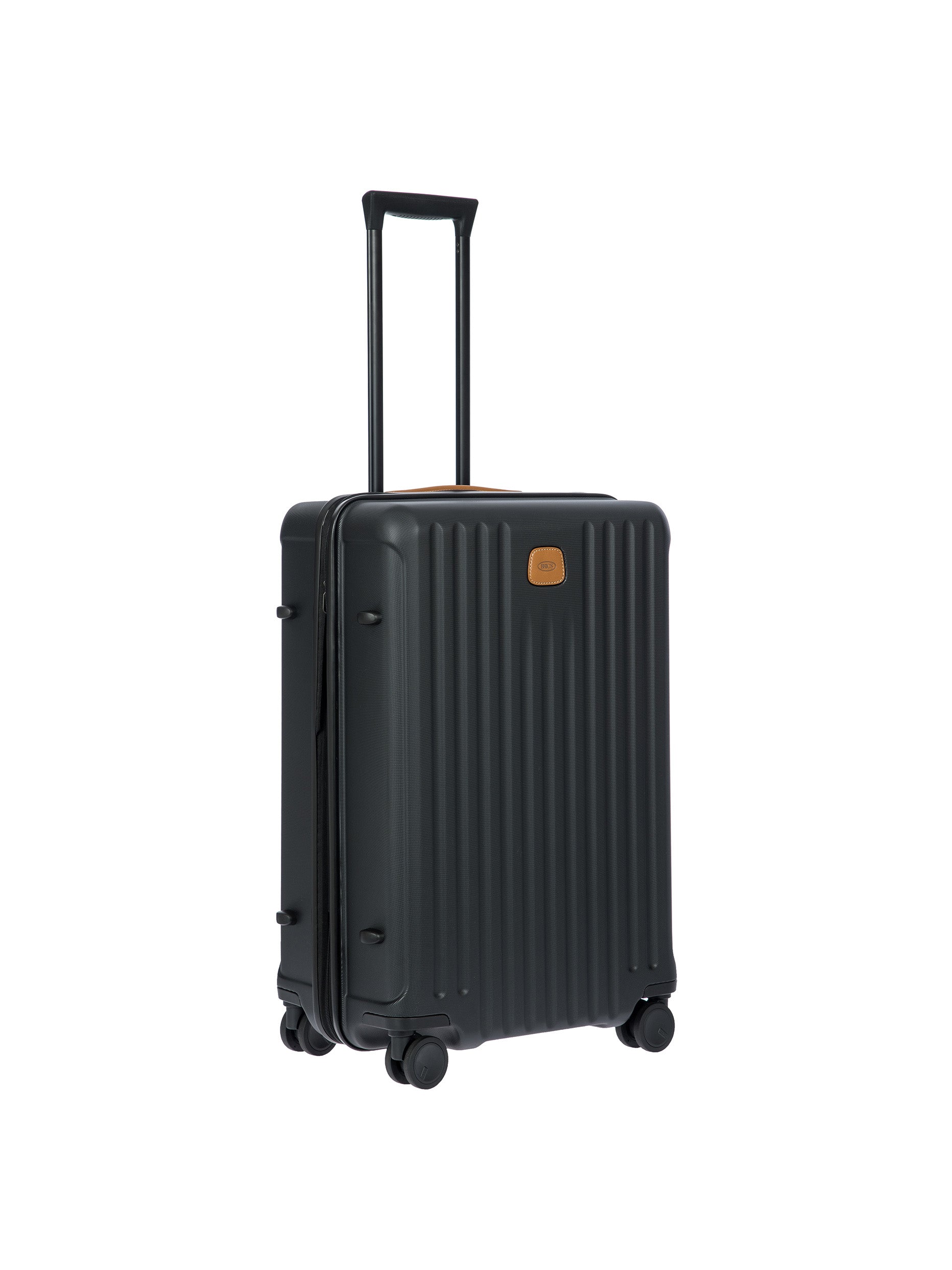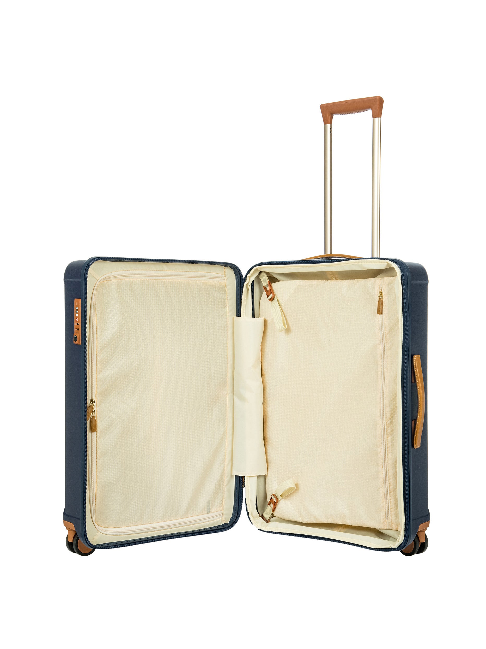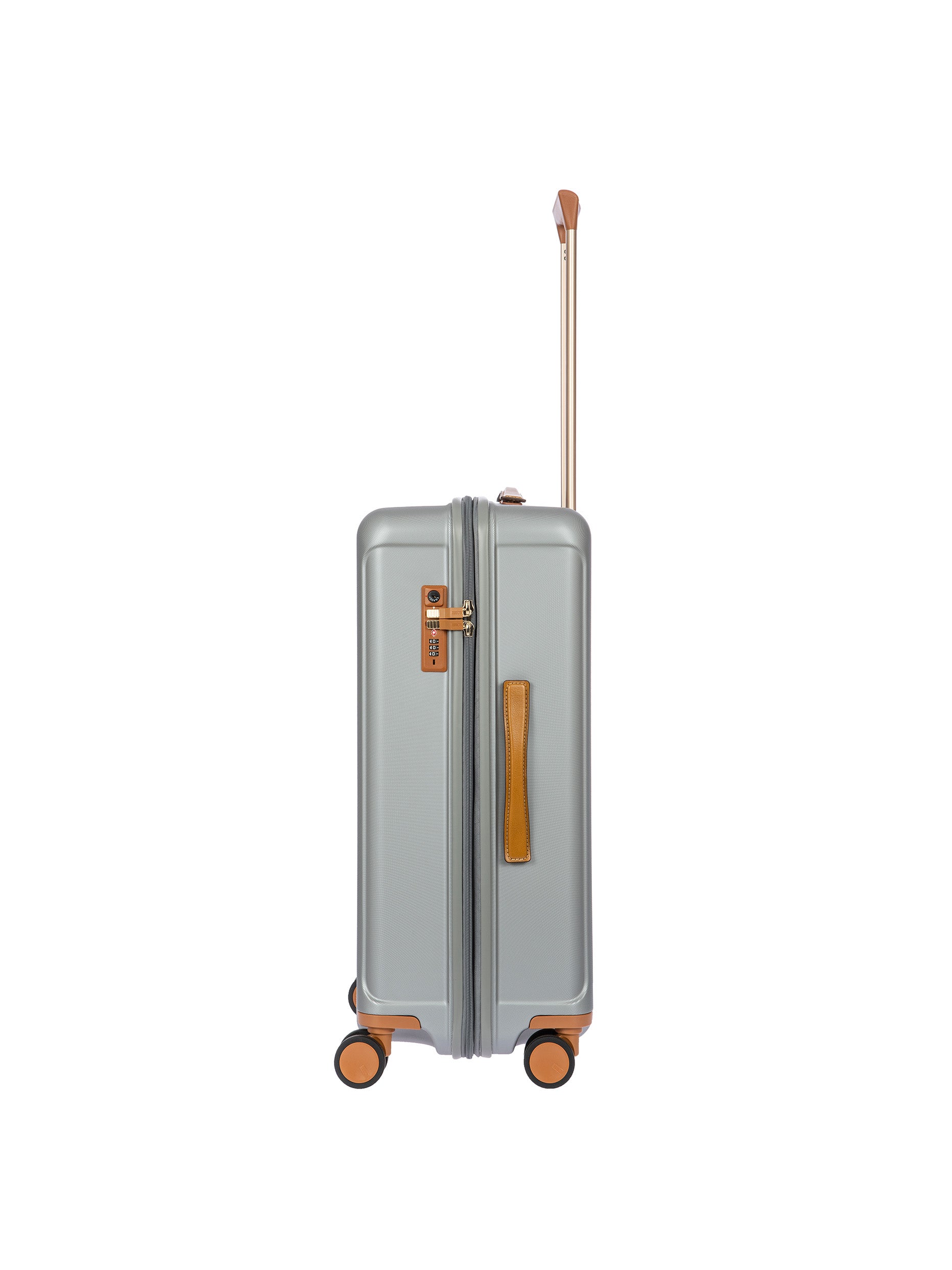 - EXTERIOR: flexible and durable recycled polycarbonate shell with cowhide details and contrasting top-stitching. Zipper with a TSA combination luggage lock built into the shell. The expandable zipper increases the trolley's depth by 4 cm.