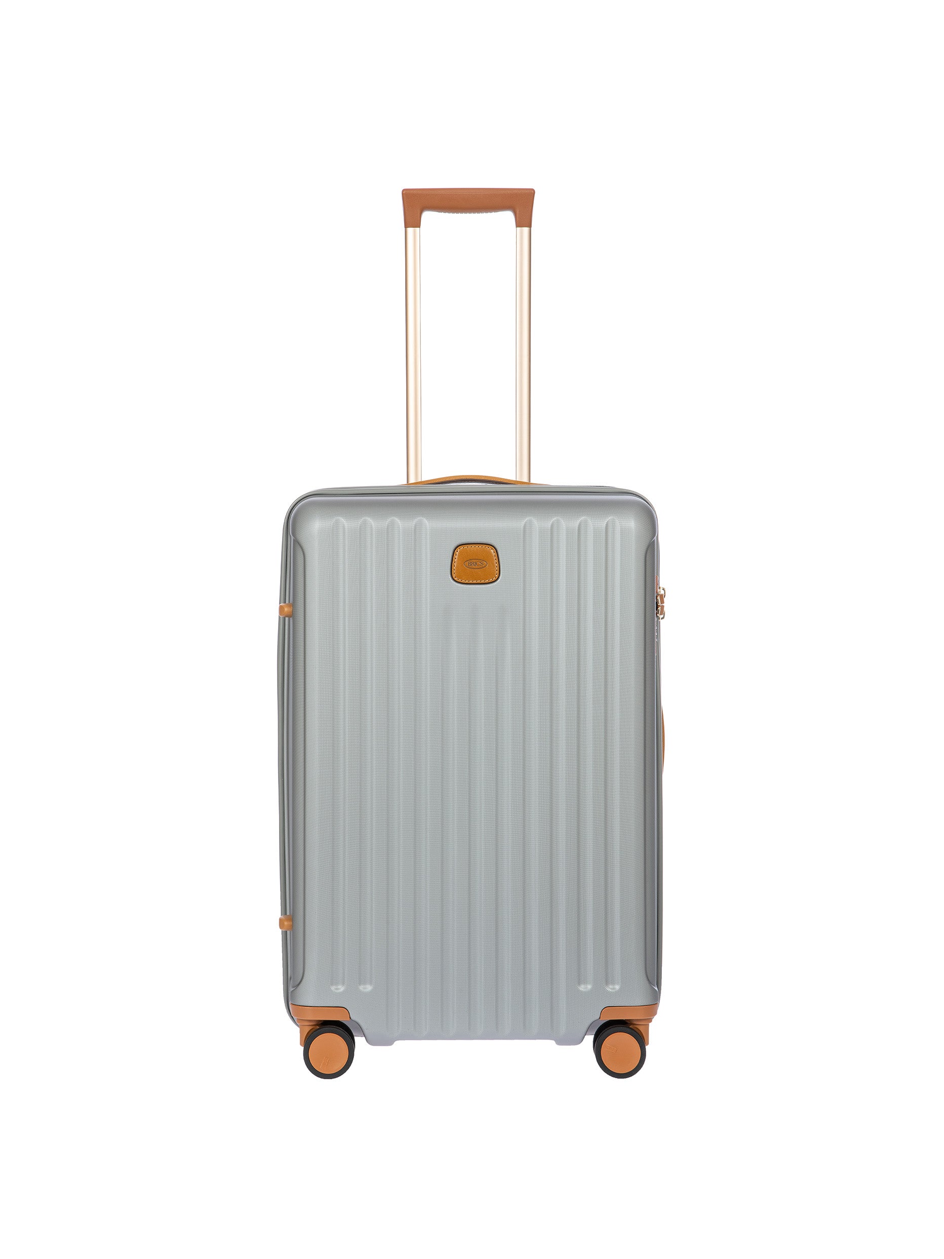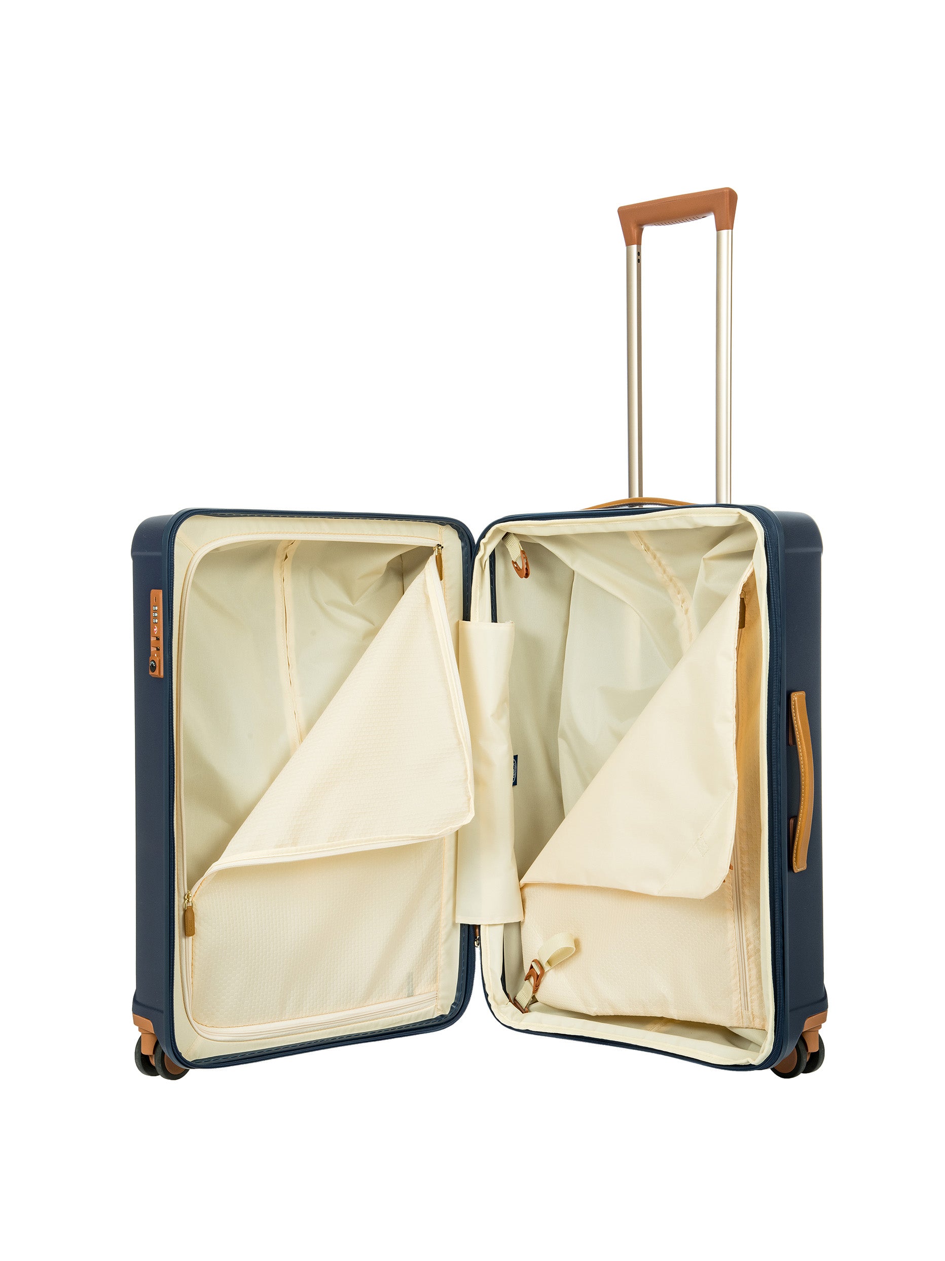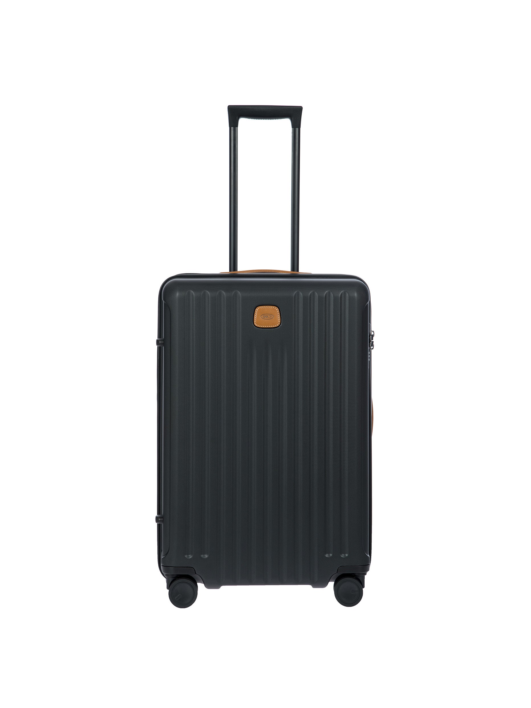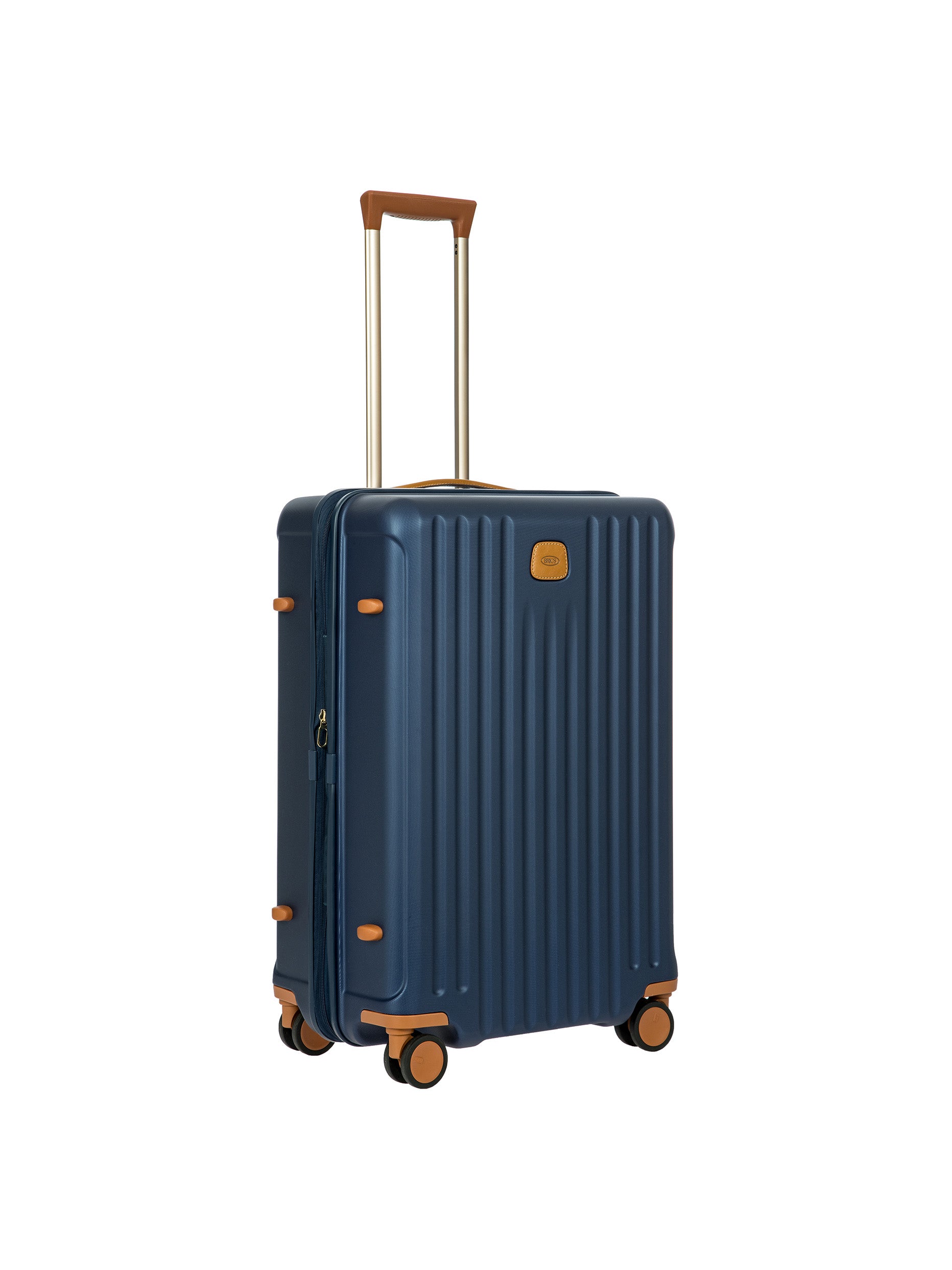 - EXTERIOR: flexible and durable recycled polycarbonate shell with cowhide details and contrasting top-stitching. Zipper with a TSA combination luggage lock built into the shell. The expandable zipper increases the trolley's depth by 4 cm.