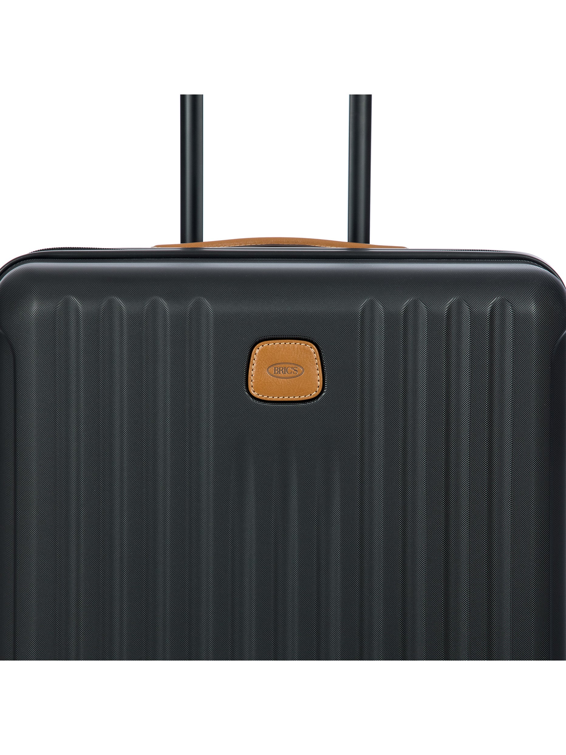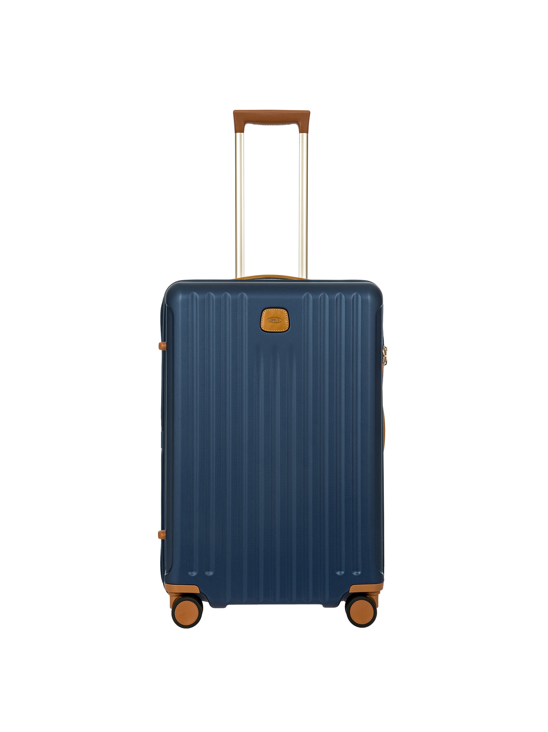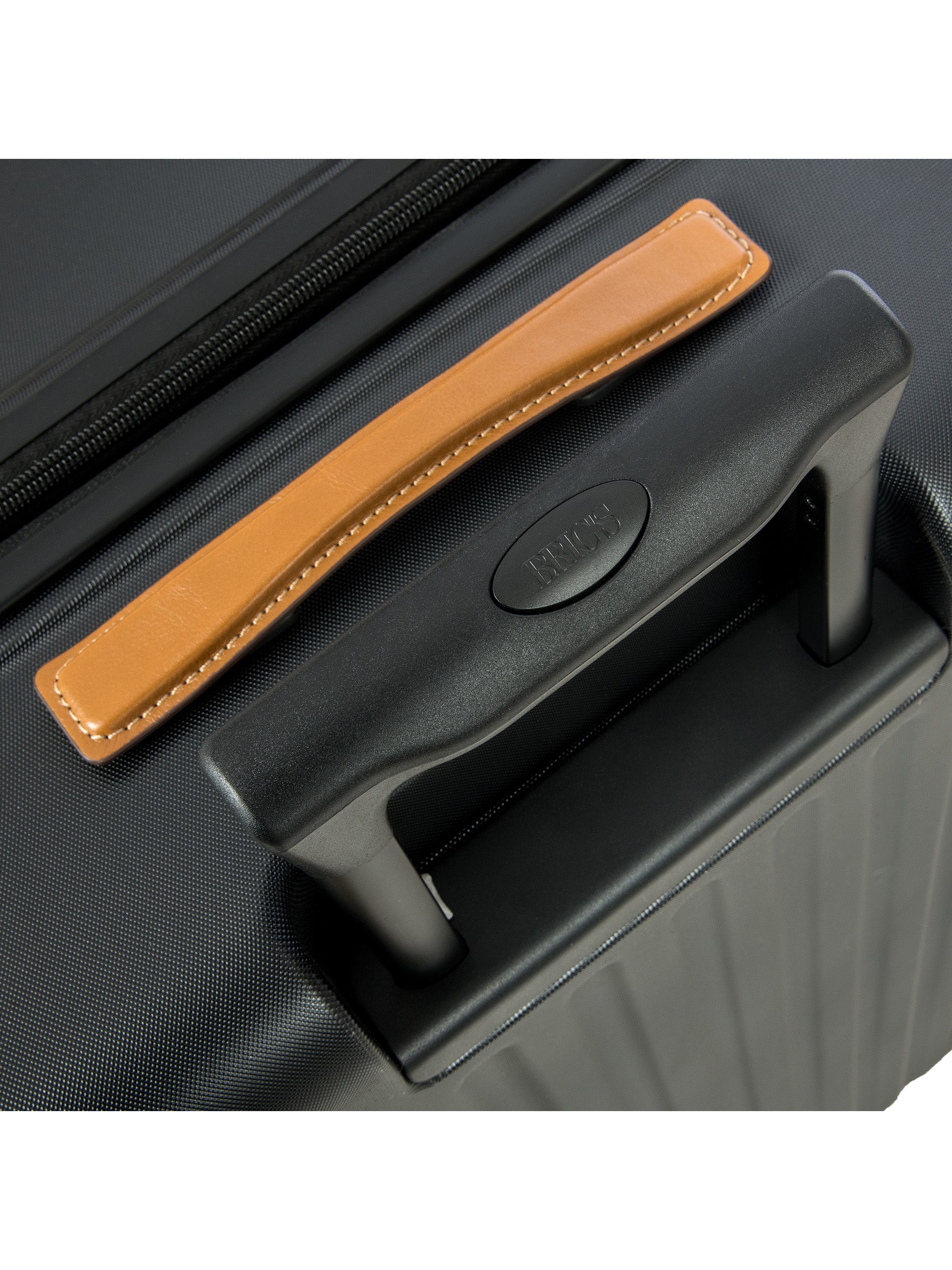 - HANDLES: pull-along handle with aluminium D-shaped tubes that are mechanically robust and stable with an ergonomic grip. Leather top and side handle.