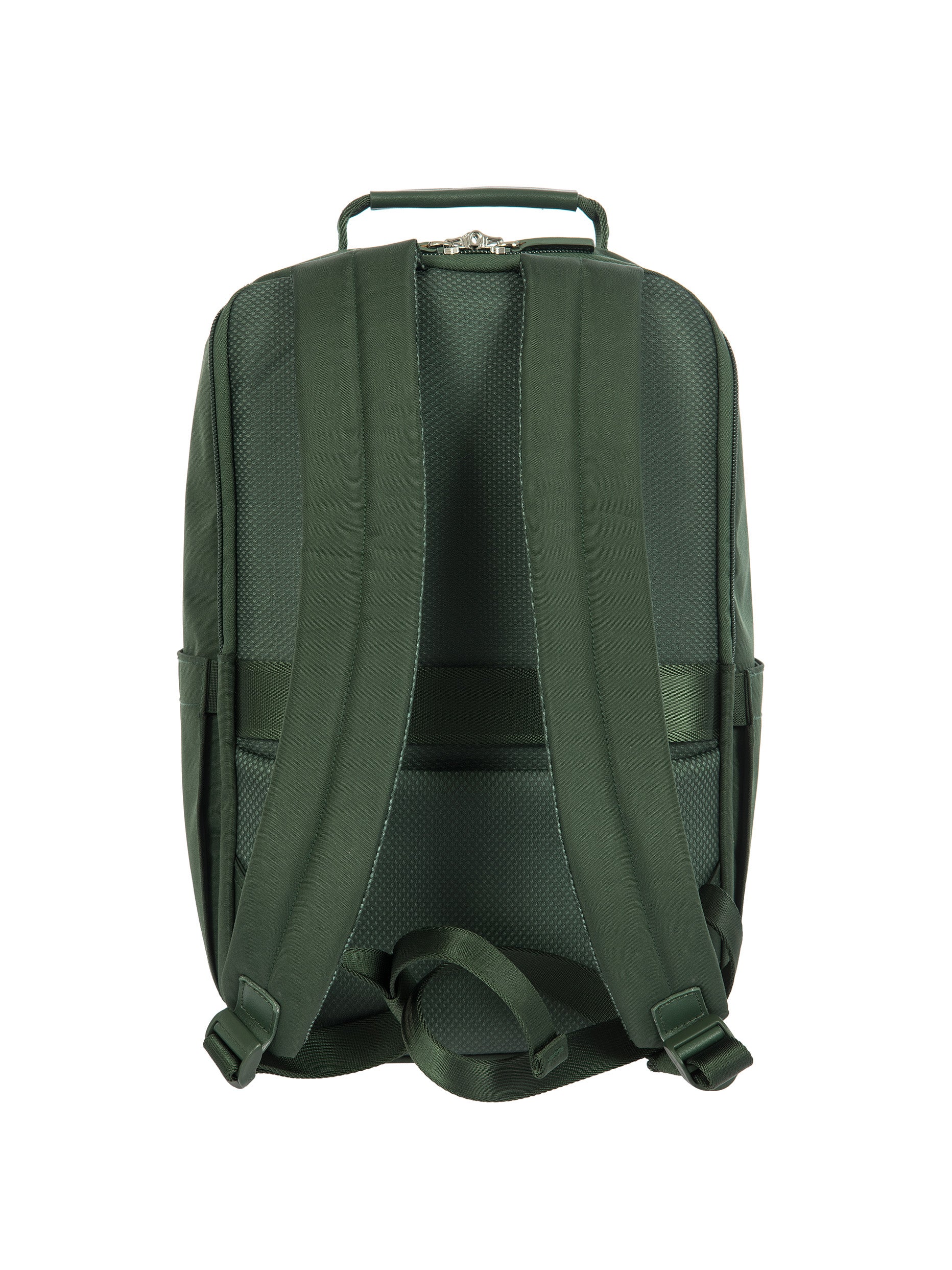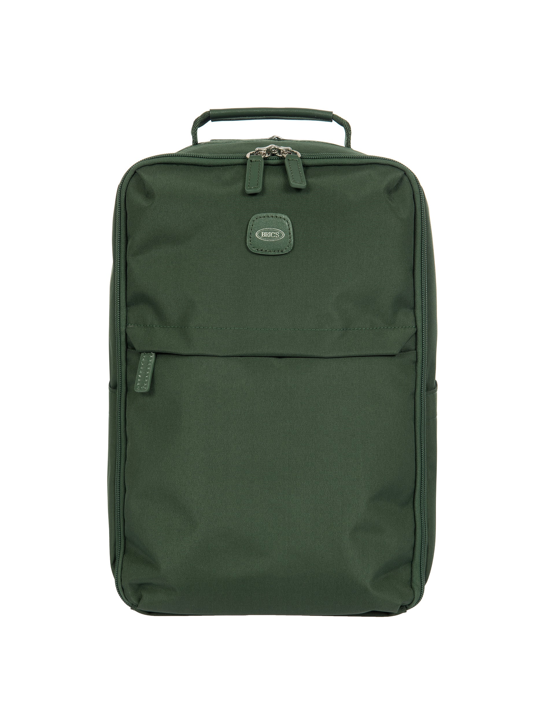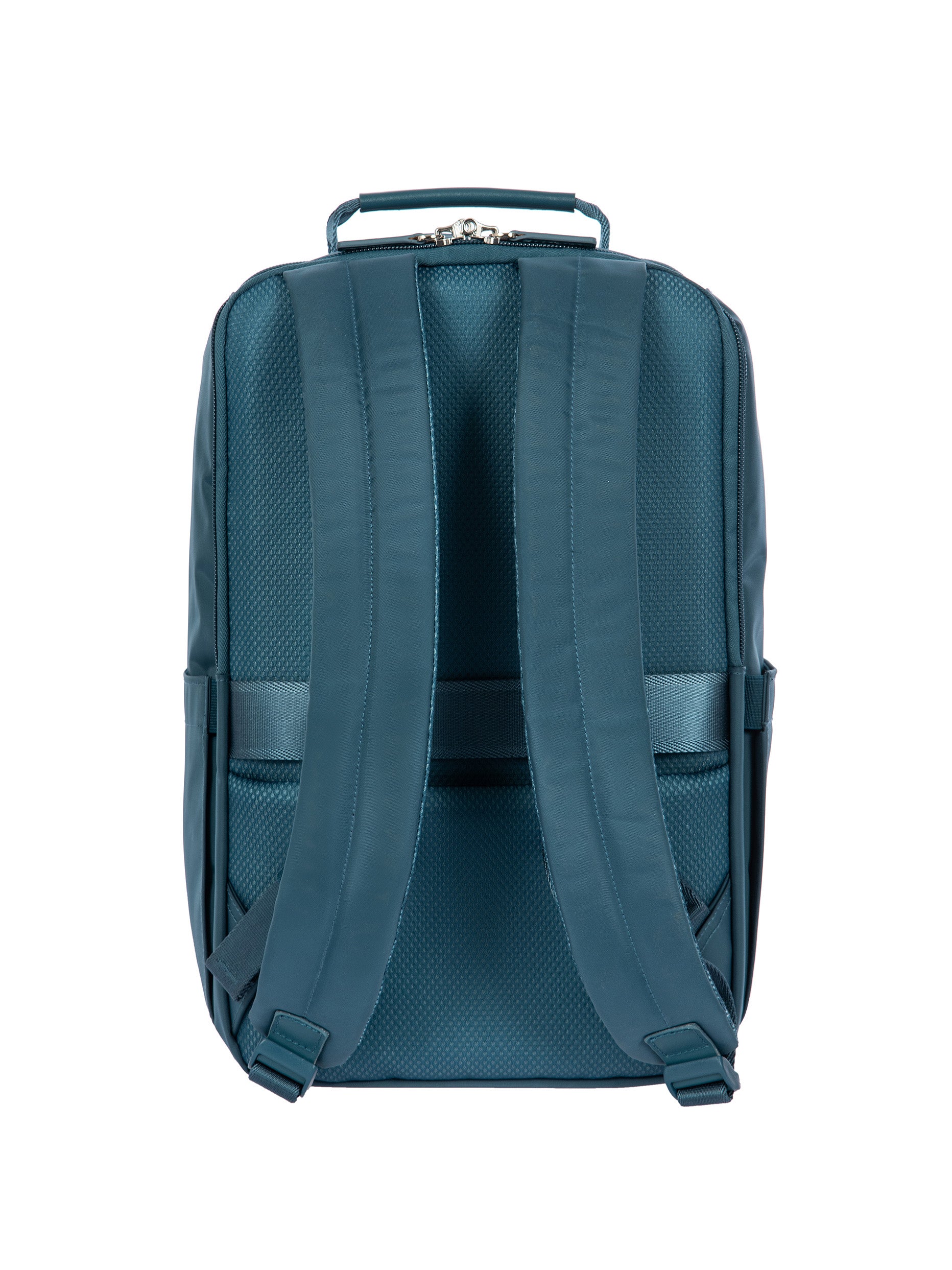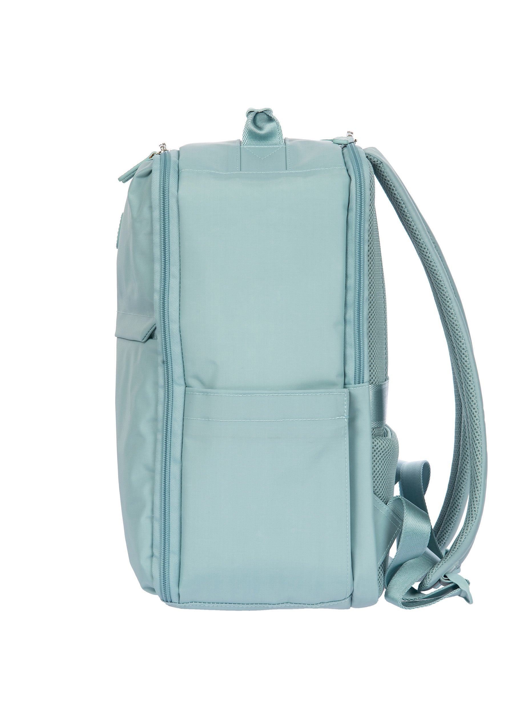 The Positano Underseat Soft Backpack - even more outstanding in this monochrome version - complies with the majority of air carriers’ limitations. Ideal as a weekender bag or business trips. It allows you to maximise the capacity of your luggage, in a compact form. The backpack is made from recycled, waterproof, and easy-to-clean fabric. Divided into two compartments protected by a double-slider zip: one holds a padded computer pocket, while the other is a roomy space with straps for holding clothes. Convenient gusseted pockets at the sides, an additional zipped pocket at the front for items to be kept close at hand, and a hidden zipped back pocket to hold your valuable belongings. Also, the strap on the back can be used to attach the bag to a suitcase handle. With Bric's signature genuine leather details. The colours can be combined with the Positano Trolley Collection in recycled polycarbonate with gloss finish.