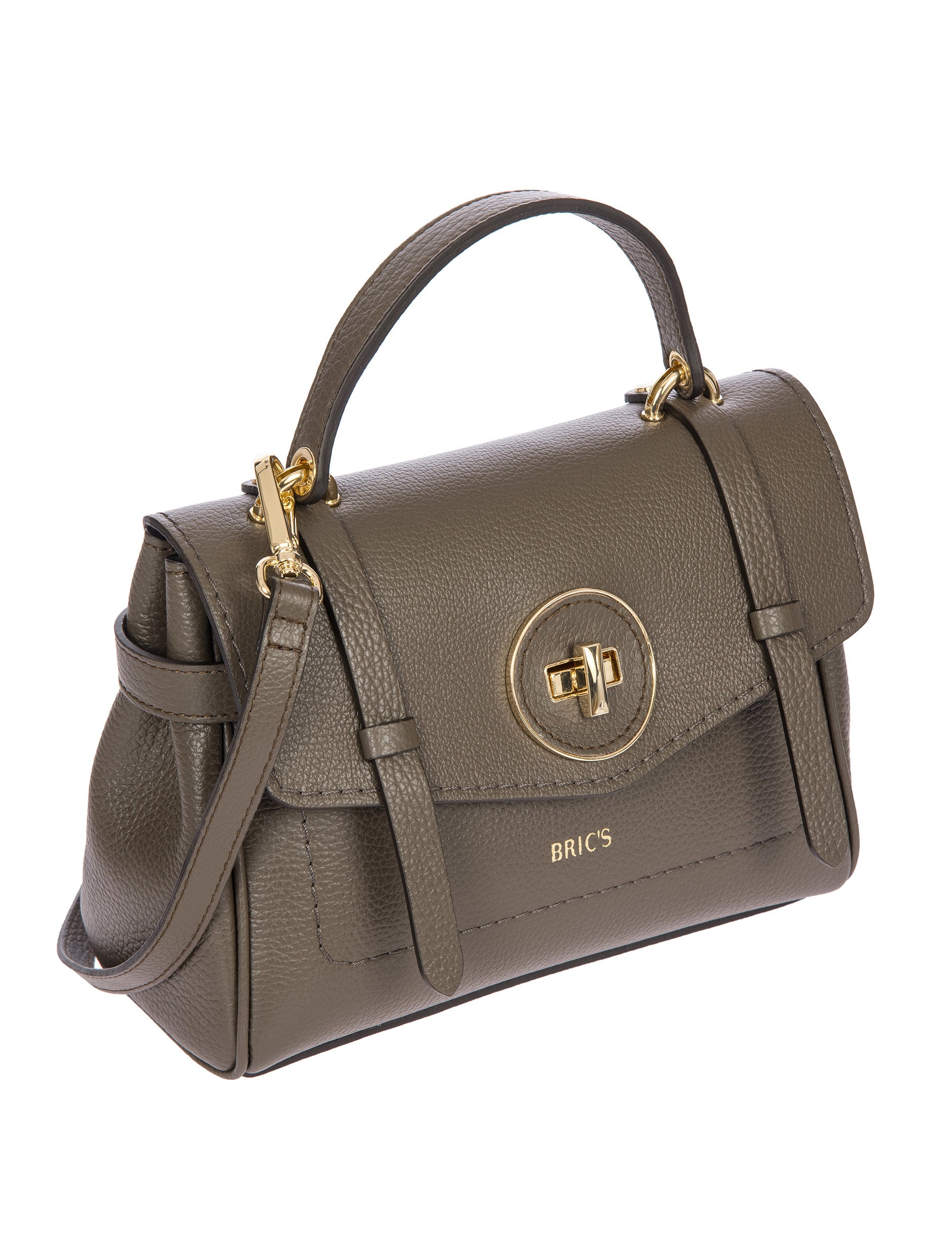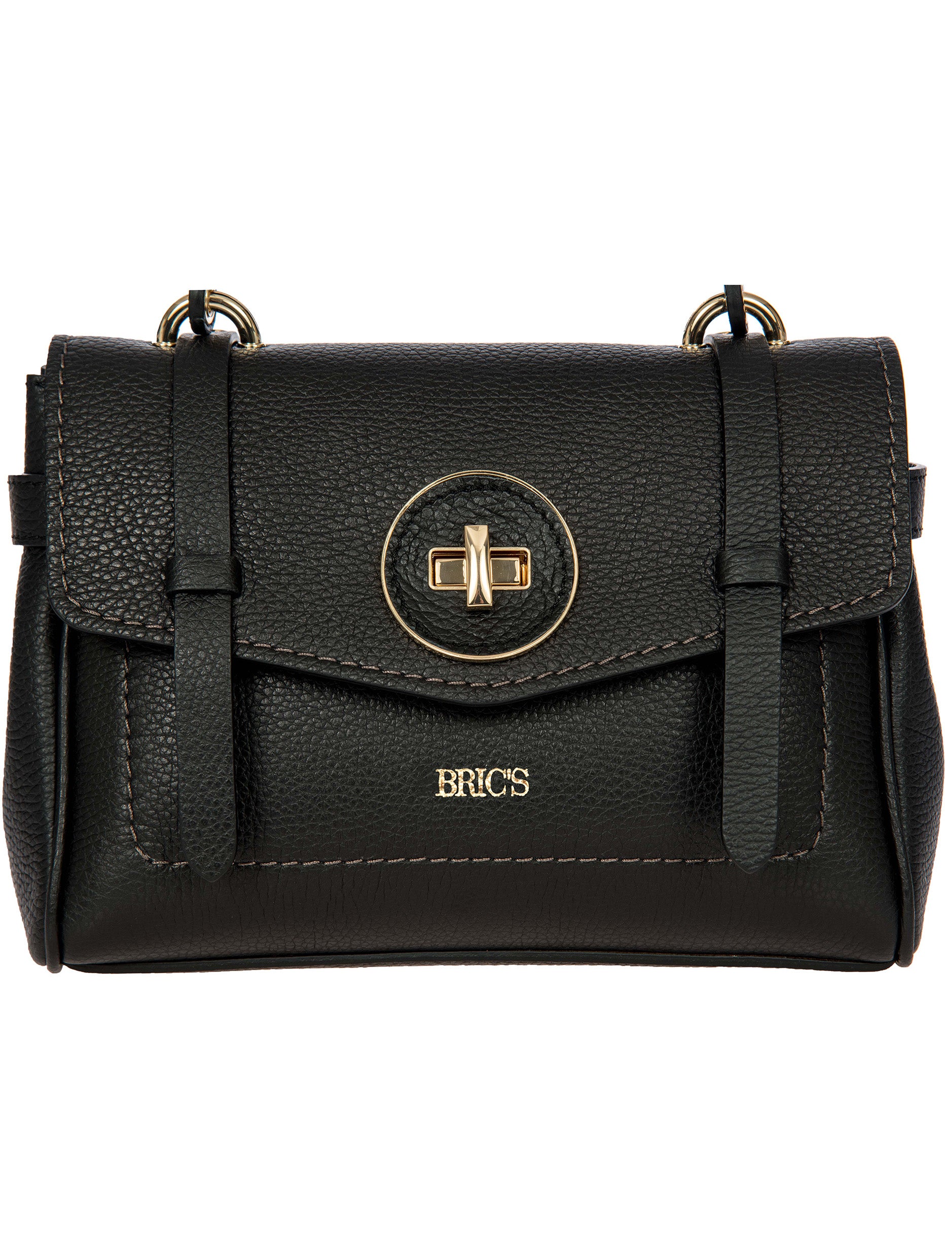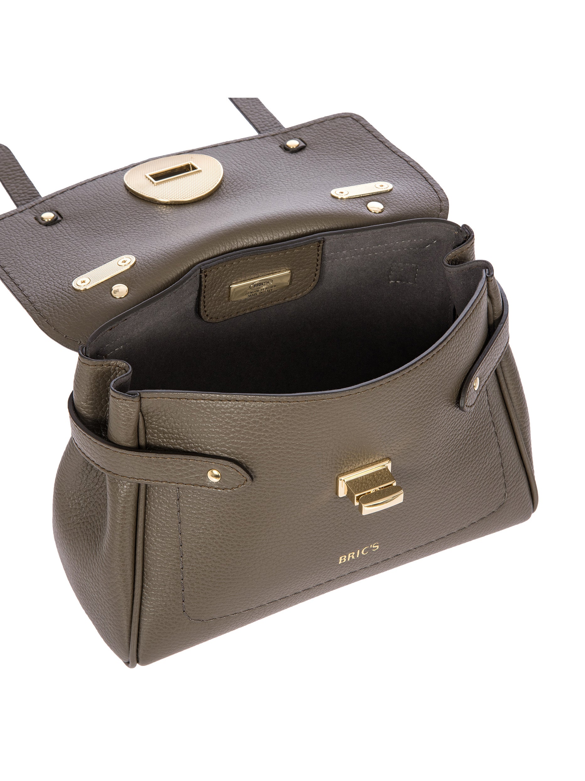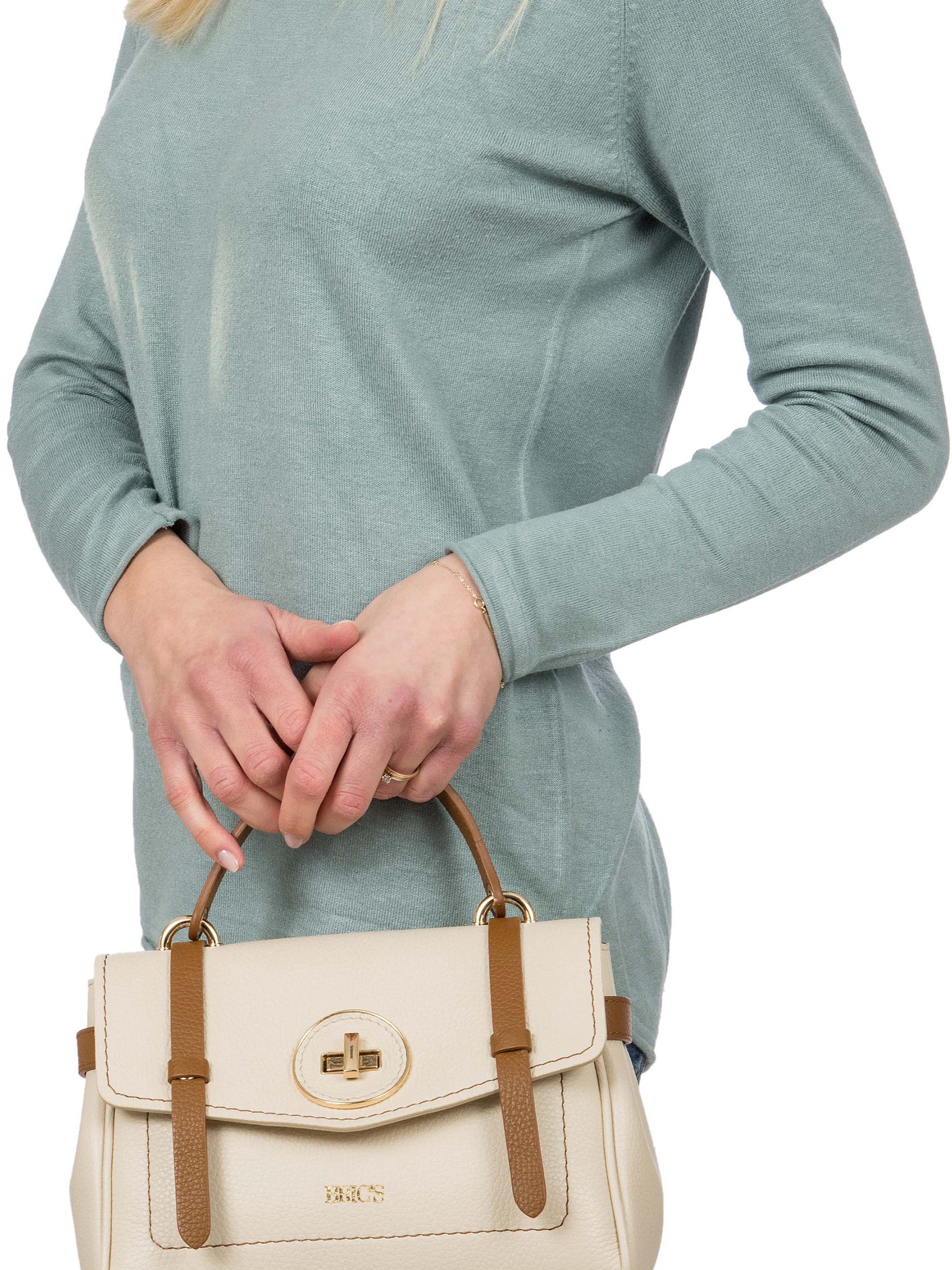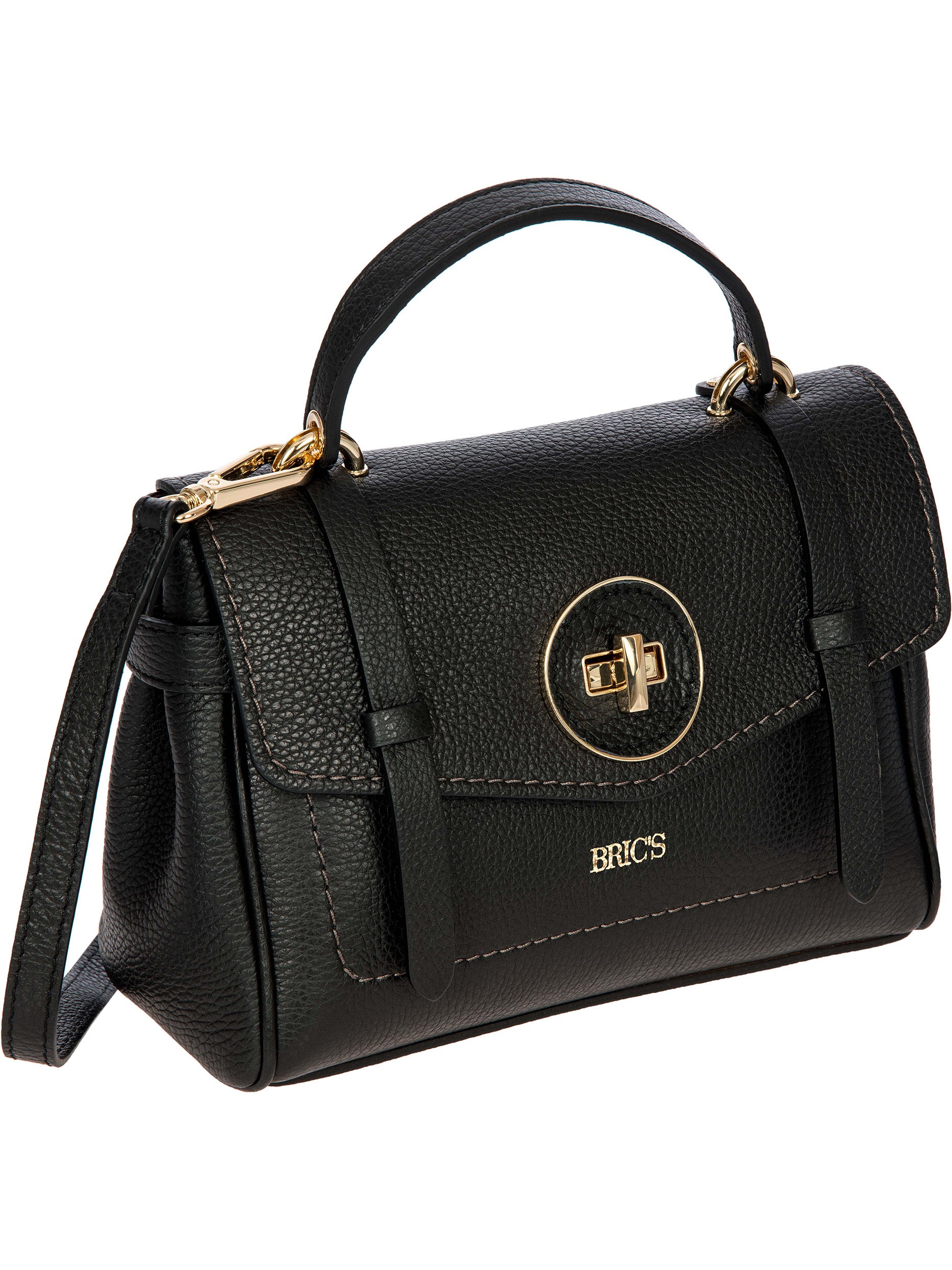The Bric’s Gondola Collection is entirely designed and manufactured in Italy. Made of soft, durable and lightweight real leather, it features an elegant print of the Bric’s logo. -Extra handle and slender crossbody strap in leather -Clasp with a swivel detail -Inner pocket -Gold-finish metal parts -Lined in soft fabric -Can be worn with the additional Dalia, Geranio, Ortensia or Viola straps