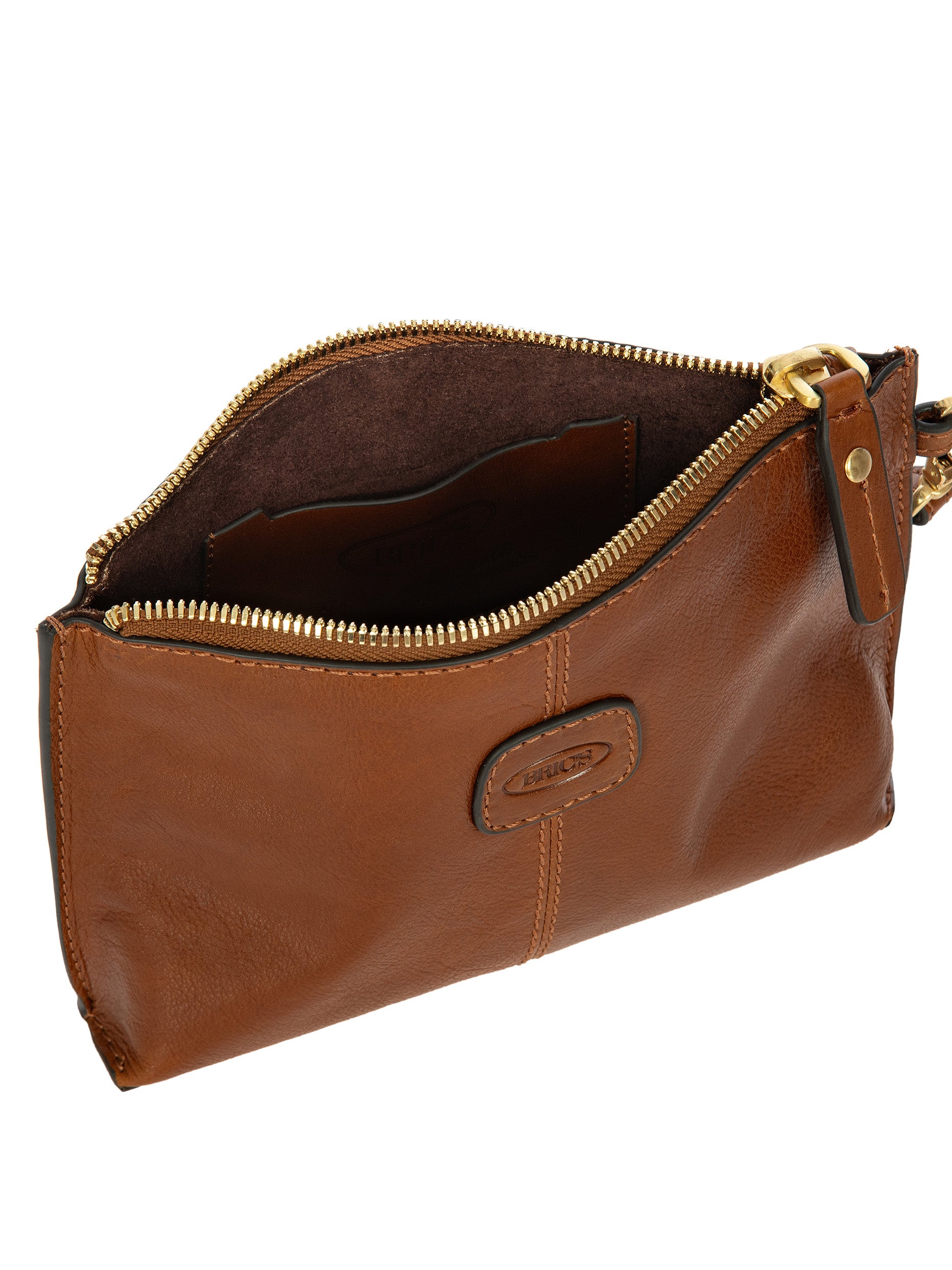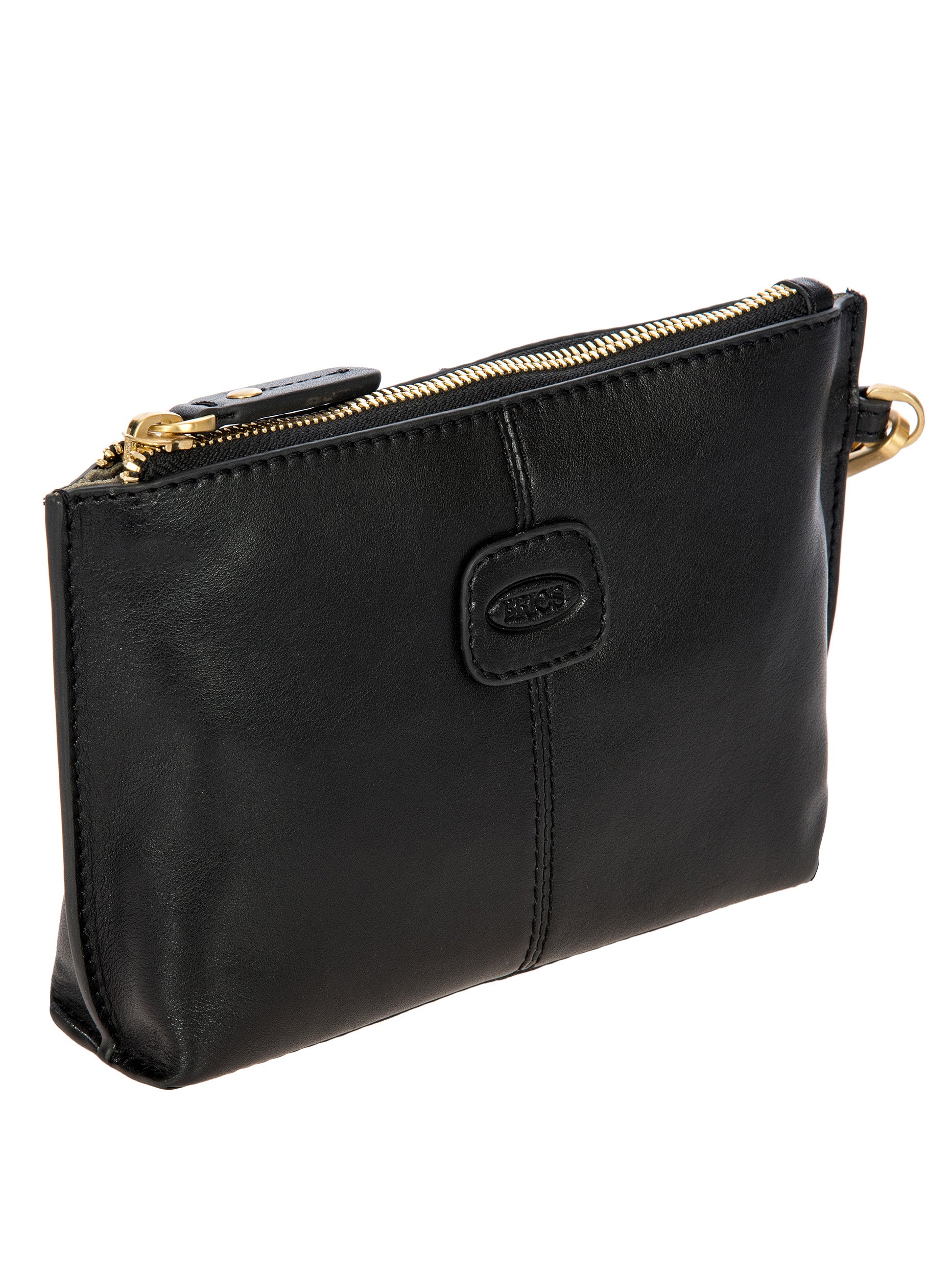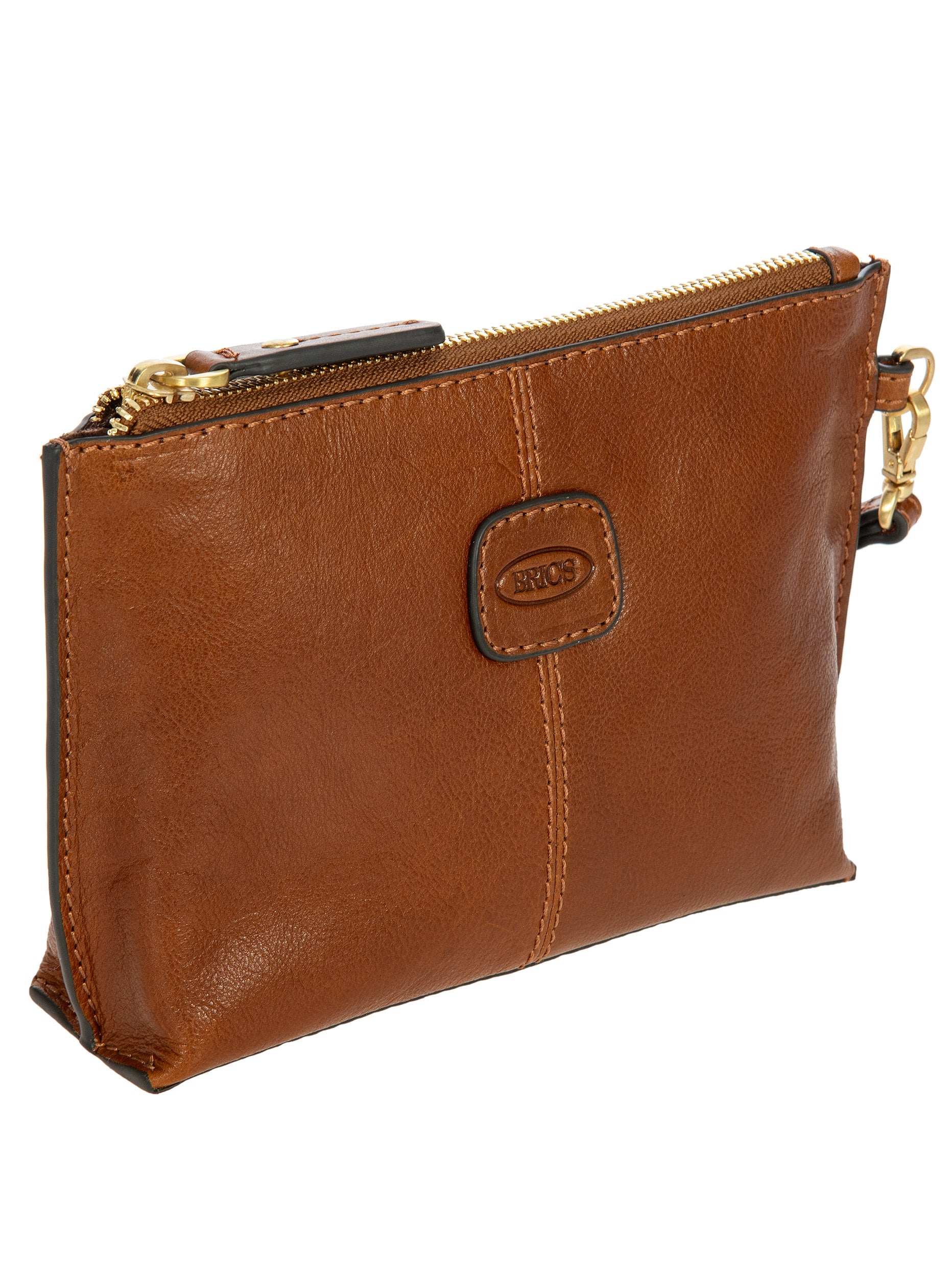 Every item in the Volterra Collection by Bric’s represents the natural elegance of exquisitely soft leather. Every seam, the rib-finish edges and the brushed gold hardware lend a handcrafted feel to the collection. This mini pouch is ideal for small, precious items. The roomy inner compartment is lined in soft nubuck, while the shape is feminine yet practical -Zip closure -Detachable wristband
