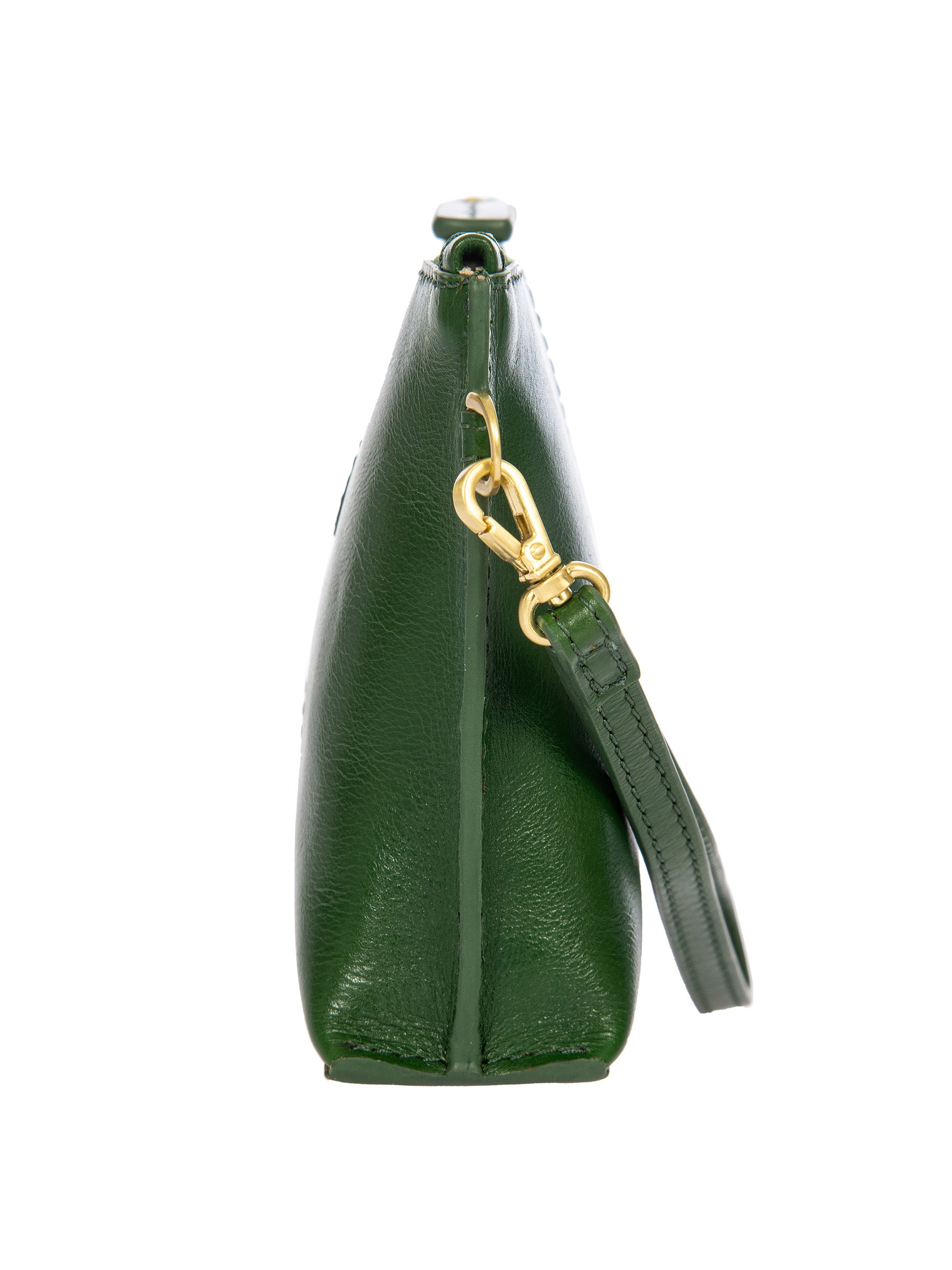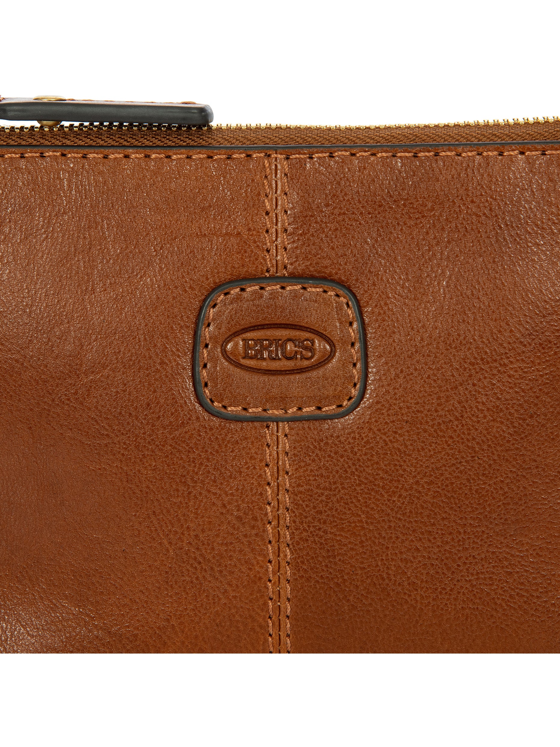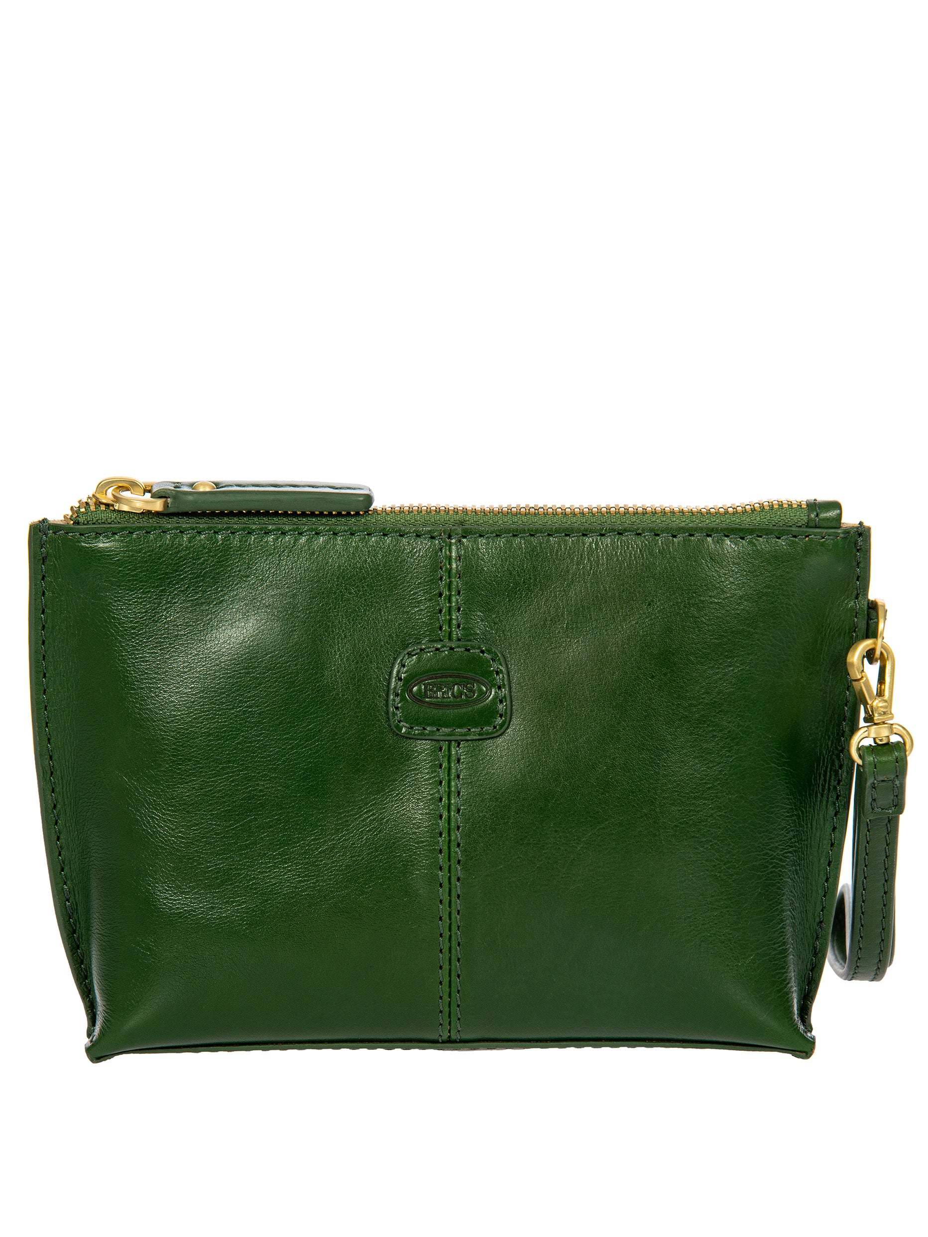 Every item in the Volterra Collection by Bric’s represents the natural elegance of exquisitely soft leather. Every seam, the rib-finish edges and the brushed gold hardware lend a handcrafted feel to the collection. This mini pouch is ideal for small, precious items. The roomy inner compartment is lined in soft nubuck, while the shape is feminine yet practical -Zip closure -Detachable wristband